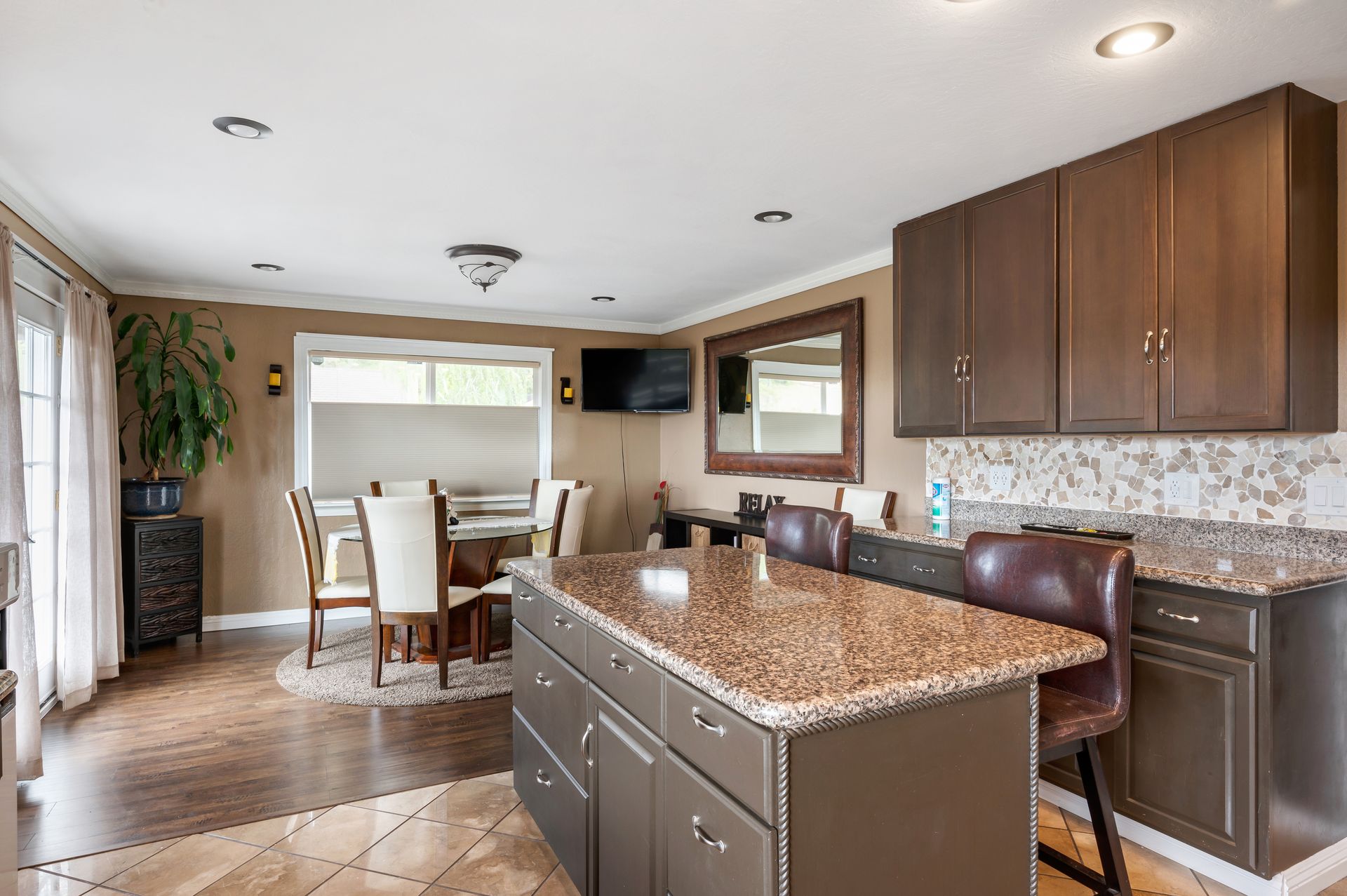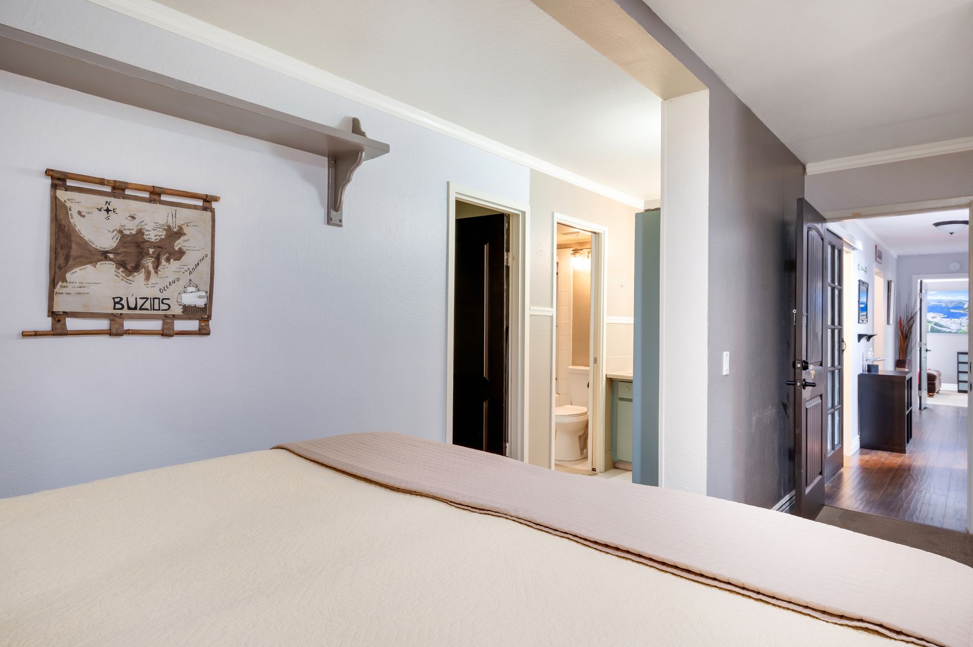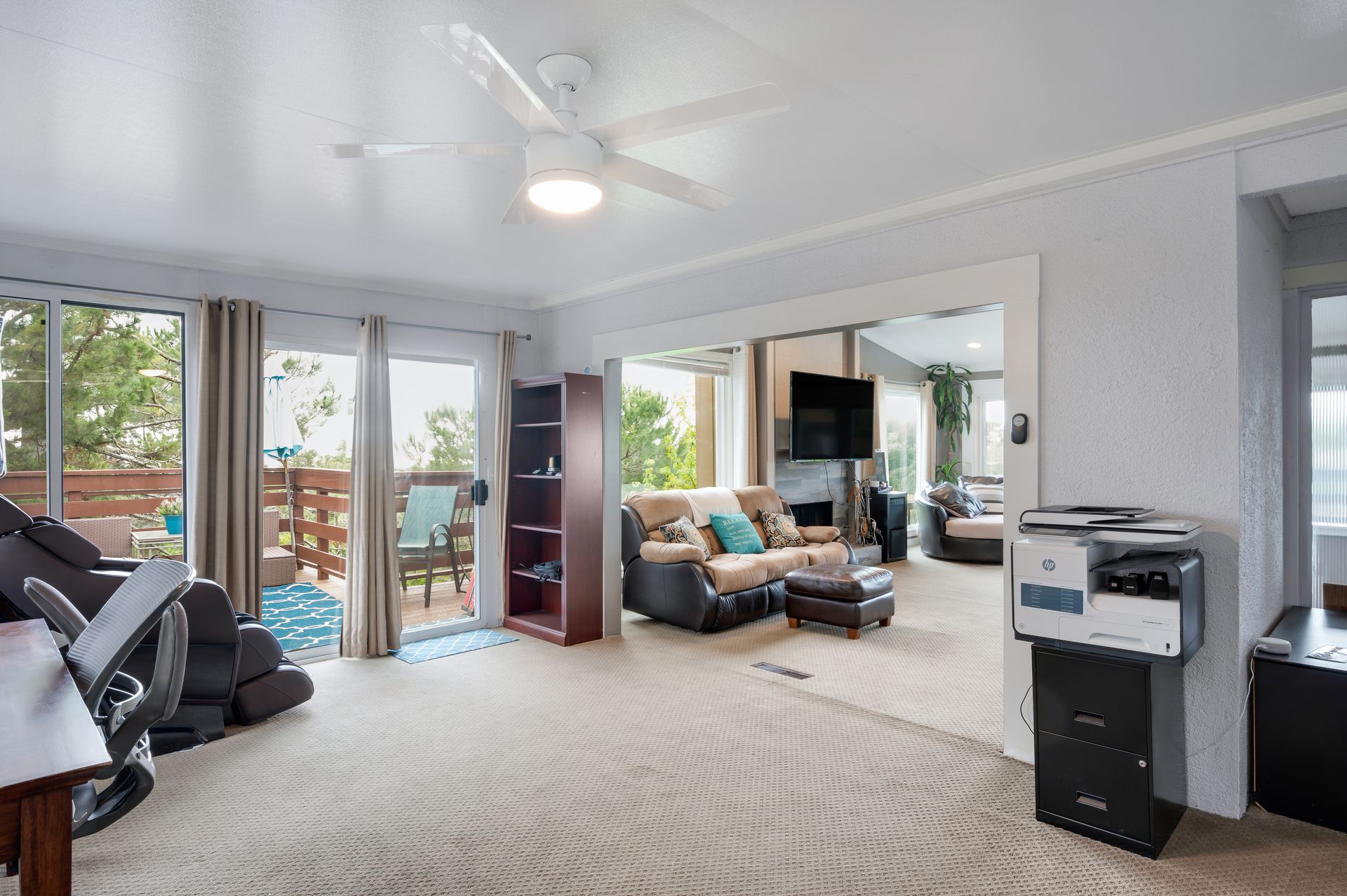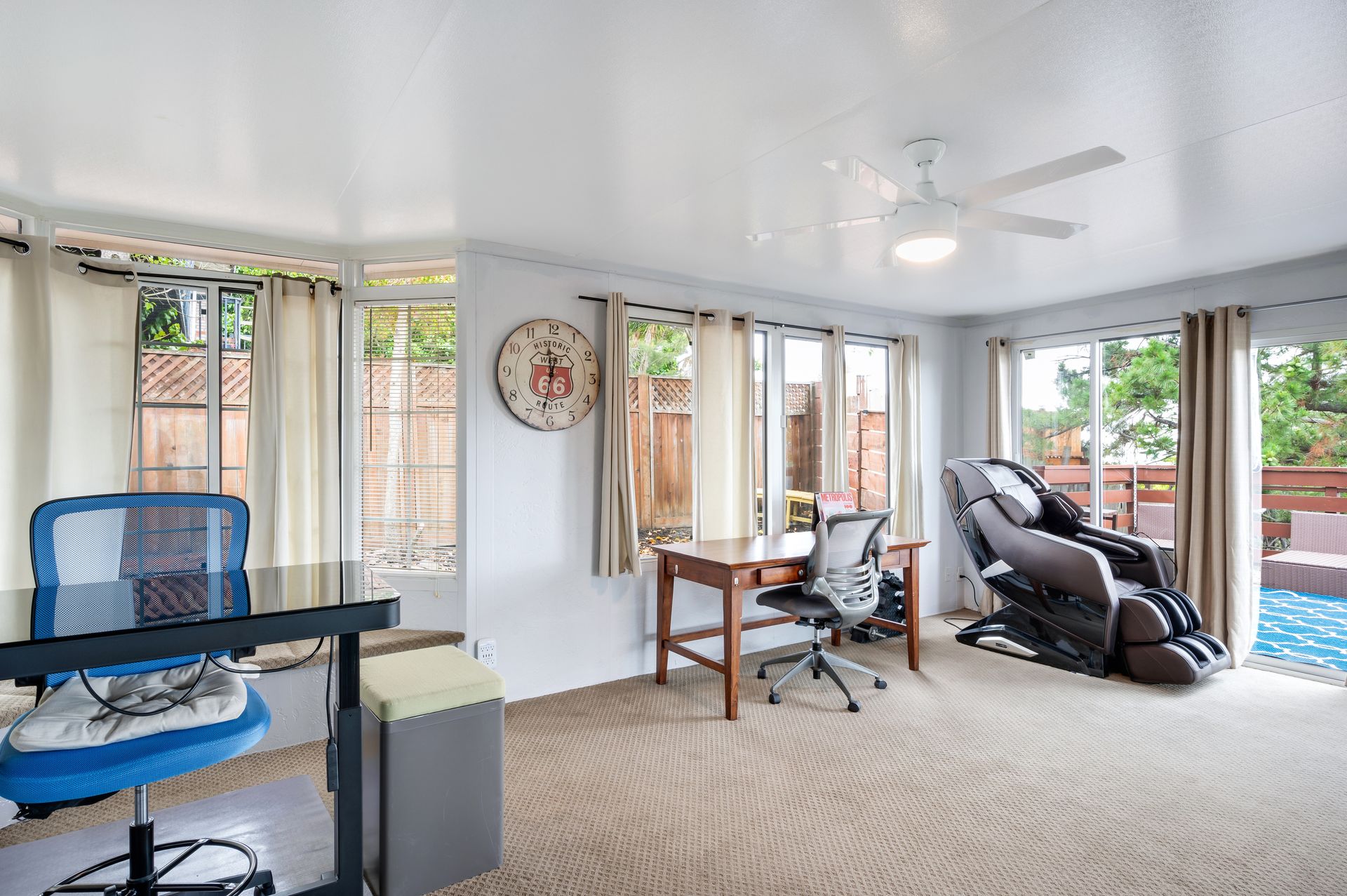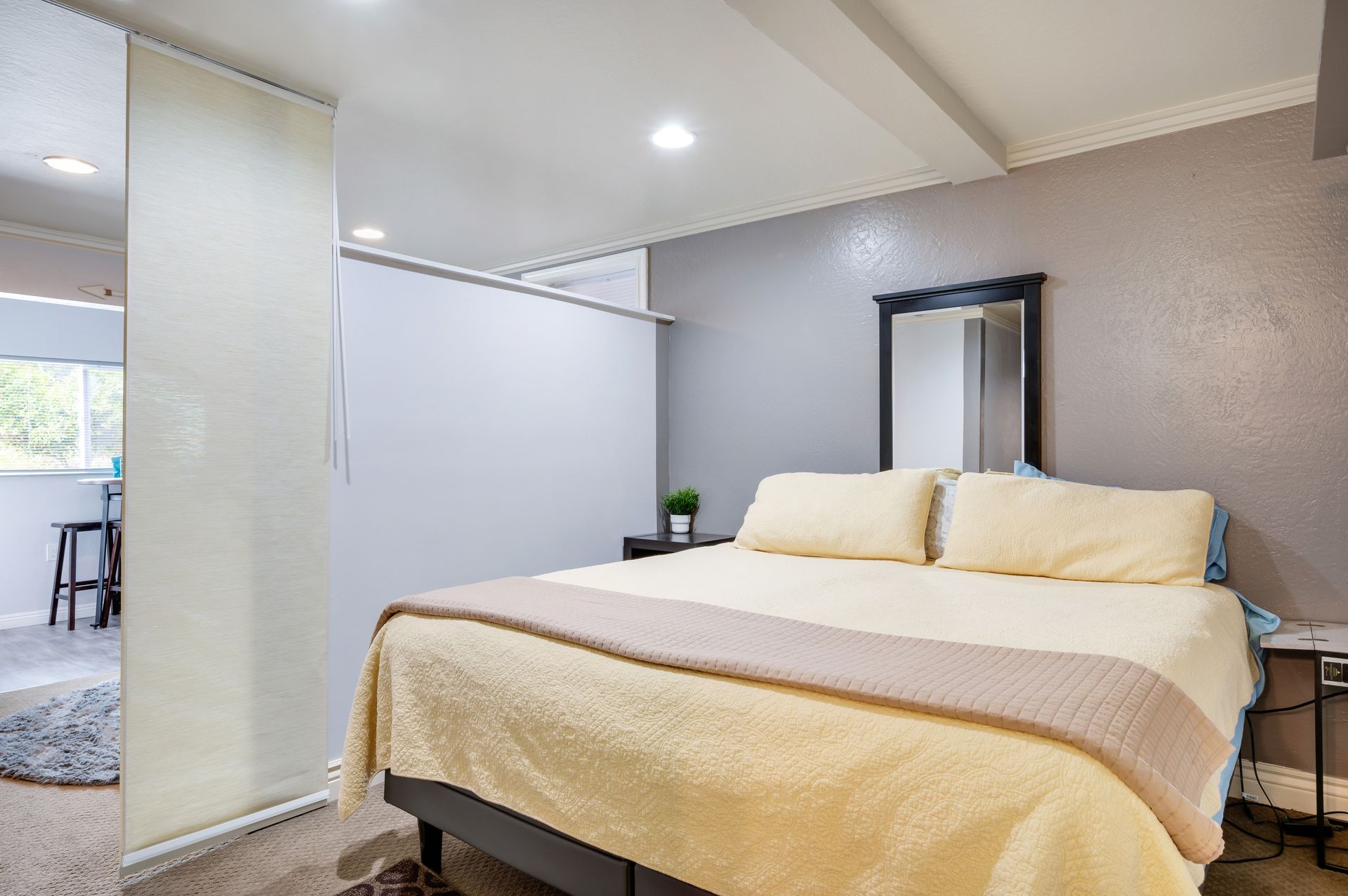 This easy indoor-outdoor living and a prime location make this the home you’ll never want to leave. Oversized windows in every room ensure full enjoyment of the outstanding views. On the main level, a spacious living room opens to a deck that runs the entire length of the home overlooking the backyard. A bonus room or home office adjoins the living room and features an additional deck, ideal for relaxing in the sun on weekend afternoons. The updated kitchen includes stainless steel appliances, an island with seating, plenty of counter space and a second slider leading out to the deck. An impressive staircase with stacked feature windows leads to the lower-level bedrooms, including a primary suite with a walk-in closet, double sinks and a glass-enclosed shower. At the opposite end of the hall, a spacious guest unit is completed with a full kitchen. Each of the two secondary bedrooms has a separate full bath. The outdoor livable space with its inviting pool and pergola-shaded spa will quickly become the primary gathering place for your everyone. Hayward Highland is a sought-after neighborhood with expansive views, close proximity to CSUEB and a variety of shopping and commute options.