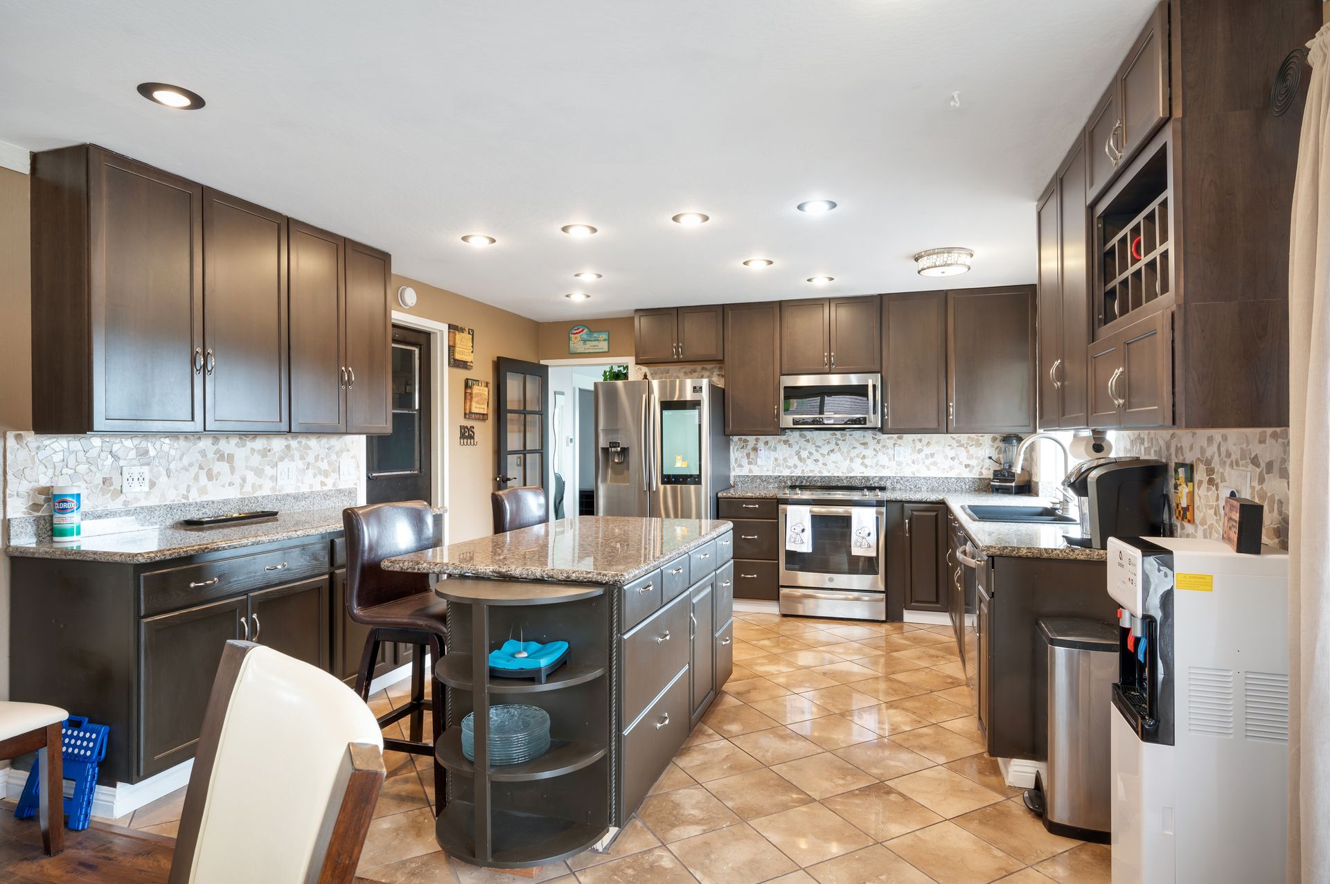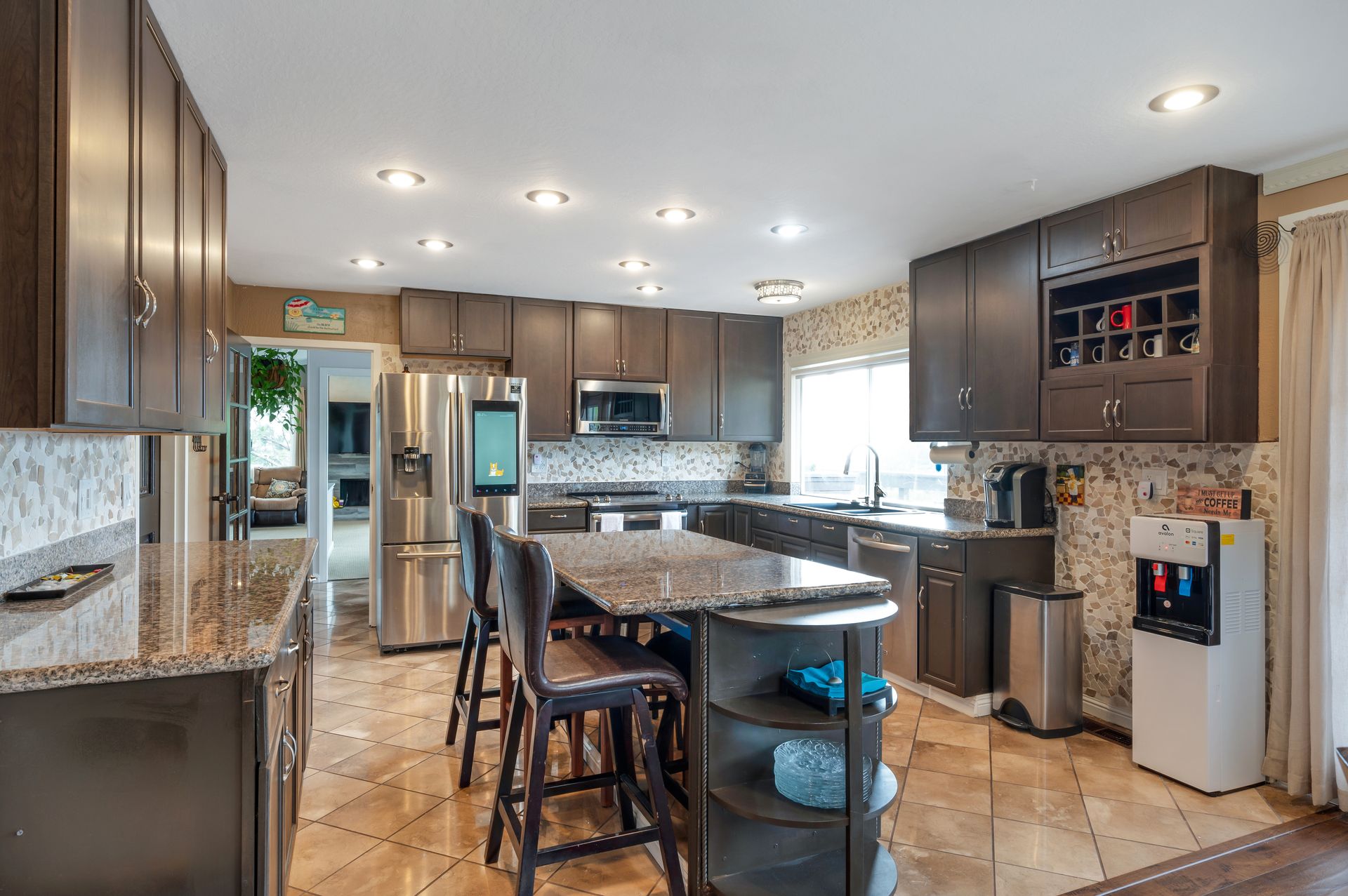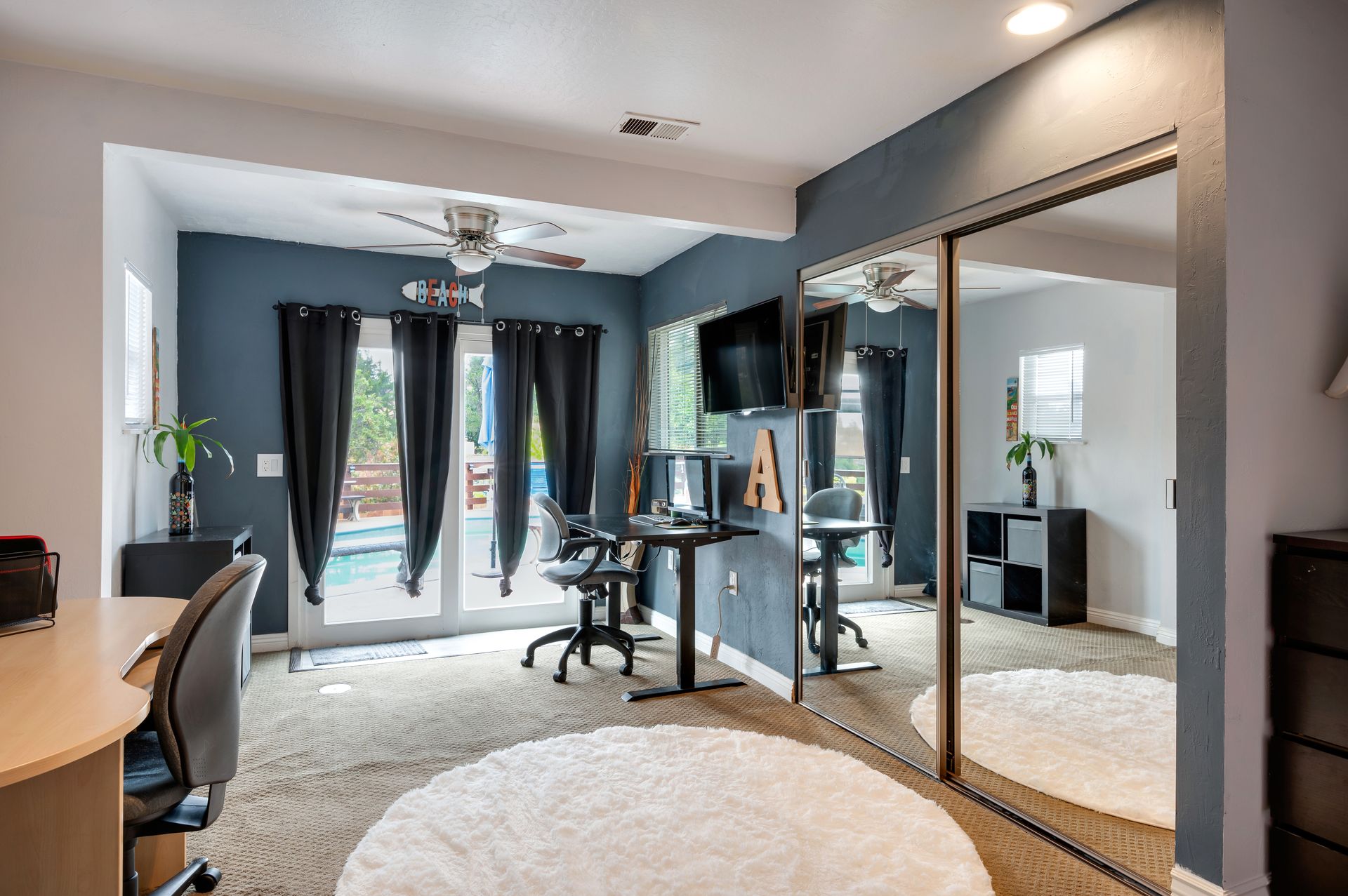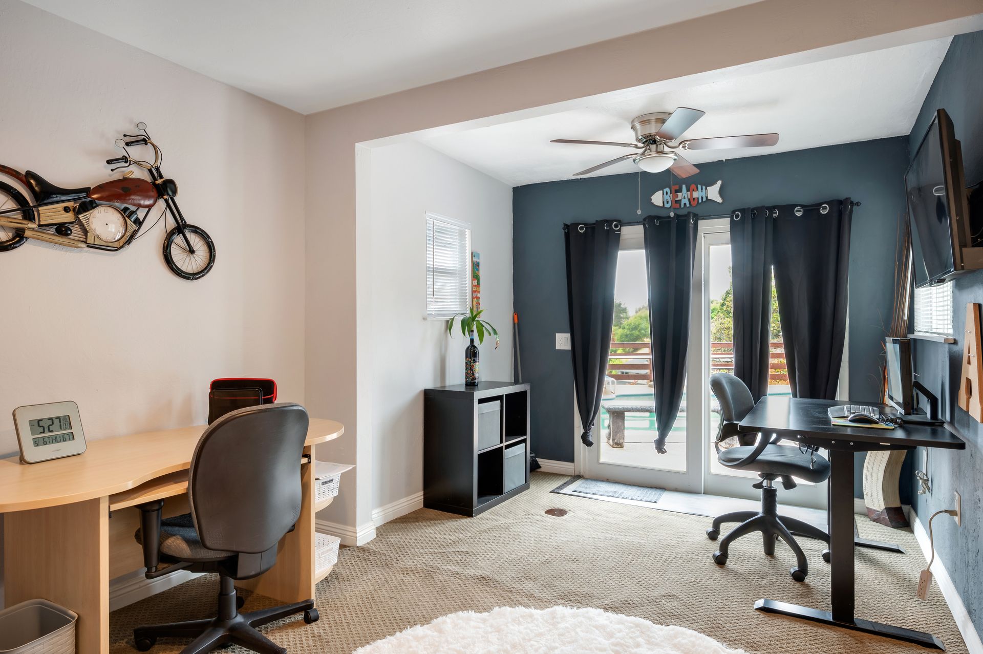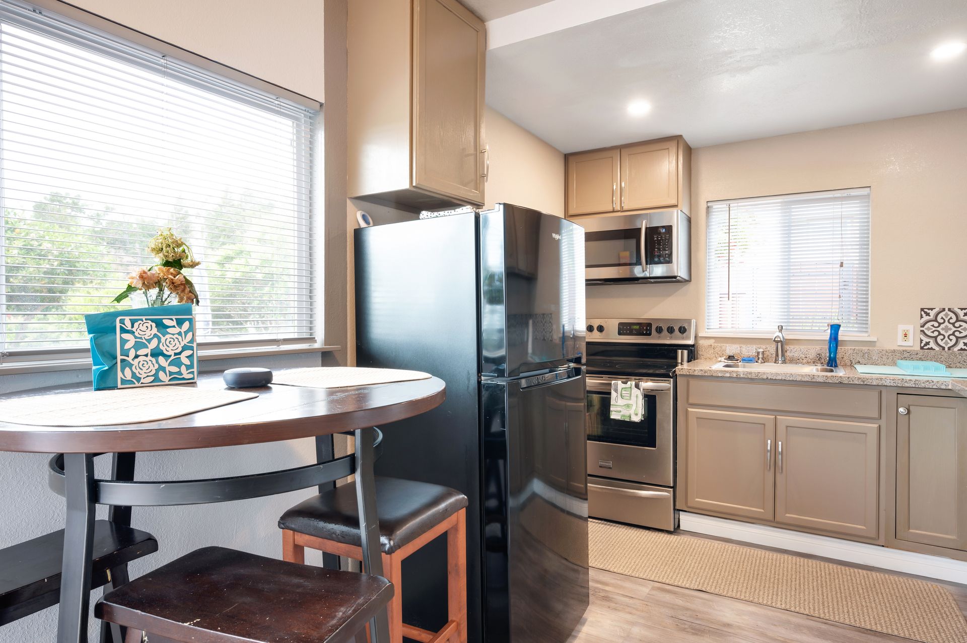 This easy indoor-outdoor living and a prime location make this the home you’ll never want to leave. Oversized windows in every room ensure full enjoyment of the outstanding views. On the main level, a spacious living room opens to a deck that runs the entire length of the home overlooking the backyard. A bonus room or home office adjoins the living room and features an additional deck, ideal for relaxing in the sun on weekend afternoons. The updated kitchen includes stainless steel appliances, an island with seating, plenty of counter space and a second slider leading out to the deck. An impressive staircase with stacked feature windows leads to the lower-level bedrooms, including a primary suite with a walk-in closet, double sinks and a glass-enclosed shower. At the opposite end of the hall, a spacious guest unit is completed with a full kitchen. Each of the two secondary bedrooms has a separate full bath. The outdoor livable space with its inviting pool and pergola-shaded spa will quickly become the primary gathering place for your everyone. Hayward Highland is a sought-after neighborhood with expansive views, close proximity to CSUEB and a variety of shopping and commute options.