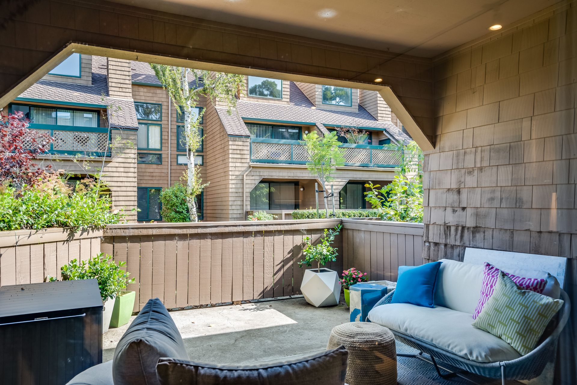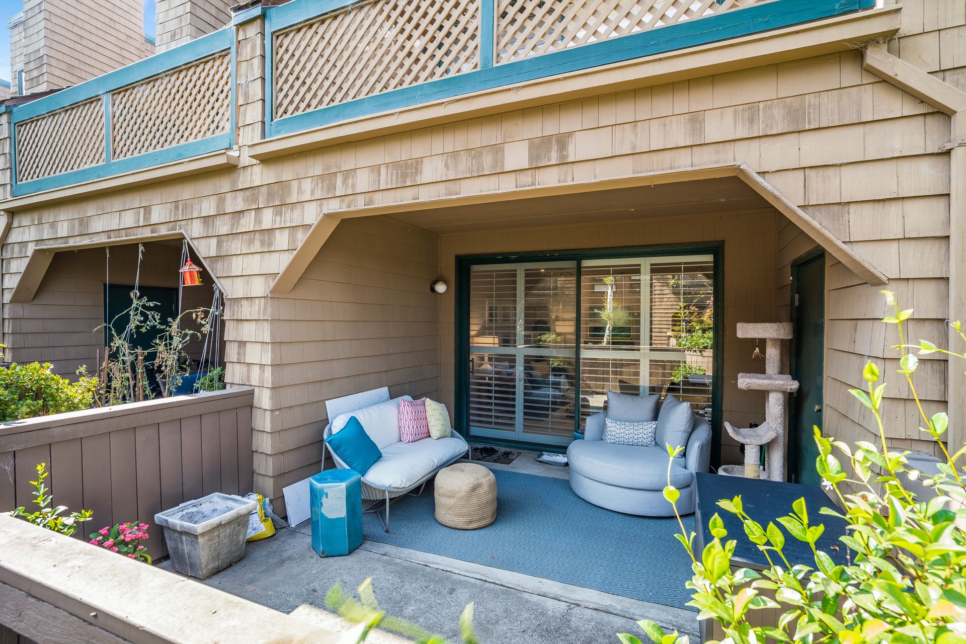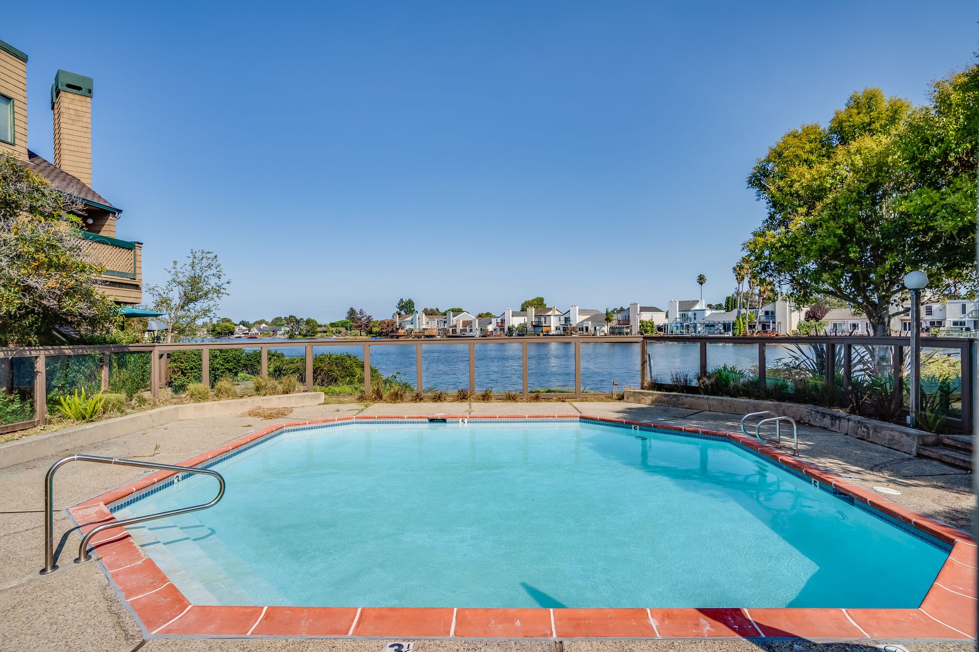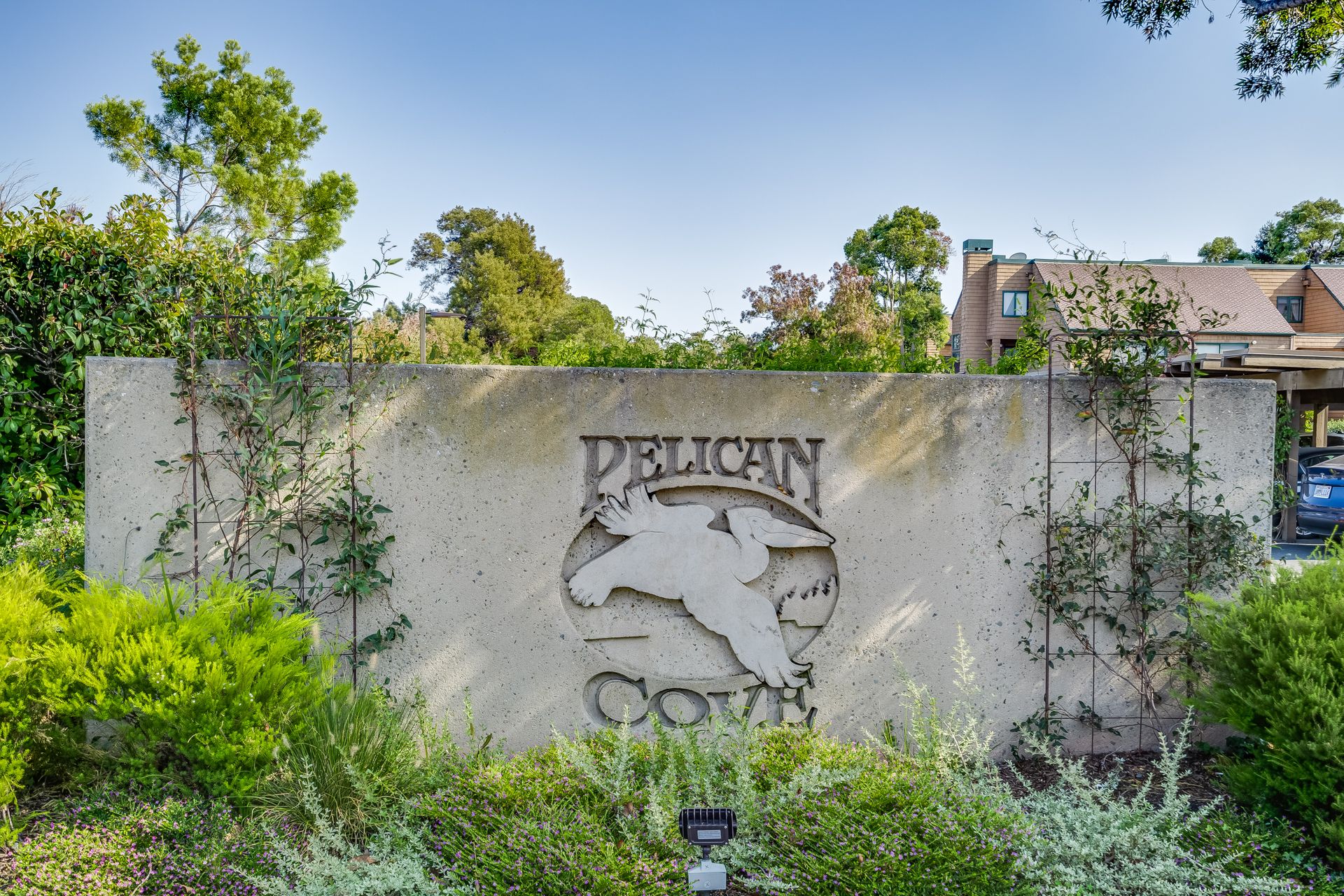 Stylish one bedroom and one bath ground floor condo at the desirable Pelican Cove complex in Redwood Shores. This showcase corner unit offers a private entrance, a spacious interior and two outdoor patios. Upon entry, you will be greeted by an open entertaining space with a living room, home office and dining room which are enhanced by an Art Deco-inspired glass chandelier, a marble fireplace and sliding glass doors leading to an oversized outdoor patio with storage. The tastefully remodeled galley style kitchen is highlighted by white cabinetry, quartz countertops and marble tile backsplash. The large bedroom features double closets and access to a second private patio. There is an updated bathroom with quartz countertop, a shower over tub, laundry closet and additional storage. Other features of the house include plantation shutters, one-car carport and plenty of guest parking. The HOA amenities include two pools, a hot tub, a club house, boat docks as well as kayak and bike storage. The condo is located near library, parks, trails, Nob Hill shopping center, a short commute to freeways 101 and 92 and close to top rated schools! This is a must see!