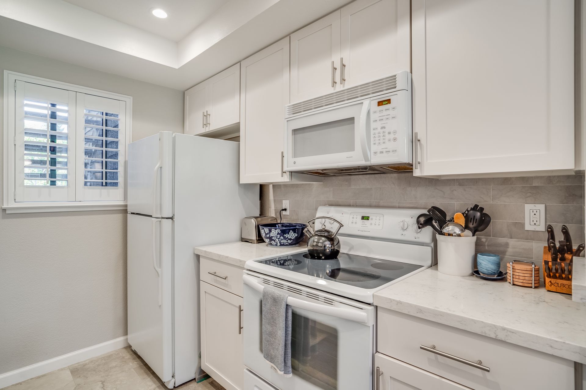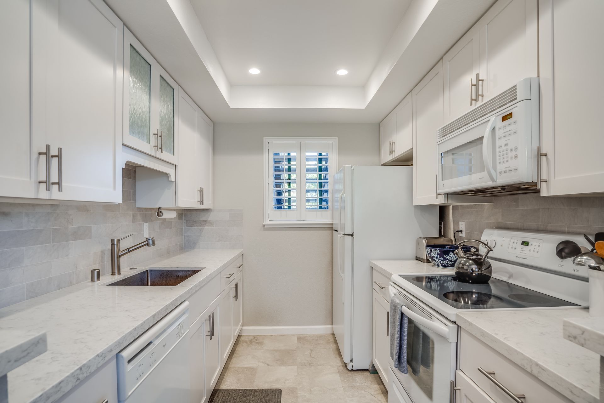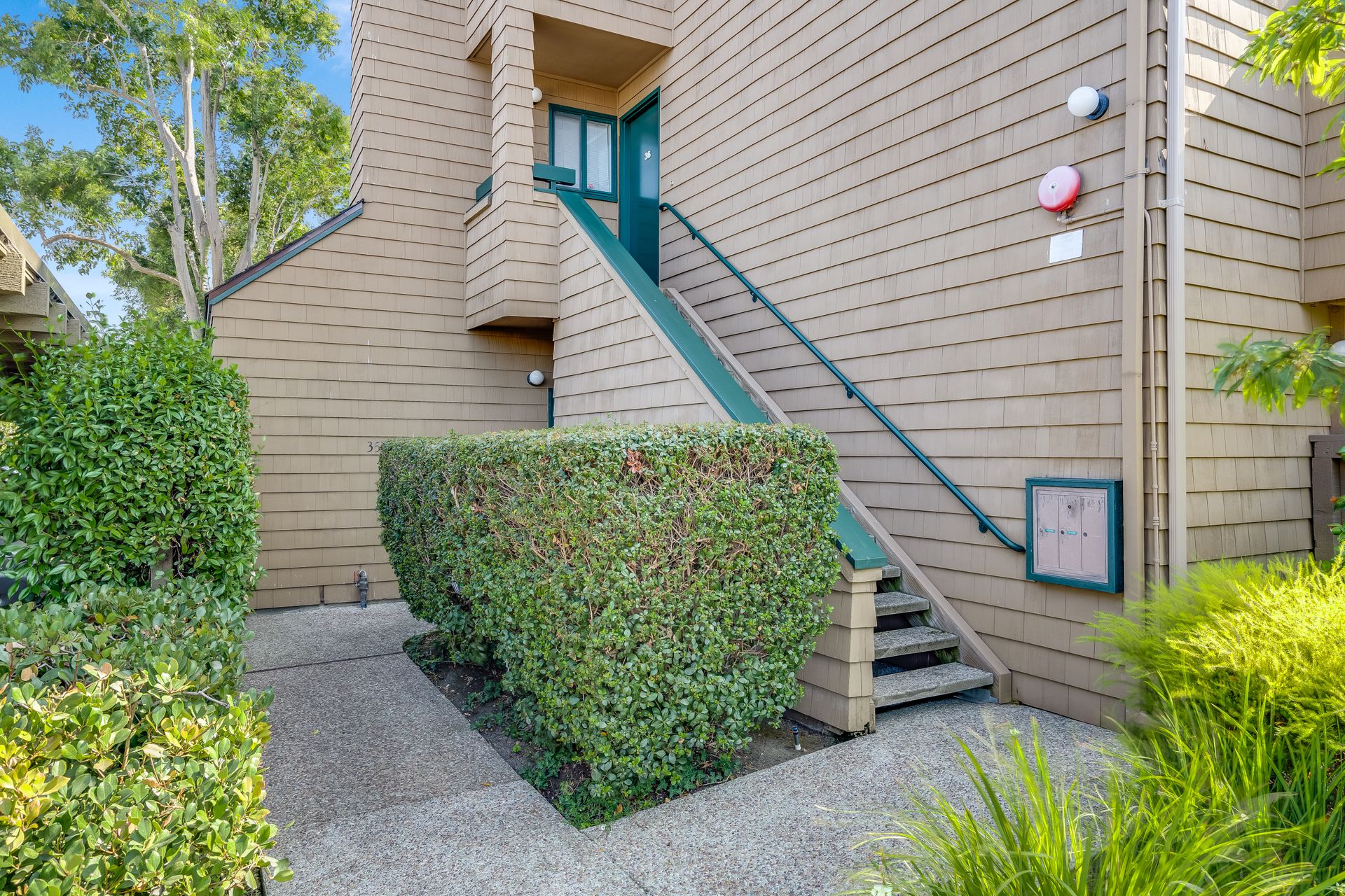 Stylish one bedroom and one bath ground floor condo at the desirable Pelican Cove complex in Redwood Shores. This showcase corner unit offers a private entrance, a spacious interior and two outdoor patios. Upon entry, you will be greeted by an open entertaining space with a living room, home office and dining room which are enhanced by an Art Deco-inspired glass chandelier, a marble fireplace and sliding glass doors leading to an oversized outdoor patio with storage. The tastefully remodeled galley style kitchen is highlighted by white cabinetry, quartz countertops and marble tile backsplash. The large bedroom features double closets and access to a second private patio. There is an updated bathroom with quartz countertop, a shower over tub, laundry closet and additional storage. Other features of the house include plantation shutters, one-car carport and plenty of guest parking. The HOA amenities include two pools, a hot tub, a club house, boat docks as well as kayak and bike storage. The condo is located near library, parks, trails, Nob Hill shopping center, a short commute to freeways 101 and 92 and close to top rated schools! This is a must see!