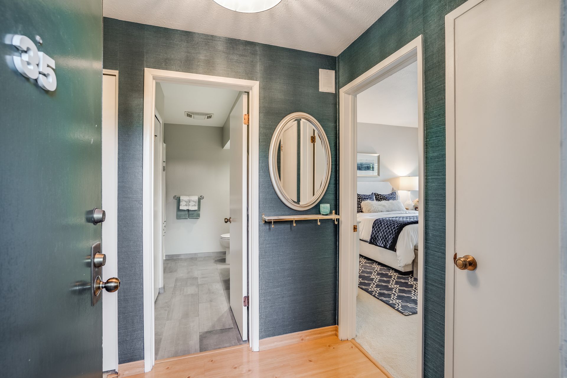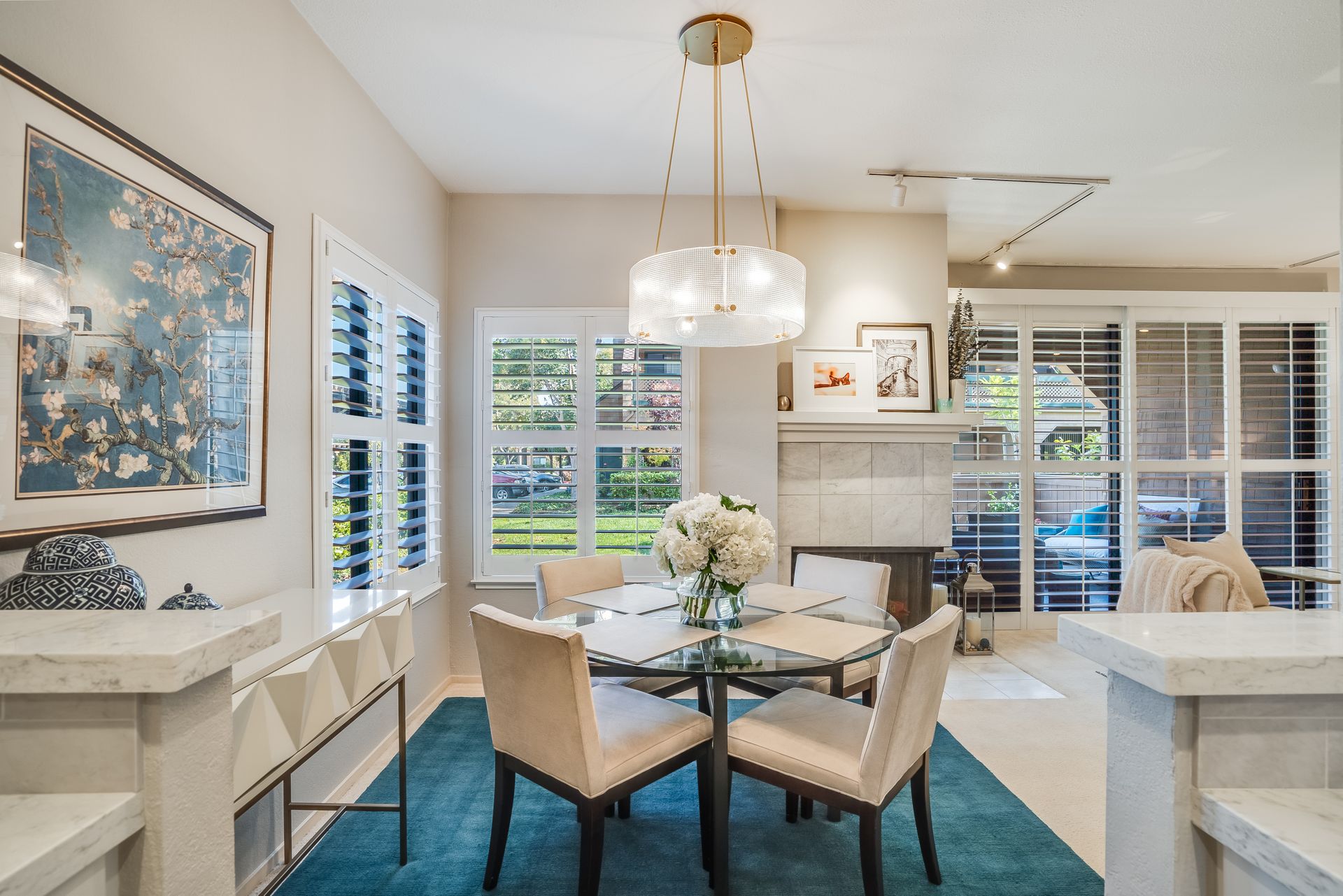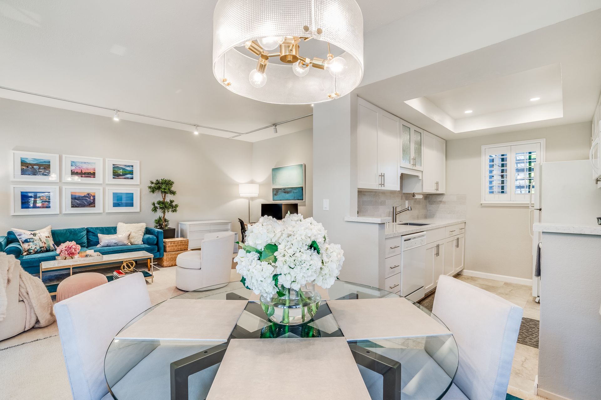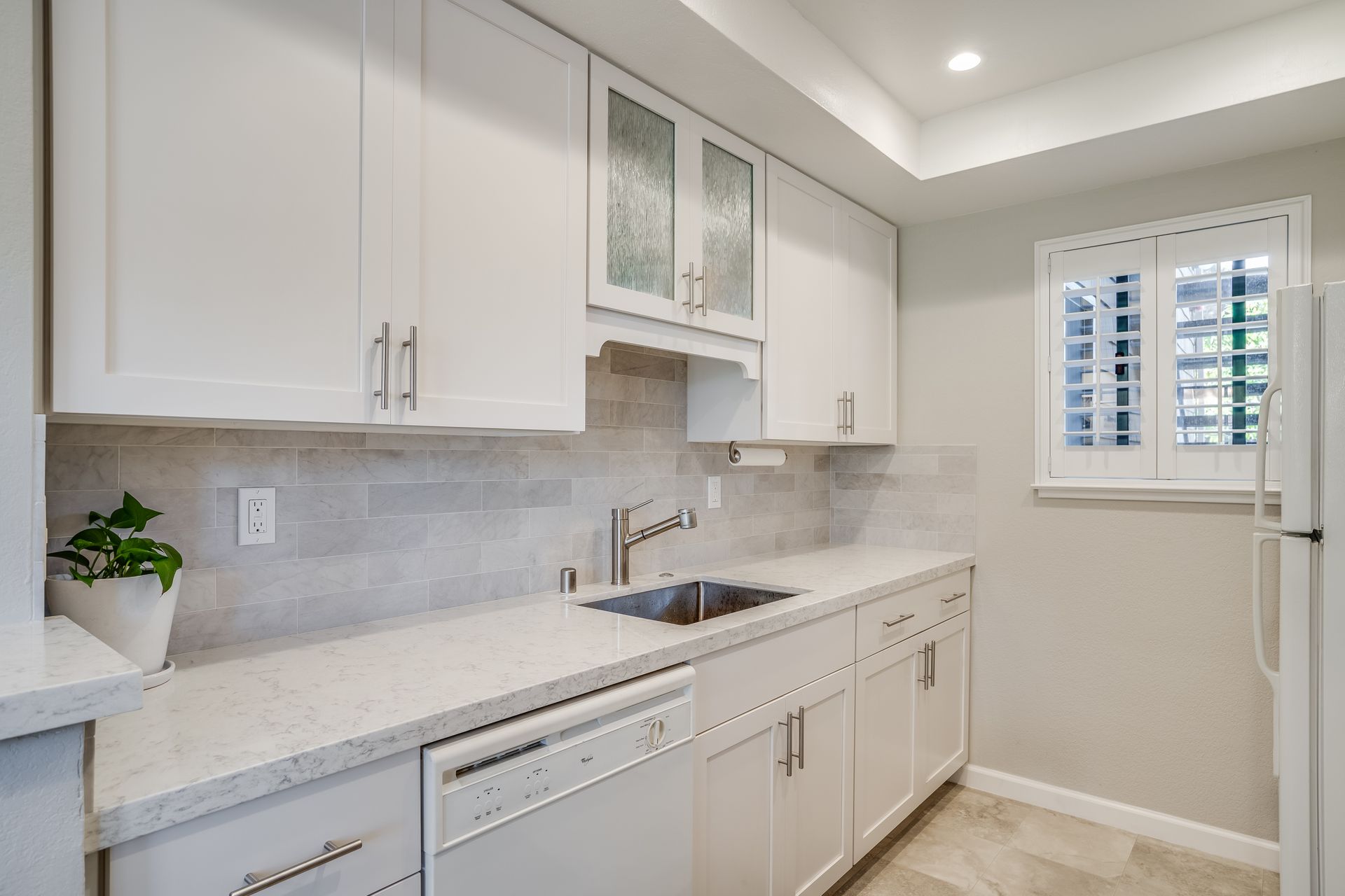Stylish one bedroom and one bath ground floor condo at the desirable Pelican Cove complex in Redwood Shores. This showcase corner unit offers a private entrance, a spacious interior and two outdoor patios. Upon entry, you will be greeted by an open entertaining space with a living room, home office and dining room which are enhanced by an Art Deco-inspired glass chandelier, a marble fireplace and sliding glass doors leading to an oversized outdoor patio with storage. The tastefully remodeled galley style kitchen is highlighted by white cabinetry, quartz countertops and marble tile backsplash. The large bedroom features double closets and access to a second private patio. There is an updated bathroom with quartz countertop, a shower over tub, laundry closet and additional storage. Other features of the house include plantation shutters, one-car carport and plenty of guest parking. The HOA amenities include two pools, a hot tub, a club house, boat docks as well as kayak and bike storage. The condo is located near library, parks, trails, Nob Hill shopping center, a short commute to freeways 101 and 92 and close to top rated schools! This is a must see!
