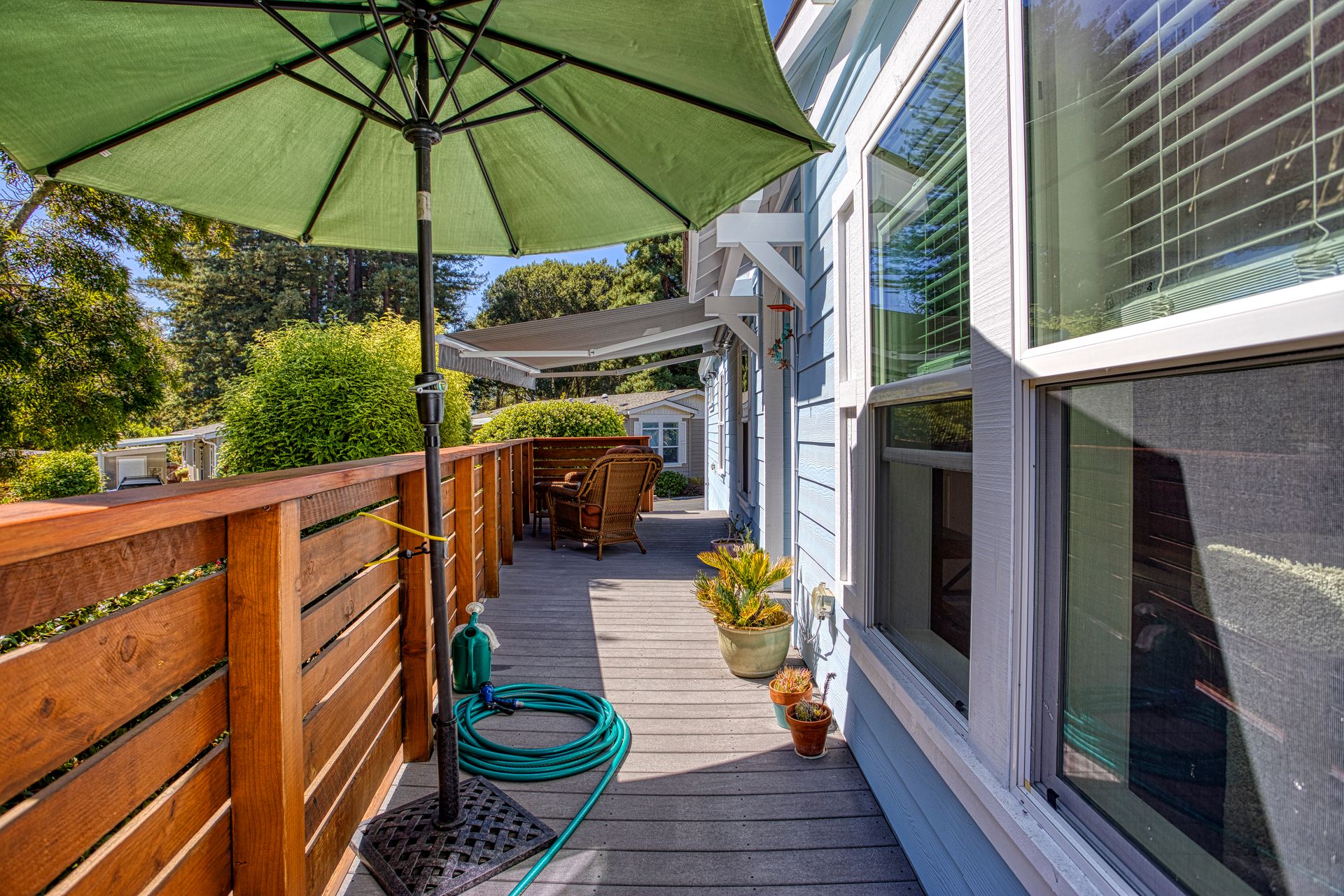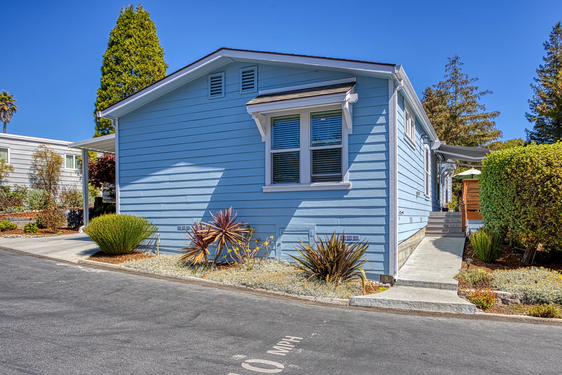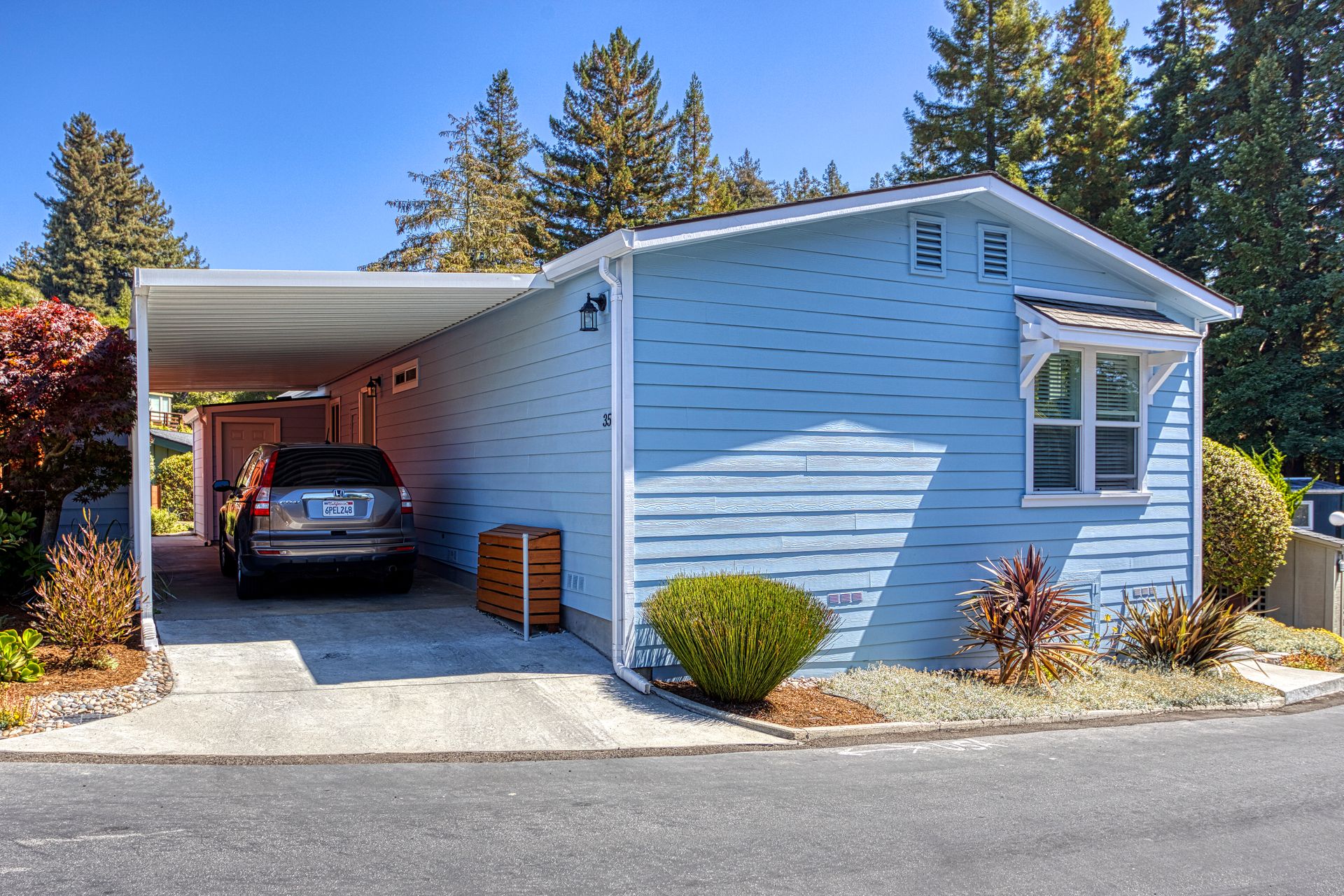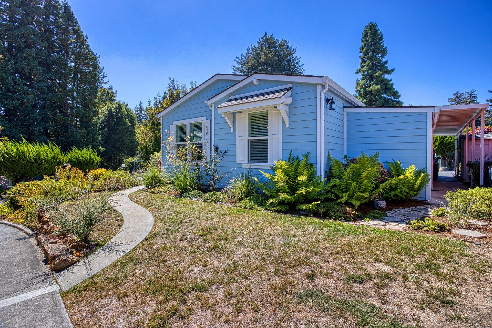 Here is a beautiful home in a wonderful senior Co-op park. The property is in a lovely setting. Entering on the sunny deck you have views of the redwoods and landscaped common area. The home has a spacious, open floor plan. The third bedroom, off the living area, is perfect for an office, library or sitting room. The master suite is bright and warm. There is a separate laundry room and storage building. Super well maintained home and surroundings. The park has a great clubhouse with a library, large kitchen and area to entertain, including a dance floor! Workout and billiard room too. Minutes from lovely Aptos Village where you can shop, dine and and do a bit of wine tasting. Easy access to the beaches of Rio Del Mar and Seacliff. Nisene Marks State Park is just around the corner. Come home to Aptos Knoll.