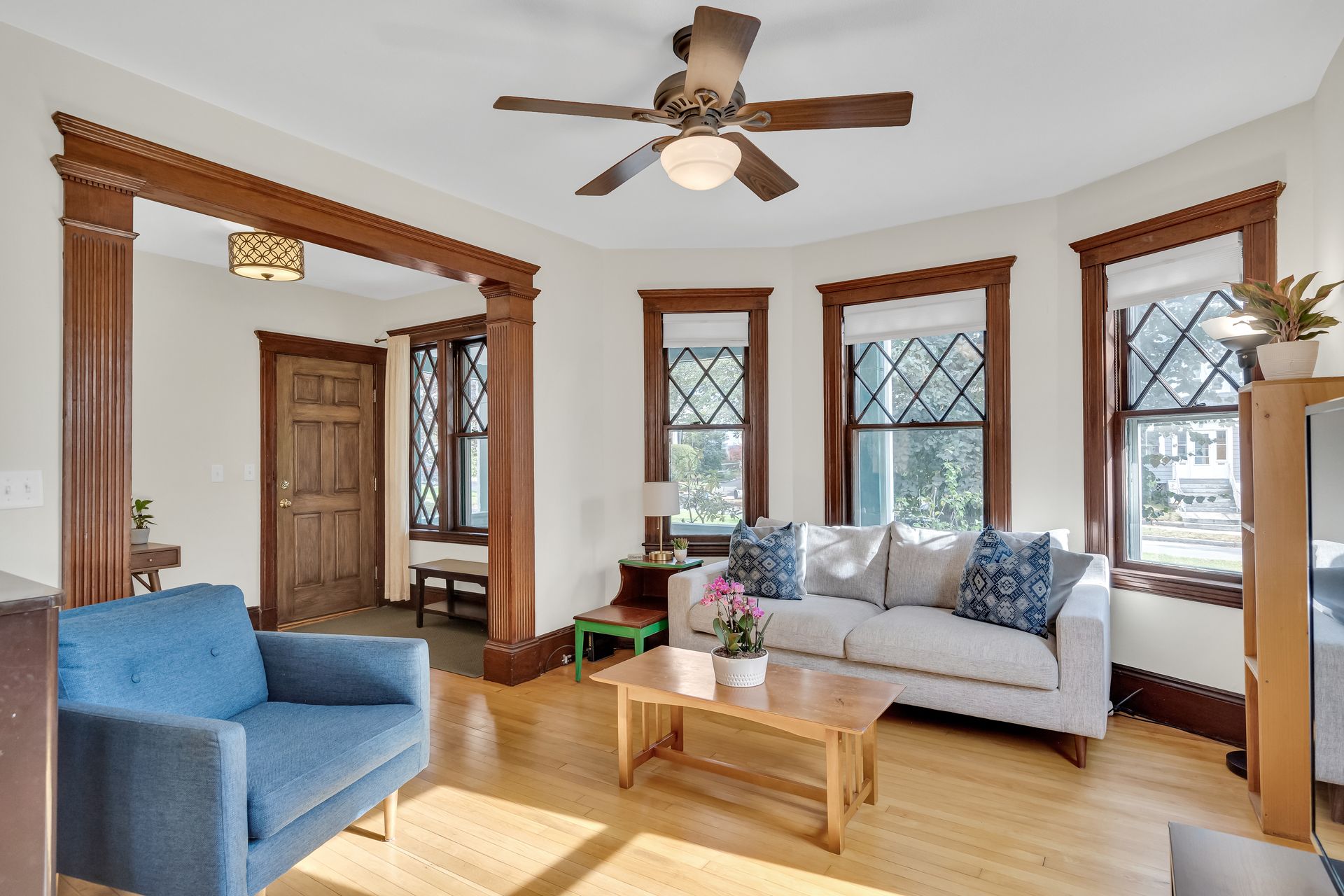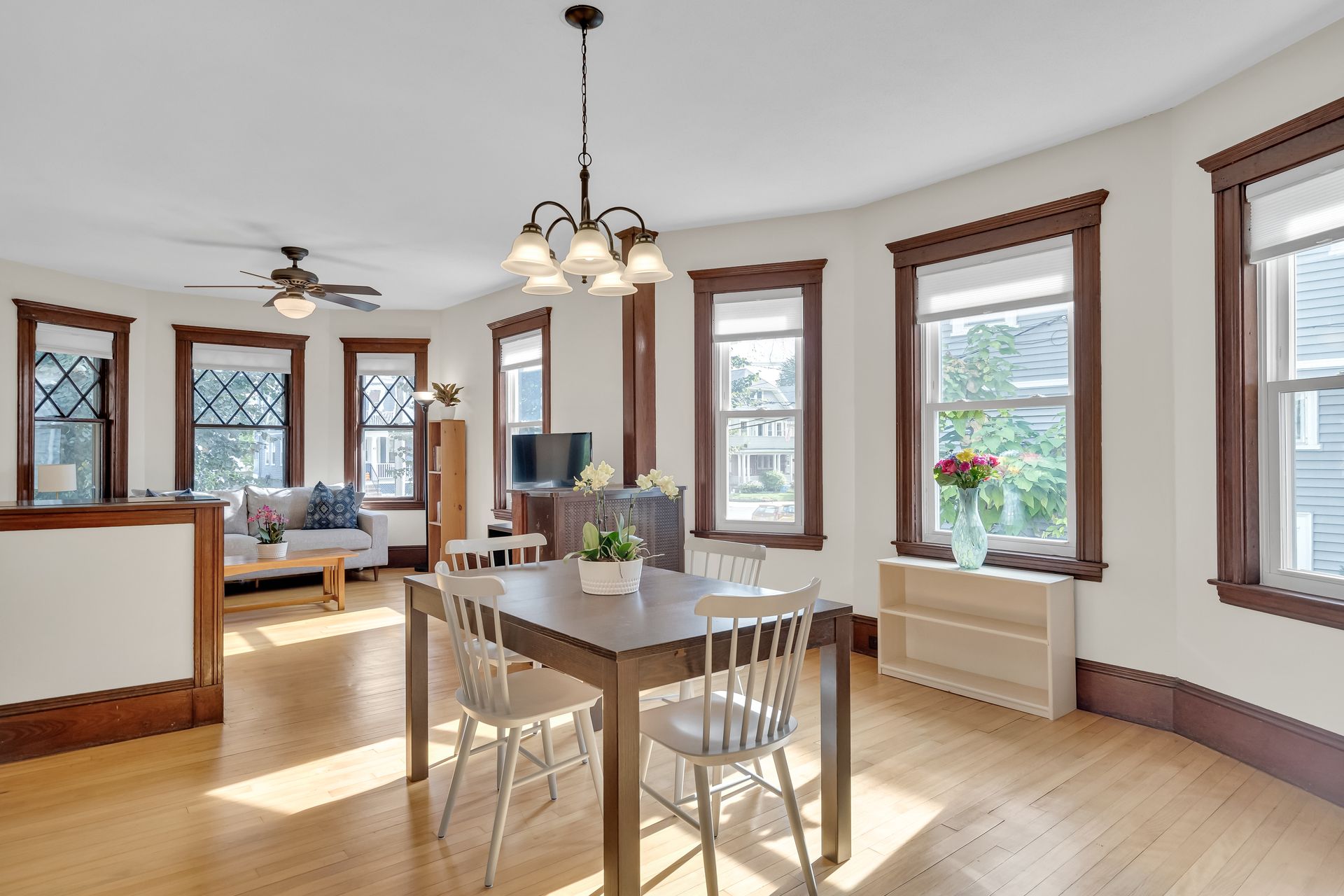 - Open Living and Dining rooms with brilliant Southeast light and bow windows adds a feeling of spaciousness.