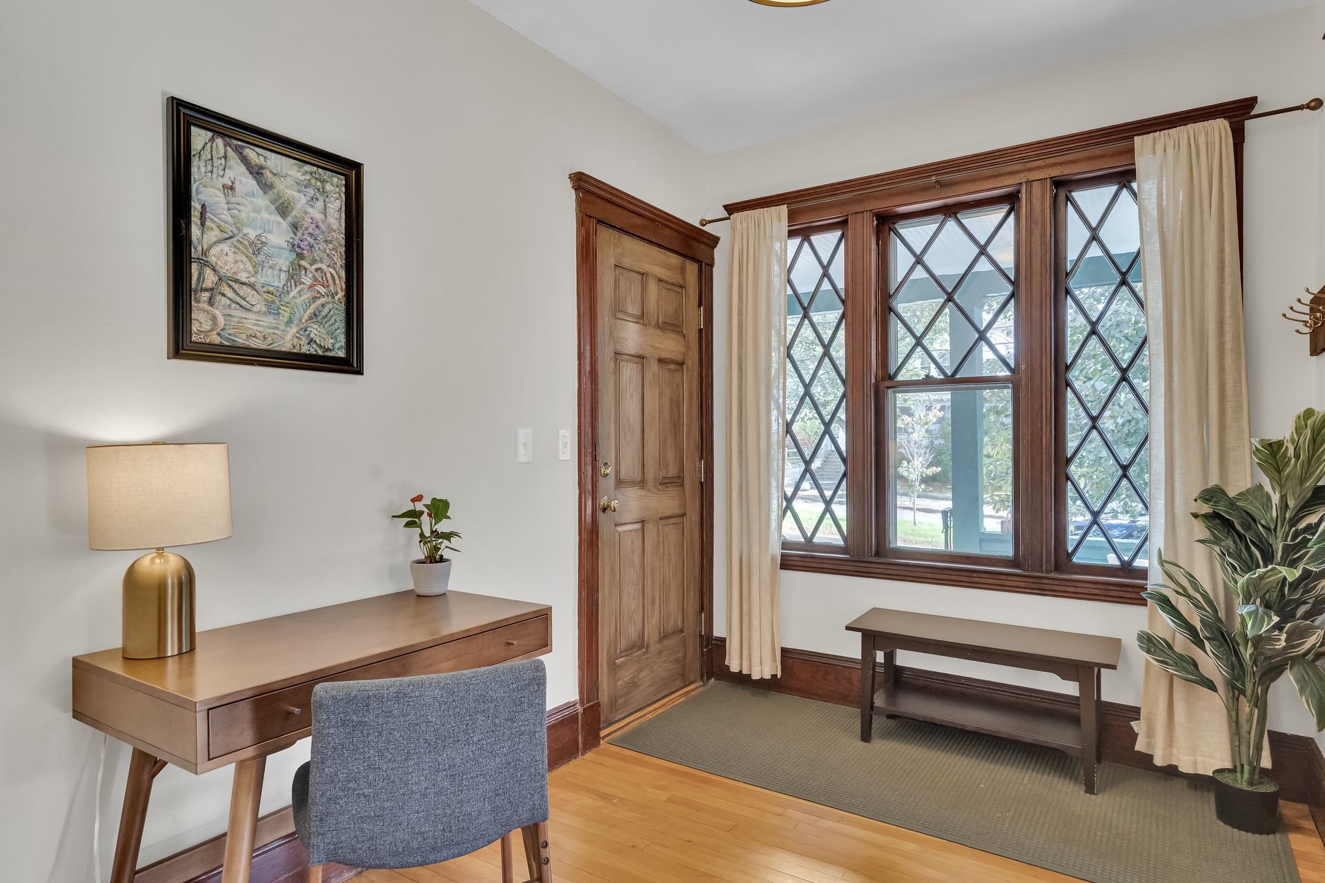 - Amazing lower-level space for laundry, walk-in closet, workspace, and walk-out door to side yard.