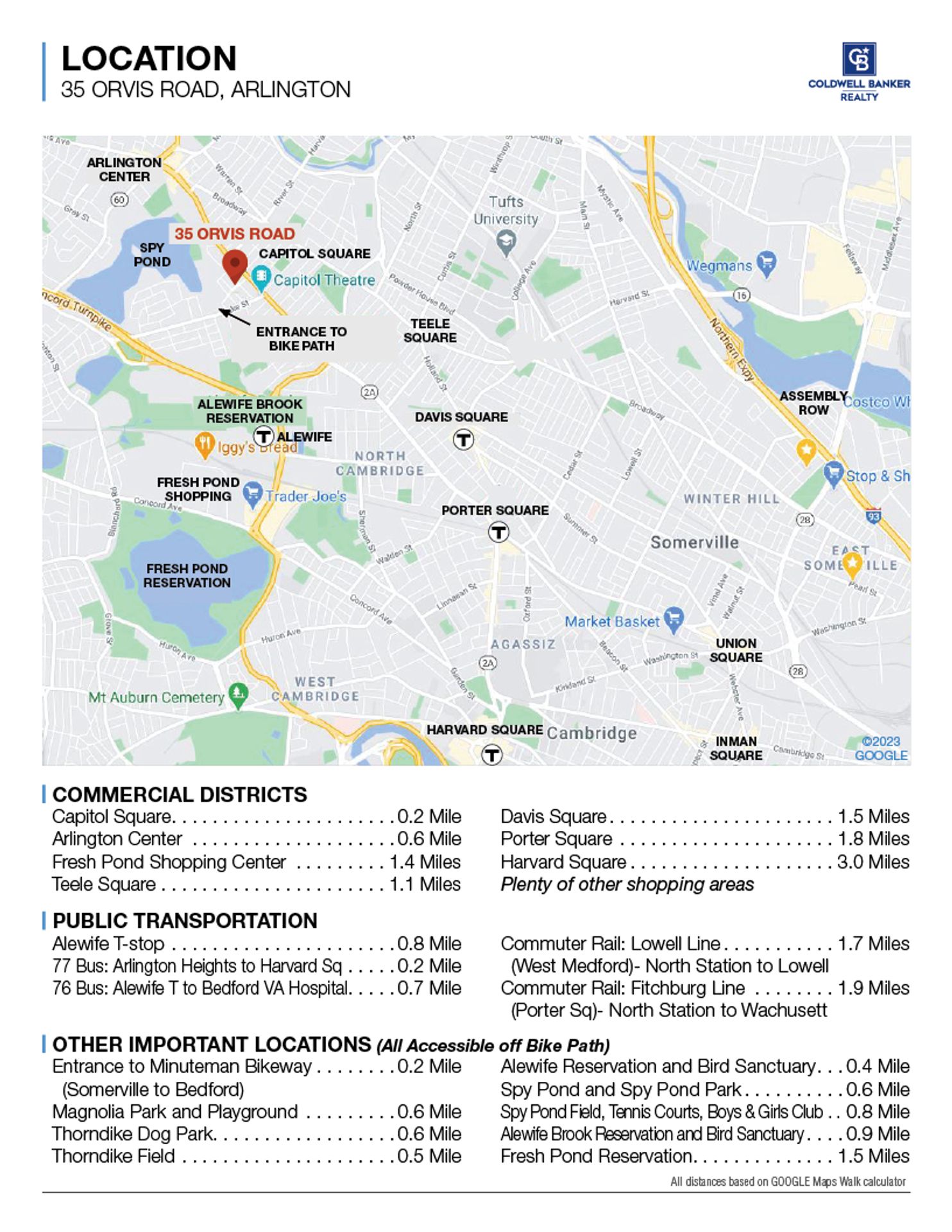 - Incredible location convenient to Bike Path, T-stop, parks, playgrounds, dog park, Capitol Square Commercial District, Spy Pond and more