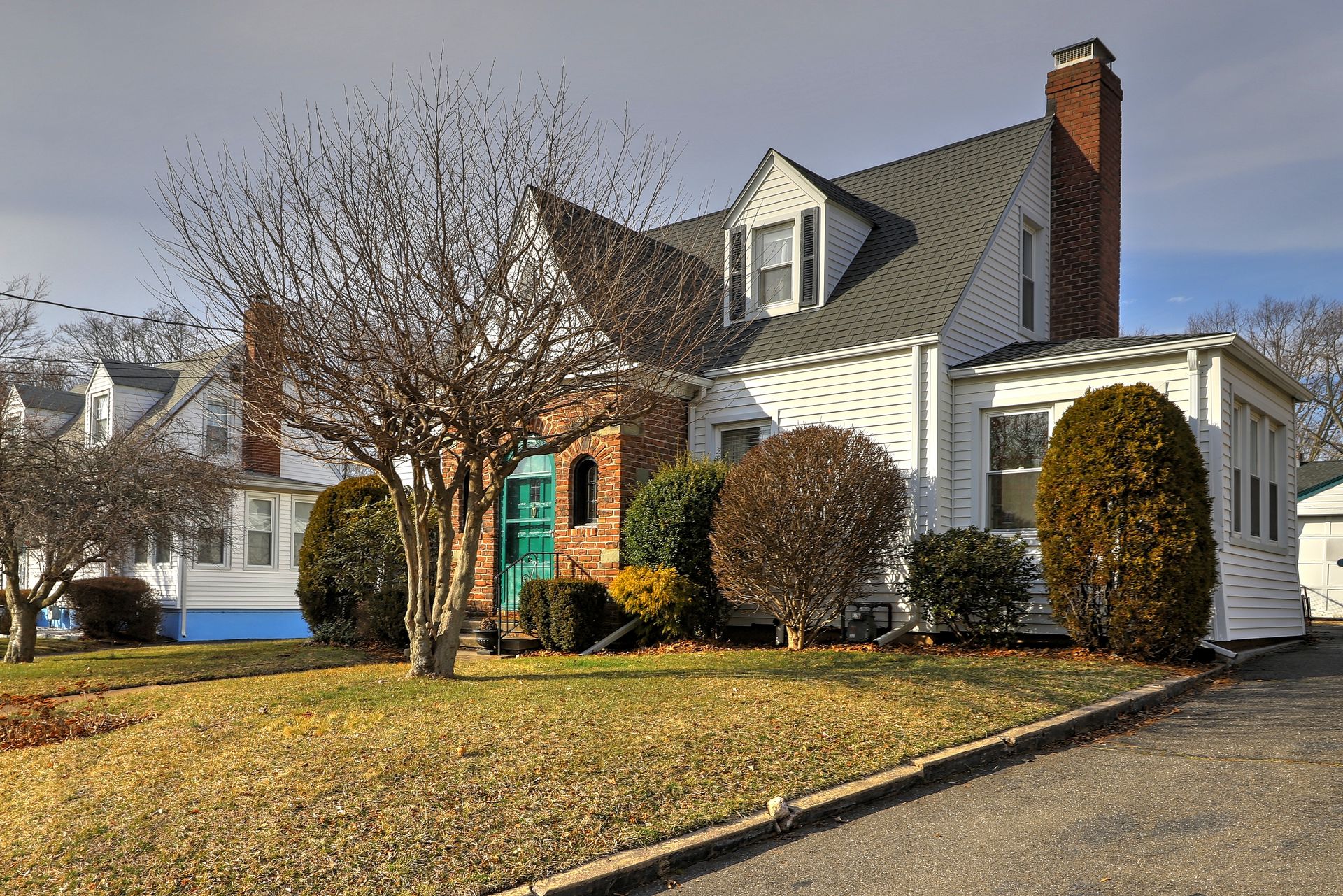 Storybook Cape with enchanting arched wood door and windows reminiscent of an English country cottage. This is one warm and inviting home, inside and out! Classic front to back living room with hardwood floors and woodburning fireplace. Bright sunroom through French door just the right size for zoom calls in your home office or would make a sweet playroom. Open floor plan with the formal dining room open to fun kitchen with painted backsplash and cork floors. Main level laundry for your convenience is nicely tucked away in back porch behind kitchen. Updated powder room with Victorian feel completes the first floor. Head on upstairs to find three bedrooms and a full bath with vintage tile and a newer pedestal sink - this home just oozes charm and character throughout! Looking or a little more space? Unique railings frame the way to the unheated lower level (app 300 sf) which has been used over the years as extra hang out space. Detached garage useful for storage AS IS. Come spring, you will enjoy your easy care perennial gardens in your private back yard. Close proximity to Tweed New Haven Airport.