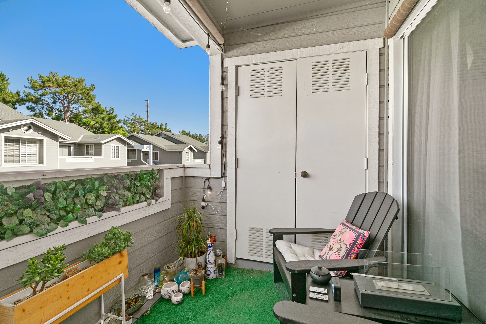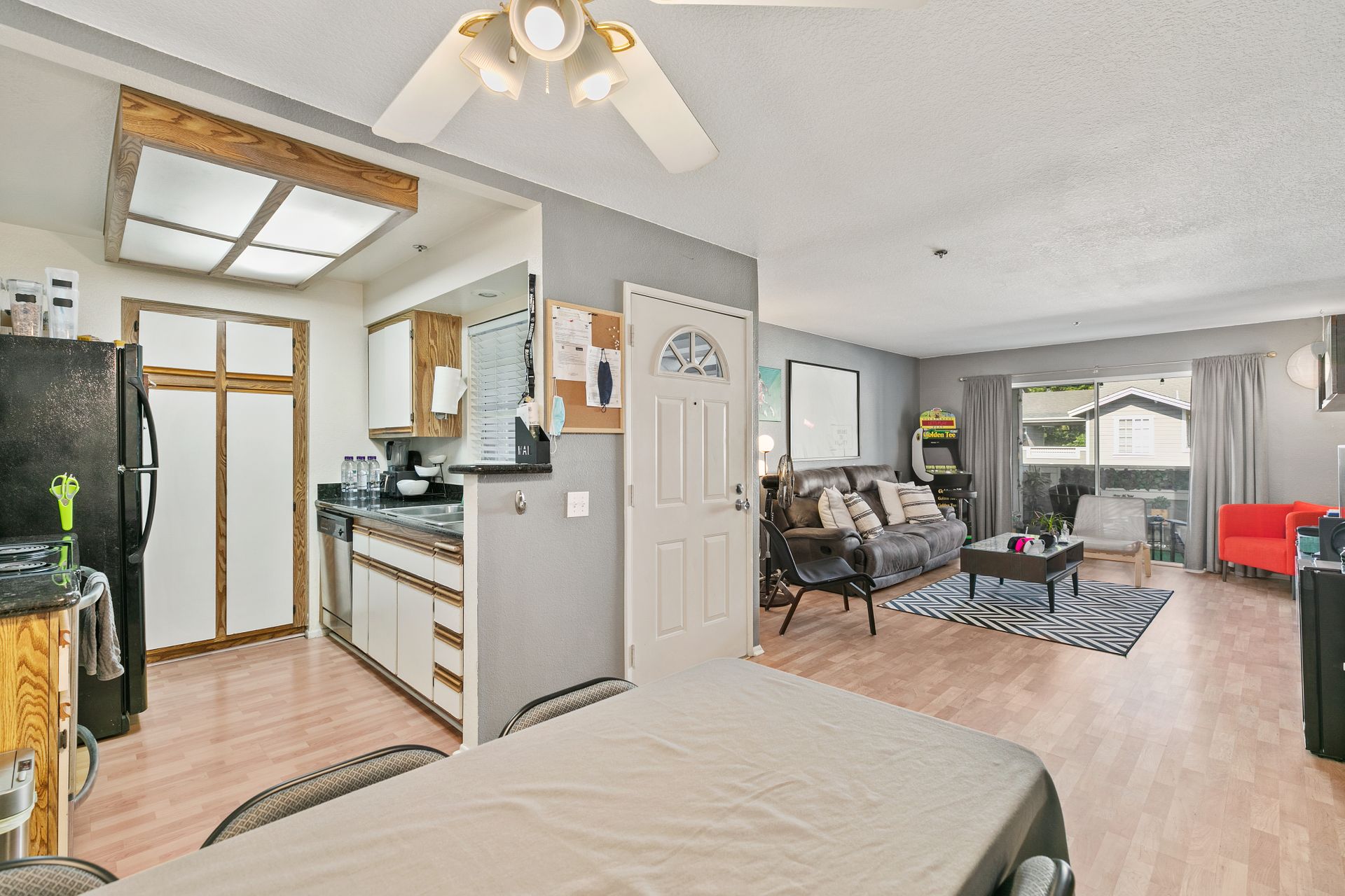Highlights include two spacious bedrooms with an open floor plan that overlooks a private balcony. Amenities include inside laundry and access to a detached garage.