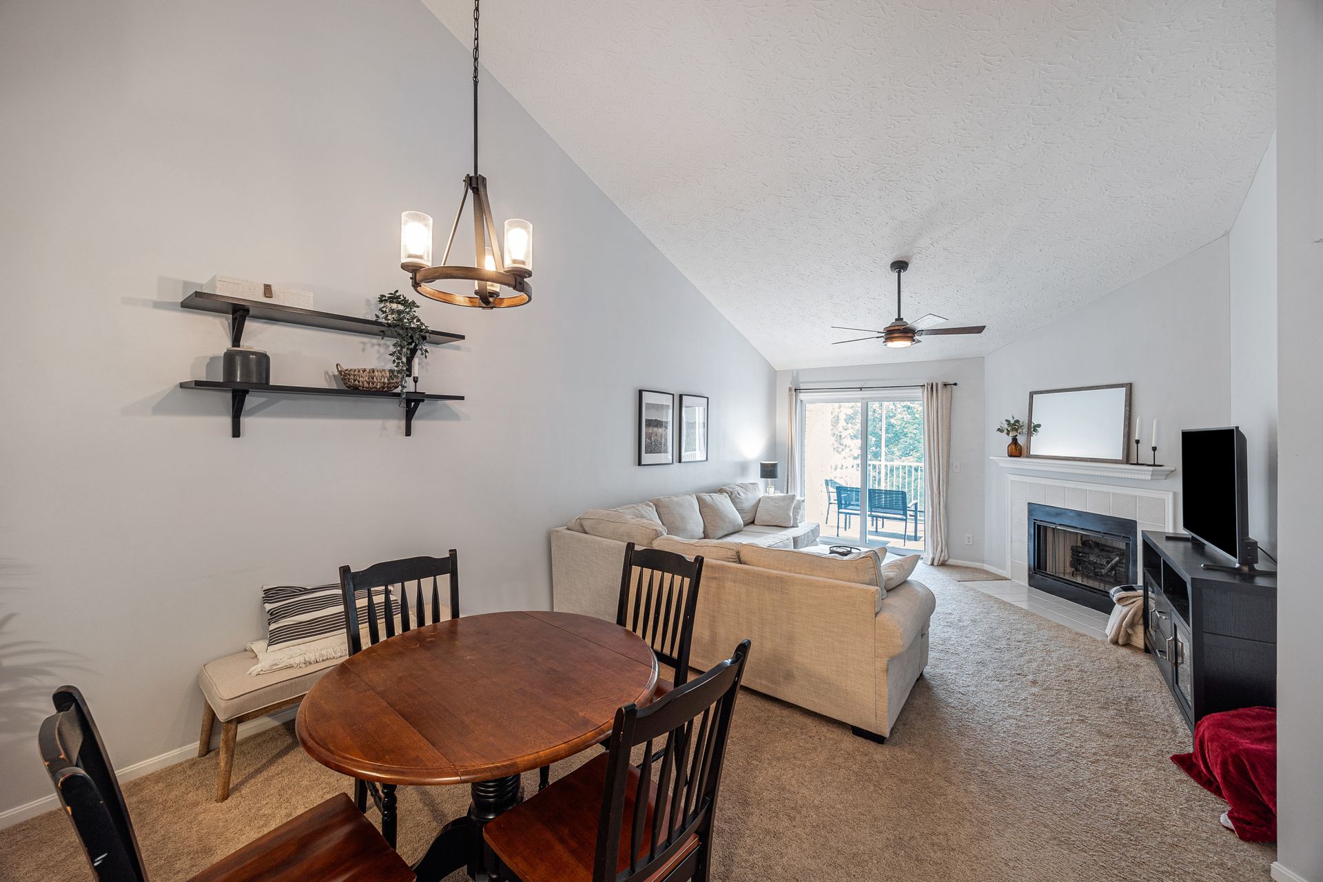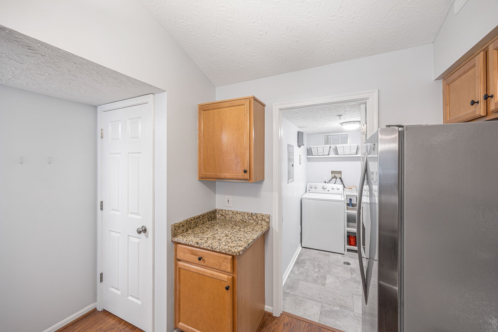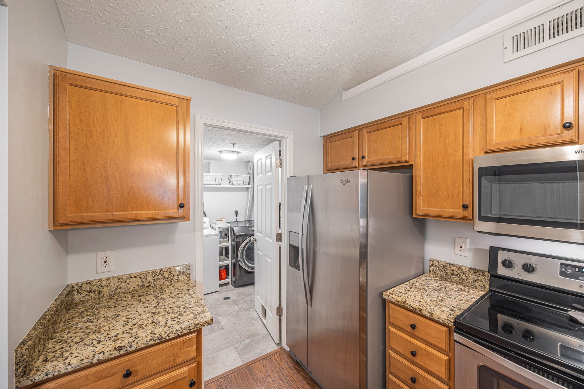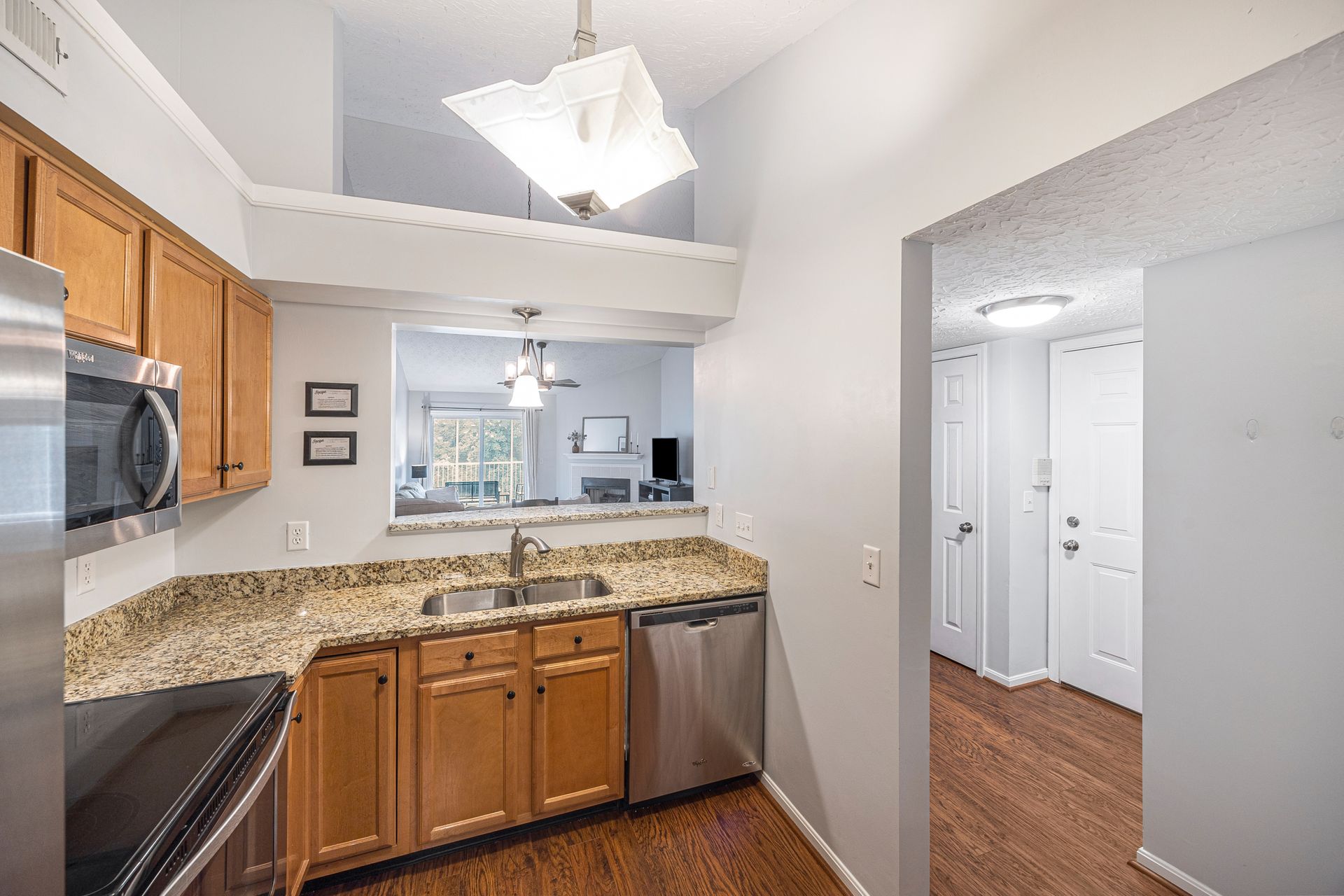 Great top floor condo with vaulted ceilings and spacious floor plan. Fully equipped kitchen with stainless steel appliances and granite counters. Attached garage with driveway parking for second car. Newly installed HVAC 2023 and windows in 2021. Private screened porch looking into the woods. Large primary suite with adjoining bathroom and large walk-in closet. Open living room with wood-burning fireplace. The laundry room includes a washer and dryer. Fresh paint. Great community with pool, clubhouse, fitness room and trails. Easy maintenance-free living. Convenient to I-275 and the Old Milford business district.