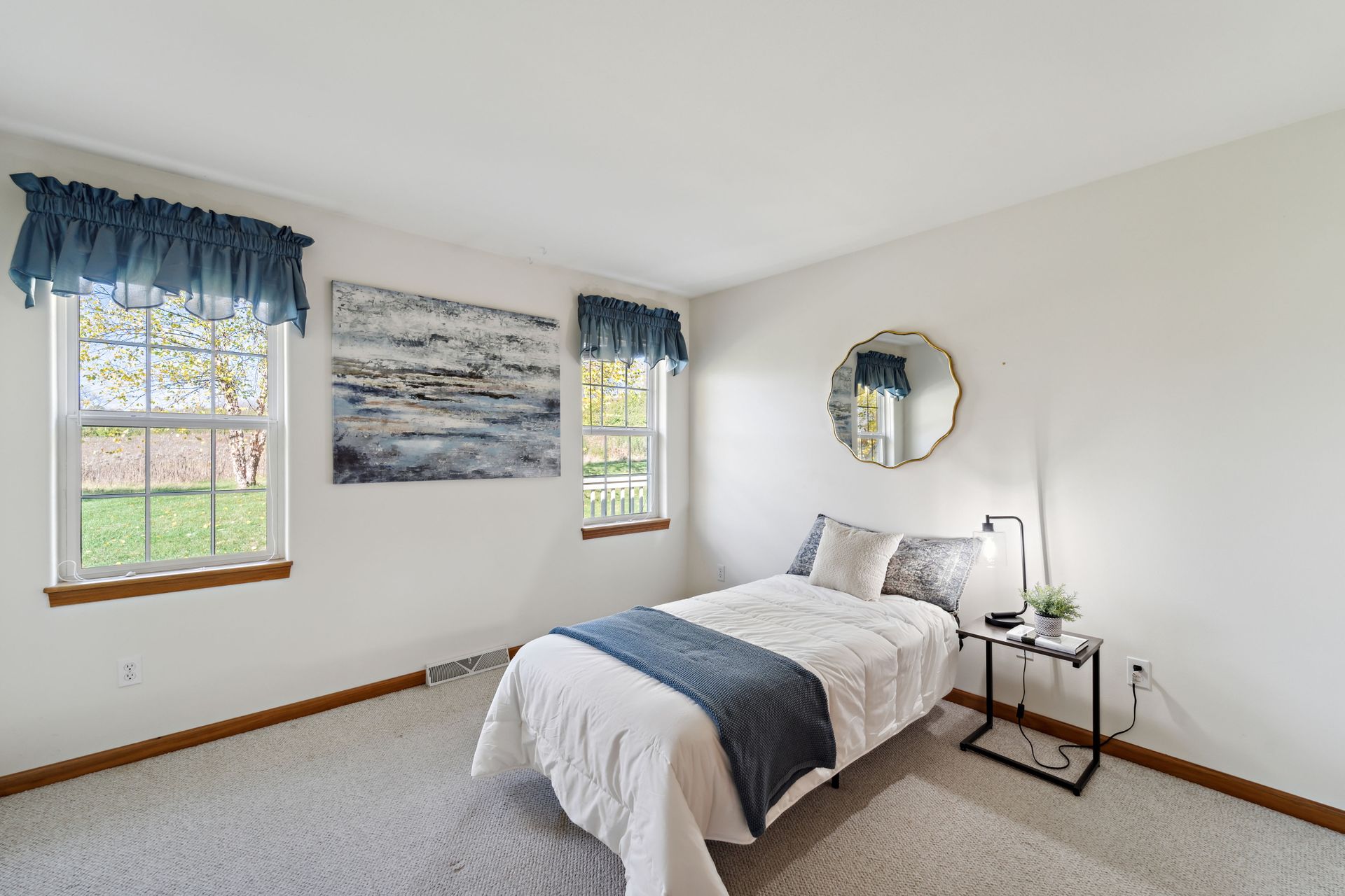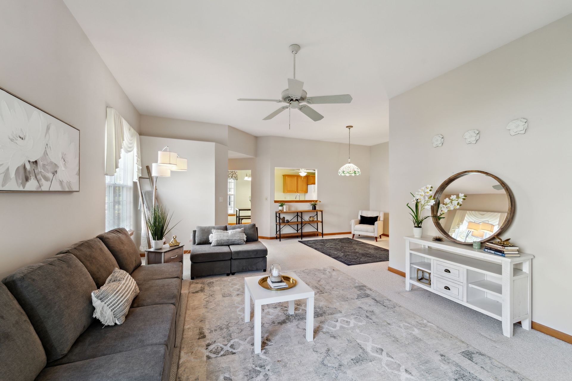 Welcome to your dream home at River's Crossing Condominiums! This charming ranch-style condo features two spacious bedrooms and two and one-half baths, perfectly blending comfort and convenience in a serene, nature-inspired setting. Step inside to a sun bathed interior equipped with vaulted ceilings. A delightful four-season room leads to your private deck, perfect for morning coffee or summer barbecues. The primary suite boasts an en-suite bathroom and walk-in closet, while the second bedroom is versatile for guests or a home office. Numerous mechanical upgrades ensure energy efficiency and peace of mind. Enjoy nearby parks and trails, while shopping and dining options are just minutes away. Come see for yourself!