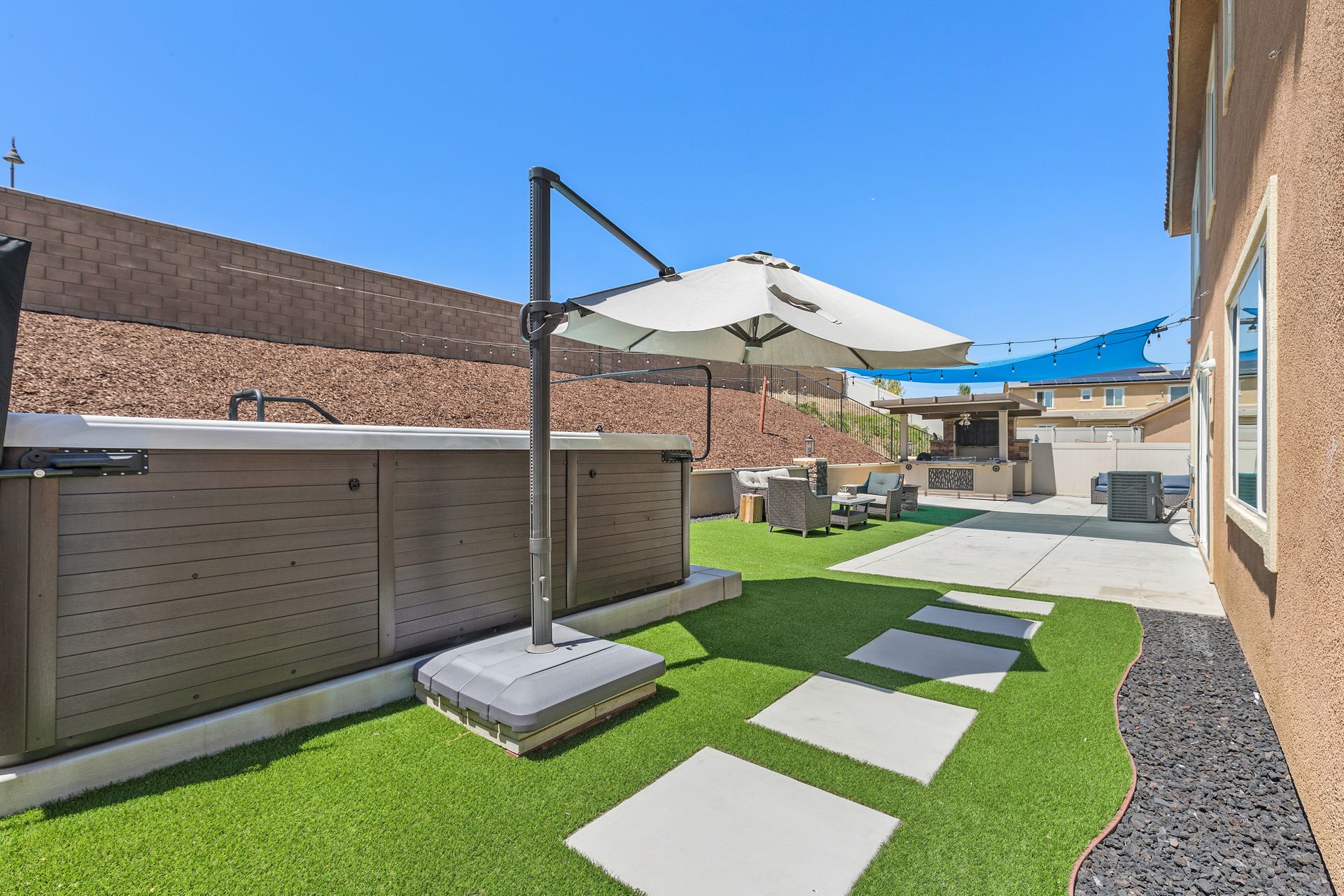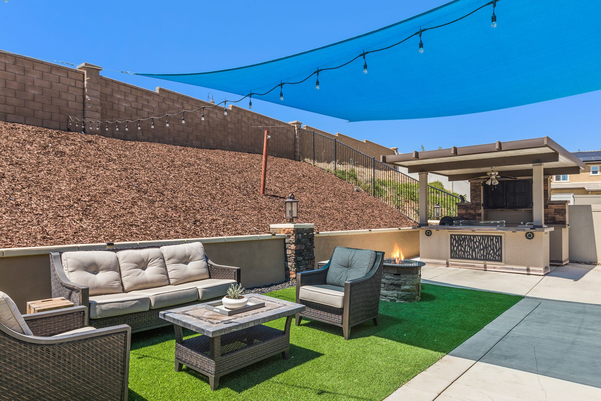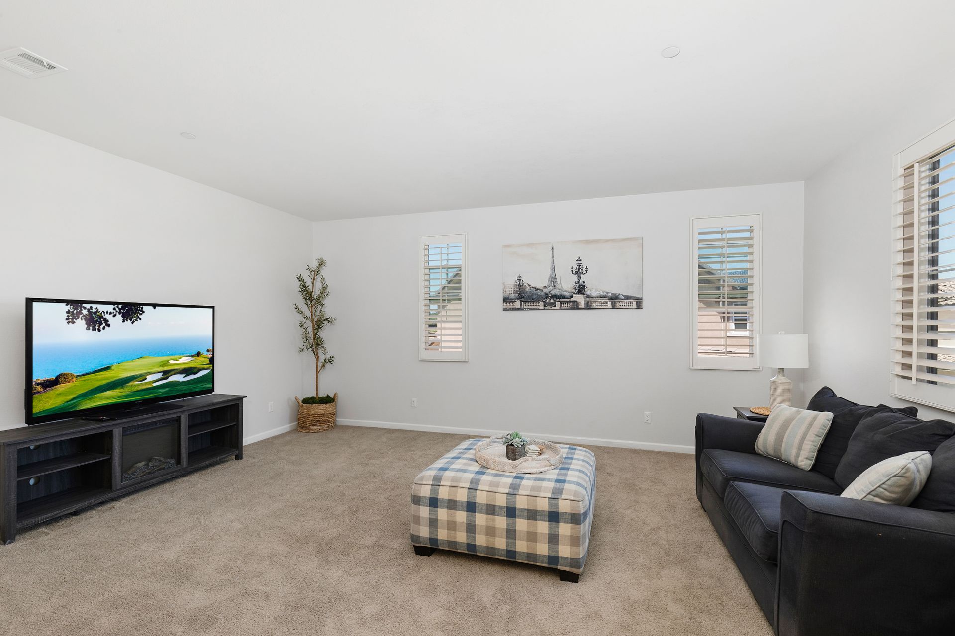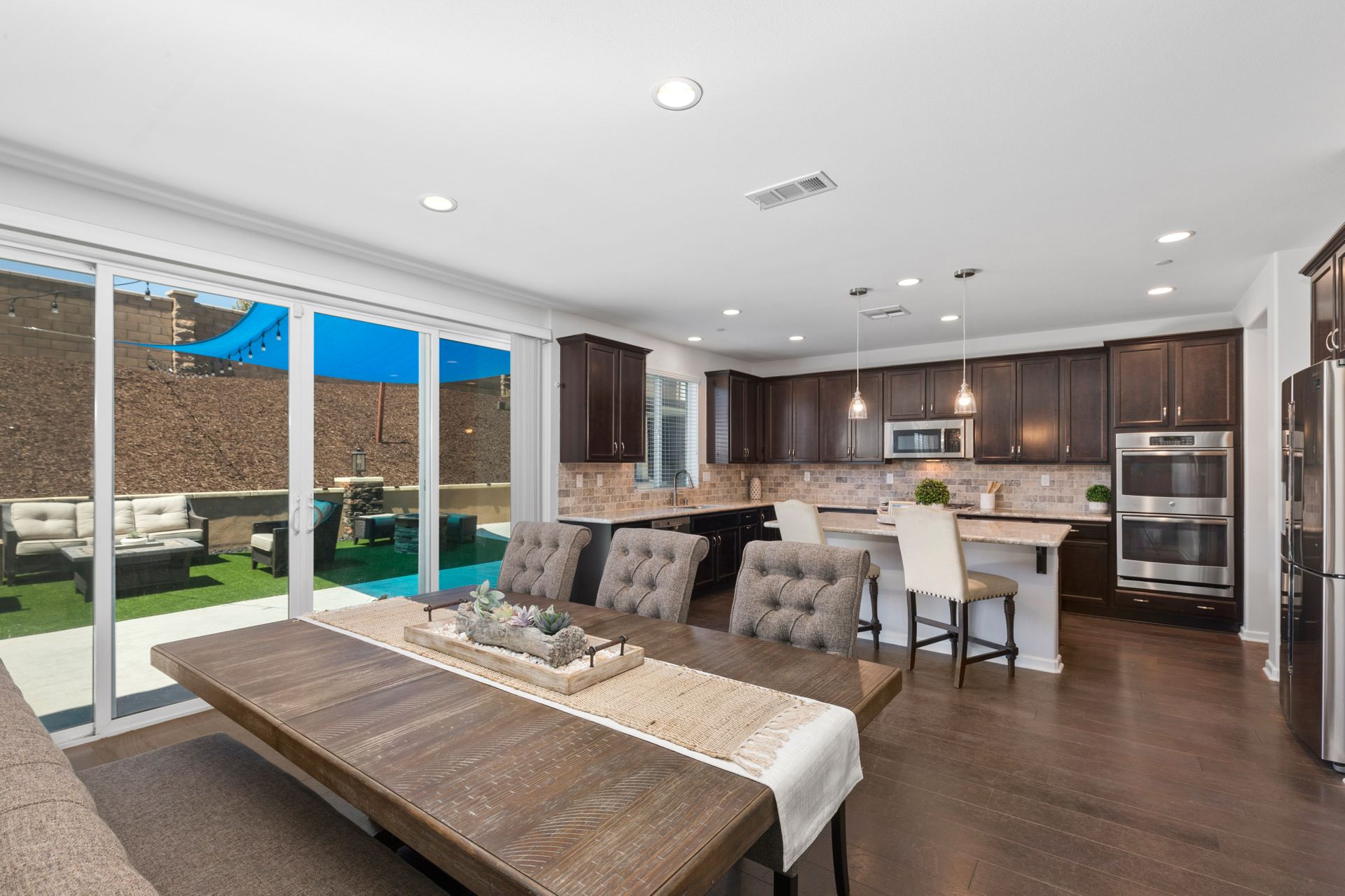This modern, sophisticated, and move-in-ready property is perfect for those in search of a home within the designated boundaries of Vista Murrieta High School. The property provides exceptional versatility, boasting five bedrooms, three bathrooms including a first-floor bedroom with a full bath, a spacious loft, and a three-car garage. Upon entering, you will be greeted by a formal dining area and a butler's pantry complete with a wet bar. Just beyond the butler's pantry, you will discover the gourmet kitchen which seamlessly connects to the dining area and great room. With ample counter space, stainless-steel appliances, double ovens, a center island, and a walk-in pantry, the kitchen is a culinary enthusiast's dream. Not only is the kitchen functional, but beautiful with its dark cabinets, cream and grey granite countertops, and modern brick backsplash. The entire living area exudes an open and airy ambiance with its freshly painted neutral gray walls, and expansive picture windows adorned with beautiful plantation shutters. Upstairs, the primary suite is spacious, accommodating king-size furniture with extra room for a sitting area or office space. The primary ensuite includes a walk-in closet, a dual sink vanity, a soaking tub, and a separate shower. Additionally, there are three generously sized secondary bedrooms, a full bathroom with a dual sink vanity, and a walk-in laundry room with ample storage. Leading out to the backyard are oversized sliding glass doors that effortlessly blend indoor and outdoor living, making it perfect for entertaining. The professionally landscaped backyard has been thoughtfully designed incorporating drought-resistant elements such as artificial turf, pavers, mulch, and hardscape. This space truly caters to the entertainer's dream, boasting a large swim-spa, a custom kitchen and bar, a concrete patio, and a spacious side yard suitable for basketball or other games. And it all of this wasn't enough, the home offers energy features including a tankless water heater, PAID solar panels and a Tesla Powerwall. A small solar purchase plan will remain with the home for the buyer to assume. Residents of this neighborhood enjoy the convenience of being within walking distance to the elementary and middle school, as well as Spencer's Crossing Clubhouse and Sports Park. Spencer's Crossing amenities promote an active lifestyle with community pools, a spa, playgrounds, basketball courts, and baseball and soccer fields.