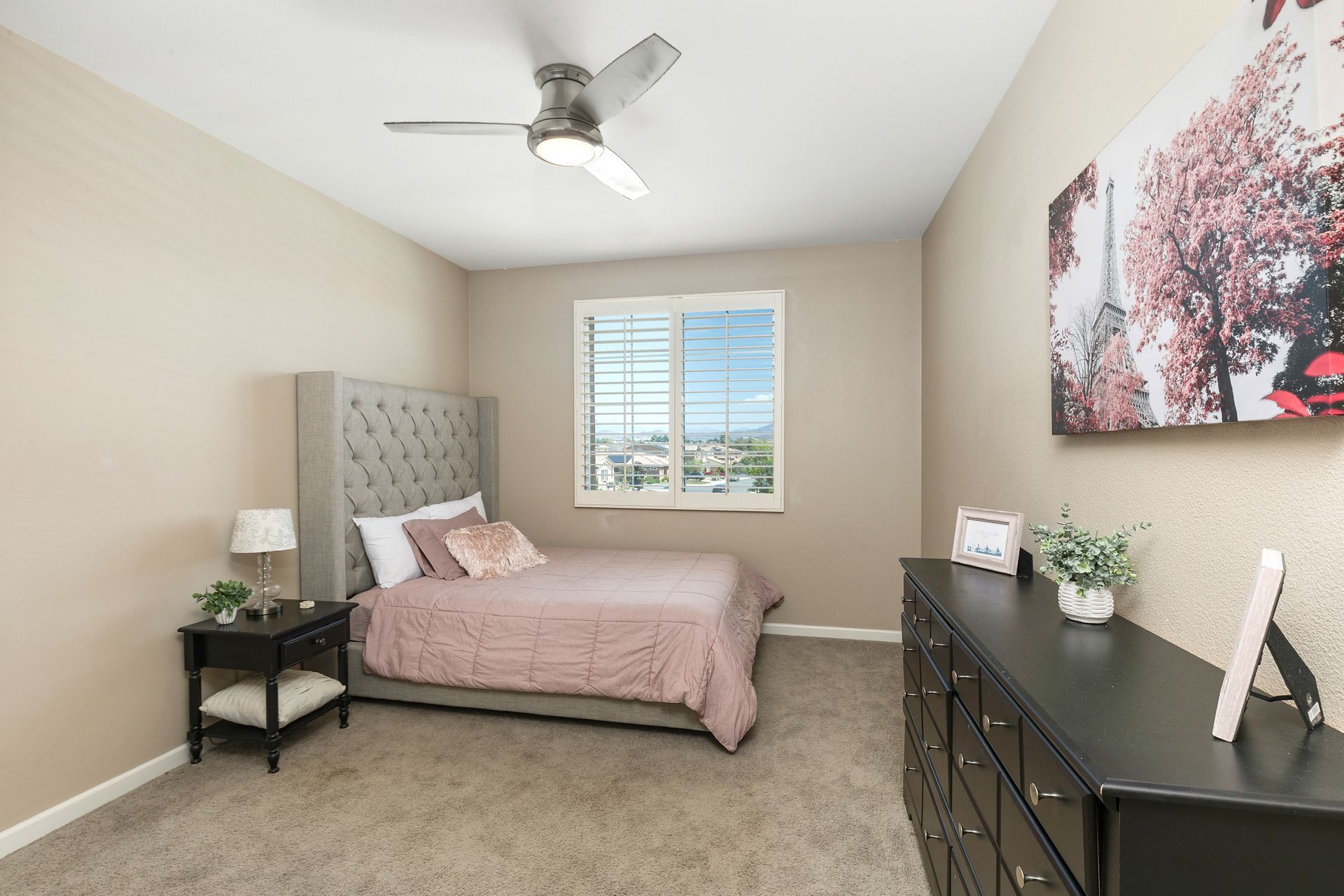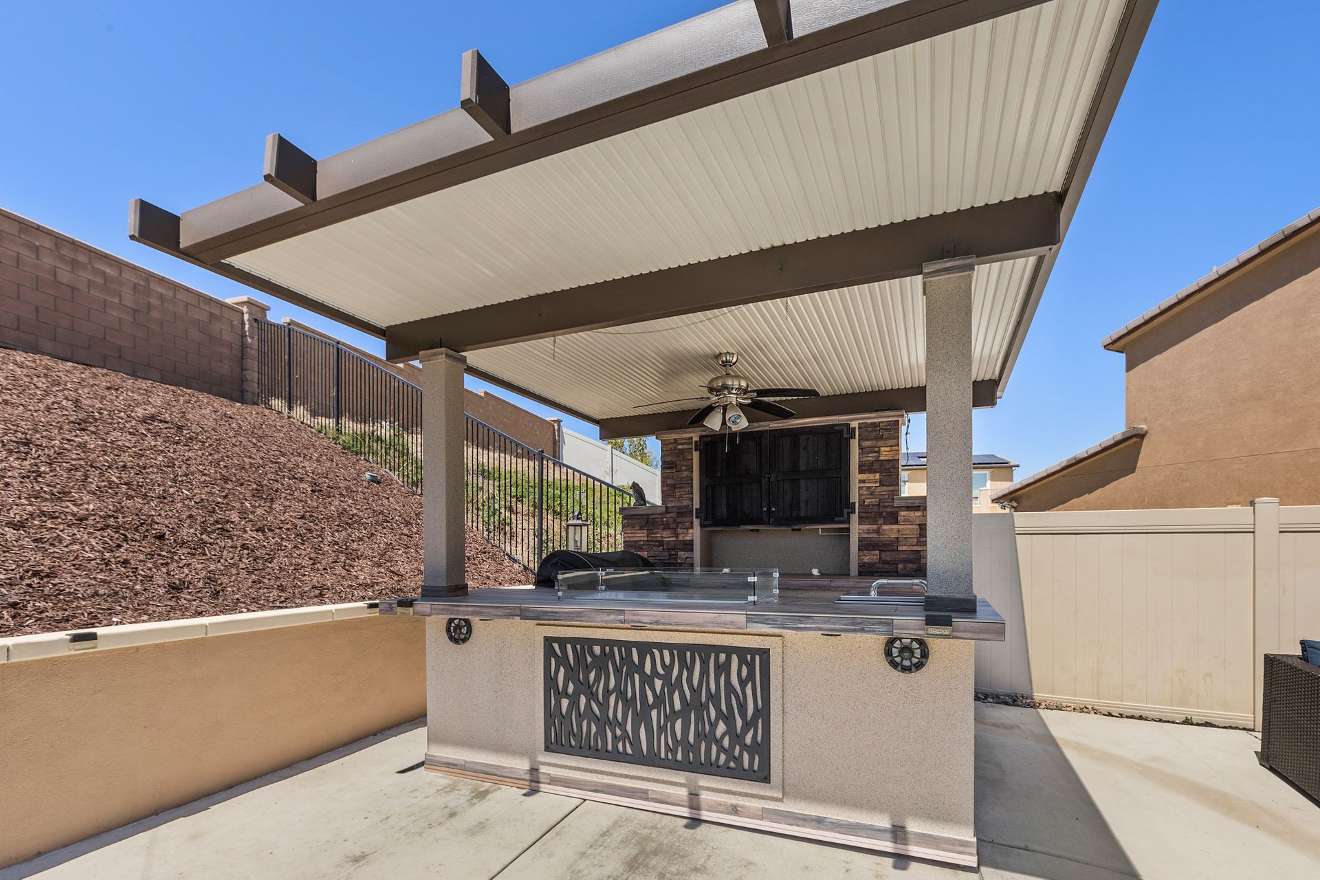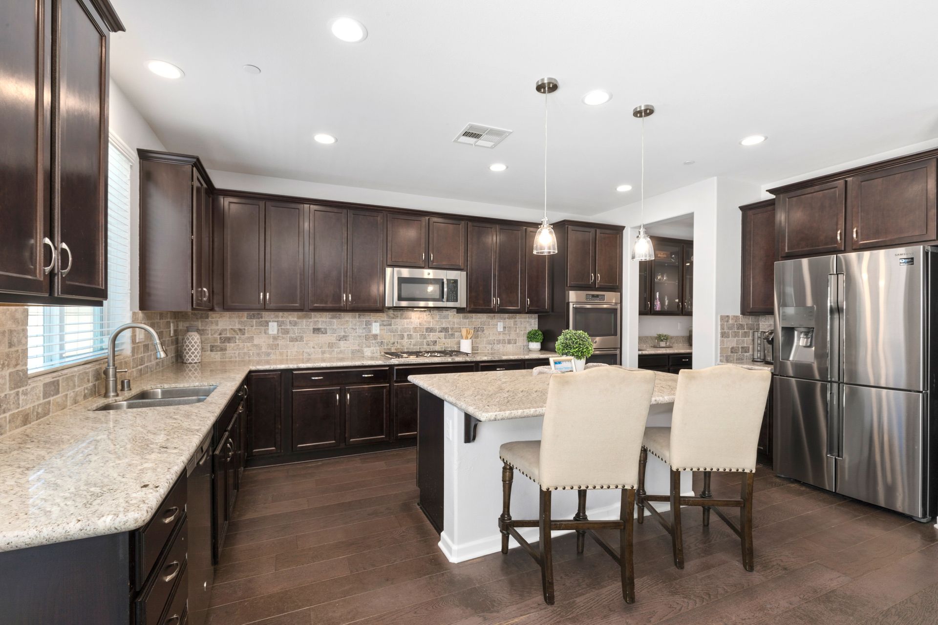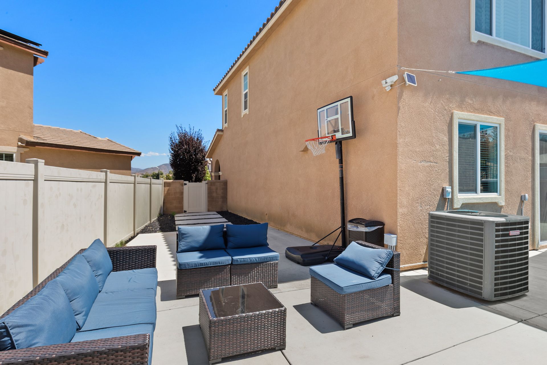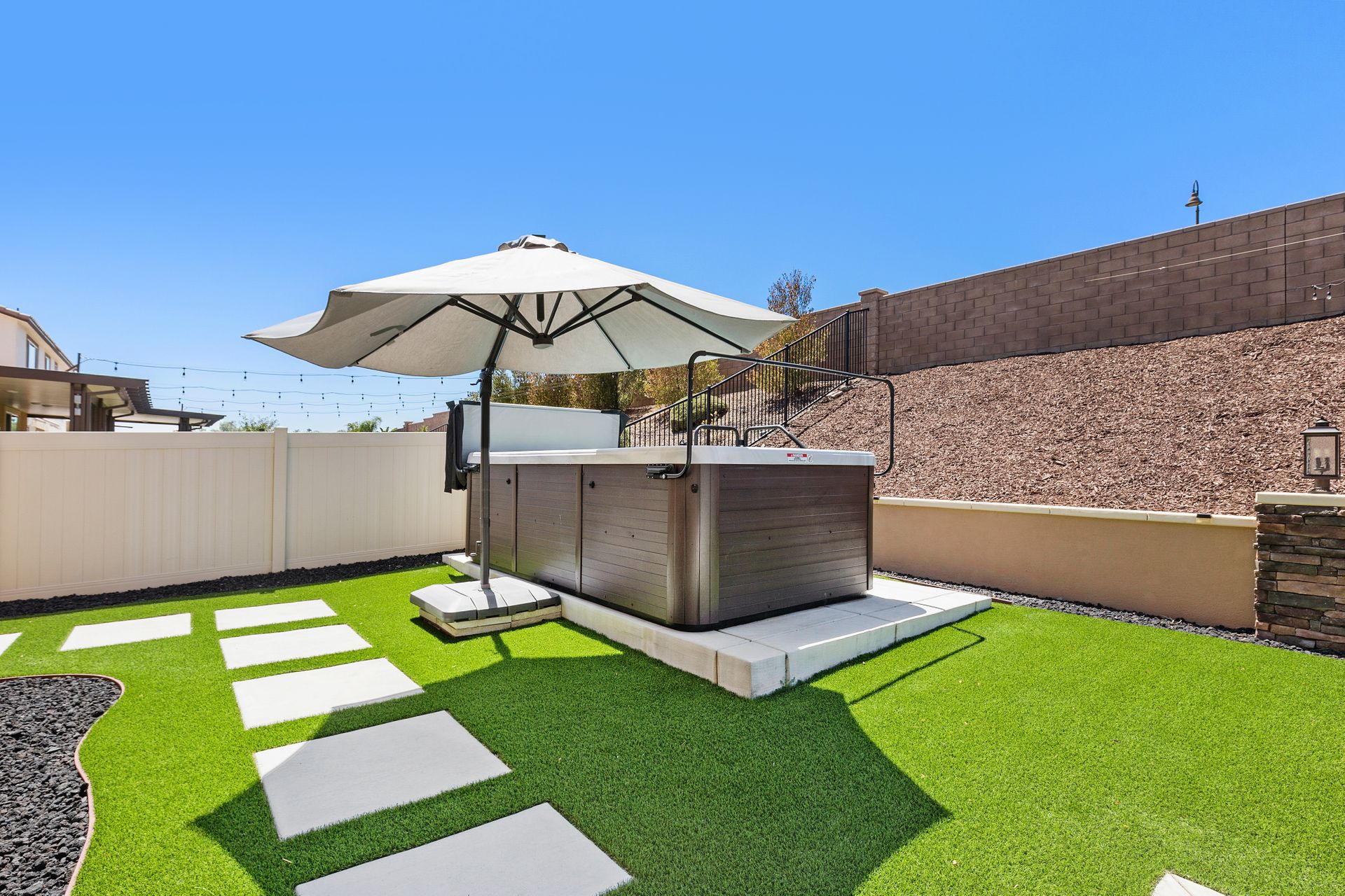 This modern, sophisticated, and move-in-ready property is perfect for those in search of a home within the designated boundaries of Vista Murrieta High School. The property provides exceptional versatility, boasting five bedrooms, three bathrooms including a first-floor bedroom with a full bath, a spacious loft, and a three-car garage. Upon entering, you will be greeted by a formal dining area and a butler's pantry complete with a wet bar. Just beyond the butler's pantry, you will discover the gourmet kitchen which seamlessly connects to the dining area and great room. With ample counter space, stainless-steel appliances, double ovens, a center island, and a walk-in pantry, the kitchen is a culinary enthusiast's dream. Not only is the kitchen functional, but beautiful with its dark cabinets, cream and grey granite countertops, and modern brick backsplash. The entire living area exudes an open and airy ambiance with its freshly painted neutral gray walls, and expansive picture windows adorned with beautiful plantation shutters. Upstairs, the primary suite is spacious, accommodating king-size furniture with extra room for a sitting area or office space. The primary ensuite includes a walk-in closet, a dual sink vanity, a soaking tub, and a separate shower. Additionally, there are three generously sized secondary bedrooms, a full bathroom with a dual sink vanity, and a walk-in laundry room with ample storage. Leading out to the backyard are oversized sliding glass doors that effortlessly blend indoor and outdoor living, making it perfect for entertaining. The professionally landscaped backyard has been thoughtfully designed incorporating drought-resistant elements such as artificial turf, pavers, mulch, and hardscape. This space truly caters to the entertainer's dream, boasting a large swim-spa, a custom kitchen and bar, a concrete patio, and a spacious side yard suitable for basketball or other games. And it all of this wasn't enough, the home offers energy features including a tankless water heater, PAID solar panels and a Tesla Powerwall. A small solar purchase plan will remain with the home for the buyer to assume. Residents of this neighborhood enjoy the convenience of being within walking distance to the elementary and middle school, as well as Spencer's Crossing Clubhouse and Sports Park. Spencer's Crossing amenities promote an active lifestyle with community pools, a spa, playgrounds, basketball courts, and baseball and soccer fields.