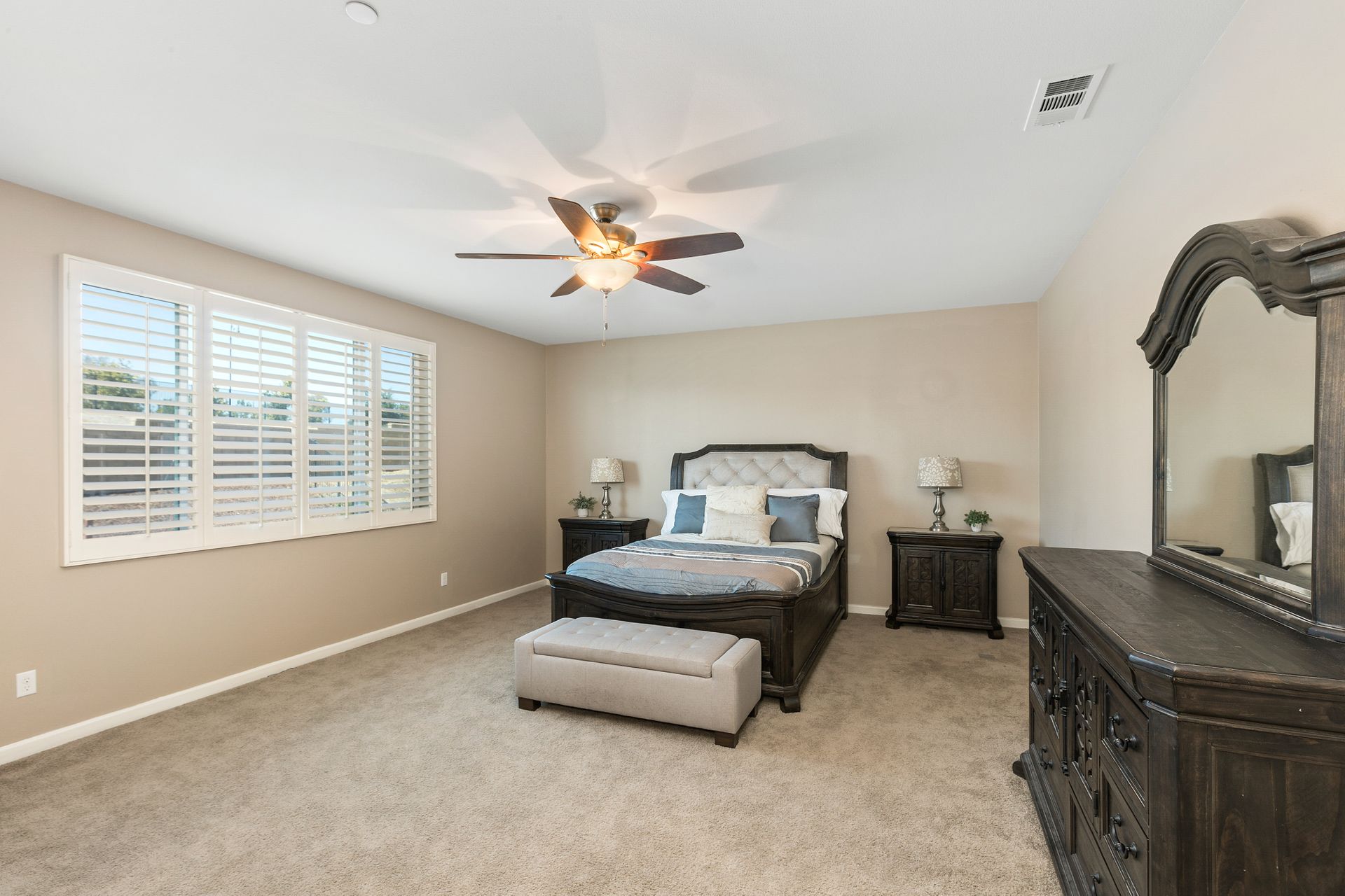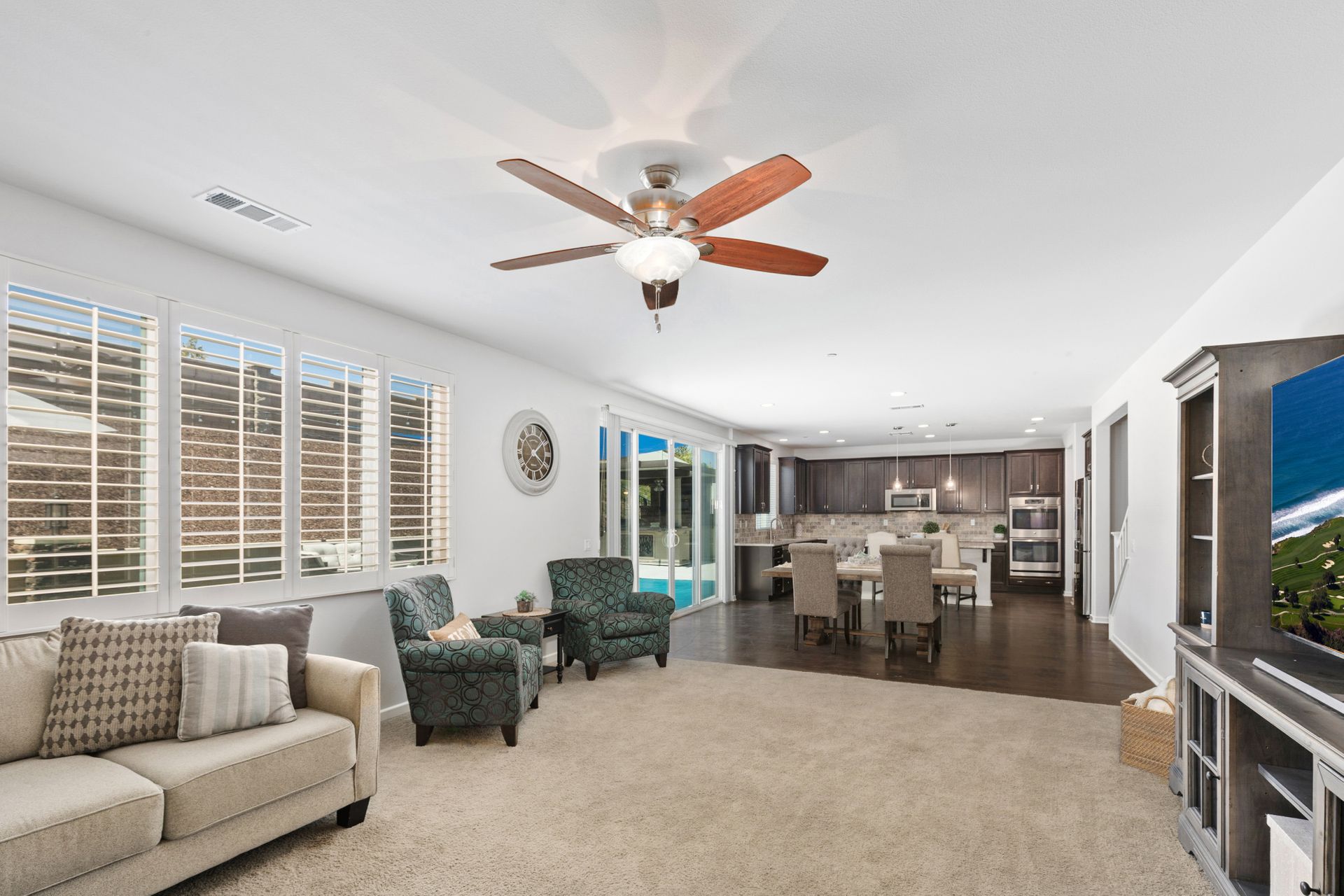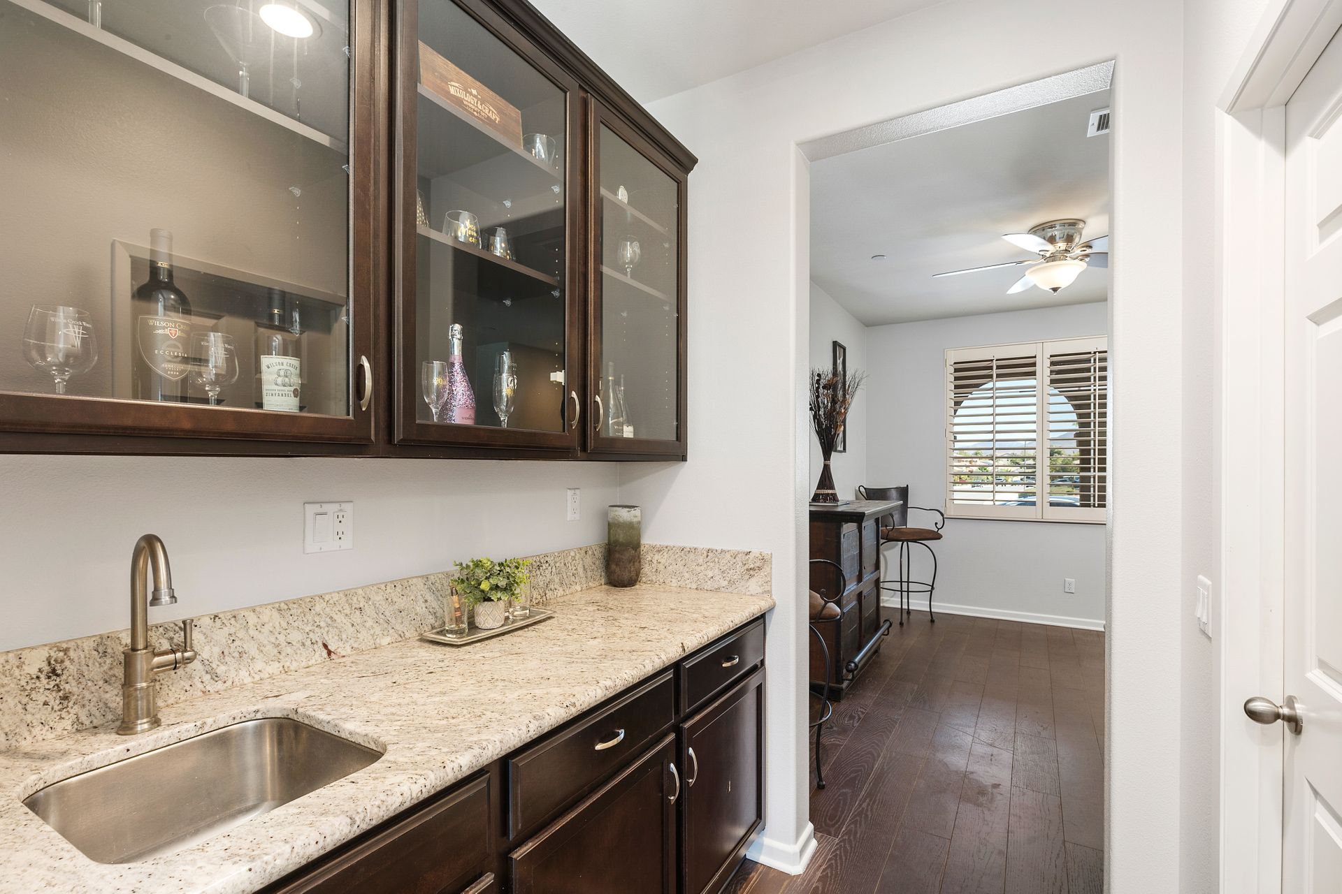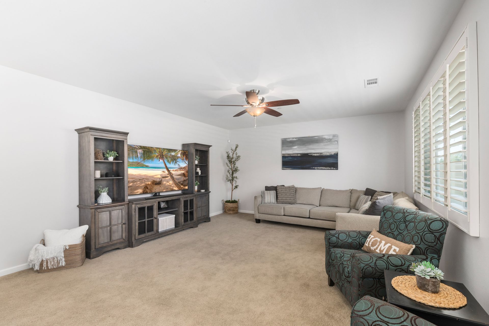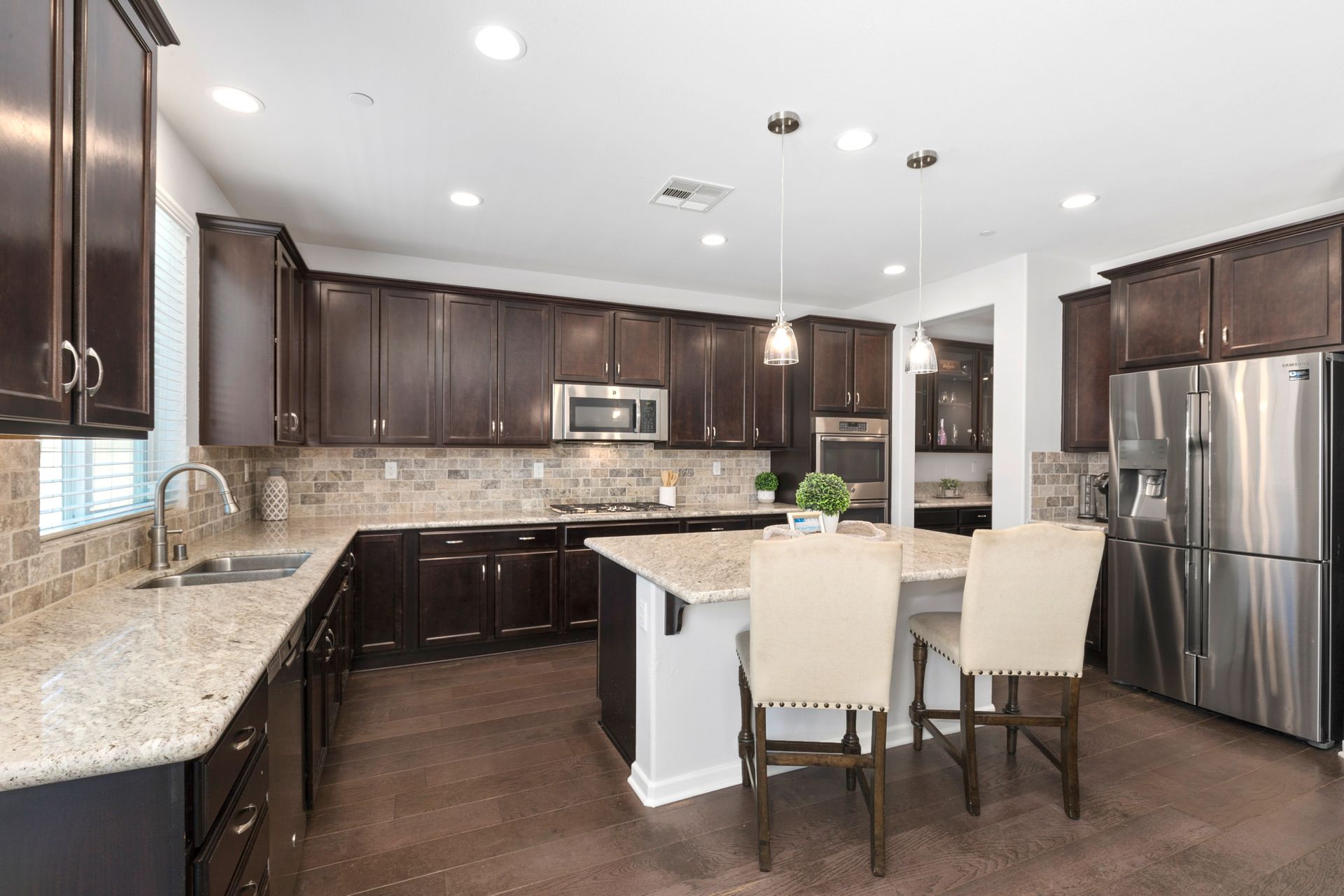 This modern, sophisticated, and move-in-ready property is perfect for those in search of a home within the designated boundaries of Vista Murrieta High School. The property provides exceptional versatility, boasting five bedrooms, three bathrooms including a first-floor bedroom with a full bath, a spacious loft, and a three-car garage. Upon entering, you will be greeted by a formal dining area and a butler's pantry complete with a wet bar. Just beyond the butler's pantry, you will discover the gourmet kitchen which seamlessly connects to the dining area and great room. With ample counter space, stainless-steel appliances, double ovens, a center island, and a walk-in pantry, the kitchen is a culinary enthusiast's dream. Not only is the kitchen functional, but beautiful with its dark cabinets, cream and grey granite countertops, and modern brick backsplash. The entire living area exudes an open and airy ambiance with its freshly painted neutral gray walls, and expansive picture windows adorned with beautiful plantation shutters. Upstairs, the primary suite is spacious, accommodating king-size furniture with extra room for a sitting area or office space. The primary ensuite includes a walk-in closet, a dual sink vanity, a soaking tub, and a separate shower. Additionally, there are three generously sized secondary bedrooms, a full bathroom with a dual sink vanity, and a walk-in laundry room with ample storage. Leading out to the backyard are oversized sliding glass doors that effortlessly blend indoor and outdoor living, making it perfect for entertaining. The professionally landscaped backyard has been thoughtfully designed incorporating drought-resistant elements such as artificial turf, pavers, mulch, and hardscape. This space truly caters to the entertainer's dream, boasting a large swim-spa, a custom kitchen and bar, a concrete patio, and a spacious side yard suitable for basketball or other games. And it all of this wasn't enough, the home offers energy features including a tankless water heater, PAID solar panels and a Tesla Powerwall. A small solar purchase plan will remain with the home for the buyer to assume. Residents of this neighborhood enjoy the convenience of being within walking distance to the elementary and middle school, as well as Spencer's Crossing Clubhouse and Sports Park. Spencer's Crossing amenities promote an active lifestyle with community pools, a spa, playgrounds, basketball courts, and baseball and soccer fields.