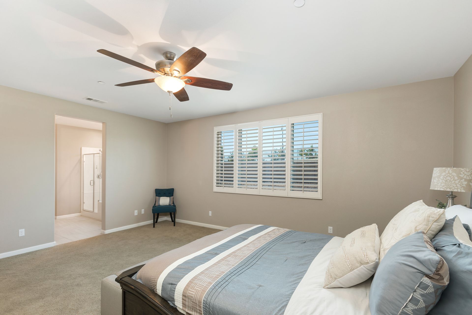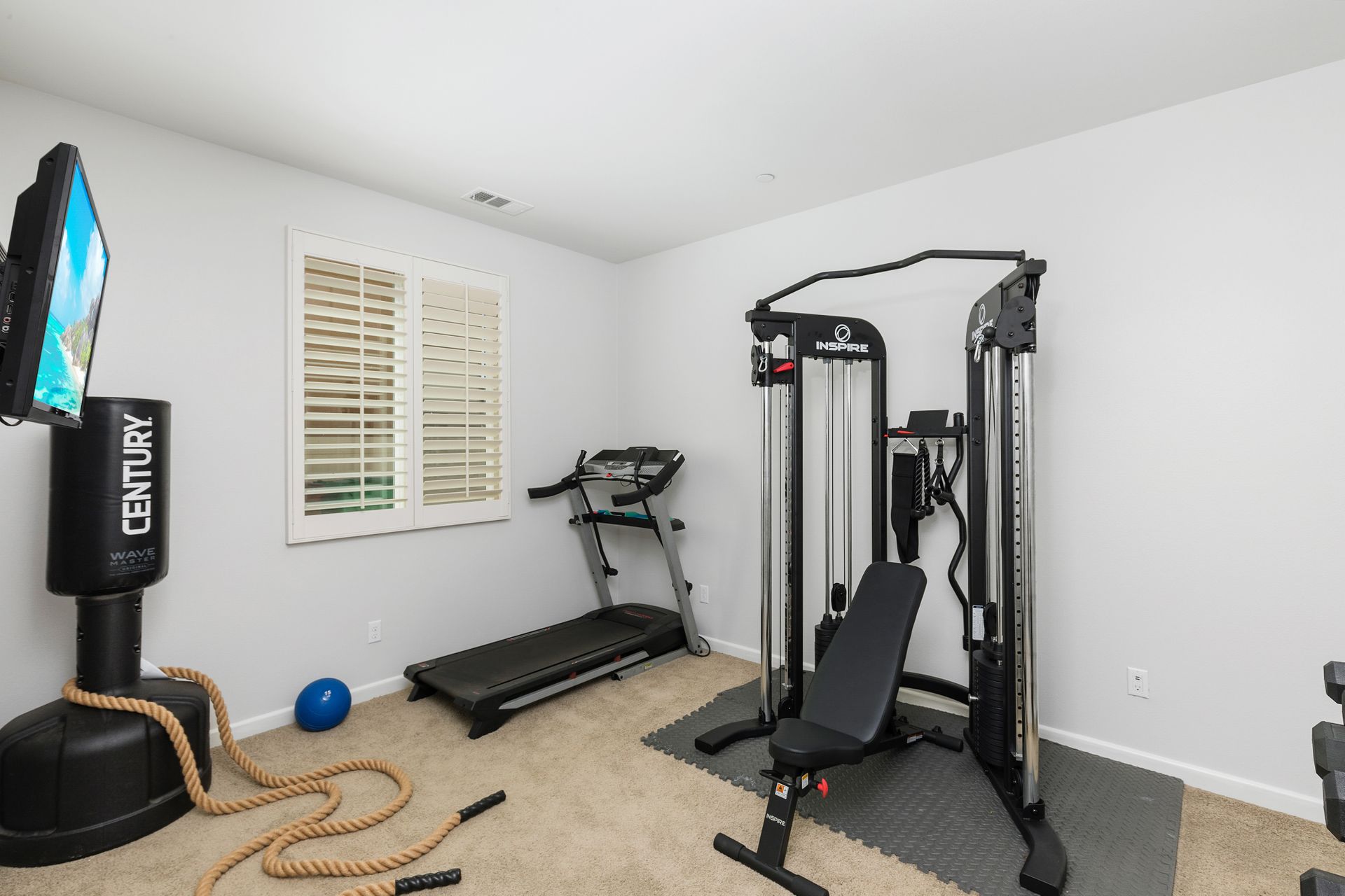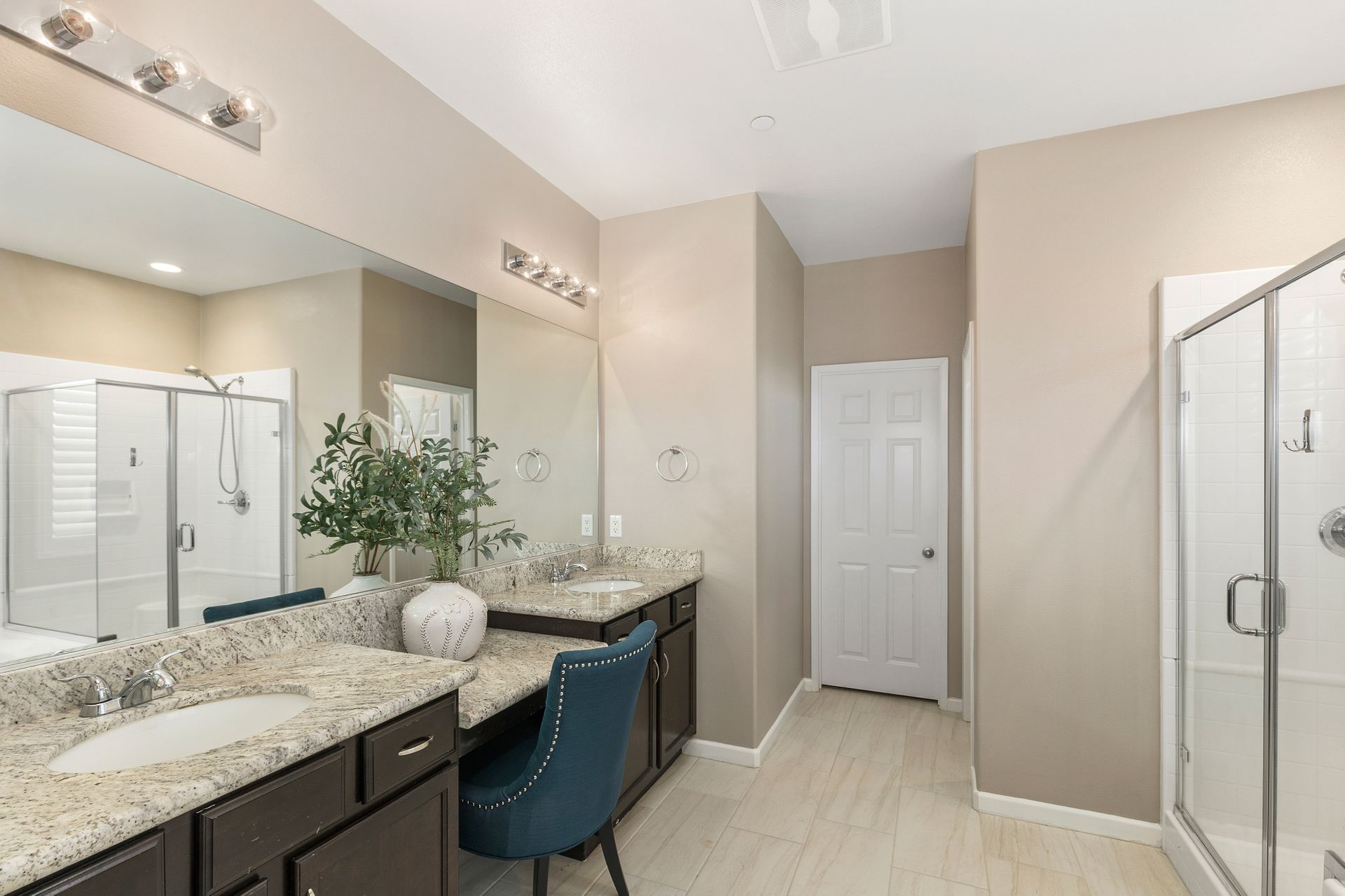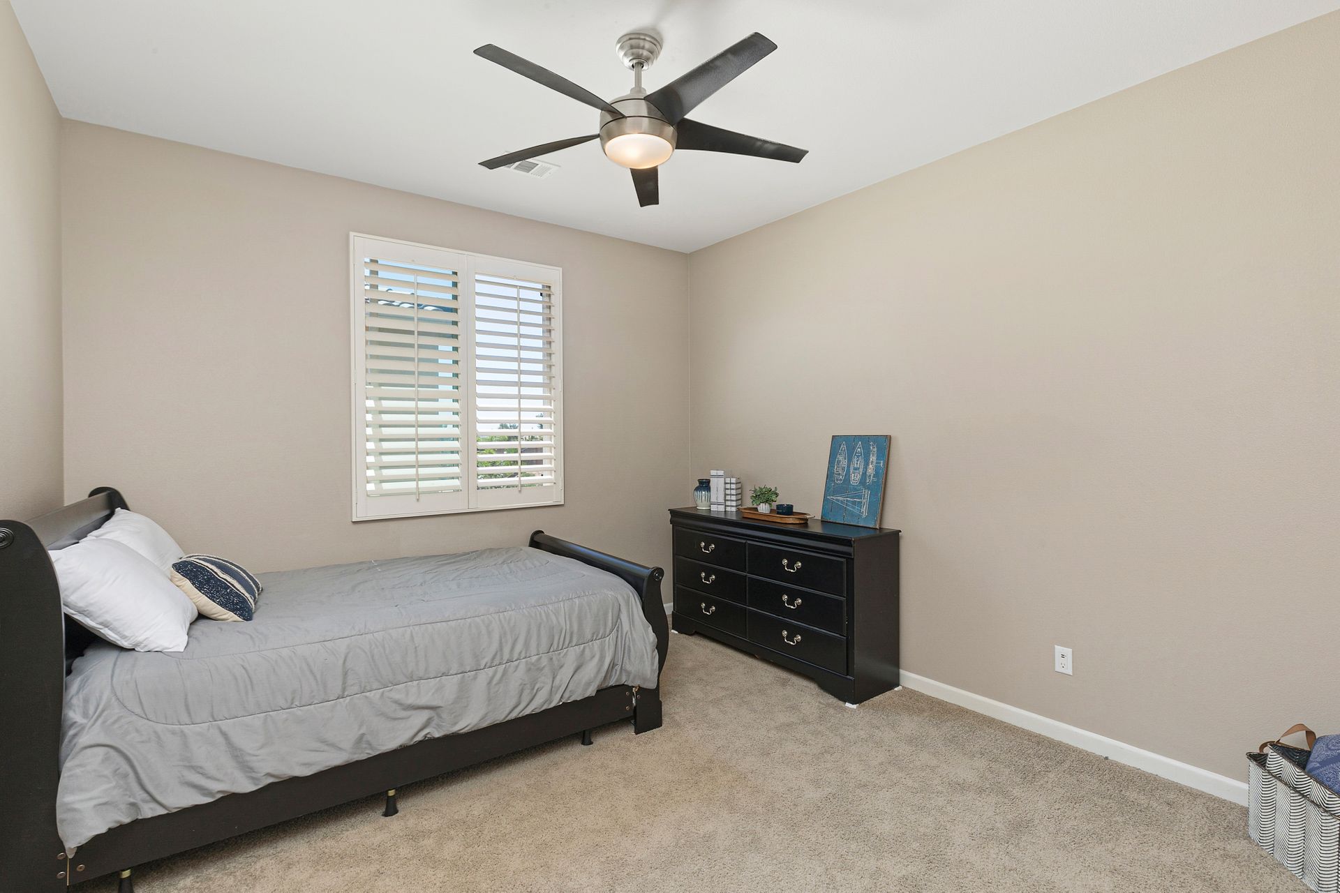 This modern, sophisticated, and move-in-ready property is perfect for those in search of a home within the designated boundaries of Vista Murrieta High School. The property provides exceptional versatility, boasting five bedrooms, three bathrooms including a first-floor bedroom with a full bath, a spacious loft, and a three-car garage. Upon entering, you will be greeted by a formal dining area and a butler's pantry complete with a wet bar. Just beyond the butler's pantry, you will discover the gourmet kitchen which seamlessly connects to the dining area and great room. With ample counter space, stainless-steel appliances, double ovens, a center island, and a walk-in pantry, the kitchen is a culinary enthusiast's dream. Not only is the kitchen functional, but beautiful with its dark cabinets, cream and grey granite countertops, and modern brick backsplash. The entire living area exudes an open and airy ambiance with its freshly painted neutral gray walls, and expansive picture windows adorned with beautiful plantation shutters. Upstairs, the primary suite is spacious, accommodating king-size furniture with extra room for a sitting area or office space. The primary ensuite includes a walk-in closet, a dual sink vanity, a soaking tub, and a separate shower. Additionally, there are three generously sized secondary bedrooms, a full bathroom with a dual sink vanity, and a walk-in laundry room with ample storage. Leading out to the backyard are oversized sliding glass doors that effortlessly blend indoor and outdoor living, making it perfect for entertaining. The professionally landscaped backyard has been thoughtfully designed incorporating drought-resistant elements such as artificial turf, pavers, mulch, and hardscape. This space truly caters to the entertainer's dream, boasting a large swim-spa, a custom kitchen and bar, a concrete patio, and a spacious side yard suitable for basketball or other games. And it all of this wasn't enough, the home offers energy features including a tankless water heater, PAID solar panels and a Tesla Powerwall. A small solar purchase plan will remain with the home for the buyer to assume. Residents of this neighborhood enjoy the convenience of being within walking distance to the elementary and middle school, as well as Spencer's Crossing Clubhouse and Sports Park. Spencer's Crossing amenities promote an active lifestyle with community pools, a spa, playgrounds, basketball courts, and baseball and soccer fields.