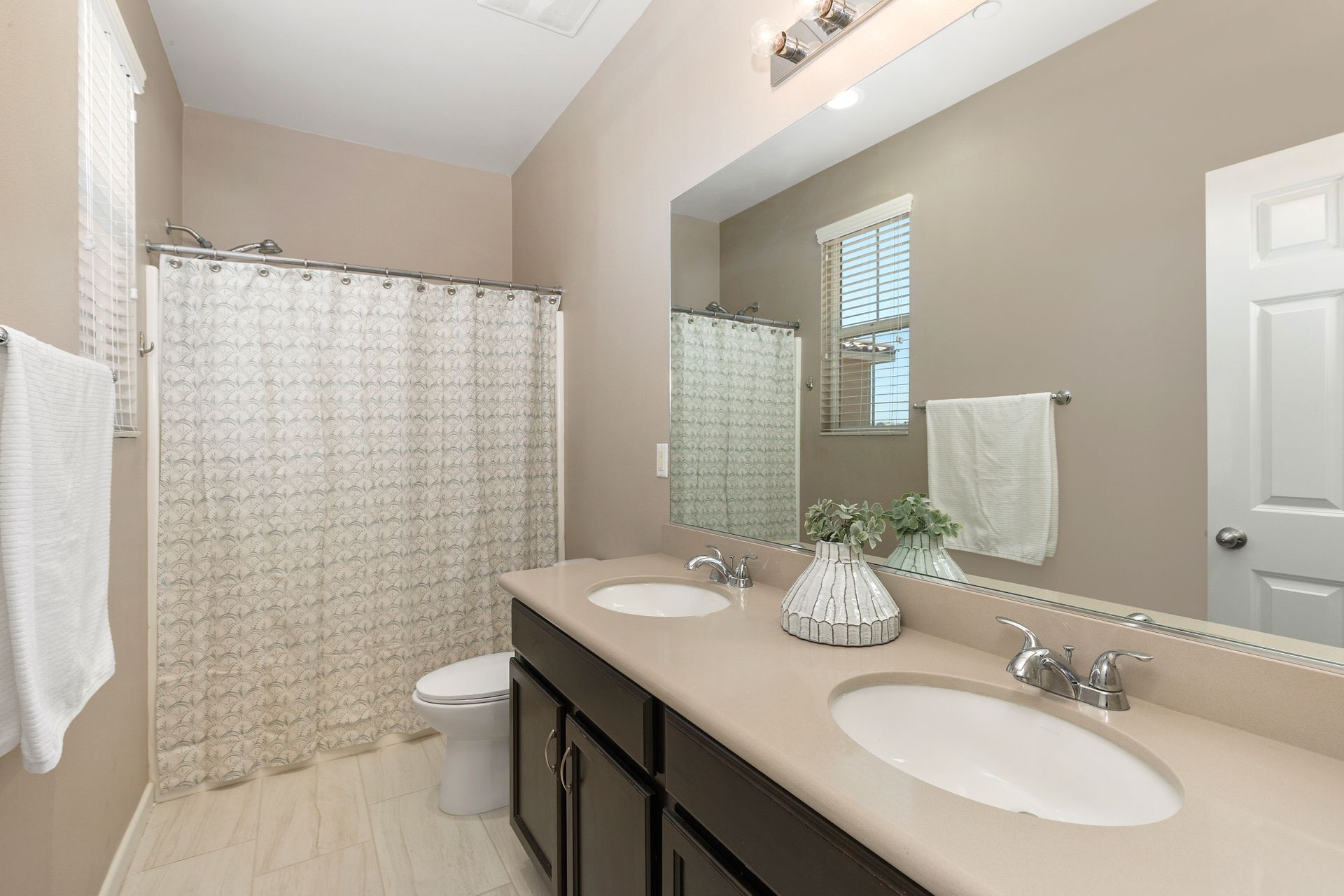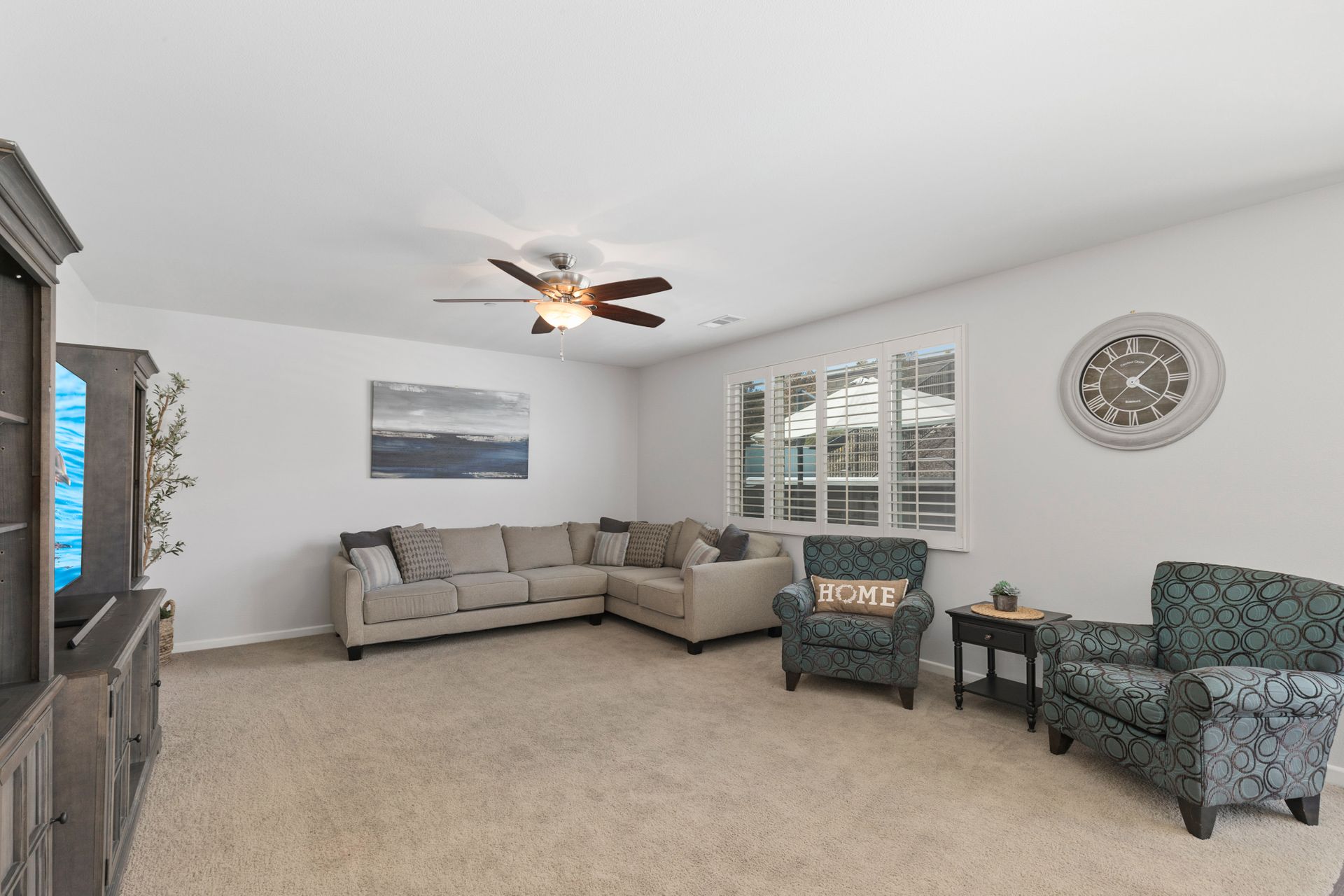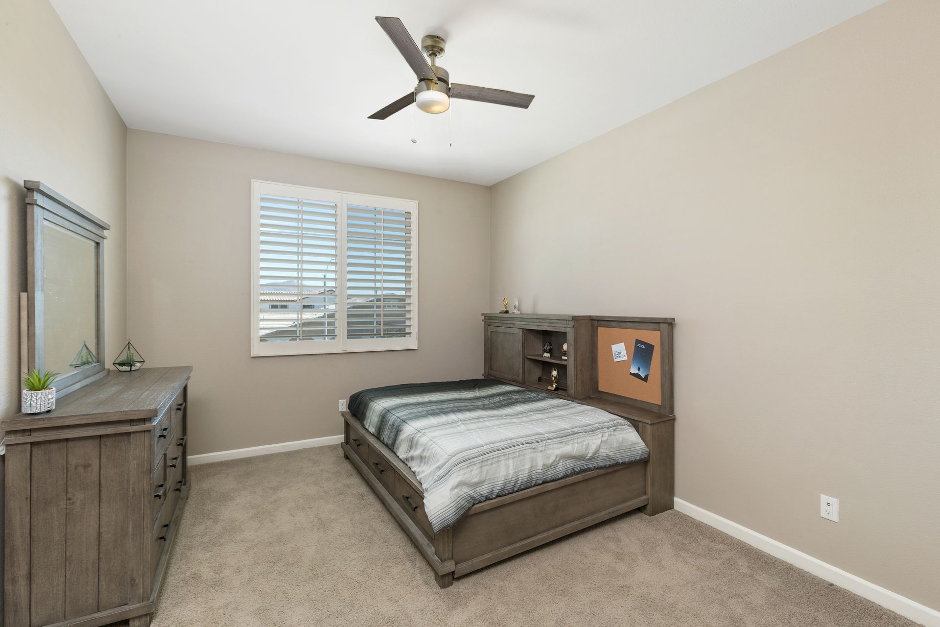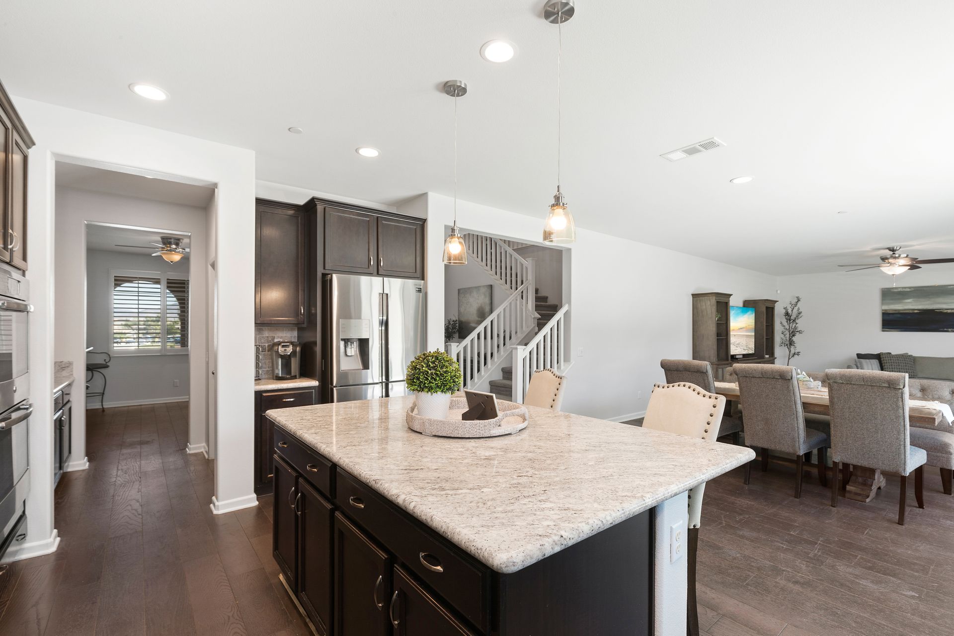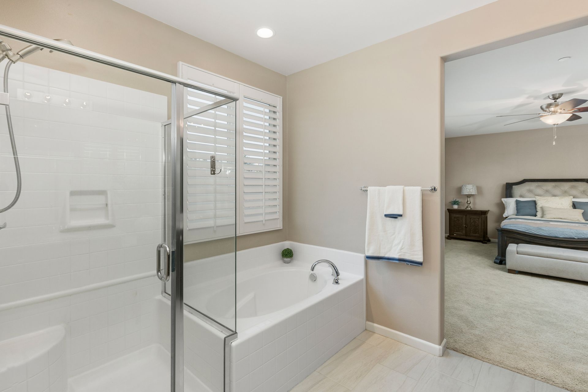This modern, sophisticated, and move-in-ready property is perfect for those in search of a home within the designated boundaries of Vista Murrieta High School. The property provides exceptional versatility, boasting five bedrooms, three bathrooms including a first-floor bedroom with a full bath, a spacious loft, and a three-car garage. Upon entering, you will be greeted by a formal dining area and a butler's pantry complete with a wet bar. Just beyond the butler's pantry, you will discover the gourmet kitchen which seamlessly connects to the dining area and great room. With ample counter space, stainless-steel appliances, double ovens, a center island, and a walk-in pantry, the kitchen is a culinary enthusiast's dream. Not only is the kitchen functional, but beautiful with its dark cabinets, cream and grey granite countertops, and modern brick backsplash. The entire living area exudes an open and airy ambiance with its freshly painted neutral gray walls, and expansive picture windows adorned with beautiful plantation shutters. Upstairs, the primary suite is spacious, accommodating king-size furniture with extra room for a sitting area or office space. The primary ensuite includes a walk-in closet, a dual sink vanity, a soaking tub, and a separate shower. Additionally, there are three generously sized secondary bedrooms, a full bathroom with a dual sink vanity, and a walk-in laundry room with ample storage. Leading out to the backyard are oversized sliding glass doors that effortlessly blend indoor and outdoor living, making it perfect for entertaining. The professionally landscaped backyard has been thoughtfully designed incorporating drought-resistant elements such as artificial turf, pavers, mulch, and hardscape. This space truly caters to the entertainer's dream, boasting a large swim-spa, a custom kitchen and bar, a concrete patio, and a spacious side yard suitable for basketball or other games. And it all of this wasn't enough, the home offers energy features including a tankless water heater, PAID solar panels and a Tesla Powerwall. A small solar purchase plan will remain with the home for the buyer to assume. Residents of this neighborhood enjoy the convenience of being within walking distance to the elementary and middle school, as well as Spencer's Crossing Clubhouse and Sports Park. Spencer's Crossing amenities promote an active lifestyle with community pools, a spa, playgrounds, basketball courts, and baseball and soccer fields.