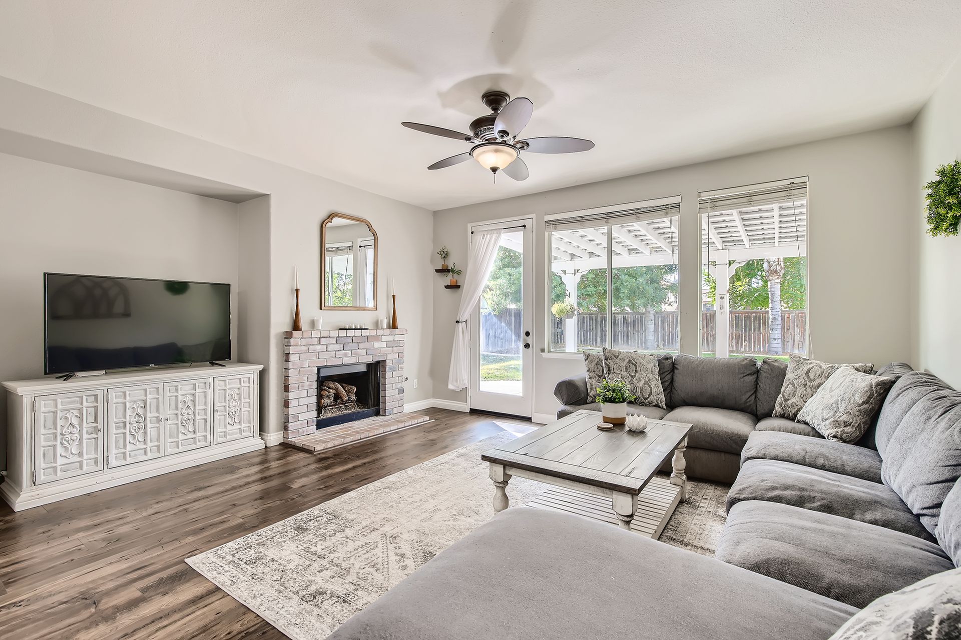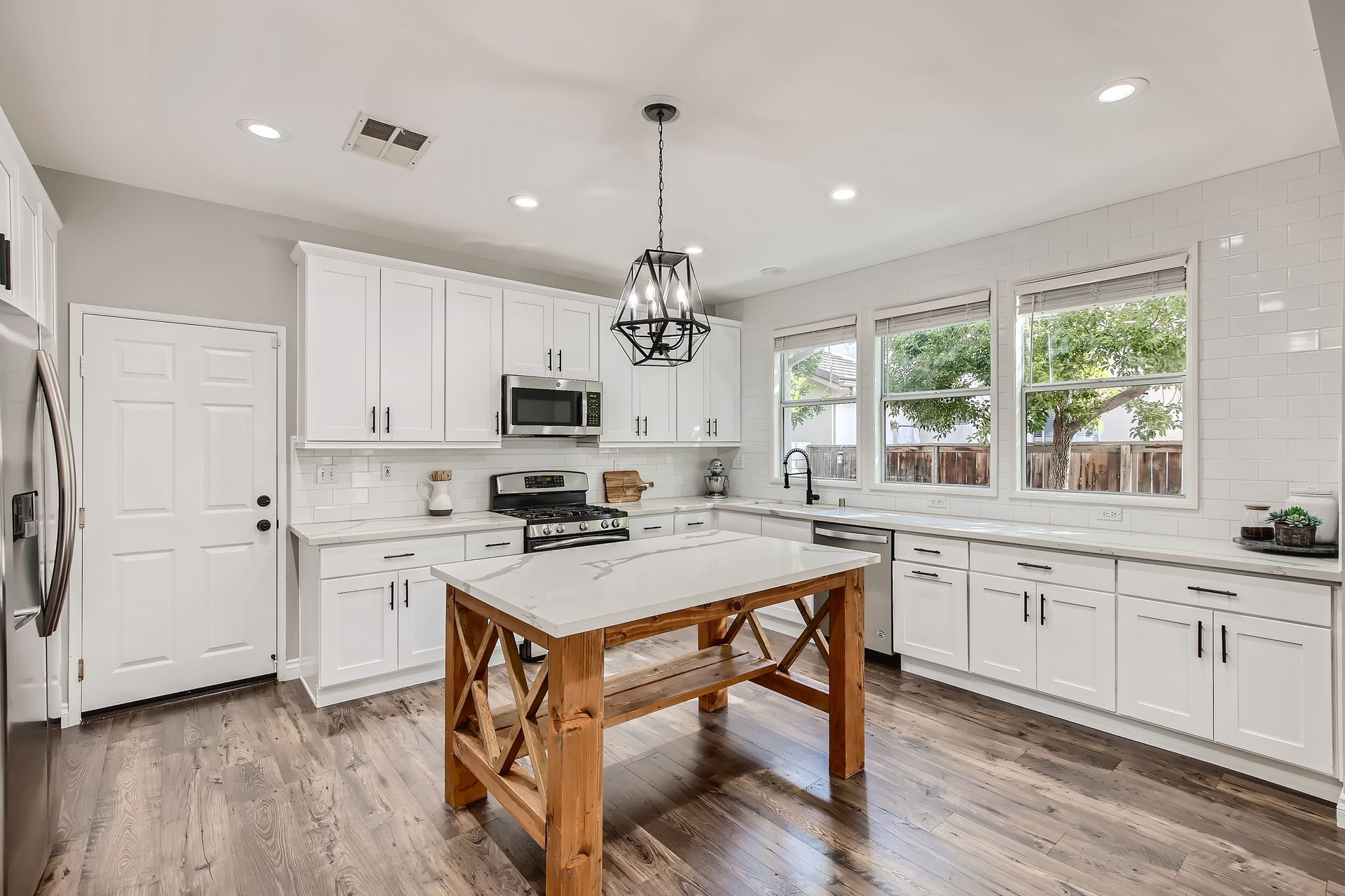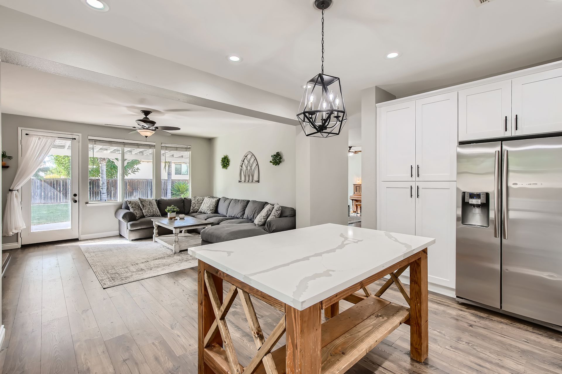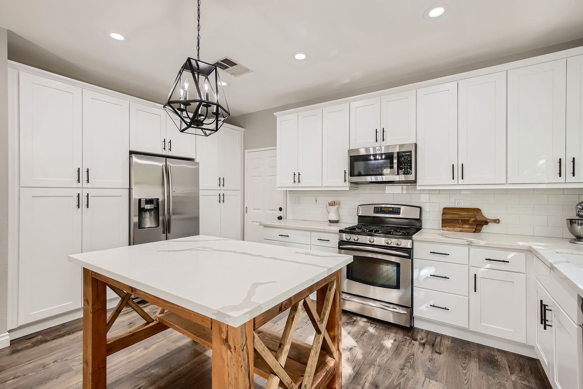 This modern farmhouse inspired home has been impeccably remodeled offering features and finishes that will delight you at every turn! The moment you drive up you are greeted by the home's manicured yard, an extra-long driveway and the newly painted exterior which pops against the beautiful red brick accents. The second you enter, you'll be impressed by the light-filled formal entryway. The stunning kitchen remodel features a fresh look yet embraces natural wood tones and metal elements. The gorgeous updated white shaker-style cabinets are complemented by quartz marble-like countertops and black hardware and lighting. Pinterest worthy focal points include a subway tiled feature wall and hand-crafted rustic island with matching countertop. Other incredible modern farmhouse touches include wood-like laminate floors, shiplap feature walls in the primary and downstairs bathrooms, a barn-style track door in the primary bedroom, black and white patterned floors in the bathrooms and laundry room, open wood shelving and black framed mirrors in the bathrooms. Located on a cul-de-sac, this home offers great versatility inside and out with its four bedrooms, two and a half bathrooms, extra-large loft, three-bay garage and pool-sized lot. Highly functional and cozy spaces are enjoyed throughout the home including the intimate fireplace in the family room, the relaxing reading nook with window seating at the top of the staircase, the useful built-in desk outside the secondary bedrooms and the entertaining patio overlooking the oversized backyard. Top Rated Schools and low taxes and HOA make this home a tremendous value! Hurry, this one-of-a-kind property won't last long!