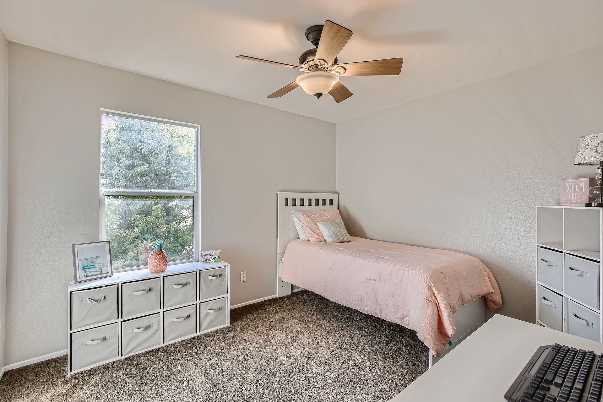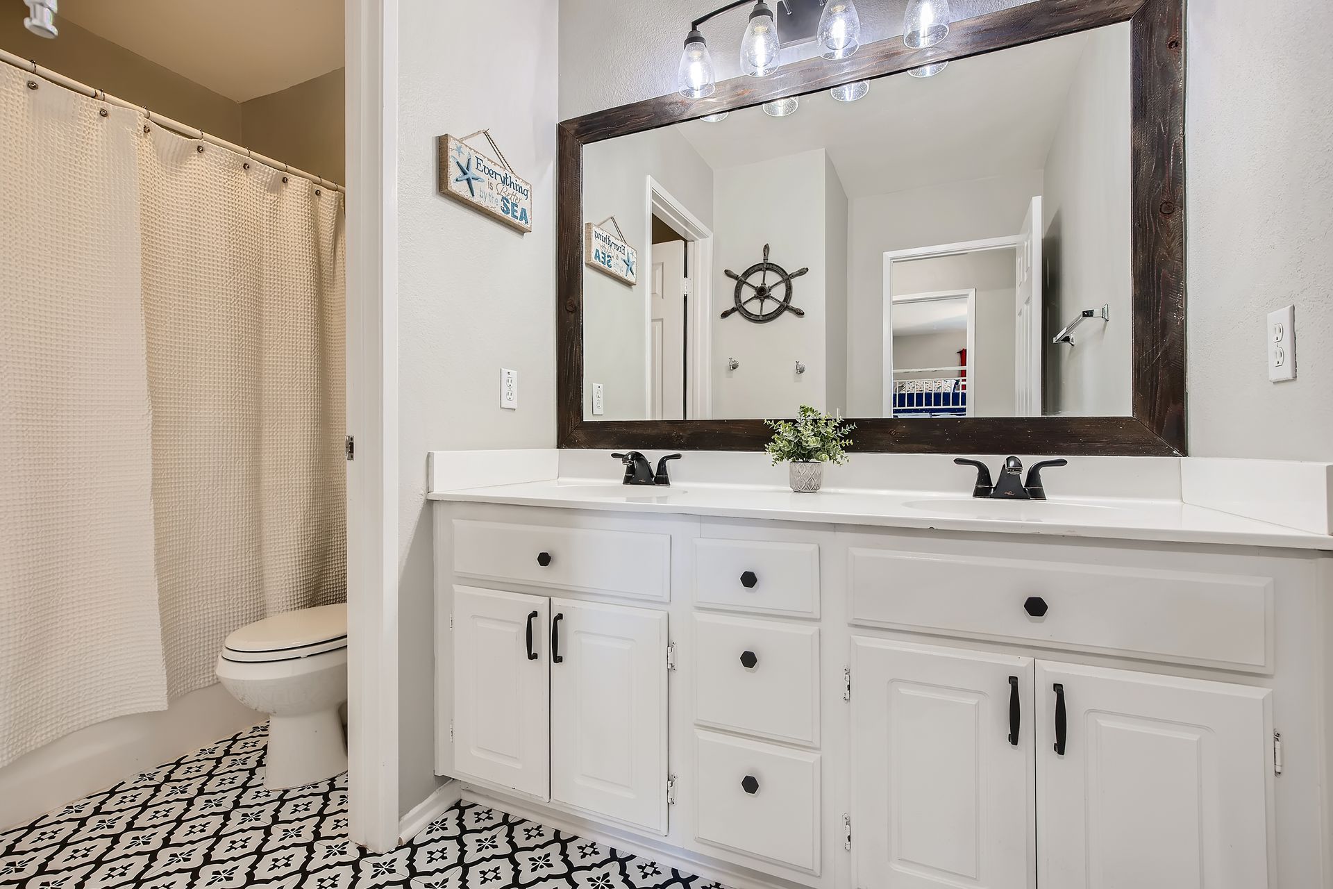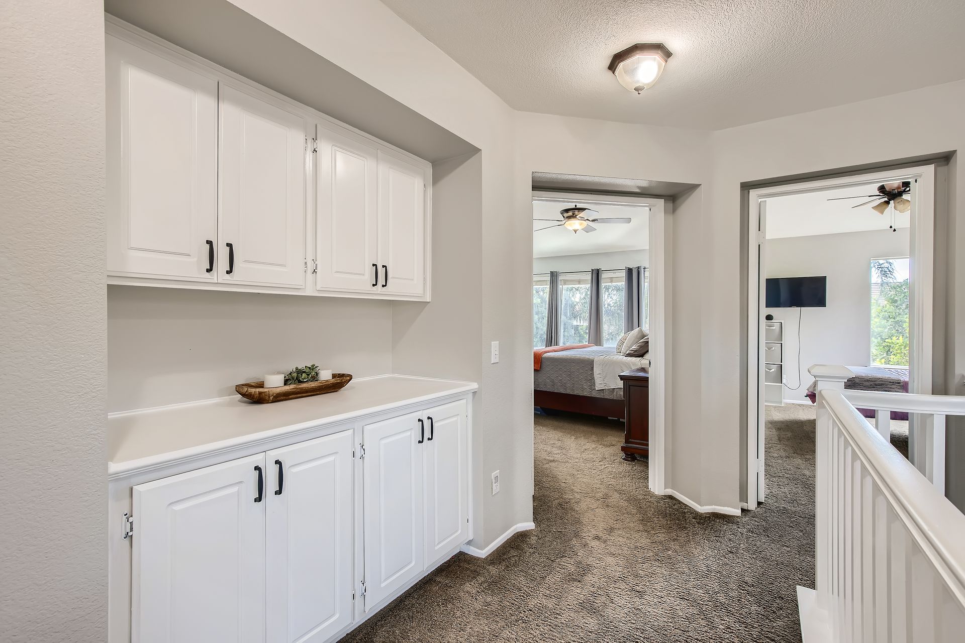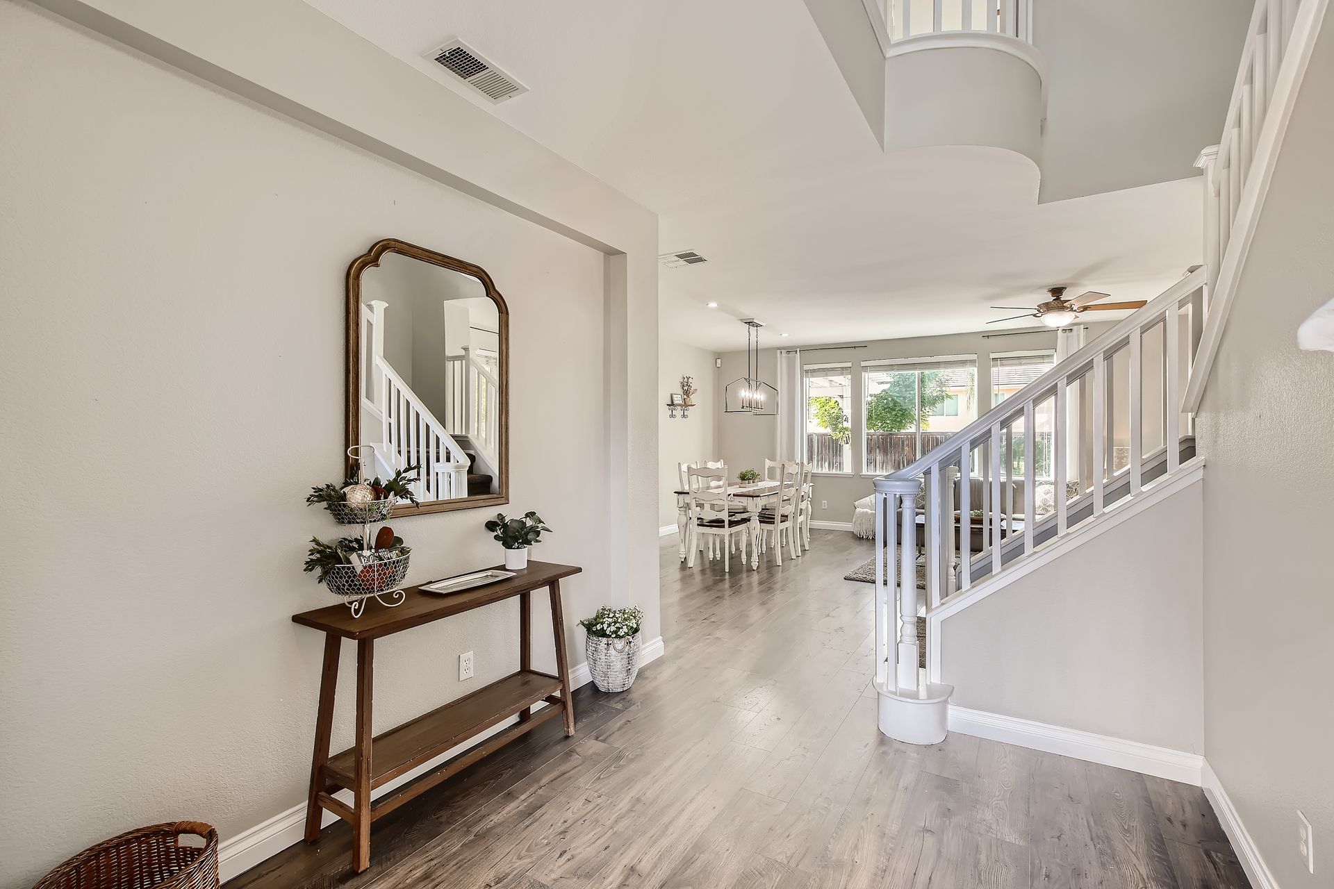This modern farmhouse inspired home has been impeccably remodeled offering features and finishes that will delight you at every turn! The moment you drive up you are greeted by the home's manicured yard, an extra-long driveway and the newly painted exterior which pops against the beautiful red brick accents. The second you enter, you'll be impressed by the light-filled formal entryway. The stunning kitchen remodel features a fresh look yet embraces natural wood tones and metal elements. The gorgeous updated white shaker-style cabinets are complemented by quartz marble-like countertops and black hardware and lighting. Pinterest worthy focal points include a subway tiled feature wall and hand-crafted rustic island with matching countertop. Other incredible modern farmhouse touches include wood-like laminate floors, shiplap feature walls in the primary and downstairs bathrooms, a barn-style track door in the primary bedroom, black and white patterned floors in the bathrooms and laundry room, open wood shelving and black framed mirrors in the bathrooms. Located on a cul-de-sac, this home offers great versatility inside and out with its four bedrooms, two and a half bathrooms, extra-large loft, three-bay garage and pool-sized lot. Highly functional and cozy spaces are enjoyed throughout the home including the intimate fireplace in the family room, the relaxing reading nook with window seating at the top of the staircase, the useful built-in desk outside the secondary bedrooms and the entertaining patio overlooking the oversized backyard. Top Rated Schools and low taxes and HOA make this home a tremendous value! Hurry, this one-of-a-kind property won't last long!