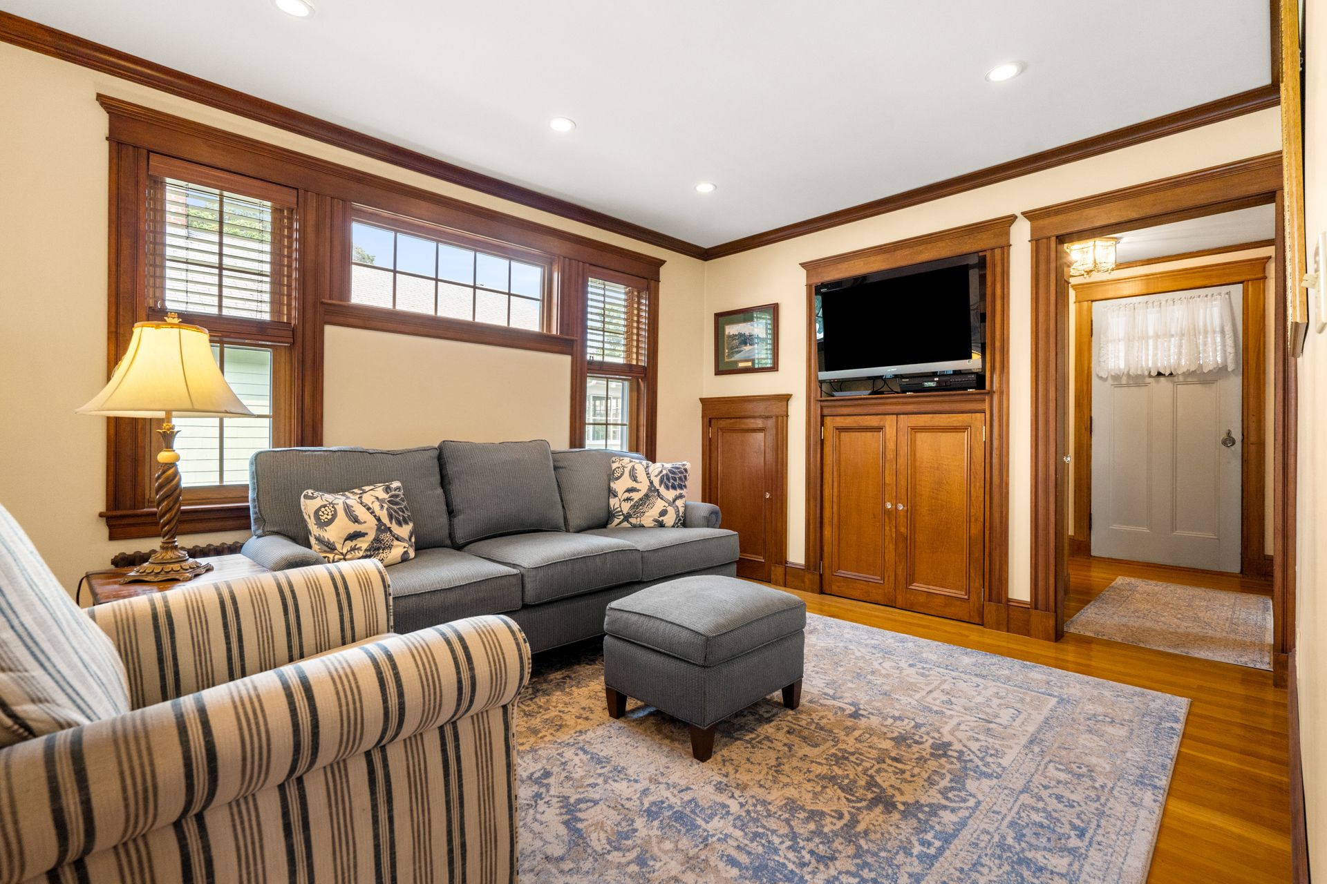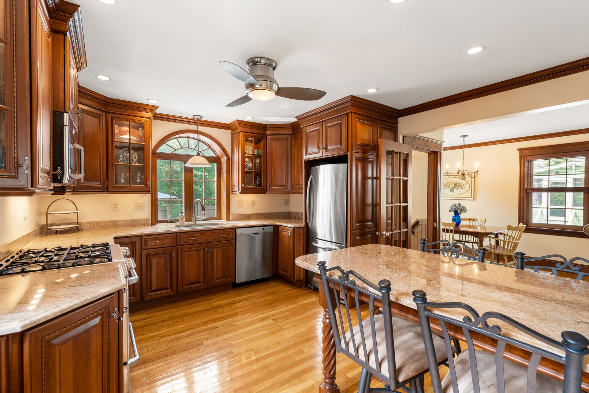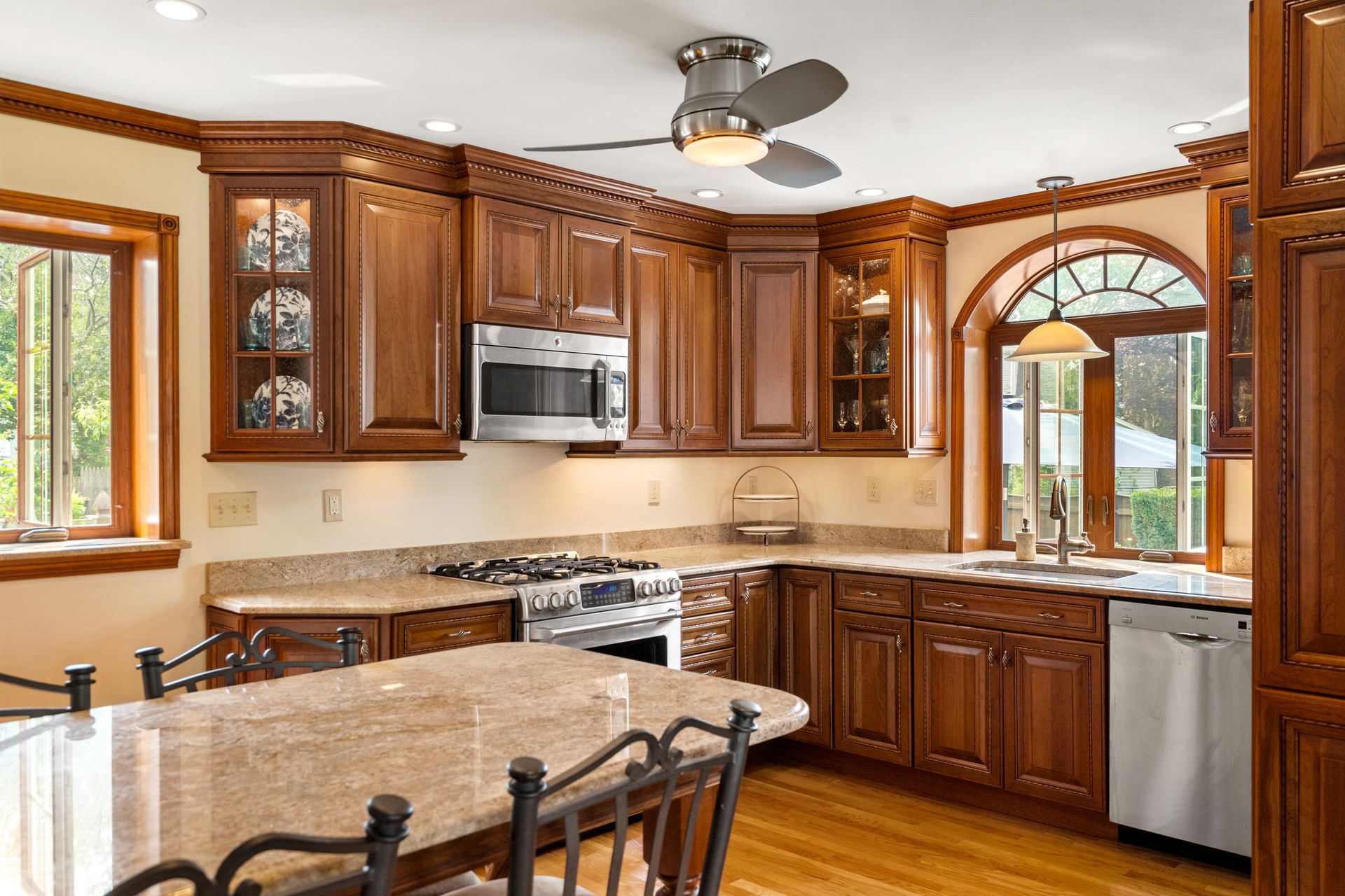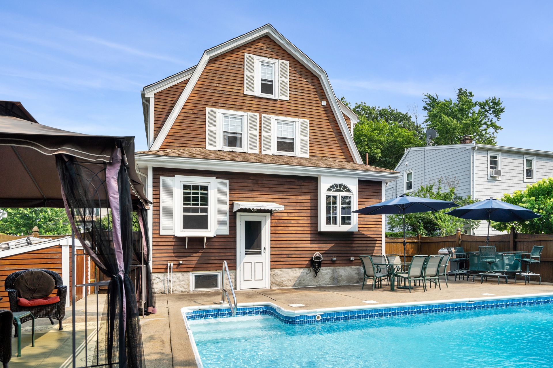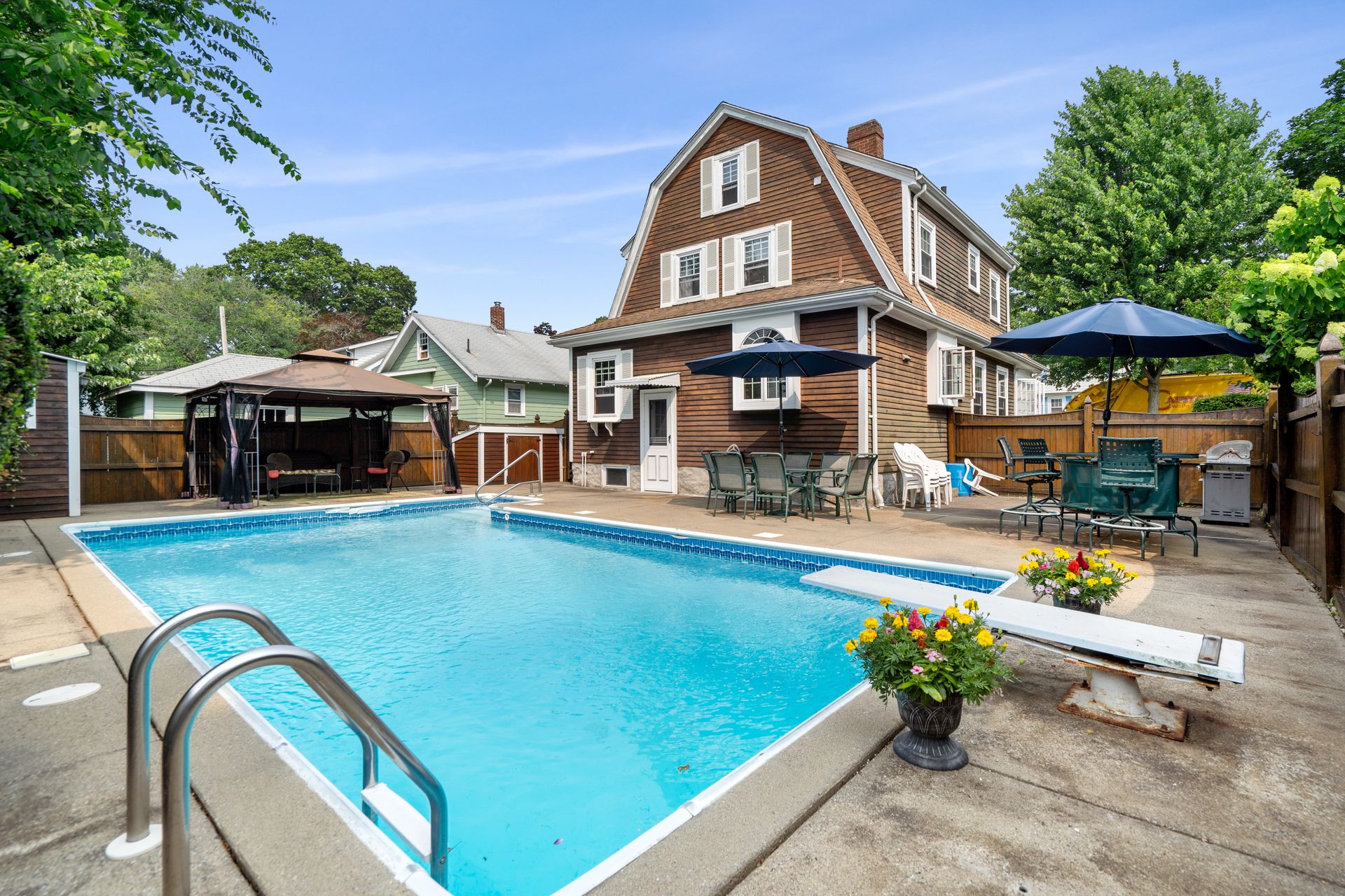 A charming single-family home with hardwood floors located in the Wollaston area. The gorgeous kitchen includes granite countertops with a matching breakfast bar, GE microwave, oven, refrigerator, and Bosch dishwasher. The kitchen opens into a dining area with windows fitted with custom Hunter Douglas Blinds. The first floor also includes a bonus quarter bathroom, living room with a fireplace and built-in shelving. The second level has three bedrooms and one full bathroom which has a tiled shower and bench seat. The fenced-in backyard has a beautiful in-ground pool, storage shed, and plenty of space to entertain guests in the summer. Washer and dryer and ample storage space in the basement. This home sits in a convenient location near Wollaston Beach (0.3 miles), Beechwood Knoll Elementary (0.3 miles), Central Middle School (1 Mile) and the revitalized Quincy Center area (2 miles).