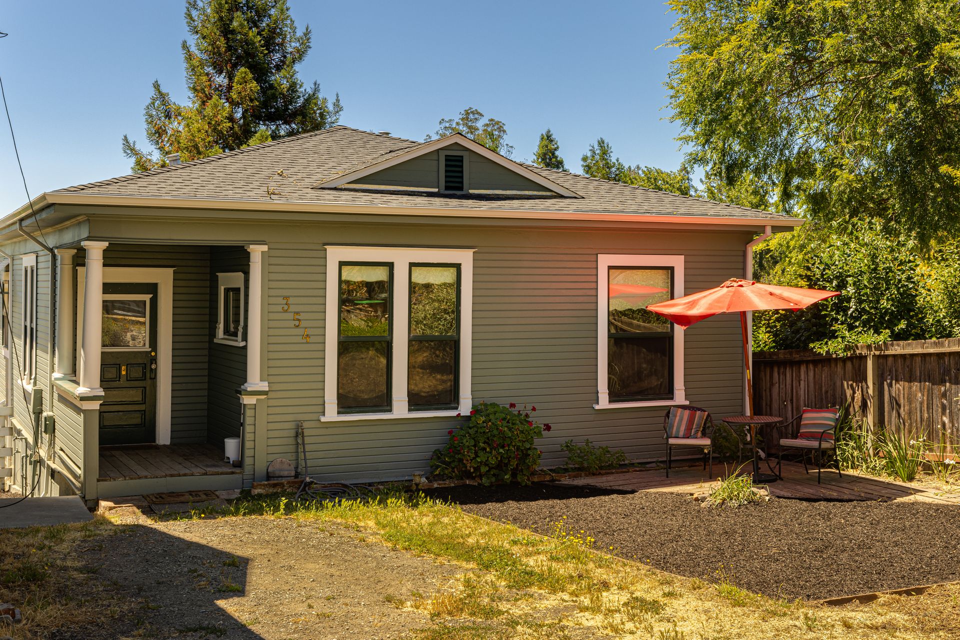 Enjoy three units on this property – a historic, approximately 1,838 square feet main home and detached 1,040 square foot ADU plus a detached garage with an approximately 653 square foot studio above the garage – located on over one-half of an acre lot. The main home is a remodeled single-story with three bedrooms and two bathrooms. Find a recently painted interior and exterior along with a newly installed 50-year roof and gutters, a HVAC including ducting (ready for air conditioning), an on-demand water heater, newer plumbing, electrical and flooring throughout and a newly built front fence and deck. Foundation and chimney repairs have been made. Dual-pane windows and custom-built windows are found along the east wall (dining and living room). Don’t miss the newly updated kitchen, primary bathroom and laundry room. 354 Adobe Road, the detached ADU, features two bedrooms, one bath, newer plumbing and electric, a water heater, dual-pane windows, a 50-year roof and a rear deck. The detached studio above garage offers an on-demand water heater, an updated kitchen faucet, ample storage, a laundry room with a washer and dryer and an electric fireplace for a heat source. There is also a detached office with electricity and a phone line. The shed is in backyard and there are city services.