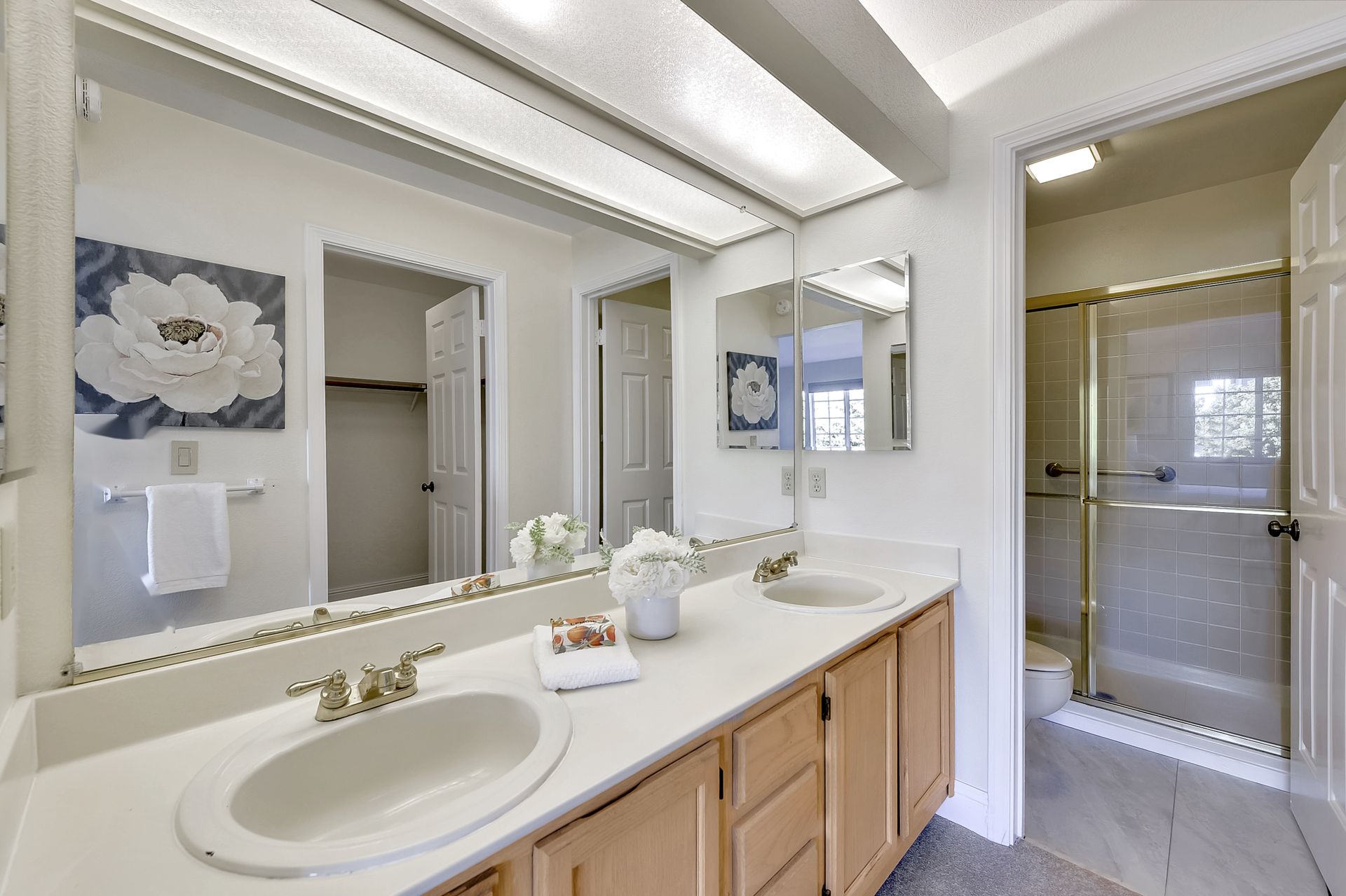 A beautifully appointed and rarely available end unit has just come on the market in the well-maintained Troon Way complex! This fantastic split-level abode offers 3 bedrooms and 2 baths that includes a spacious primary suite w balcony, walk-in closet, dual sink vanity, and shower. The 2nd bedroom offers a roomy closet and sliding glass doors that also access the balcony. This level has the convenience of a washer/dryer closet by the 2nd bathroom and just down the hall from the 3rd bedroom.