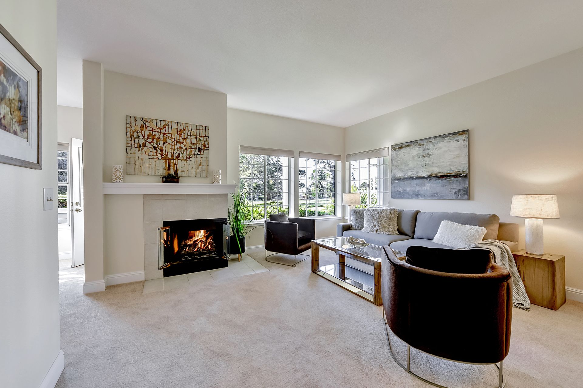 A lovely living room welcomes you as you enter, with gas fireplace and views of the 4th Fairway on the Half Moon Bay Golf Links! New paint and carpets throughout, bright kitchen that opens to the living room and dining areas. Relax in the fenced side patio. 2-car attached garage with storage closet. This unit is located close to the coastal trail and beach access is just down the street right off of Miramontes Point Road. Enjoy world-class ocean front vistas at the neighboring Ritz-Carlton resort that offers convenient parking for easy coastal trail access. Affordable HOA, just $335/mo. This one will not last long! Come and see 360 Troon Way.