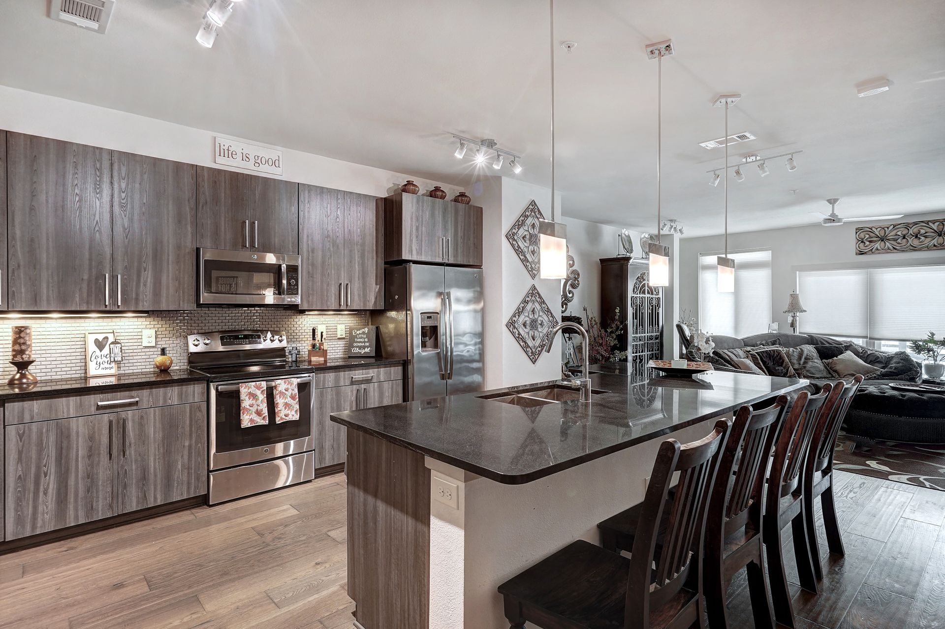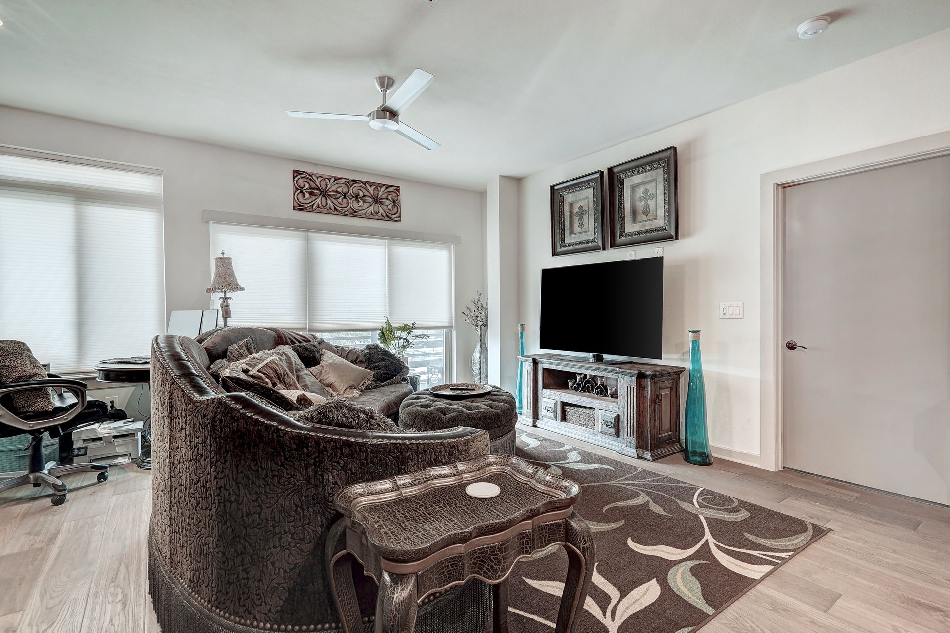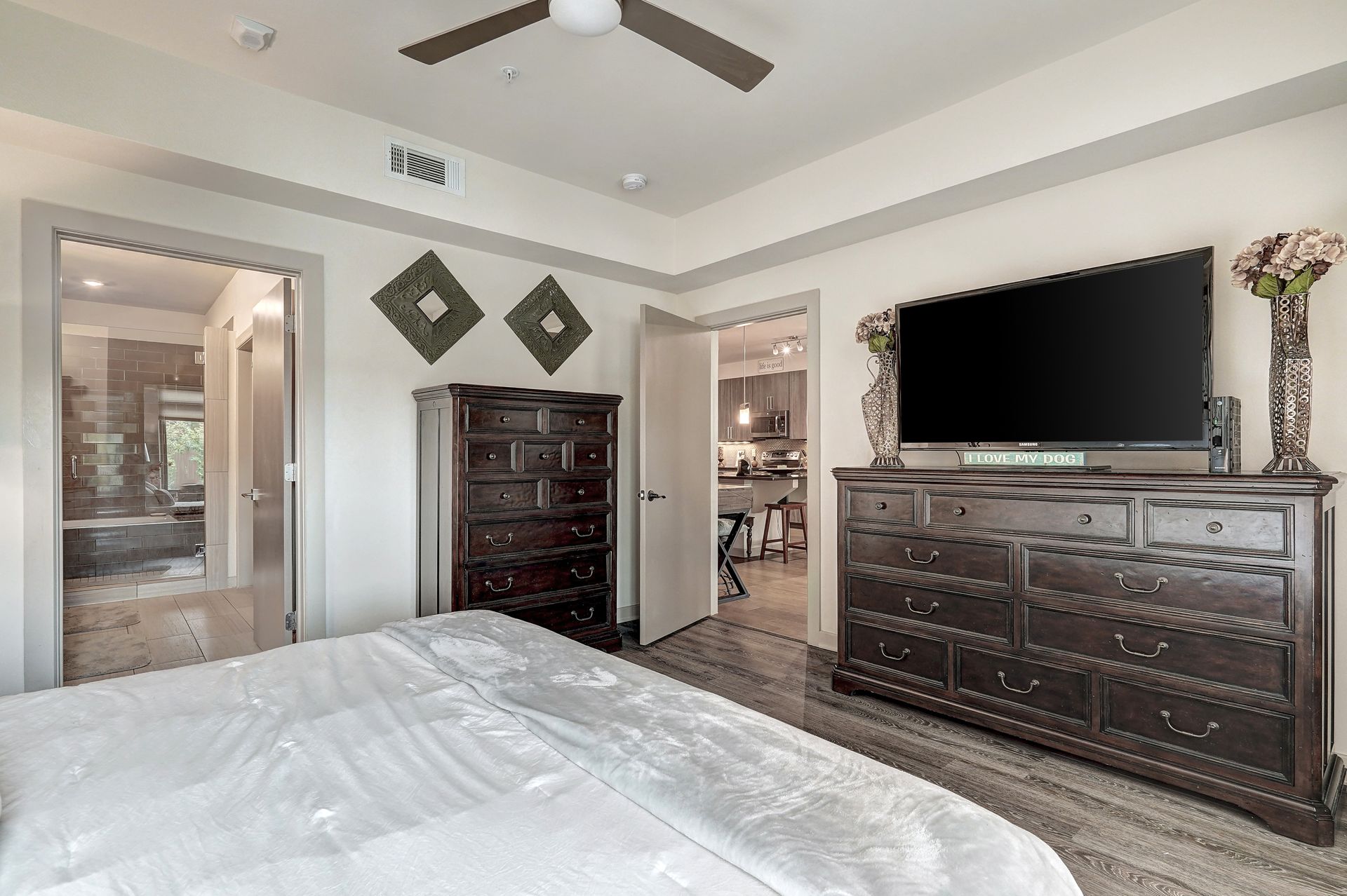All about location! This gorgeous condominium residence built in 2016 is situated next to the Barton Creek Greenbelt off South Lamar in Austin, Texas. Gorgeous open floor plan features a relaxing 150 SF terrace, modern large bedroom with a fantastic walk-in closet. Contemporary primary bathroom with double sinks and walk-in shower-tub combo meant for a spa-like experience. Large amount of quartz counterspace. Abundance of natural light all over with custom window treatments for privacy. Urban style ceiling fan and lighting throughout unit. Wine fridge, 9'1" ceilings and Nest thermostat. Unit is pre-wired with CAT-6 for high-speed video, offers wall mounted T.V outlets and under cabinet lighting. Community Amenities include negative-edge pool, deck & outdoor kitchen.