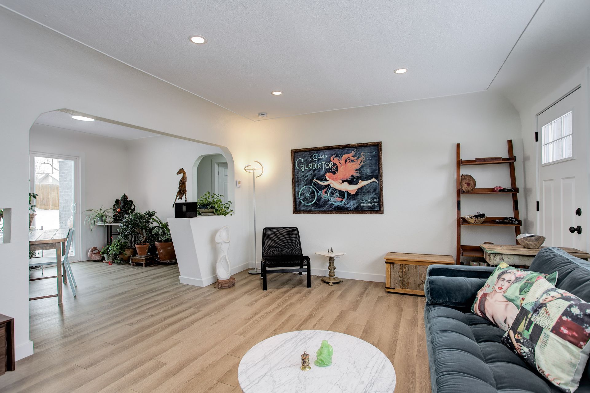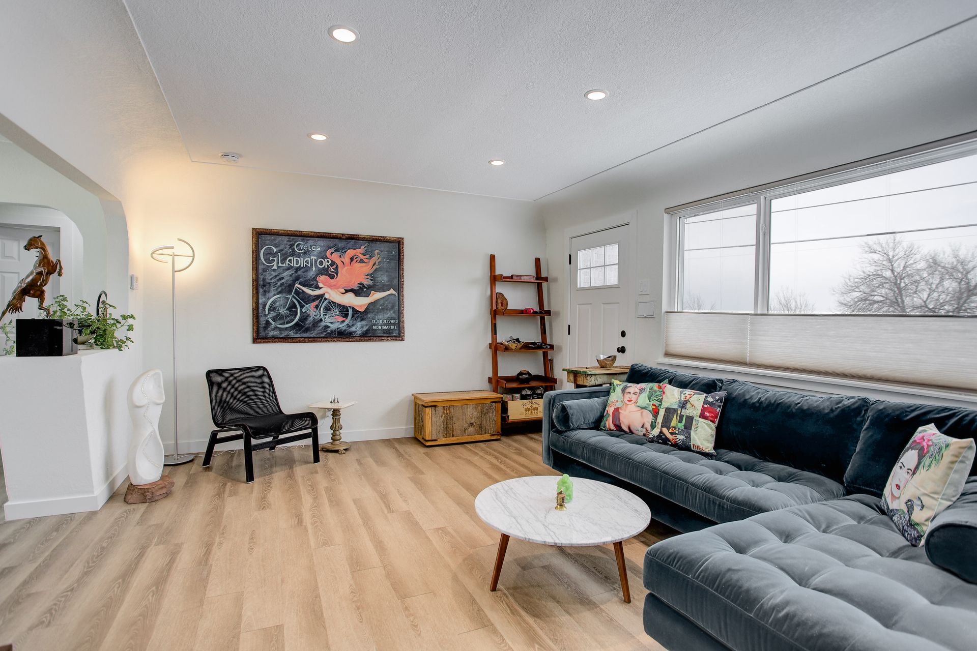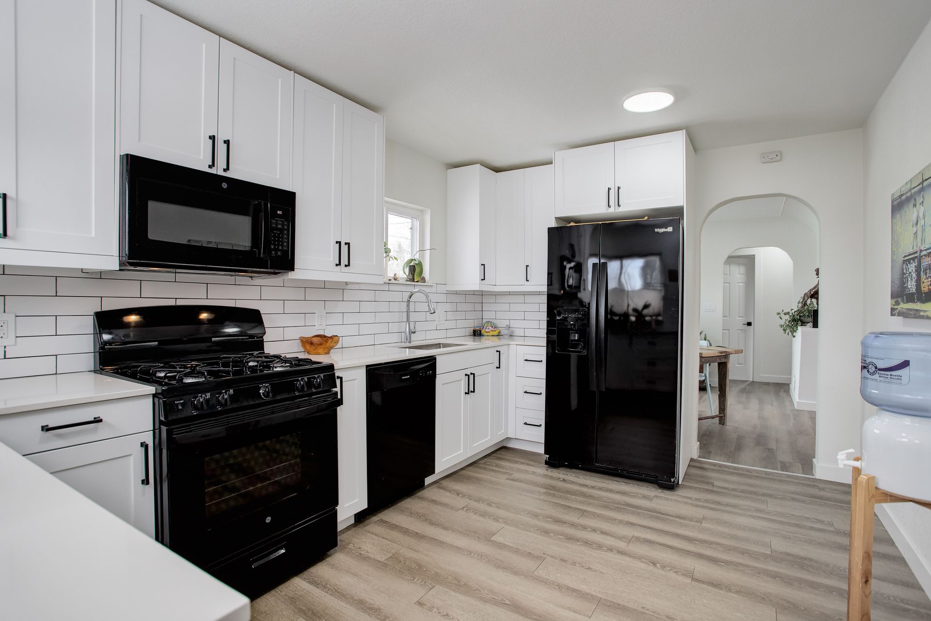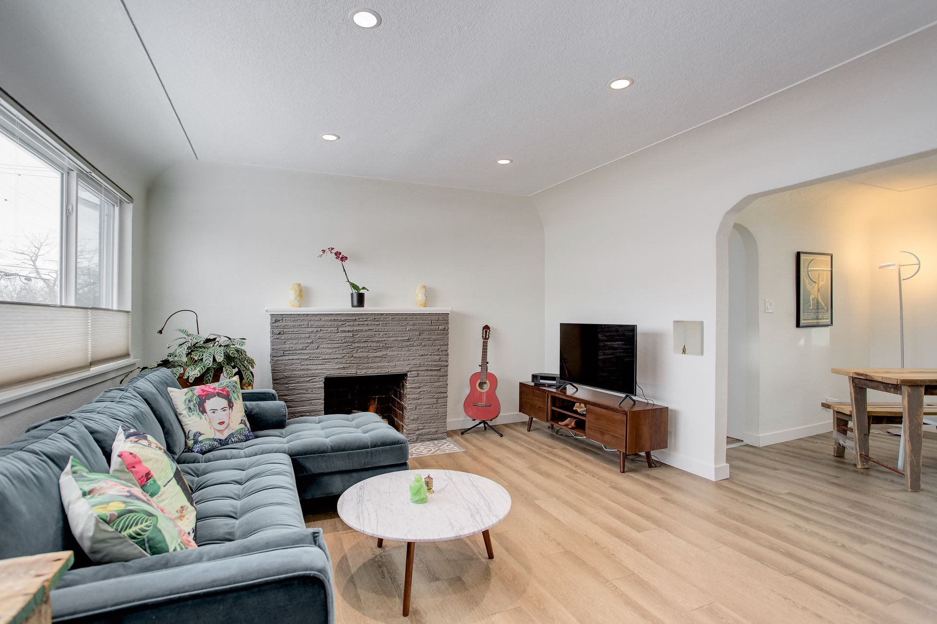 Outstanding opportunity to relax in your own beautifully renovated home surrounded by a huge, fully landscaped yard with tasteful new fencing, sod and sprinkler system. The elegant 2022 remodel includes quartz countertops, soft close cabinets, all new flooring, fixtures, lighting, a fireplace insert, high end custom shades (bottom up/top down), appliances and fresh paint. Light flooded rooms with nine-foot ceilings and arches create a spacious sense of home. Recent full inspection and sewer scope reports available.