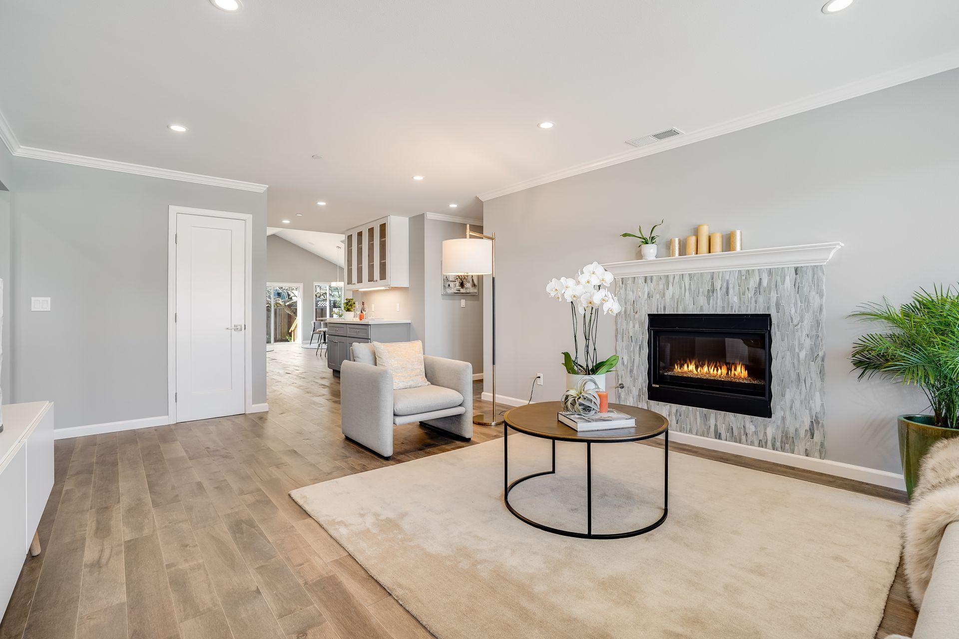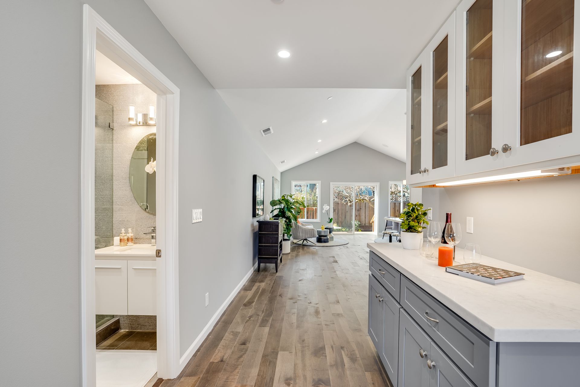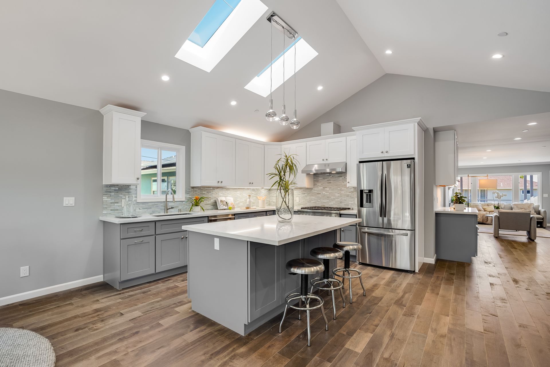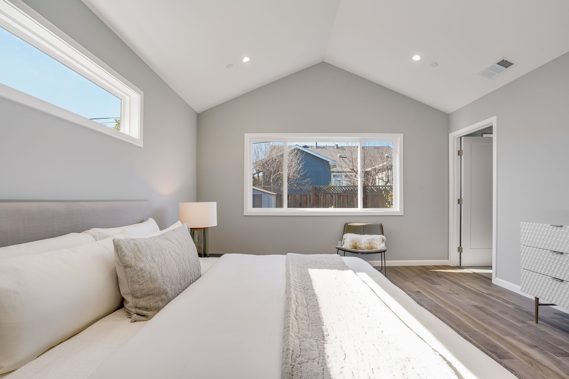 STUNNING San Mateo Village modern masterpiece on one of the most desirable streets in the neighborhood. Expanded and completely renovated 4BD, 3BA house with a fabulous floor plan maximizing comfort with an open concept flow. Fantastic large chef's kitchen w/Thermador 36" range & dishwasher, Zephyr vent hood, ample cabinetry, and an island ready to entertain your family and friends. You'll love the high vaulted ceilings illuminating natural light into the kitchen/family/dining great room. Beautiful maple hardwood floors, LED recessed lighting, and energy efficient features throughout. Your spacious master BD sanctuary has 2 closets, an incredible BA ensuite w/double sink vanities, LED mirror, and luxurious tiled shower. All 3 full bathrooms have gorgeous glass, subway, ceramic, limestone tile work furnished with Hansgrohe fixtures.