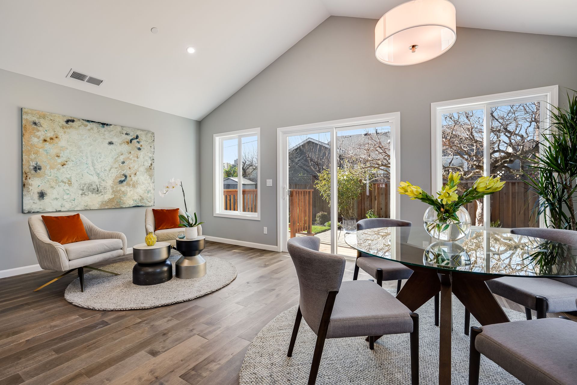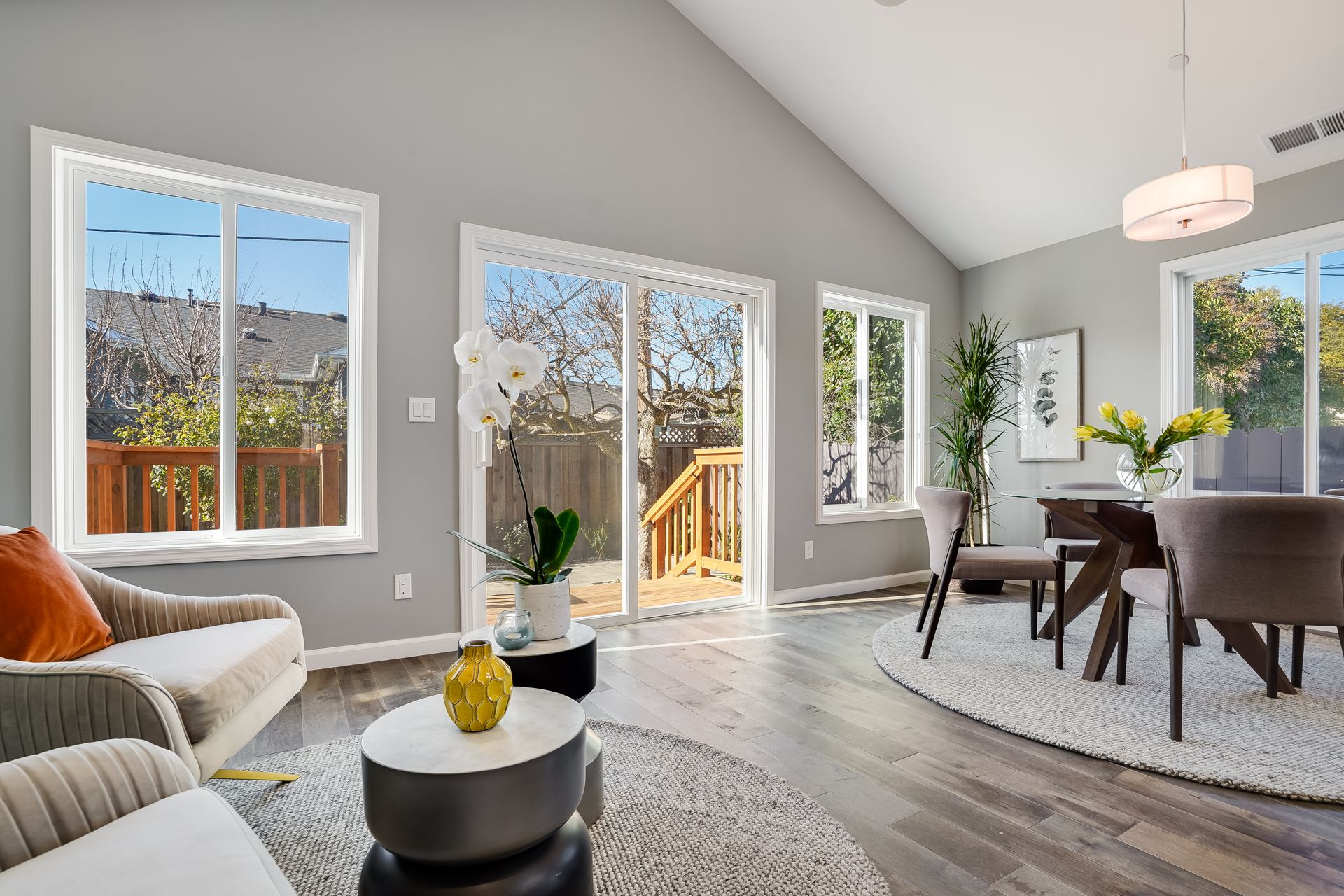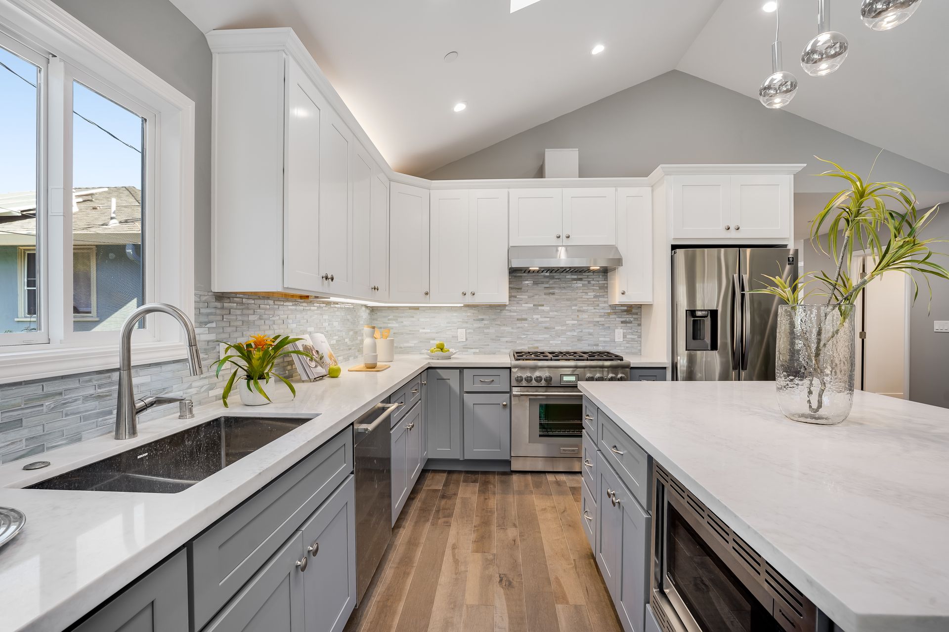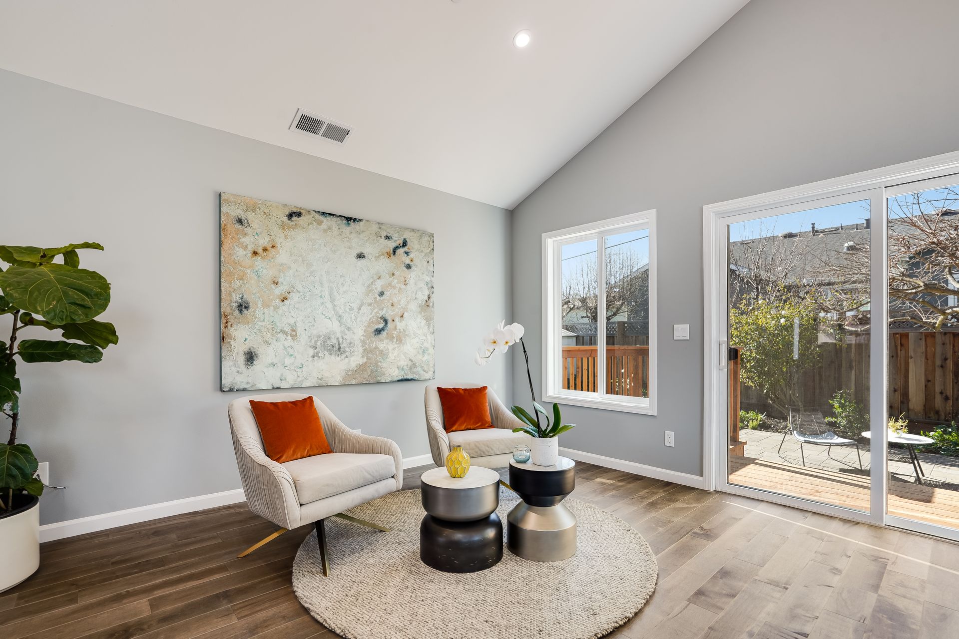 STUNNING San Mateo Village modern masterpiece on one of the most desirable streets in the neighborhood. Expanded and completely renovated 4BD, 3BA house with a fabulous floor plan maximizing comfort with an open concept flow. Fantastic large chef's kitchen w/Thermador 36" range & dishwasher, Zephyr vent hood, ample cabinetry, and an island ready to entertain your family and friends. You'll love the high vaulted ceilings illuminating natural light into the kitchen/family/dining great room. Beautiful maple hardwood floors, LED recessed lighting, and energy efficient features throughout. Your spacious master BD sanctuary has 2 closets, an incredible BA ensuite w/double sink vanities, LED mirror, and luxurious tiled shower. All 3 full bathrooms have gorgeous glass, subway, ceramic, limestone tile work furnished with Hansgrohe fixtures.