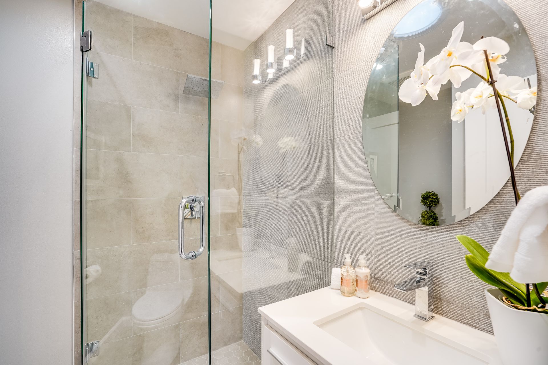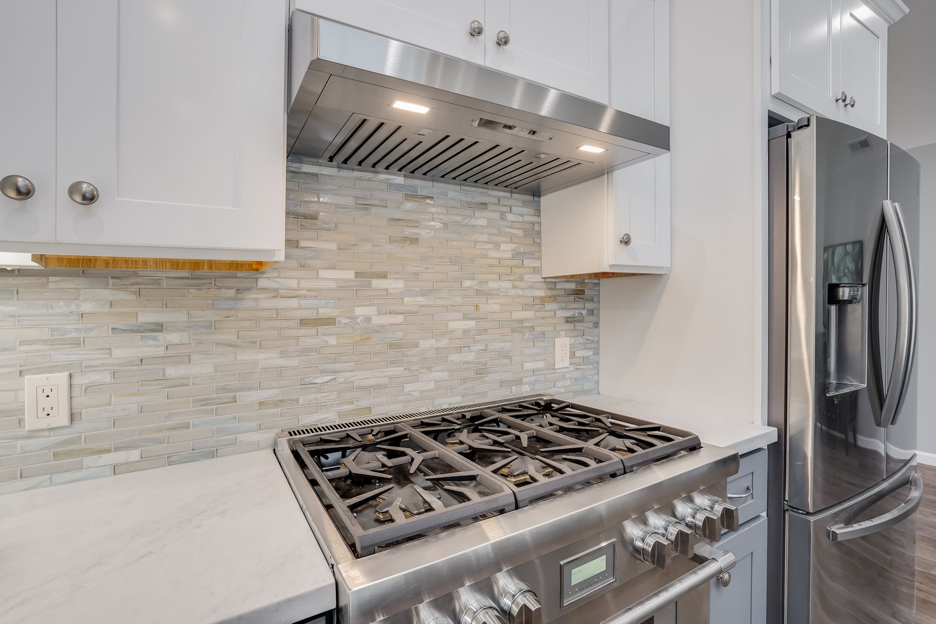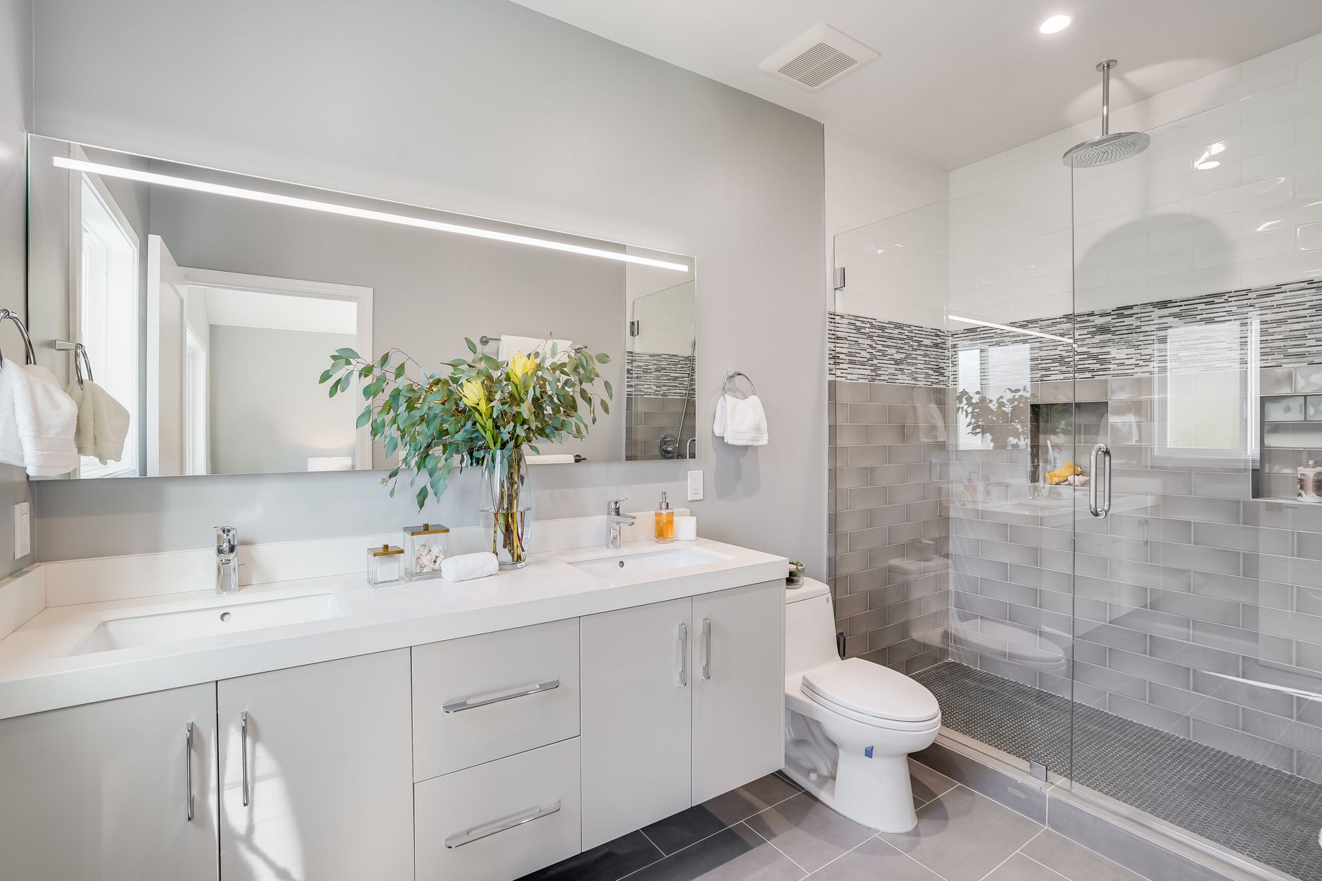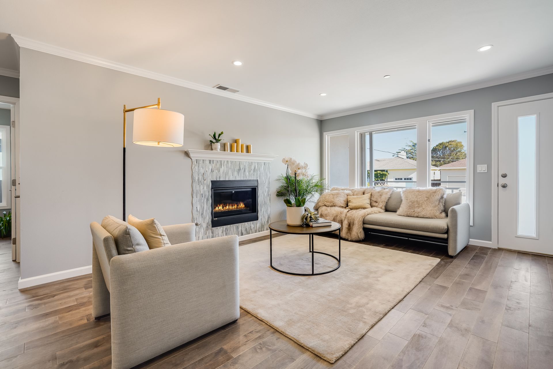 STUNNING San Mateo Village modern masterpiece on one of the most desirable streets in the neighborhood. Expanded and completely renovated 4BD, 3BA house with a fabulous floor plan maximizing comfort with an open concept flow. Fantastic large chef's kitchen w/Thermador 36" range & dishwasher, Zephyr vent hood, ample cabinetry, and an island ready to entertain your family and friends. You'll love the high vaulted ceilings illuminating natural light into the kitchen/family/dining great room. Beautiful maple hardwood floors, LED recessed lighting, and energy efficient features throughout. Your spacious master BD sanctuary has 2 closets, an incredible BA ensuite w/double sink vanities, LED mirror, and luxurious tiled shower. All 3 full bathrooms have gorgeous glass, subway, ceramic, limestone tile work furnished with Hansgrohe fixtures.