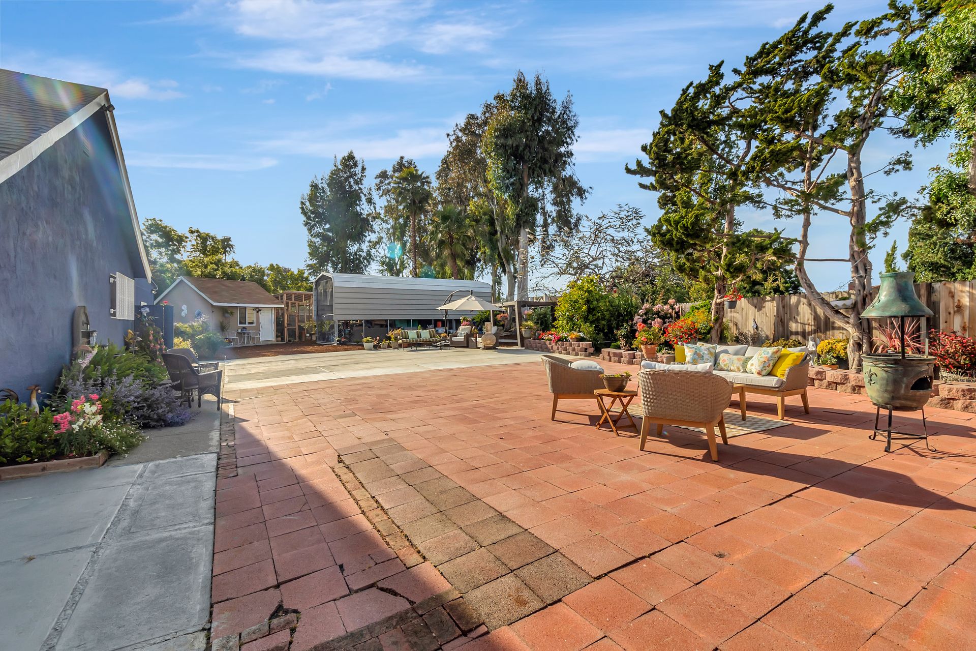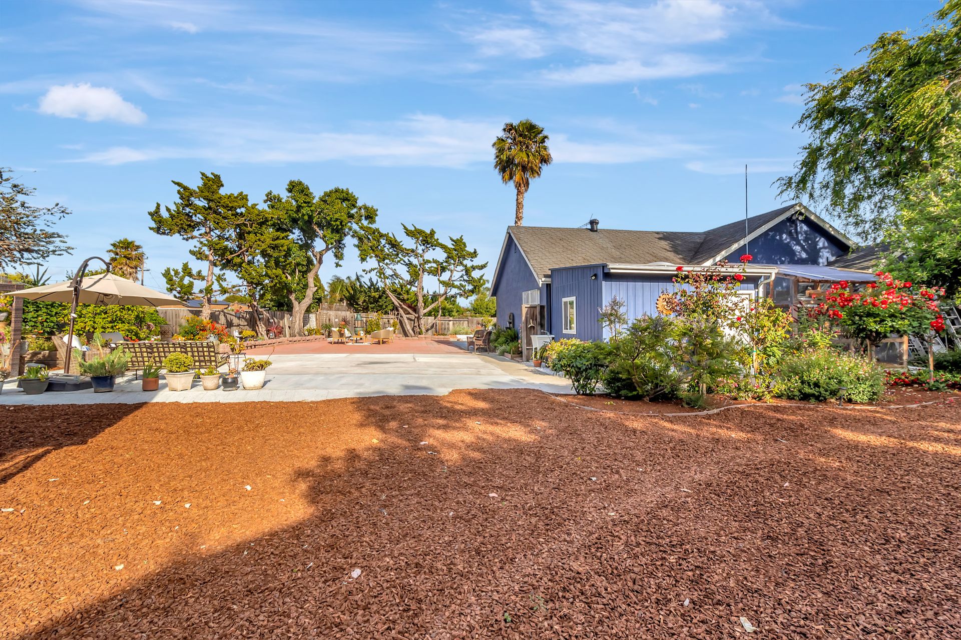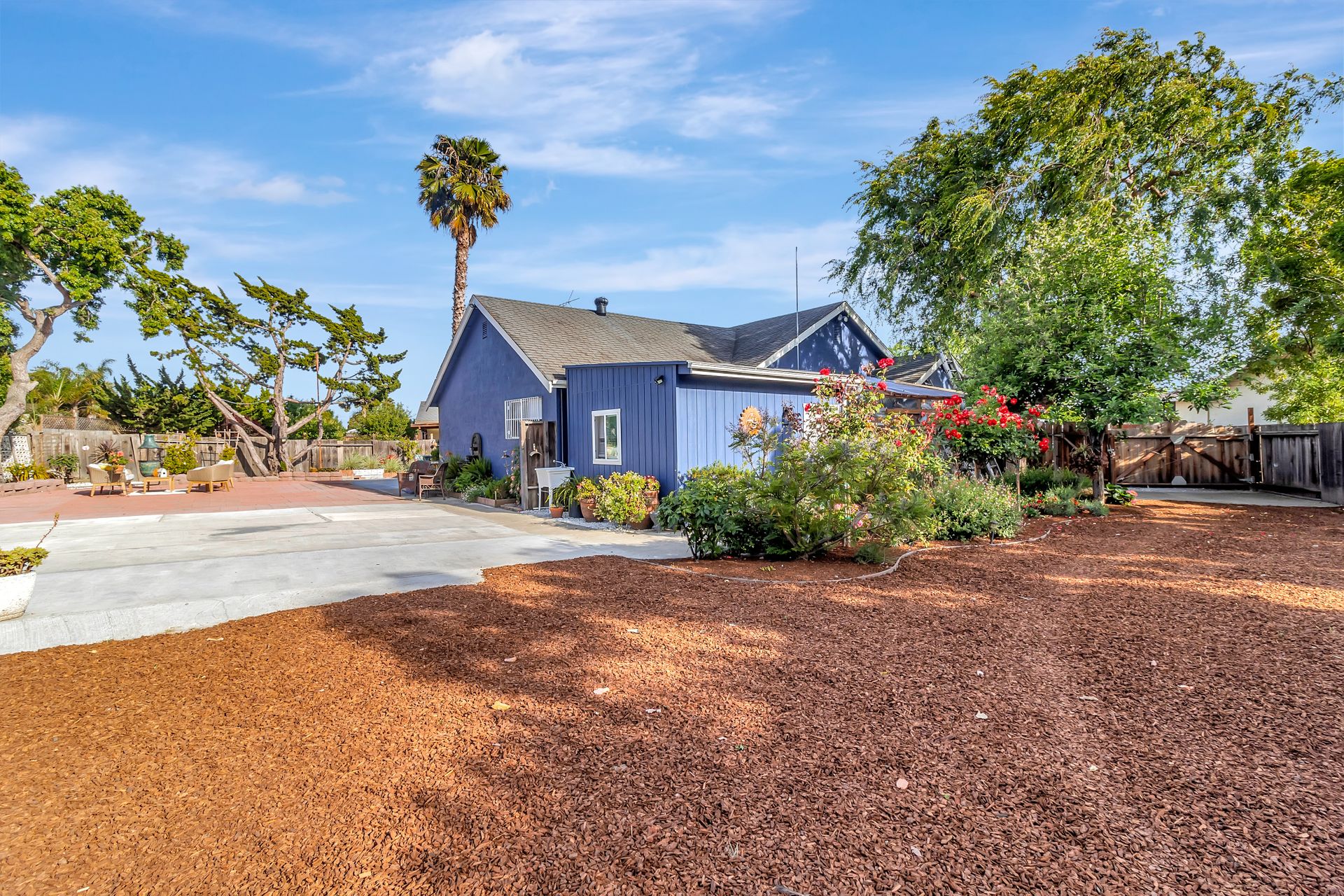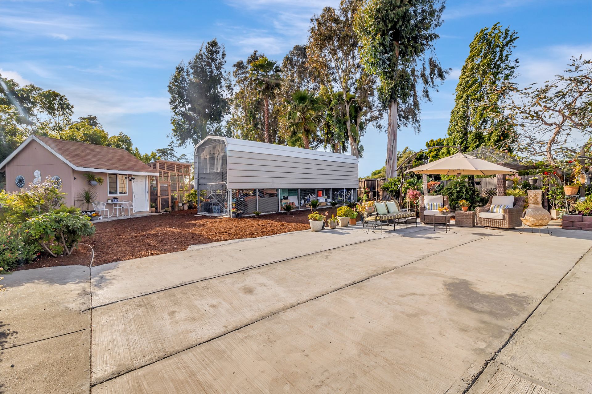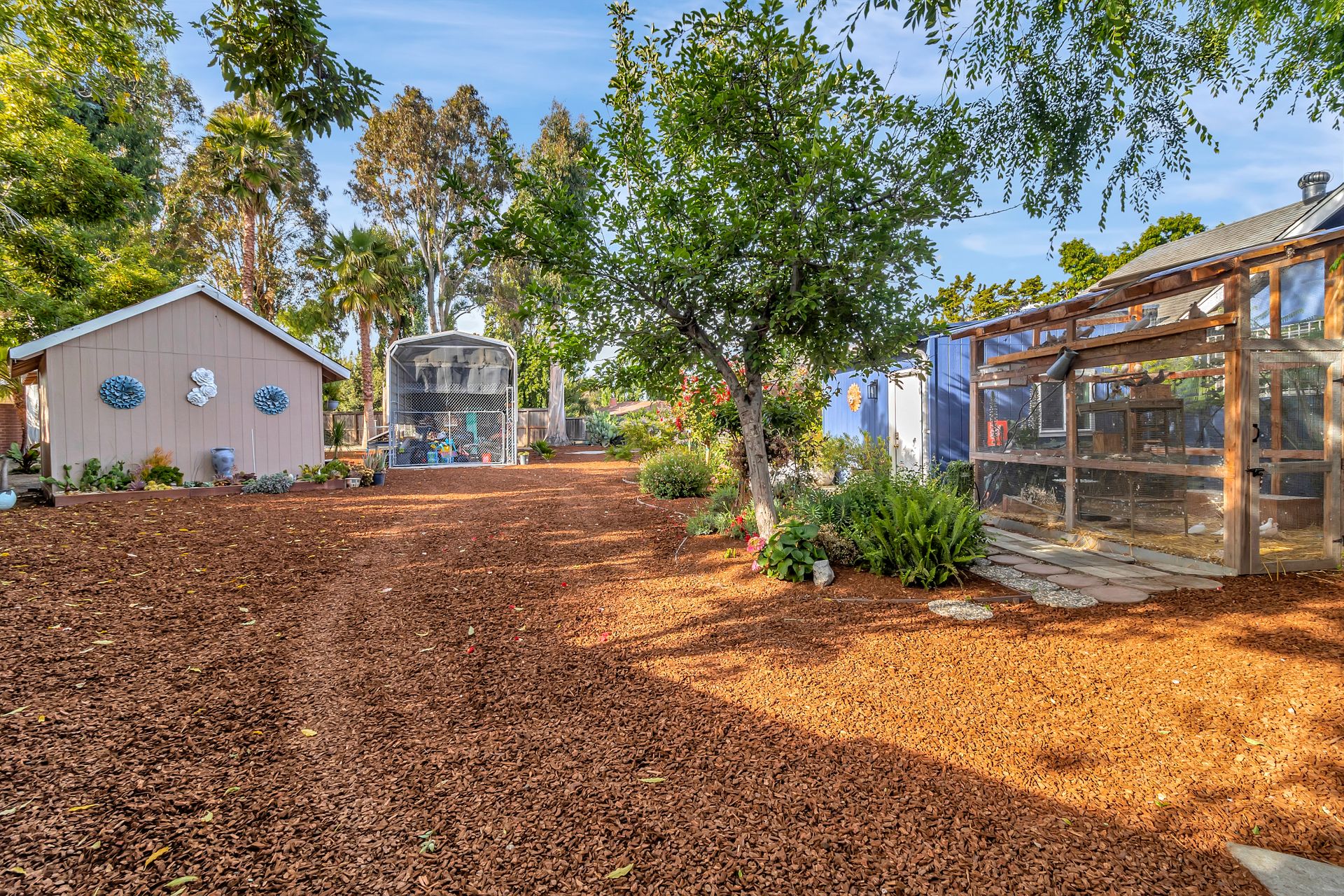 Nestled at the end of a peaceful cul-de-sac this rare gem offers endless opportunities. The parklike lot spans an impressive approximately 16,800 square feet with room for an expansion, pool and a detached ADU. The approximately 1,606 square foot home is four bedrooms and two bathrooms. The landscaped entrance welcomes you home with dozens of California native plants and trees. Two long driveways have offer parking for up-to six cars. Enter the front door to be greeted by a freestanding island with white quartzite countertops and a spacious chef’s kitchen that any seasoned cook would be proud to call their own. Updated cabinets with more than ample storage and countertop space. Modern stainless steel Wi-Fi refrigerator with large built-in monitor to watch your favorite cooking shows, built-in double wall oven and gas cooktop with stylish wall-mounted steel chimney hood. Enjoy a fancy dinner with guests in the separate formal dining room or pick a more relaxed feel and eat dinner at the kitchen countertop bar. The living room offers a wood-burning stove to warm the home on a cold winter evening where you can enjoy a book and glass of wine by the fire. Luxury vinyl floors were installed throughout the home with updated bathrooms. The expansive parklike backyard is landscaped with mature roses, countless succulents, flowerbeds, palm trees and eucalyptus trees. Two large tough sheds that are completely sheet rocked on the inside for all your storage needs and an enclosed coop to house your chickens that can lay fresh eggs for you daily. There is a huge custom-built RV covered carport awaiting your RV and mechanical toys. Special bonus kitchen, bathroom and bedroom to welcome guests for an extended overnight stay.