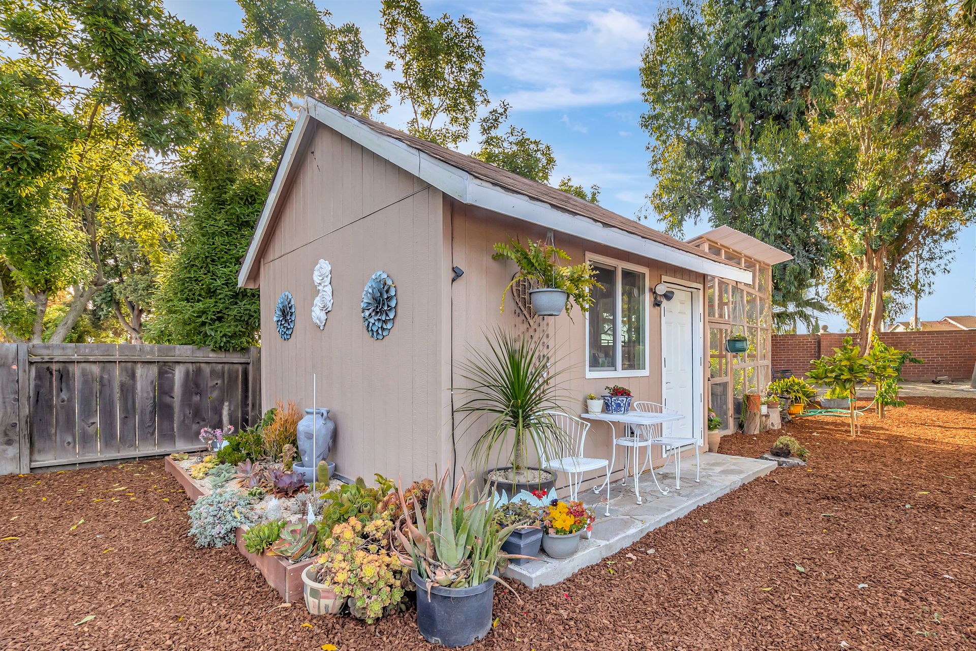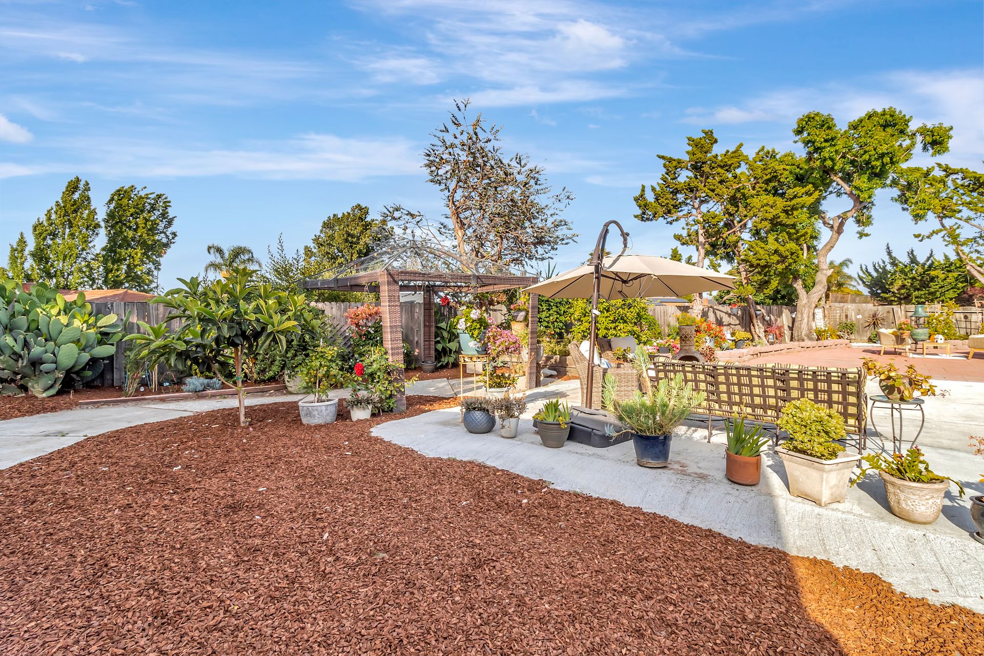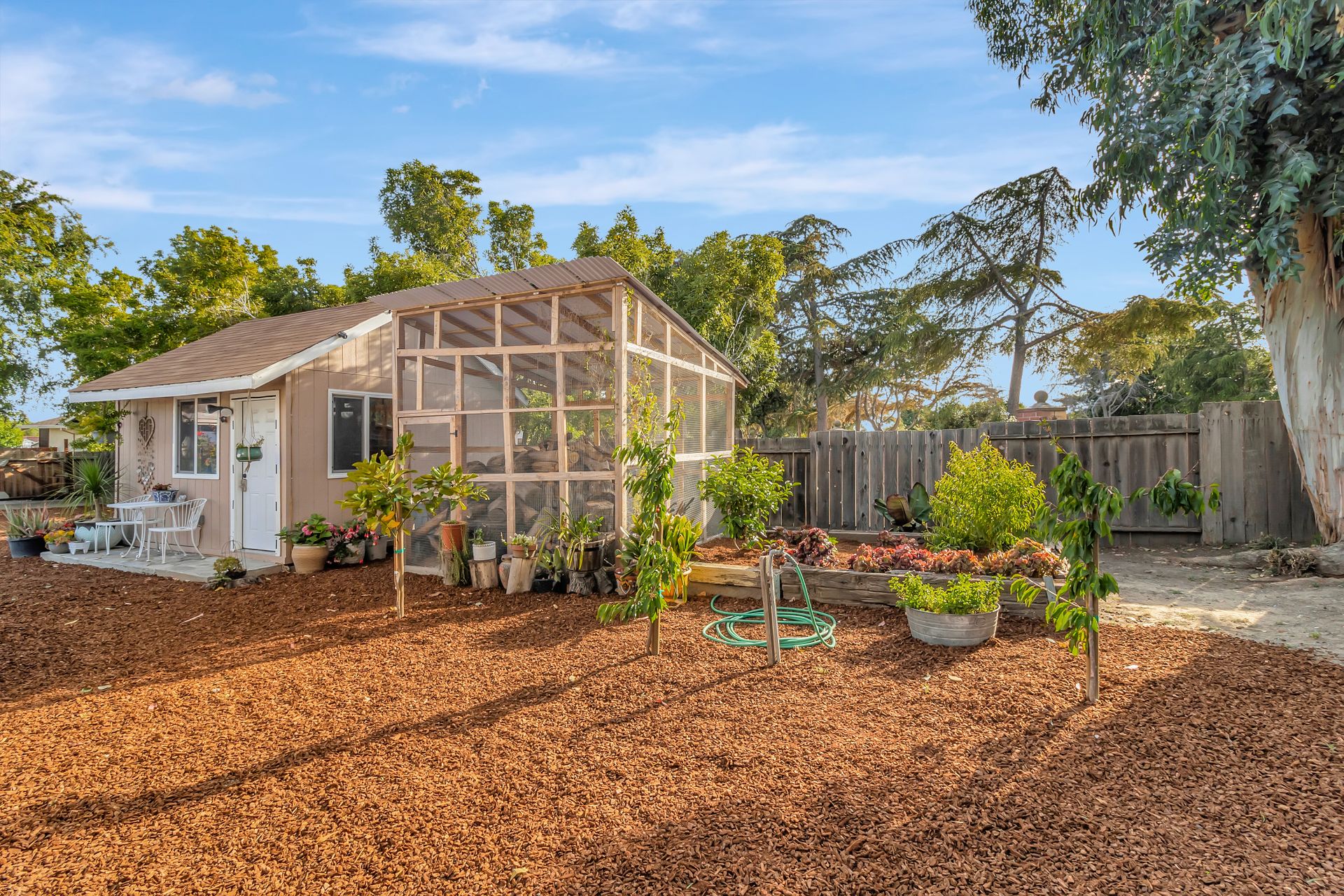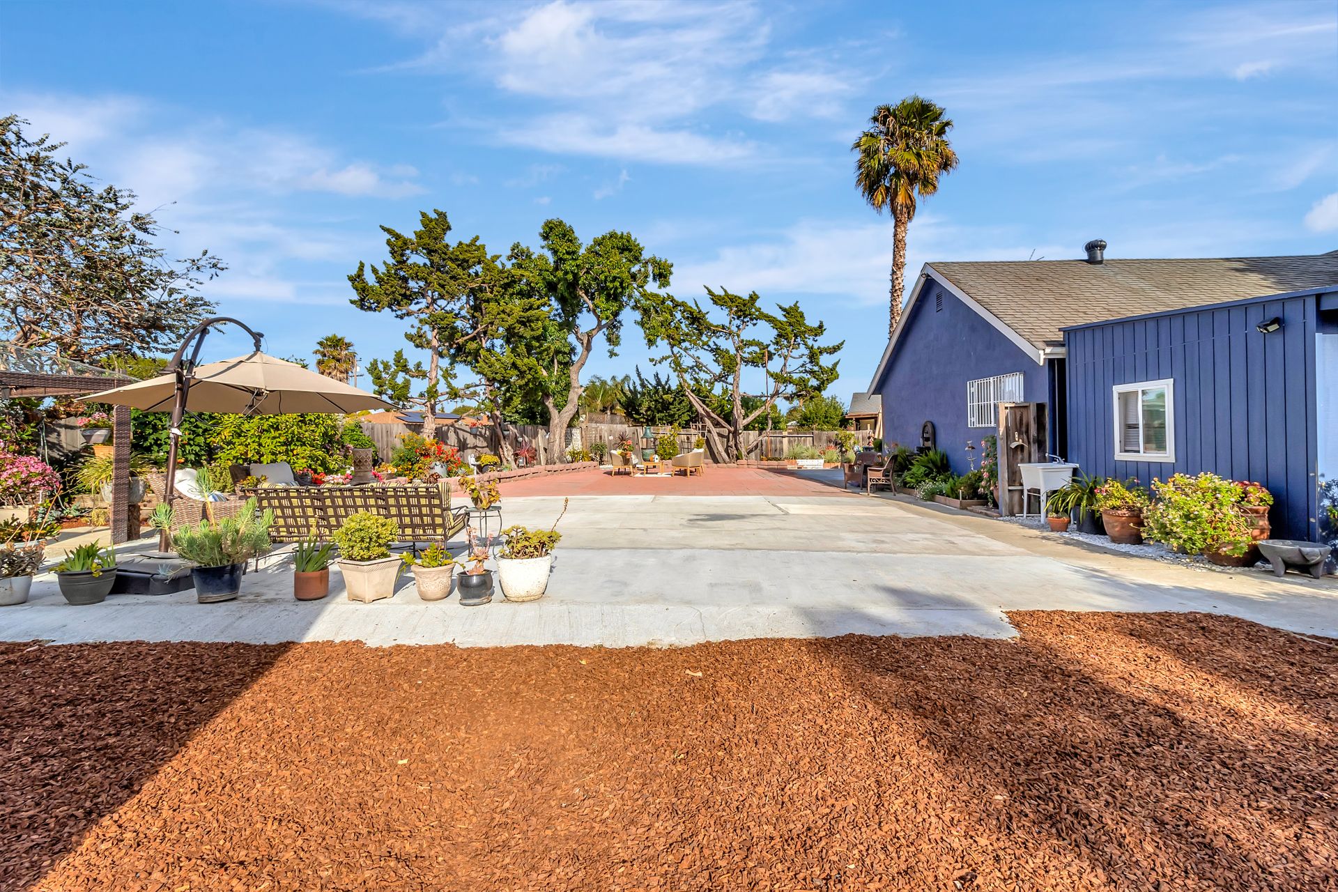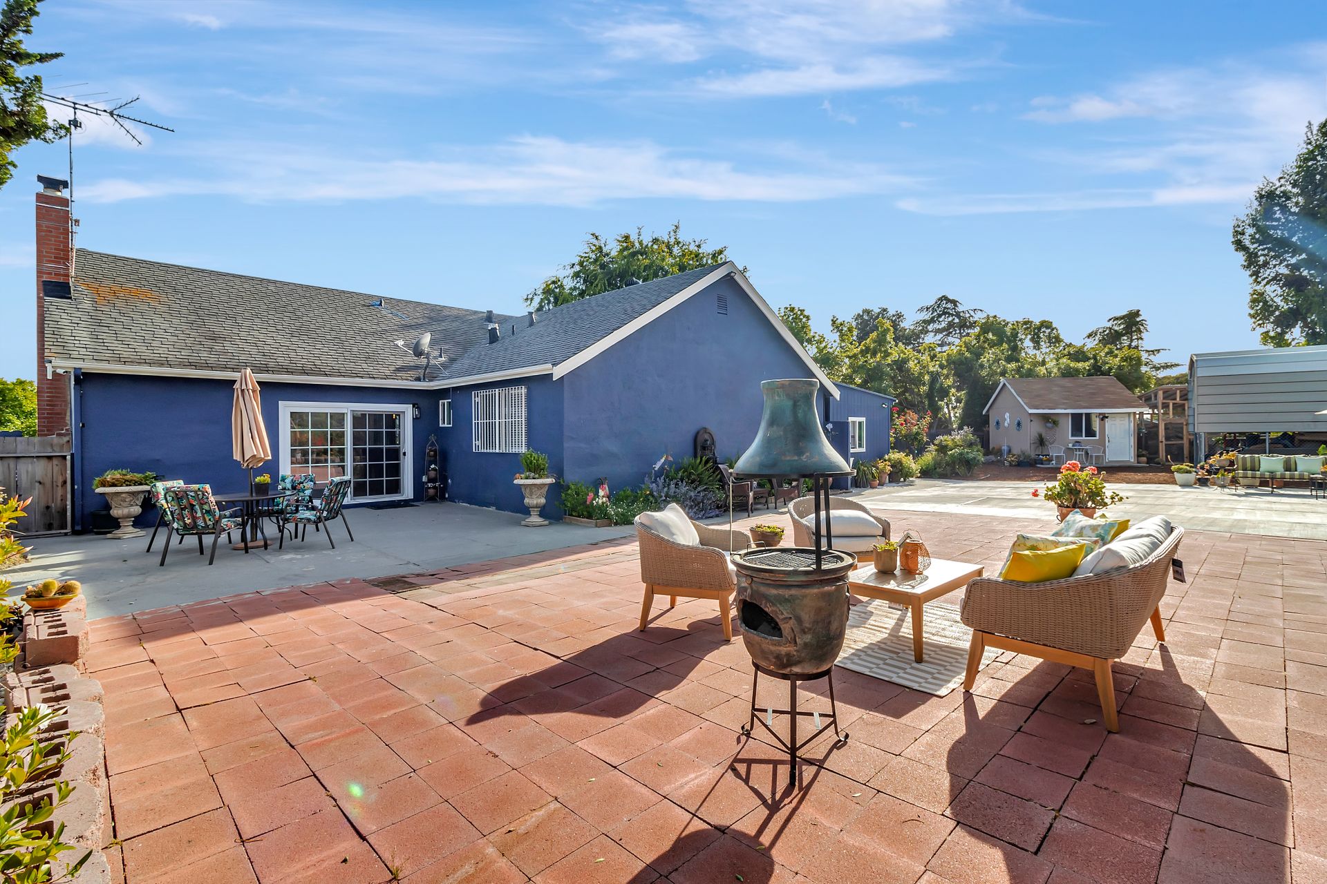 Nestled at the end of a peaceful cul-de-sac this rare gem offers endless opportunities. The parklike lot spans an impressive approximately 16,800 square feet with room for an expansion, pool and a detached ADU. The approximately 1,606 square foot home is four bedrooms and two bathrooms. The landscaped entrance welcomes you home with dozens of California native plants and trees. Two long driveways have offer parking for up-to six cars. Enter the front door to be greeted by a freestanding island with white quartzite countertops and a spacious chef’s kitchen that any seasoned cook would be proud to call their own. Updated cabinets with more than ample storage and countertop space. Modern stainless steel Wi-Fi refrigerator with large built-in monitor to watch your favorite cooking shows, built-in double wall oven and gas cooktop with stylish wall-mounted steel chimney hood. Enjoy a fancy dinner with guests in the separate formal dining room or pick a more relaxed feel and eat dinner at the kitchen countertop bar. The living room offers a wood-burning stove to warm the home on a cold winter evening where you can enjoy a book and glass of wine by the fire. Luxury vinyl floors were installed throughout the home with updated bathrooms. The expansive parklike backyard is landscaped with mature roses, countless succulents, flowerbeds, palm trees and eucalyptus trees. Two large tough sheds that are completely sheet rocked on the inside for all your storage needs and an enclosed coop to house your chickens that can lay fresh eggs for you daily. There is a huge custom-built RV covered carport awaiting your RV and mechanical toys. Special bonus kitchen, bathroom and bedroom to welcome guests for an extended overnight stay.