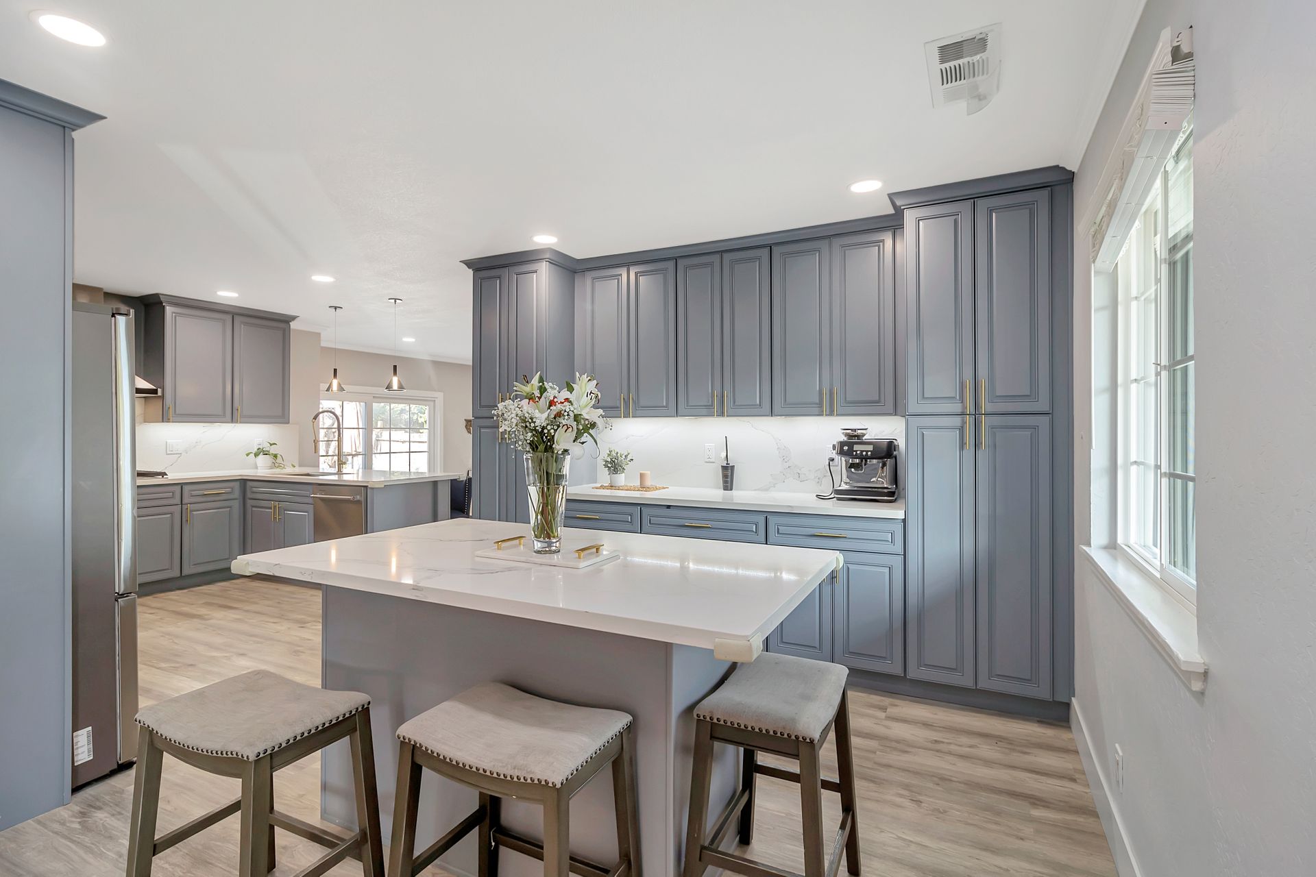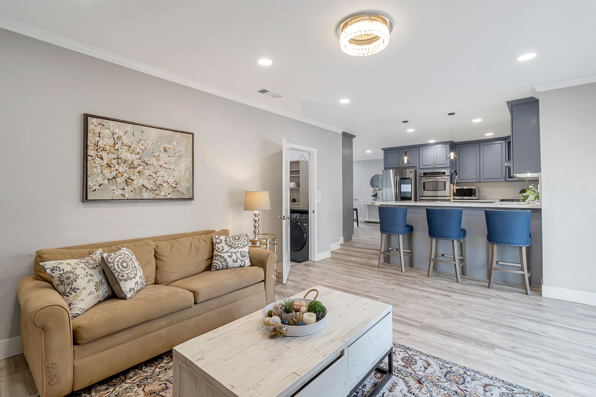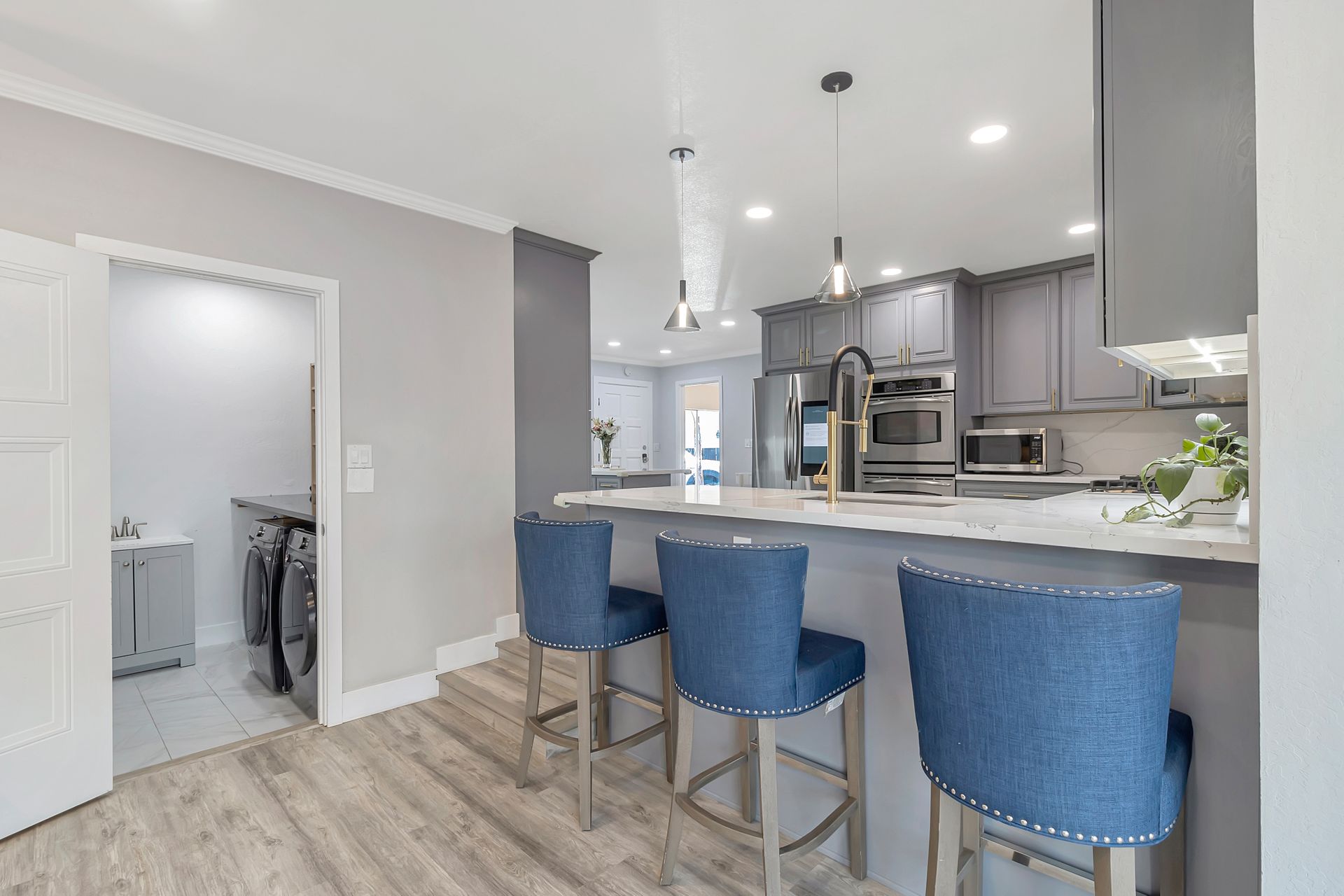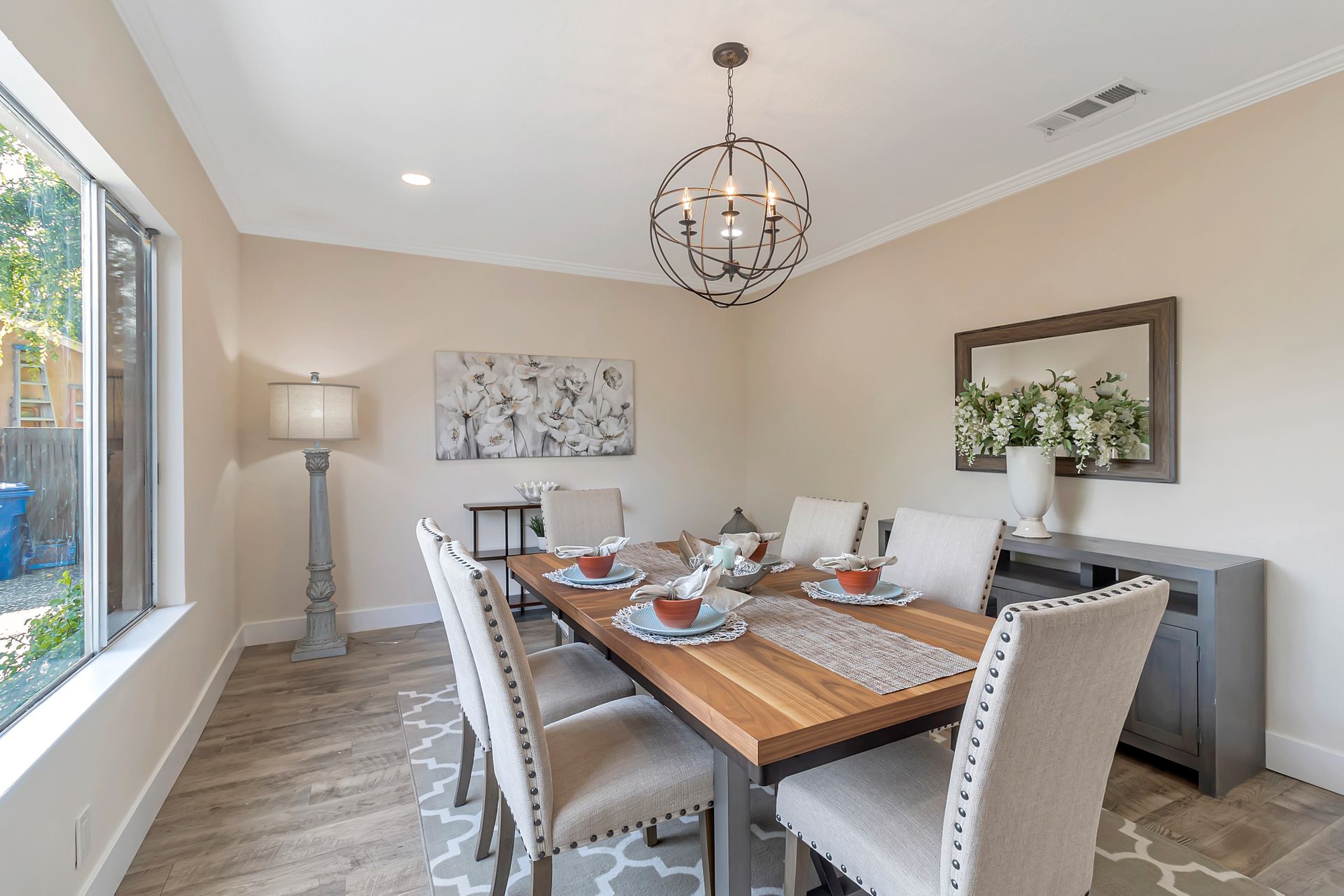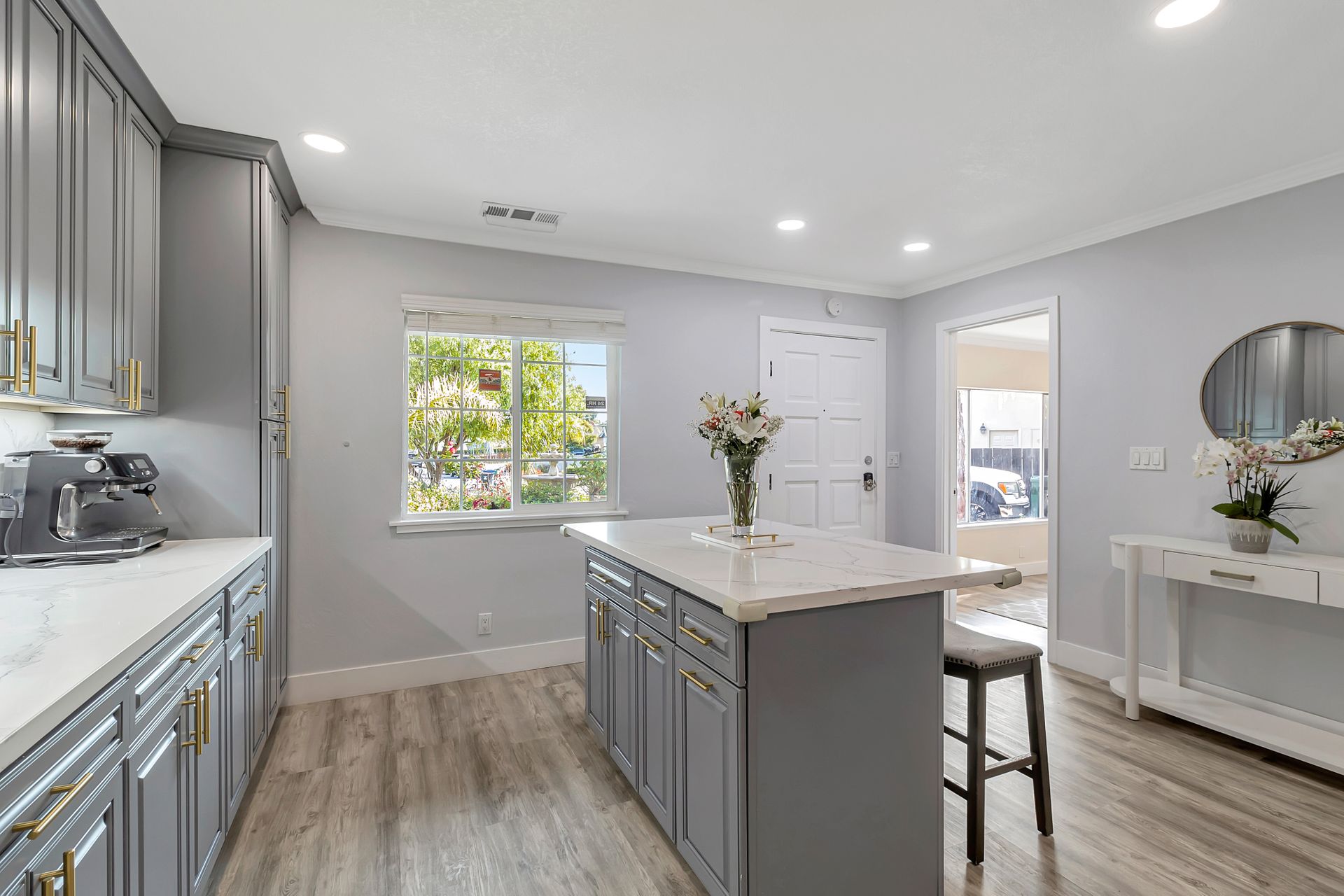 Nestled at the end of a peaceful cul-de-sac this rare gem offers endless opportunities. The parklike lot spans an impressive approximately 16,800 square feet with room for an expansion, pool and a detached ADU. The approximately 1,606 square foot home is four bedrooms and two bathrooms. The landscaped entrance welcomes you home with dozens of California native plants and trees. Two long driveways have offer parking for up-to six cars. Enter the front door to be greeted by a freestanding island with white quartzite countertops and a spacious chef’s kitchen that any seasoned cook would be proud to call their own. Updated cabinets with more than ample storage and countertop space. Modern stainless steel Wi-Fi refrigerator with large built-in monitor to watch your favorite cooking shows, built-in double wall oven and gas cooktop with stylish wall-mounted steel chimney hood. Enjoy a fancy dinner with guests in the separate formal dining room or pick a more relaxed feel and eat dinner at the kitchen countertop bar. The living room offers a wood-burning stove to warm the home on a cold winter evening where you can enjoy a book and glass of wine by the fire. Luxury vinyl floors were installed throughout the home with updated bathrooms. The expansive parklike backyard is landscaped with mature roses, countless succulents, flowerbeds, palm trees and eucalyptus trees. Two large tough sheds that are completely sheet rocked on the inside for all your storage needs and an enclosed coop to house your chickens that can lay fresh eggs for you daily. There is a huge custom-built RV covered carport awaiting your RV and mechanical toys. Special bonus kitchen, bathroom and bedroom to welcome guests for an extended overnight stay.