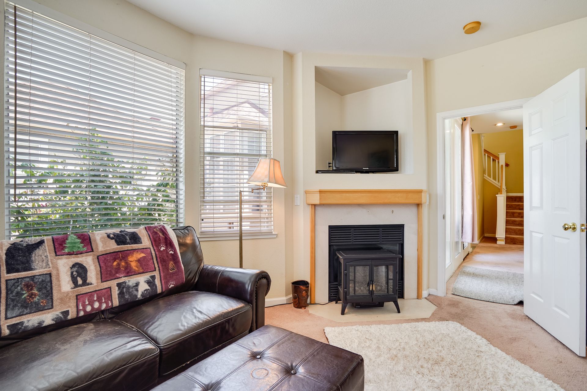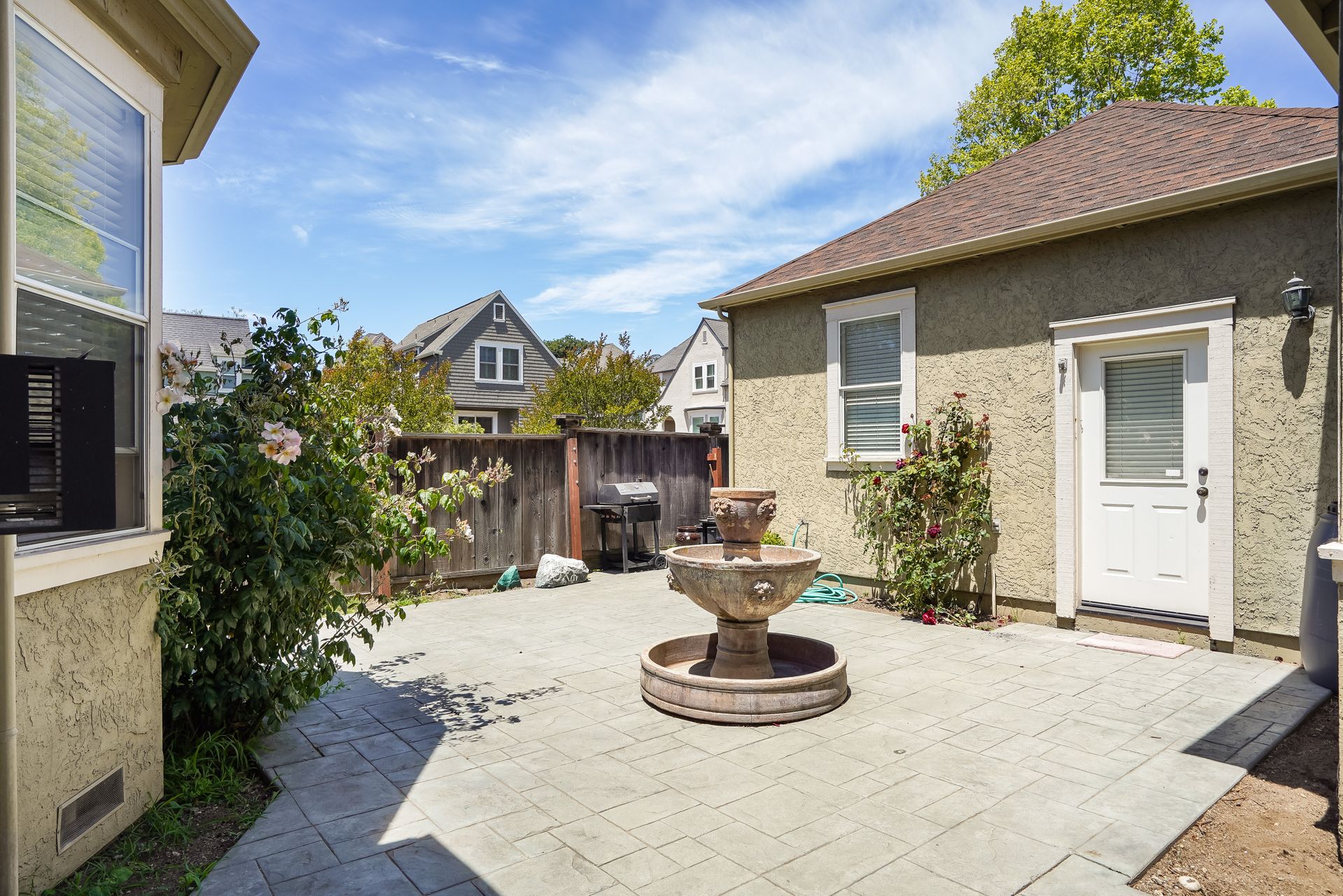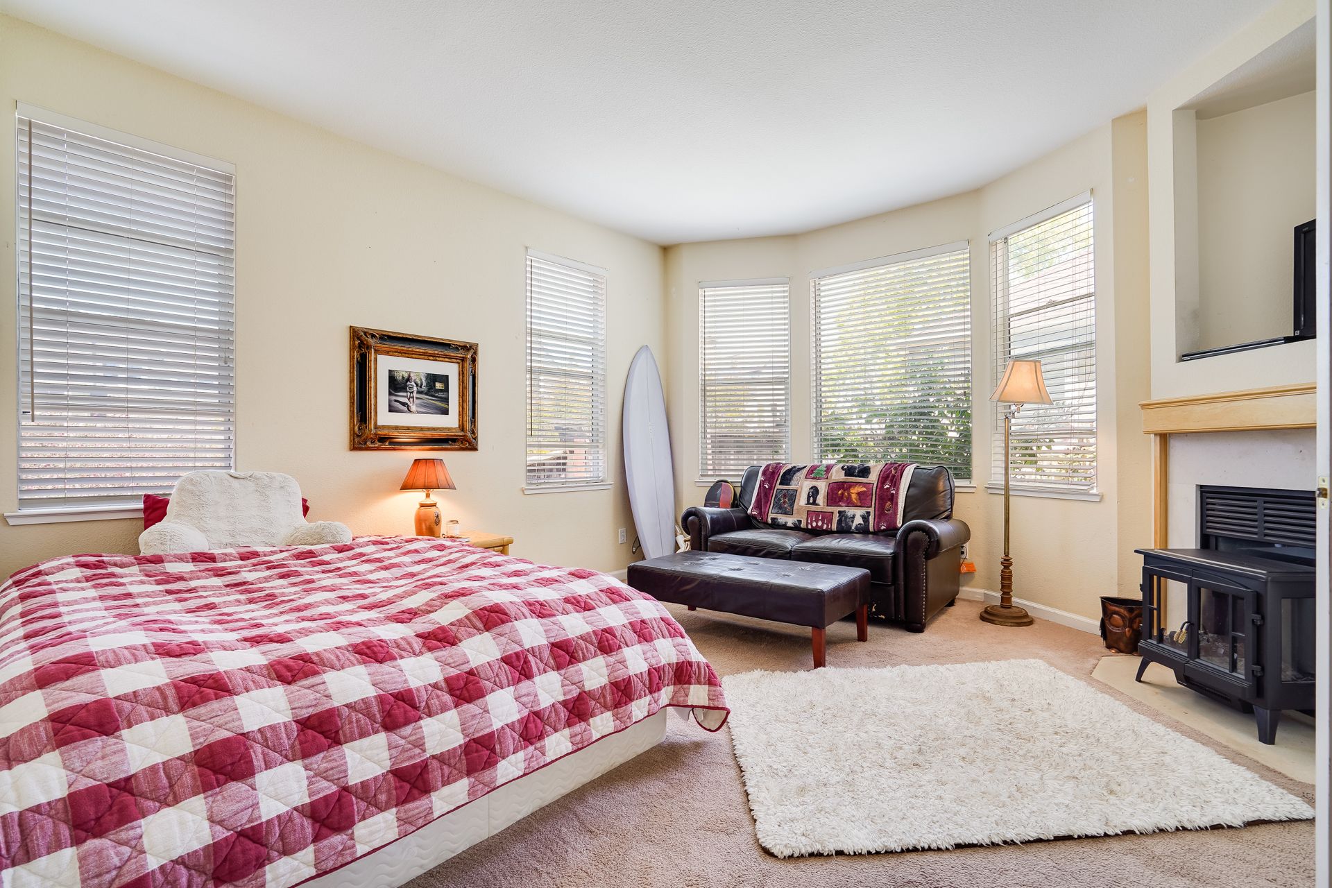 Great Westside location, this property is close to UCSC. This spacious corner home has a great floorplan with approximately 2,300 square feet. Features include four bedrooms that include two master suites. One master is on the ground level and has a fireplace with an insert, a walk-in closet and a master bath with a separate jetted tub. Enjoy high ceilings throughout, a second fireplace in the living room, an inside laundry area, three full baths and one guest bath, a private courtyard to enjoy the sun or entertain and barbeque and a cute front veranda with views of the park area. The open kitchen has granite counters, a center island with a sink and opens to the family room area and additional separate dining area. There is a two-car attached garage plus two extra parking spaces behind the garage. This home is part of the Westmont Place development which features a community pool area. A lot of home in a great location.