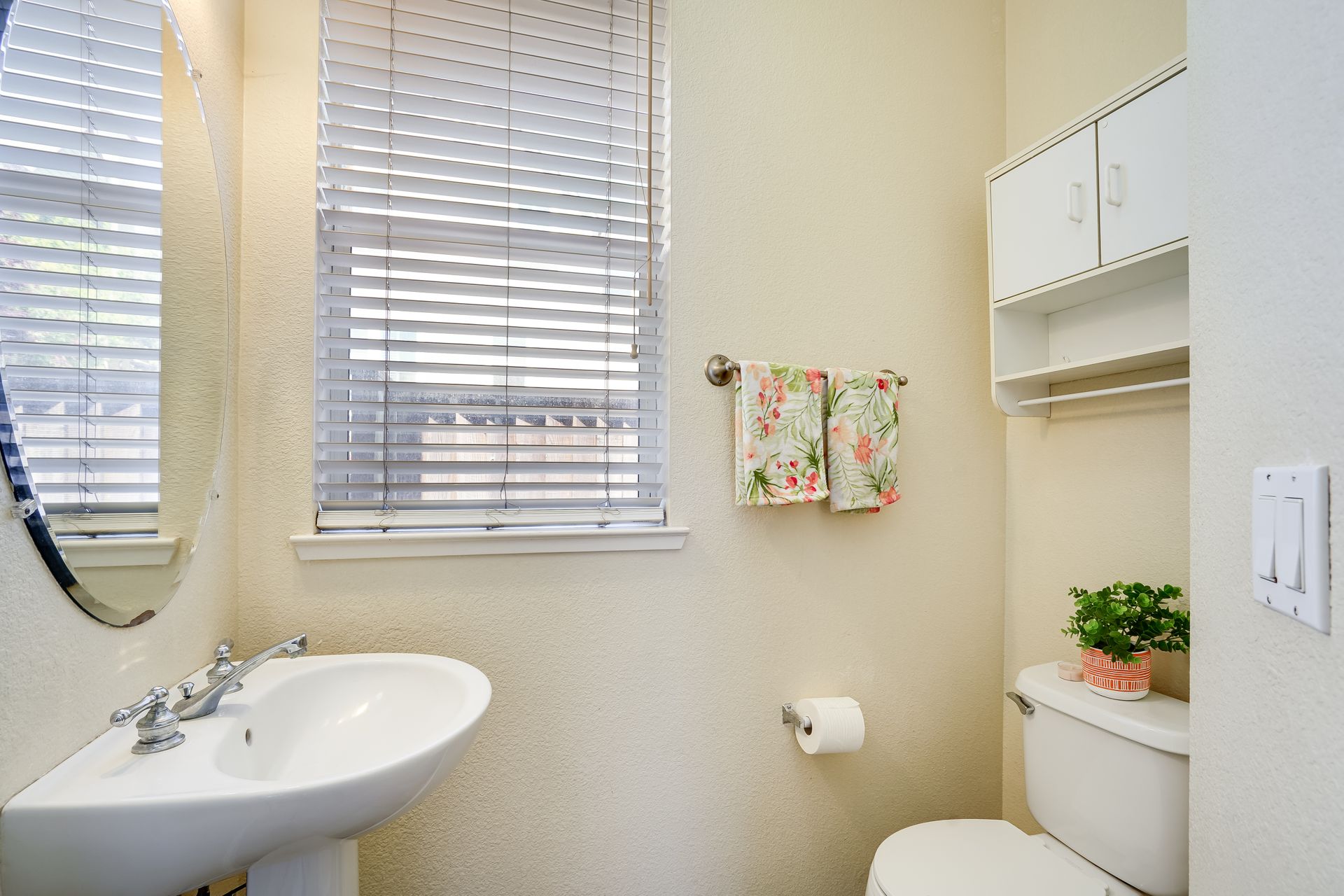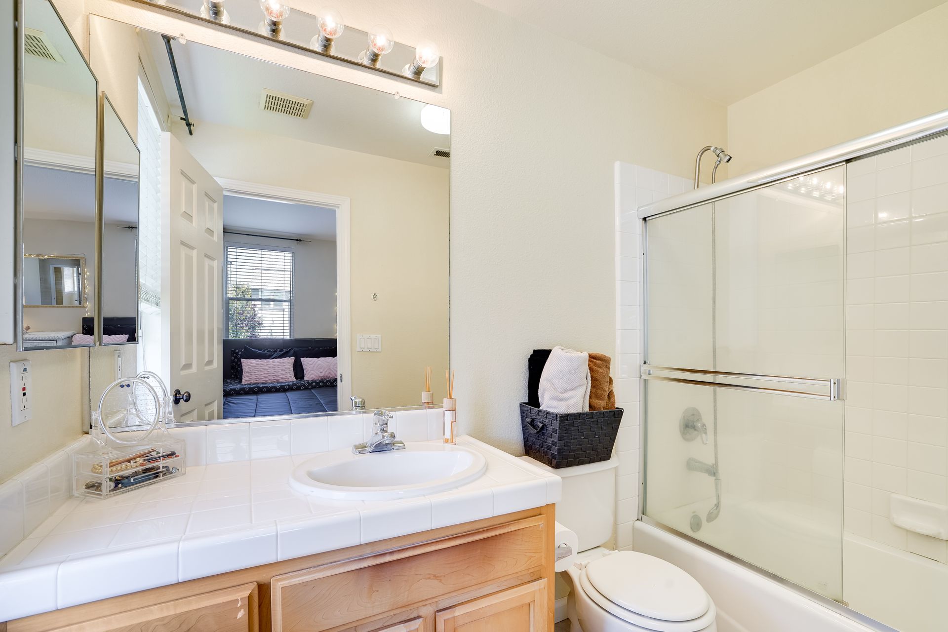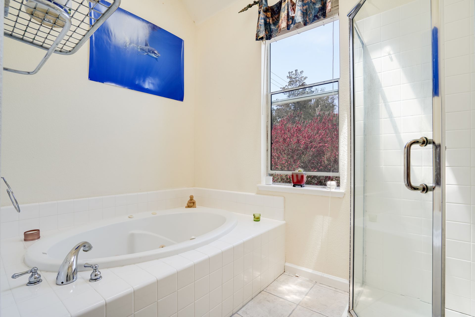 Great Westside location, this property is close to UCSC. This spacious corner home has a great floorplan with approximately 2,300 square feet. Features include four bedrooms that include two master suites. One master is on the ground level and has a fireplace with an insert, a walk-in closet and a master bath with a separate jetted tub. Enjoy high ceilings throughout, a second fireplace in the living room, an inside laundry area, three full baths and one guest bath, a private courtyard to enjoy the sun or entertain and barbeque and a cute front veranda with views of the park area. The open kitchen has granite counters, a center island with a sink and opens to the family room area and additional separate dining area. There is a two-car attached garage plus two extra parking spaces behind the garage. This home is part of the Westmont Place development which features a community pool area. A lot of home in a great location.