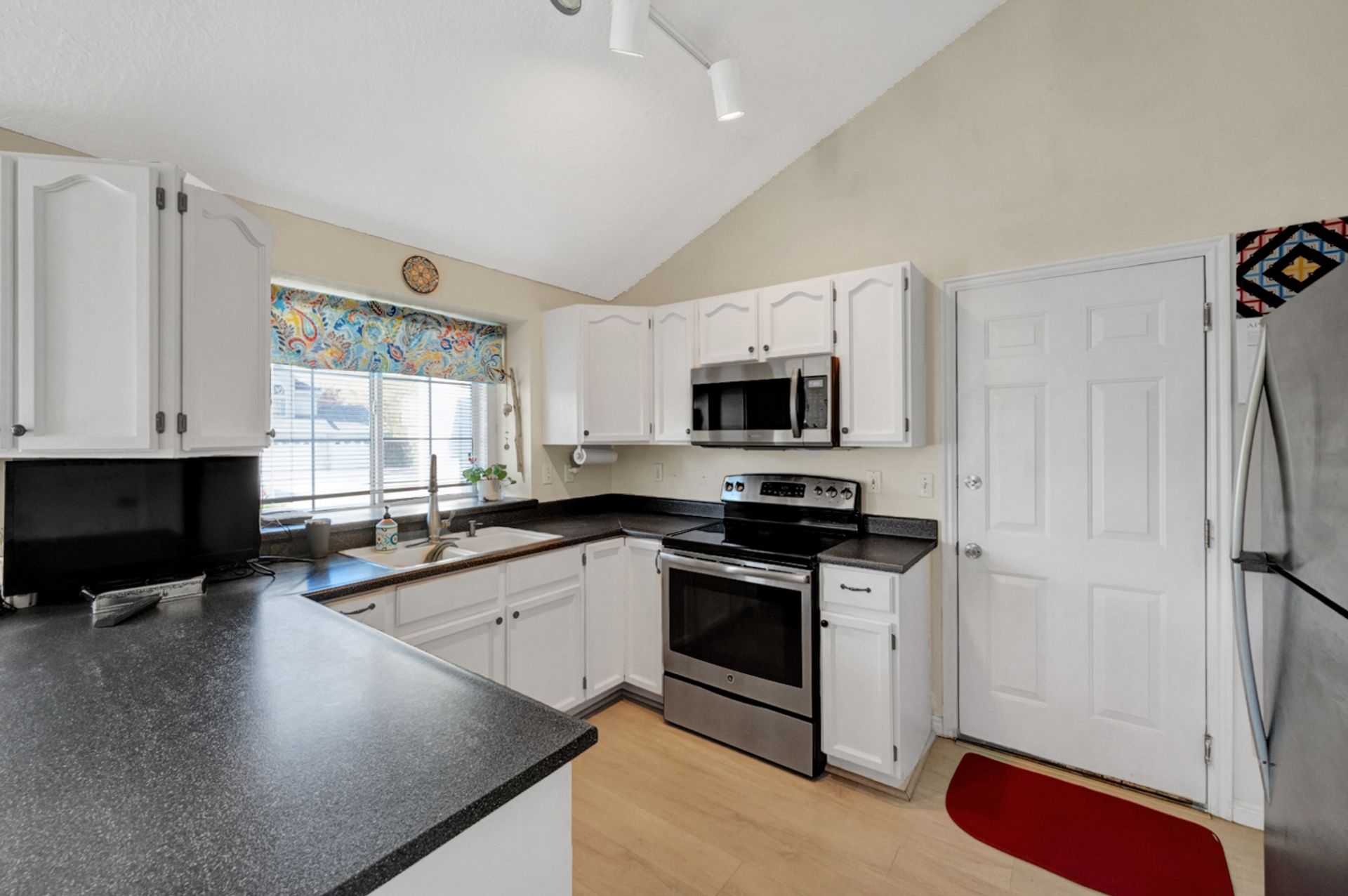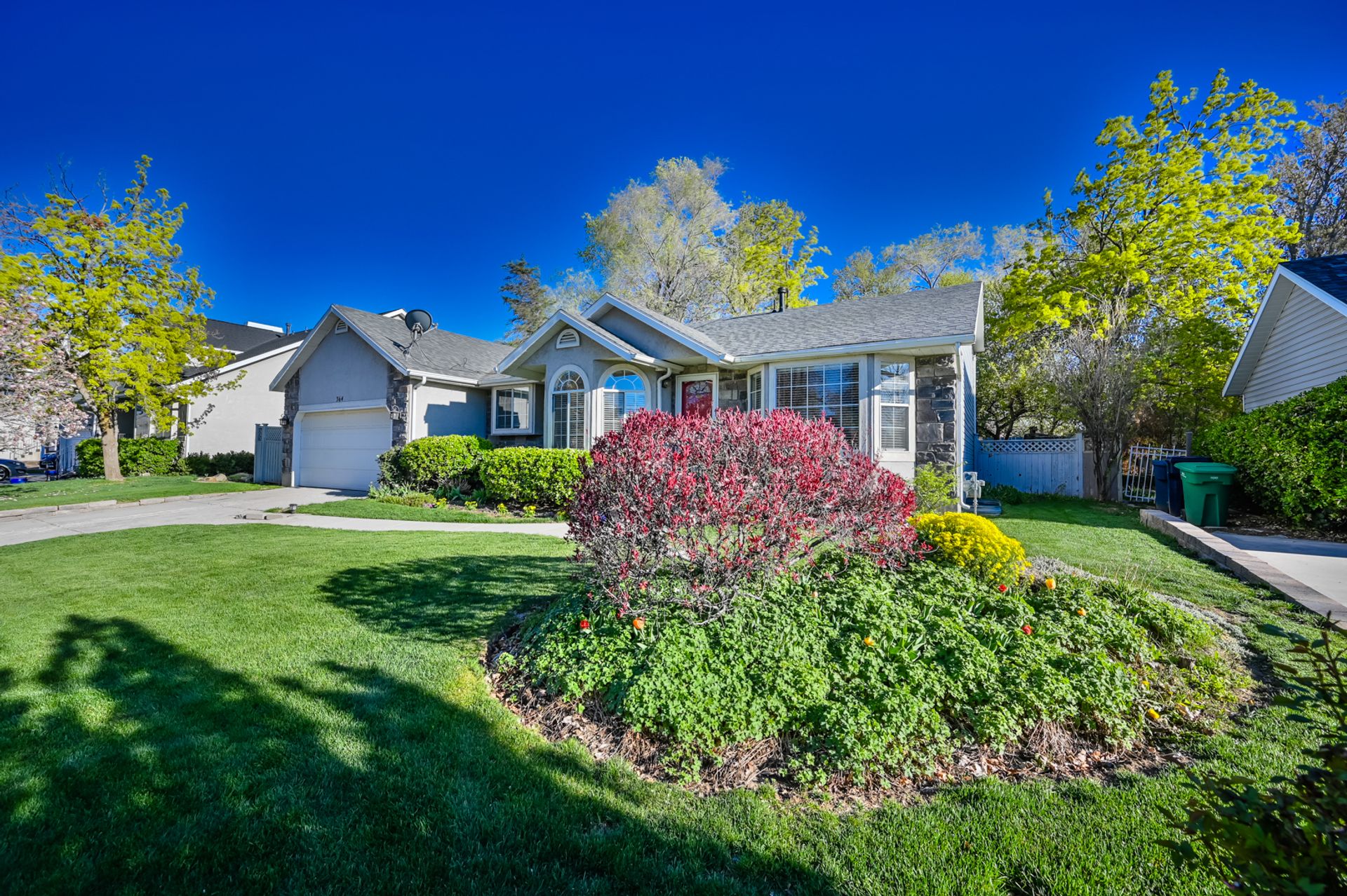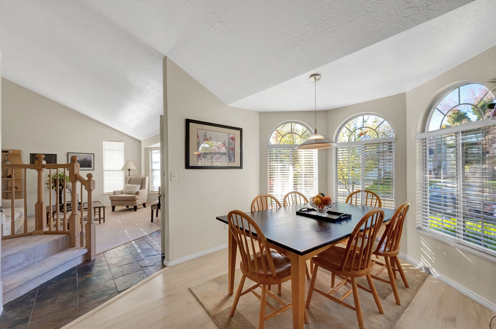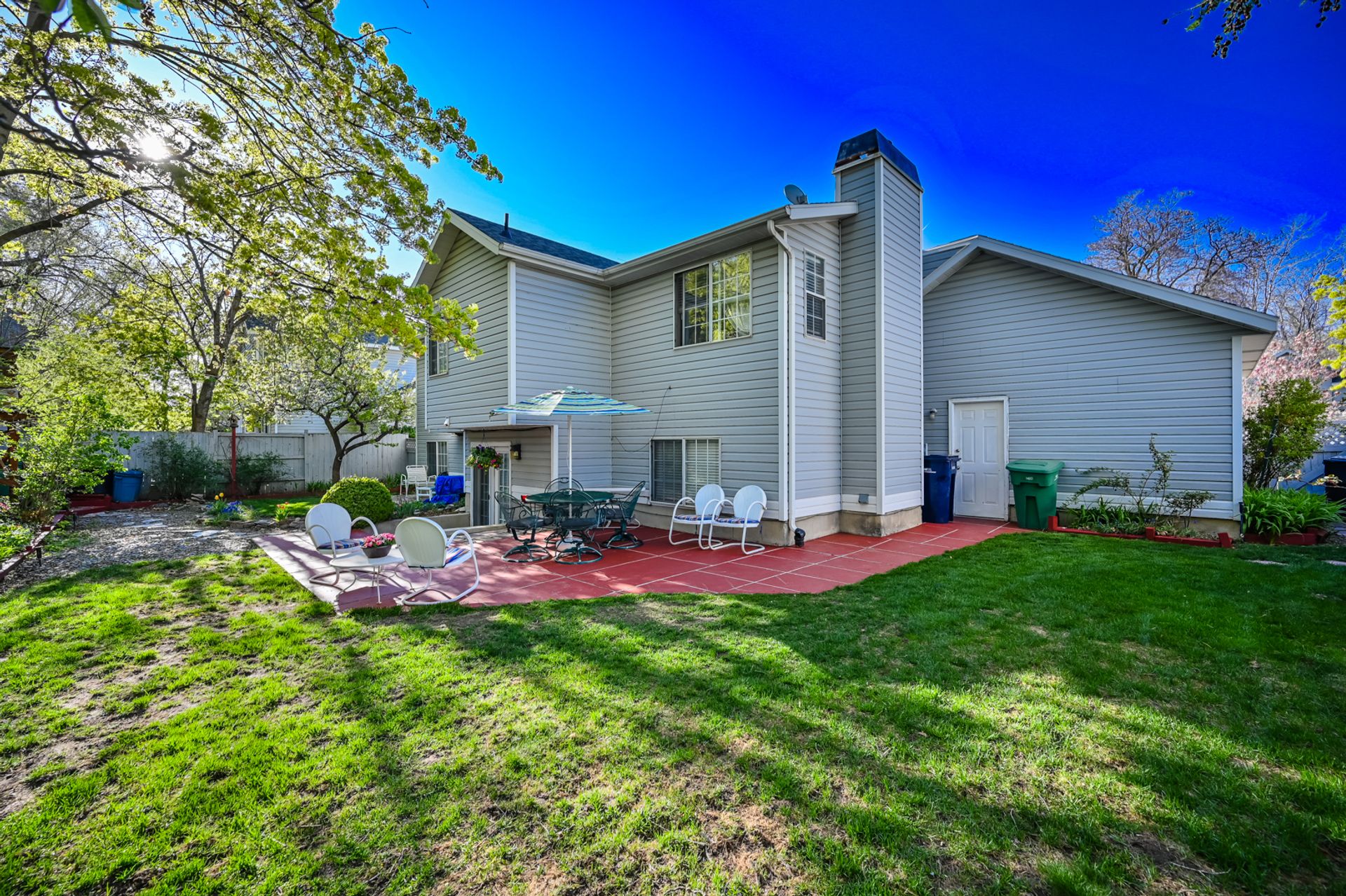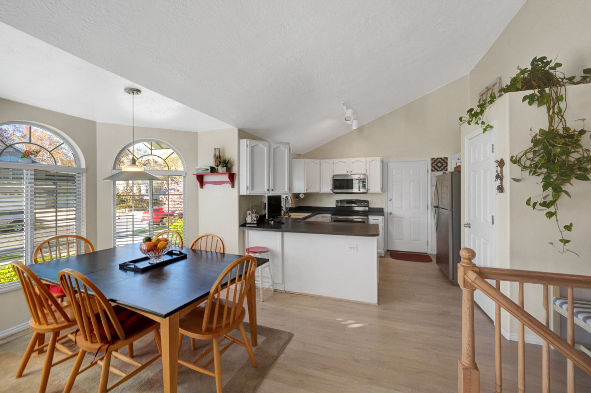 Light and bright. Bay windows light up beautiful vaulted ceilings! Modern white kitchen with stainless steel appliances. New wood laminate flooring. Master bath with garden tub. You'll find a piece of heaven in the backyard. Perfect for entertaining on the beautiful patio. Everyone will love the log-sided treehouse.