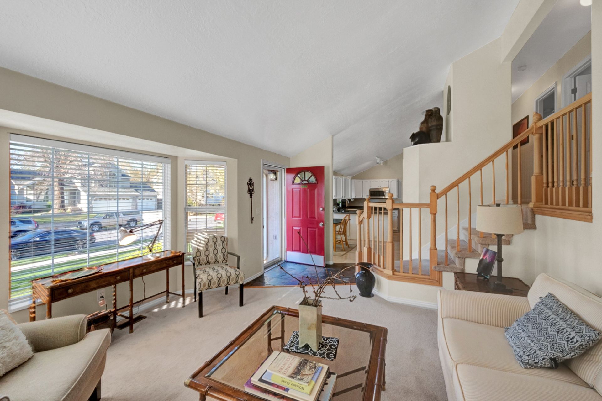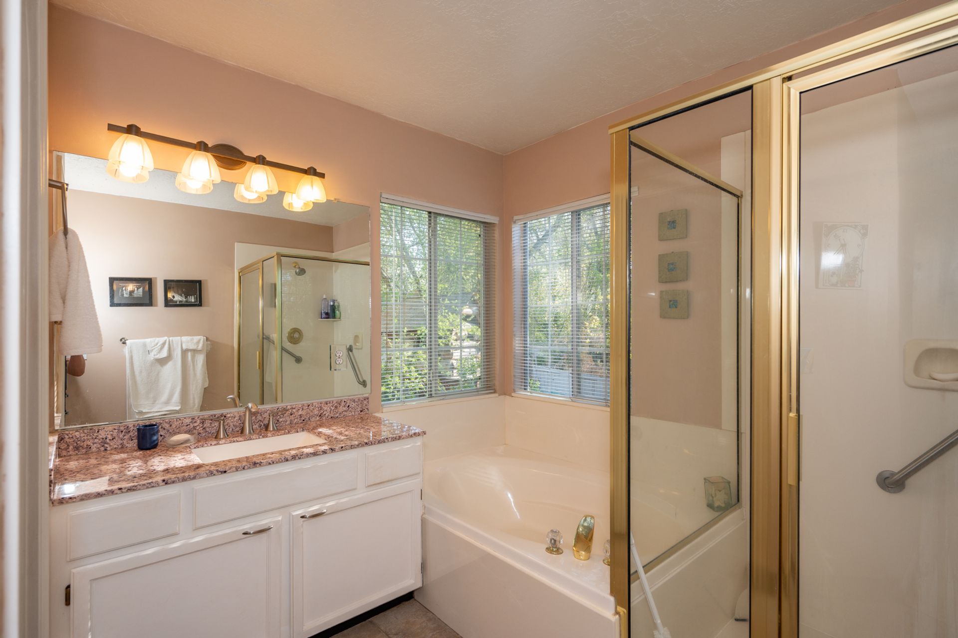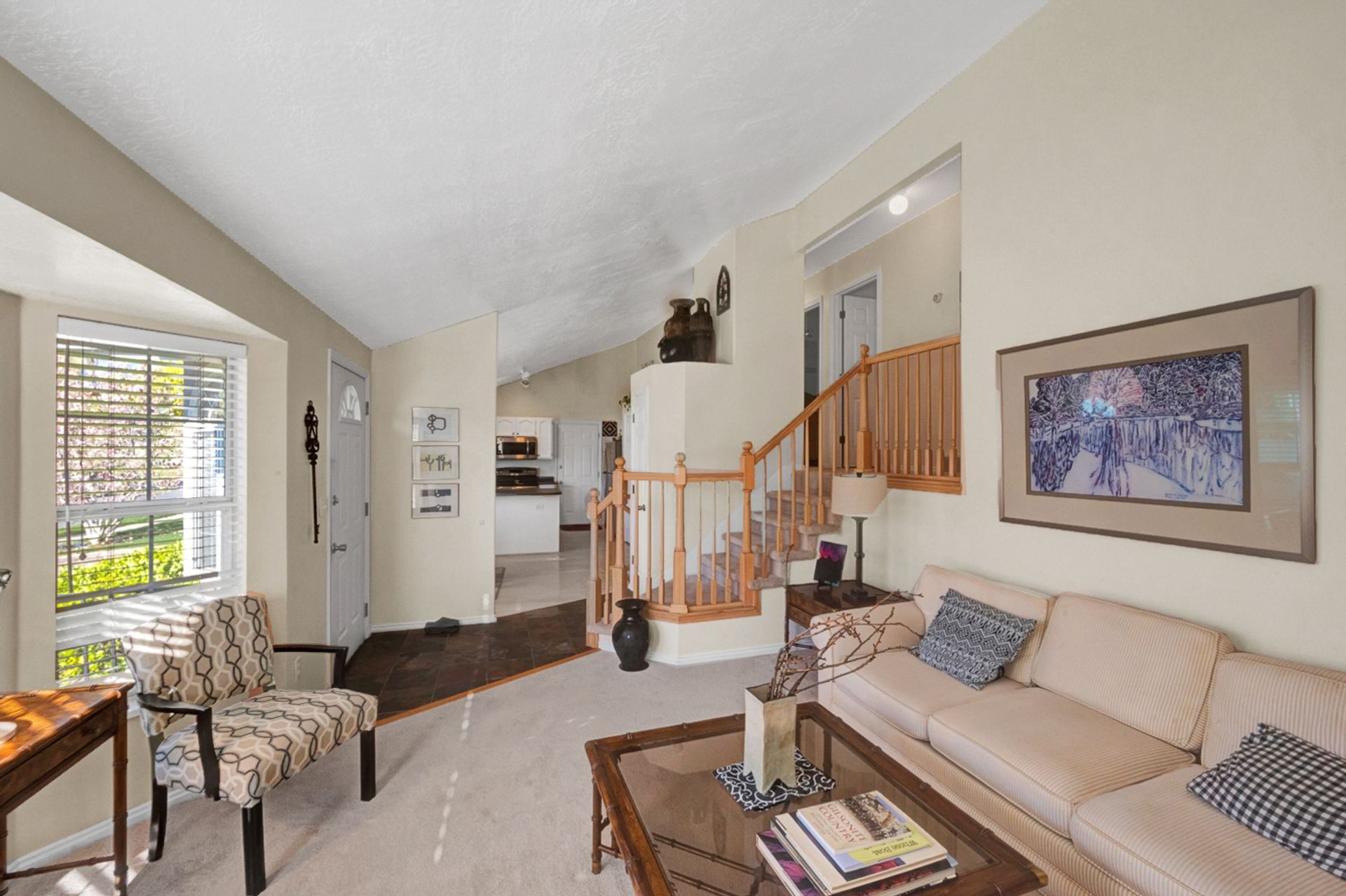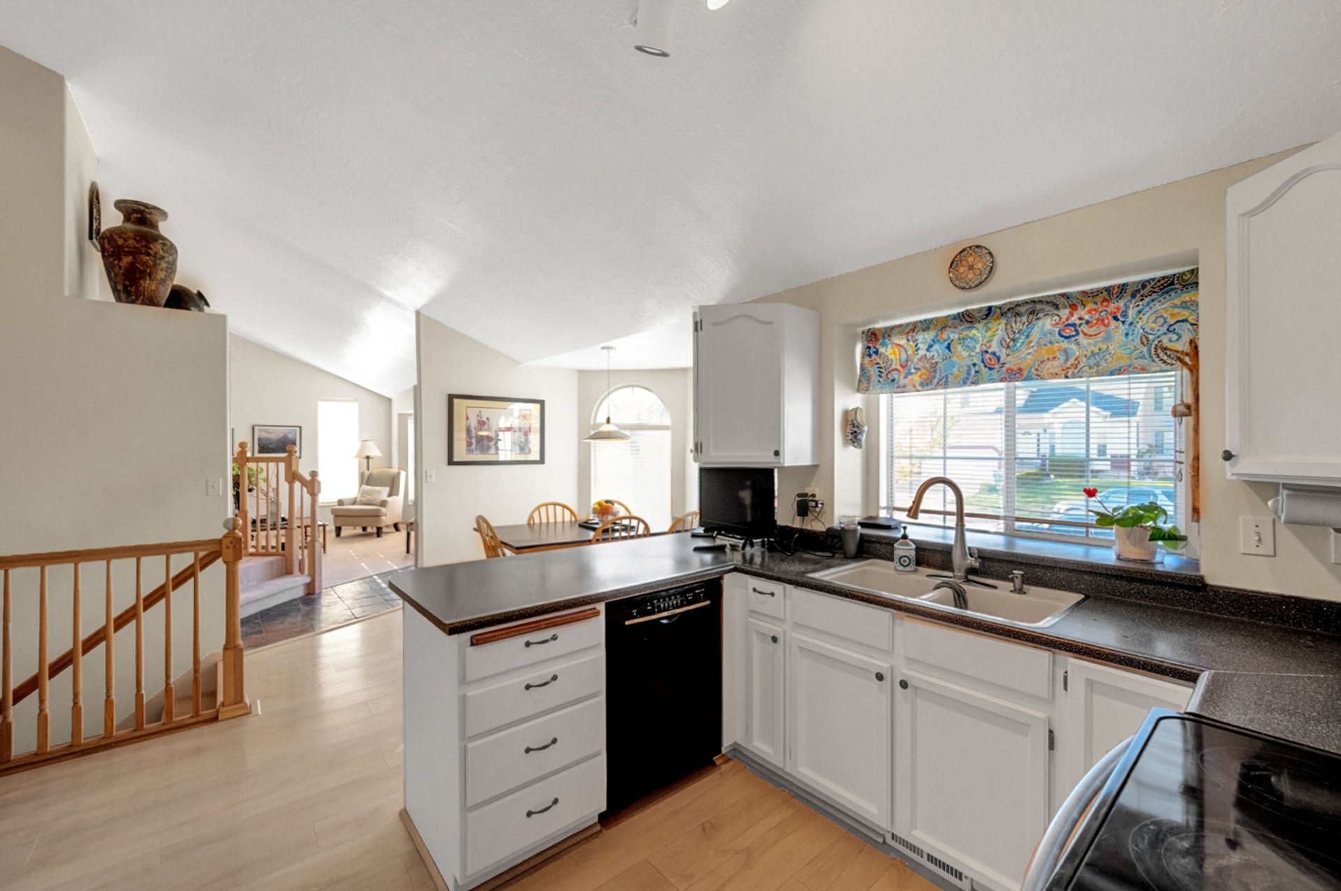 Light and bright. Bay windows light up beautiful vaulted ceilings! Modern white kitchen with stainless steel appliances. New wood laminate flooring. Master bath with garden tub. You'll find a piece of heaven in the backyard. Perfect for entertaining on the beautiful patio. Everyone will love the log-sided treehouse.