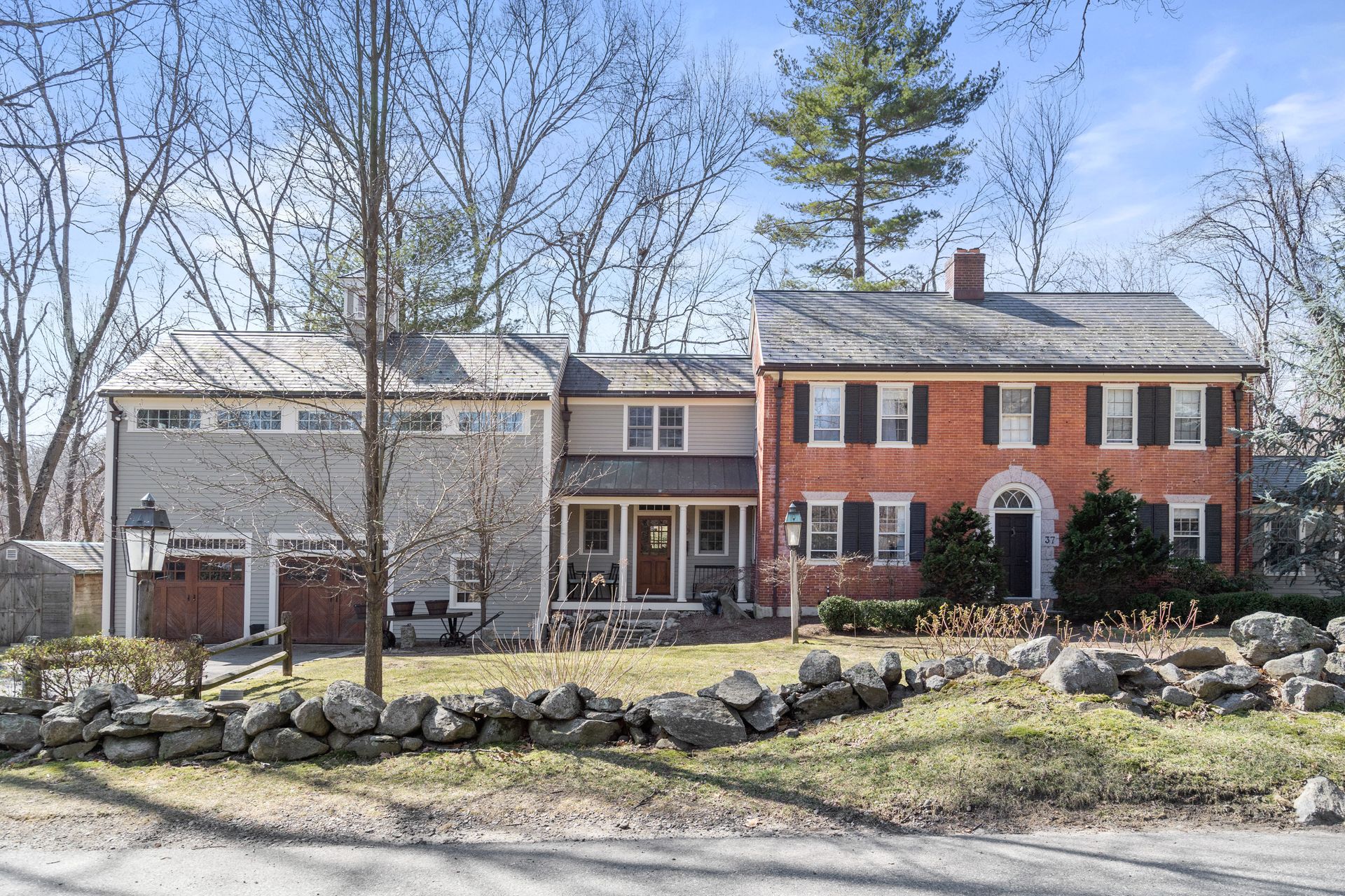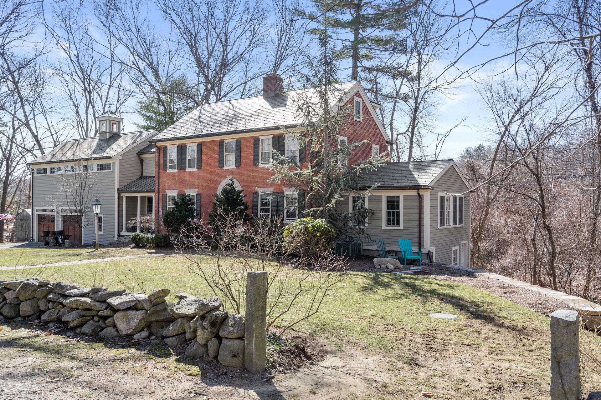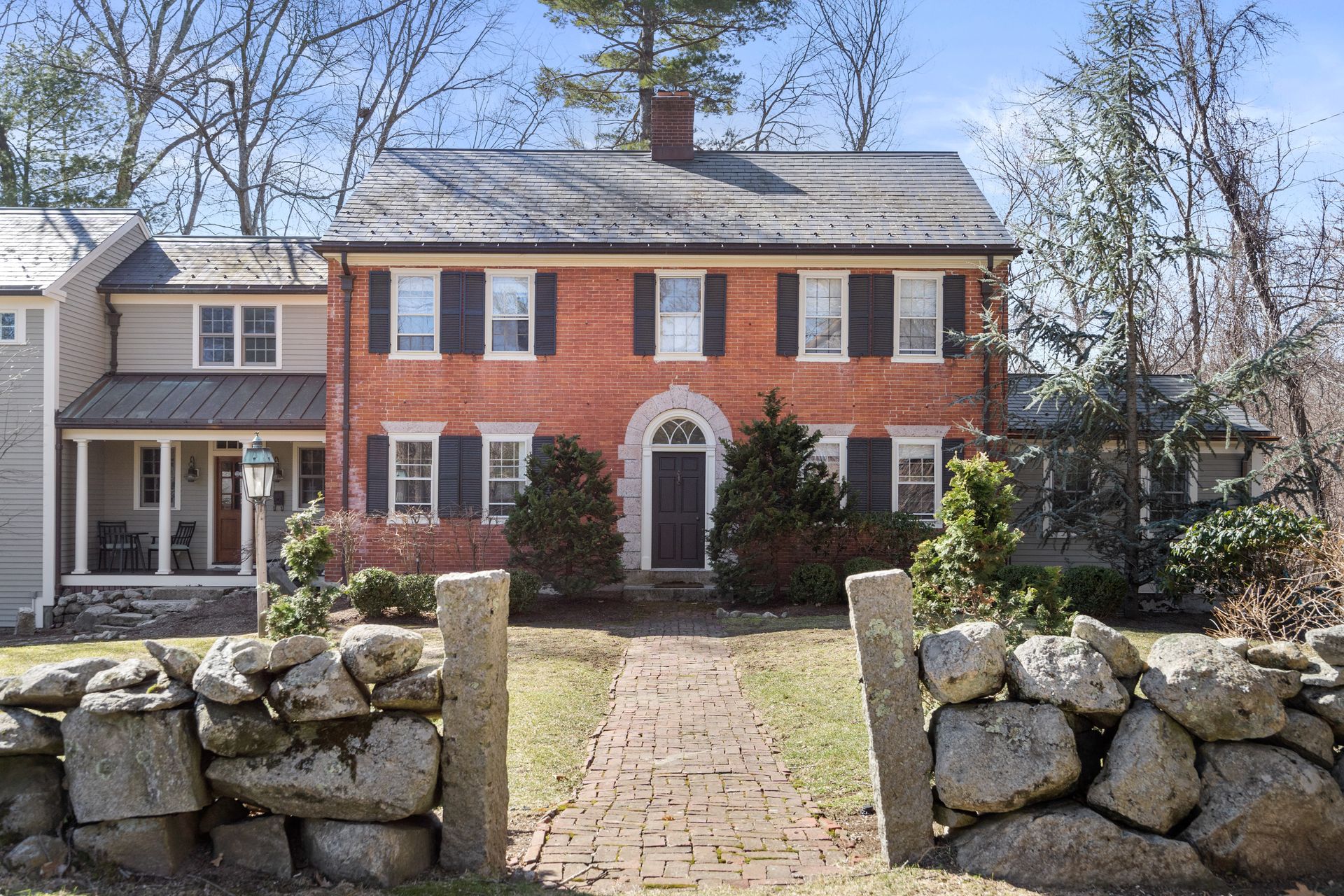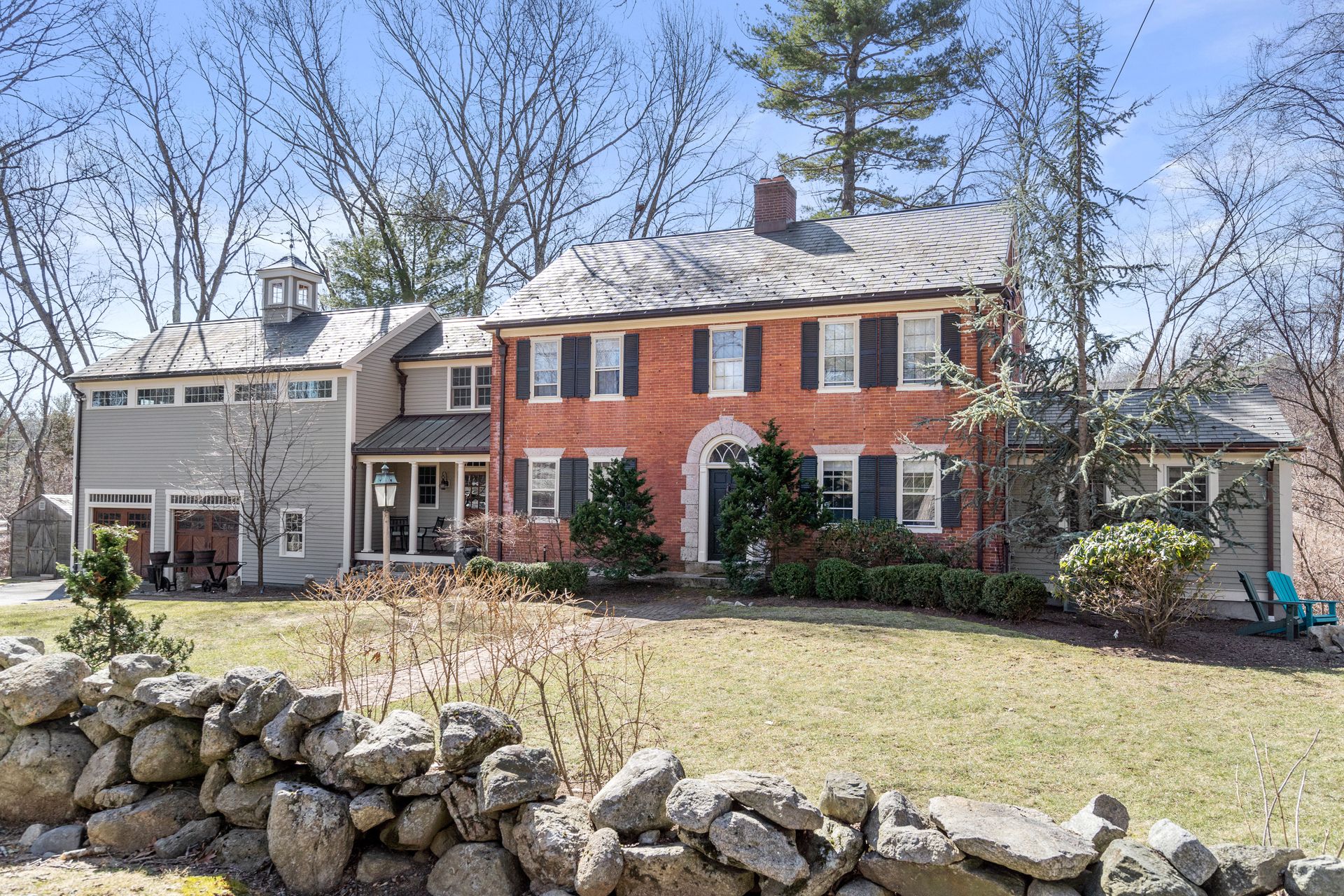 Exciting Federal colonial rich in history yet updated with today’s amenities! Majestically sited on approximately 1.14 acre landscaped and irrigated lot with a commanding presence bounded by New England stone walls. Beautiful façade with exemplary slate roof and copper gutters beckon you on arrival. Recent additions blend seamlessly with core of this astounding home including the inviting mudroom with brick wall accent and maple floors. Enjoy the expansive and spectacular vaulted family room with walls of windows, quality built in wet bar and windowed cupola. Truly gourmet fireplaced kitchen and breakfast area showcases raised panel maple cabinets, multi-tiered granite countertops, tile backsplash and walk-in pantry. Top of the line appliances including- six top gas Wolf stove, sub-zero stainless fridge and wall ovens. Light and bright adjacent living room boasts row of windows, built-in cabinets, gas fireplace-primo! First floor fireplaced study, built-in dual desks, multiple windows and closet. Wonderful primary suite with huge walk-in closet, vaulted luxury bath including whirlpool and walk-in granite shower. Exceptional third floor walkup two room suite and bedroom, perfect for teen or flex area.