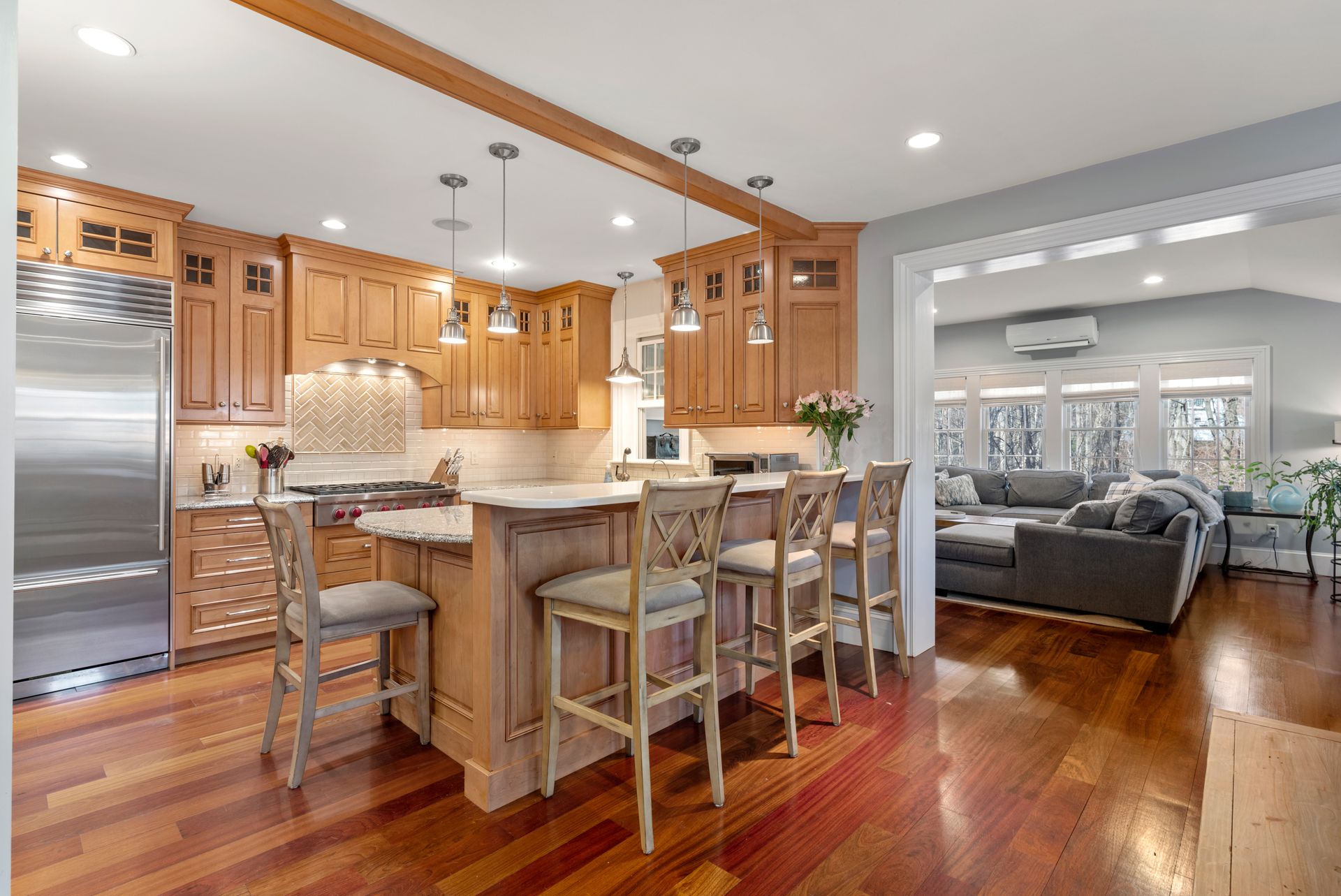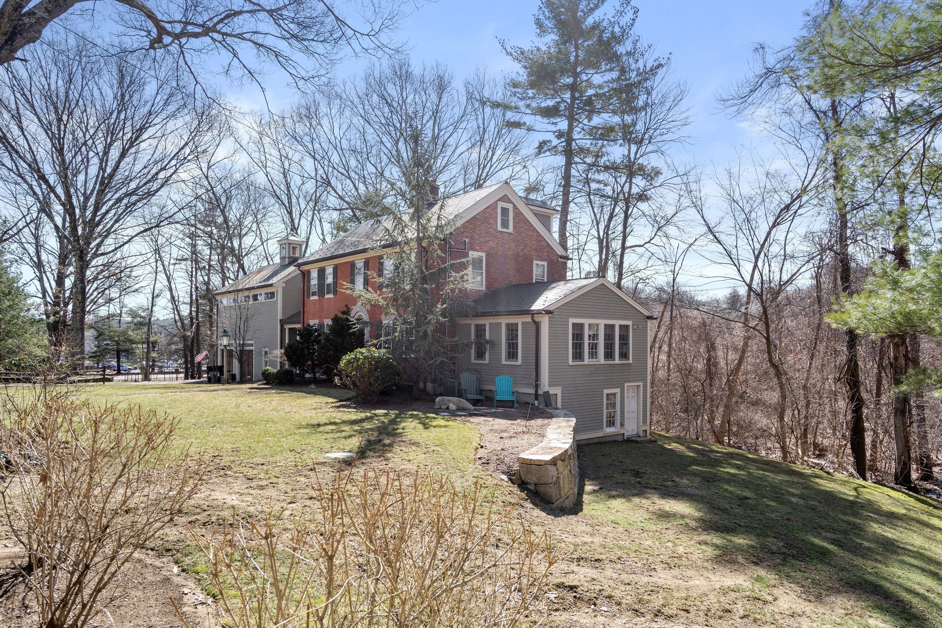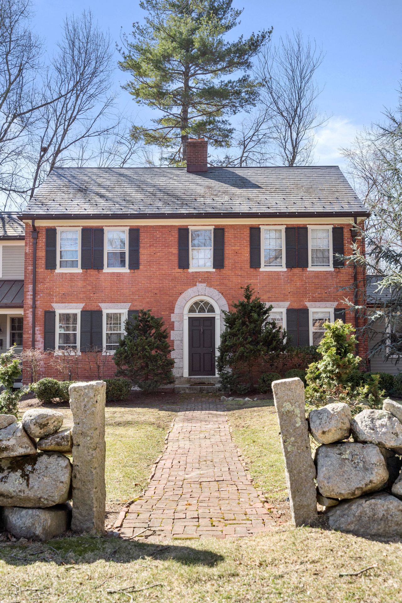 Exciting Federal colonial rich in history yet updated with today’s amenities! Majestically sited on approximately 1.14 acre landscaped and irrigated lot with a commanding presence bounded by New England stone walls. Beautiful façade with exemplary slate roof and copper gutters beckon you on arrival. Recent additions blend seamlessly with core of this astounding home including the inviting mudroom with brick wall accent and maple floors. Enjoy the expansive and spectacular vaulted family room with walls of windows, quality built in wet bar and windowed cupola. Truly gourmet fireplaced kitchen and breakfast area showcases raised panel maple cabinets, multi-tiered granite countertops, tile backsplash and walk-in pantry. Top of the line appliances including- six top gas Wolf stove, sub-zero stainless fridge and wall ovens. Light and bright adjacent living room boasts row of windows, built-in cabinets, gas fireplace-primo! First floor fireplaced study, built-in dual desks, multiple windows and closet. Wonderful primary suite with huge walk-in closet, vaulted luxury bath including whirlpool and walk-in granite shower. Exceptional third floor walkup two room suite and bedroom, perfect for teen or flex area.