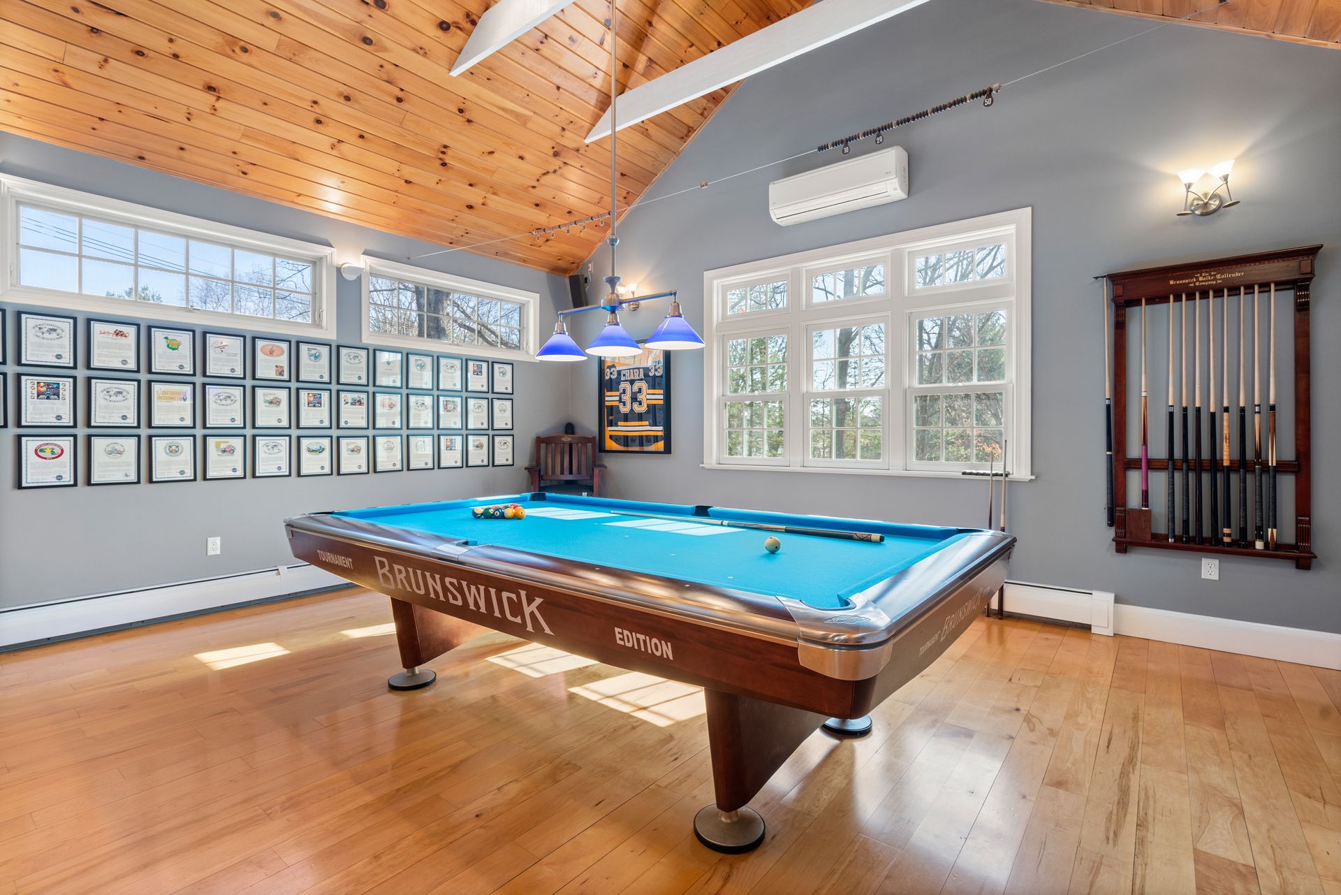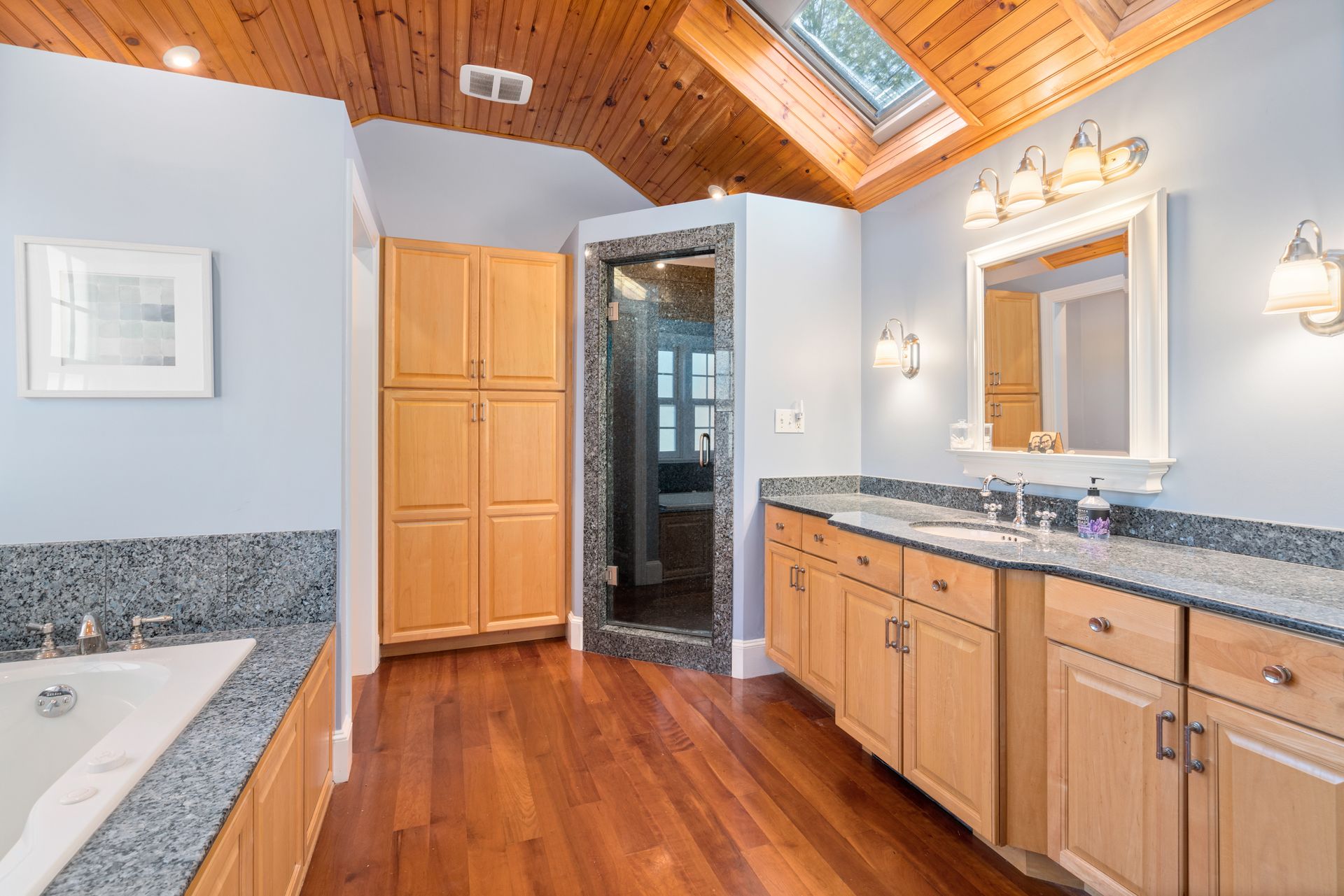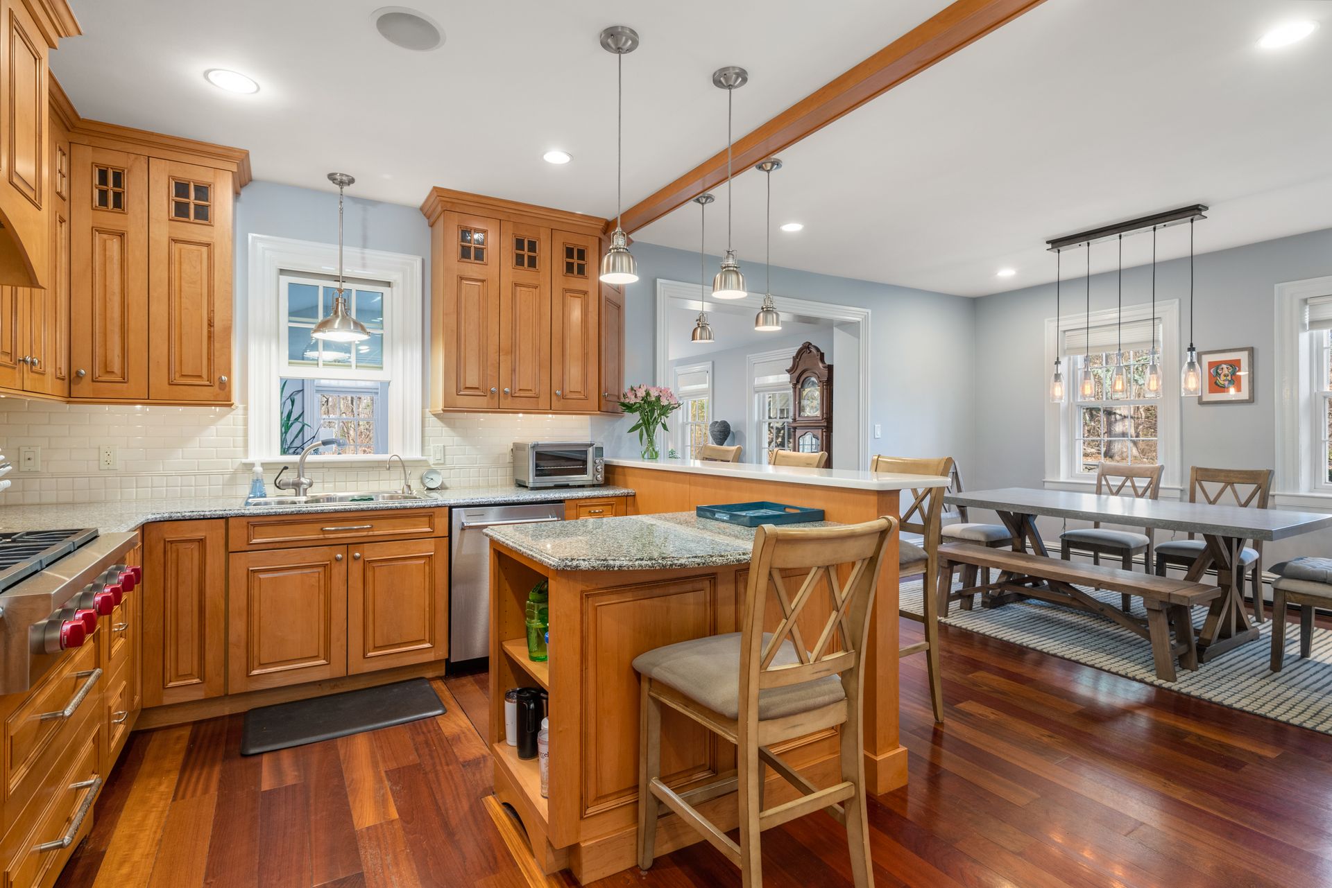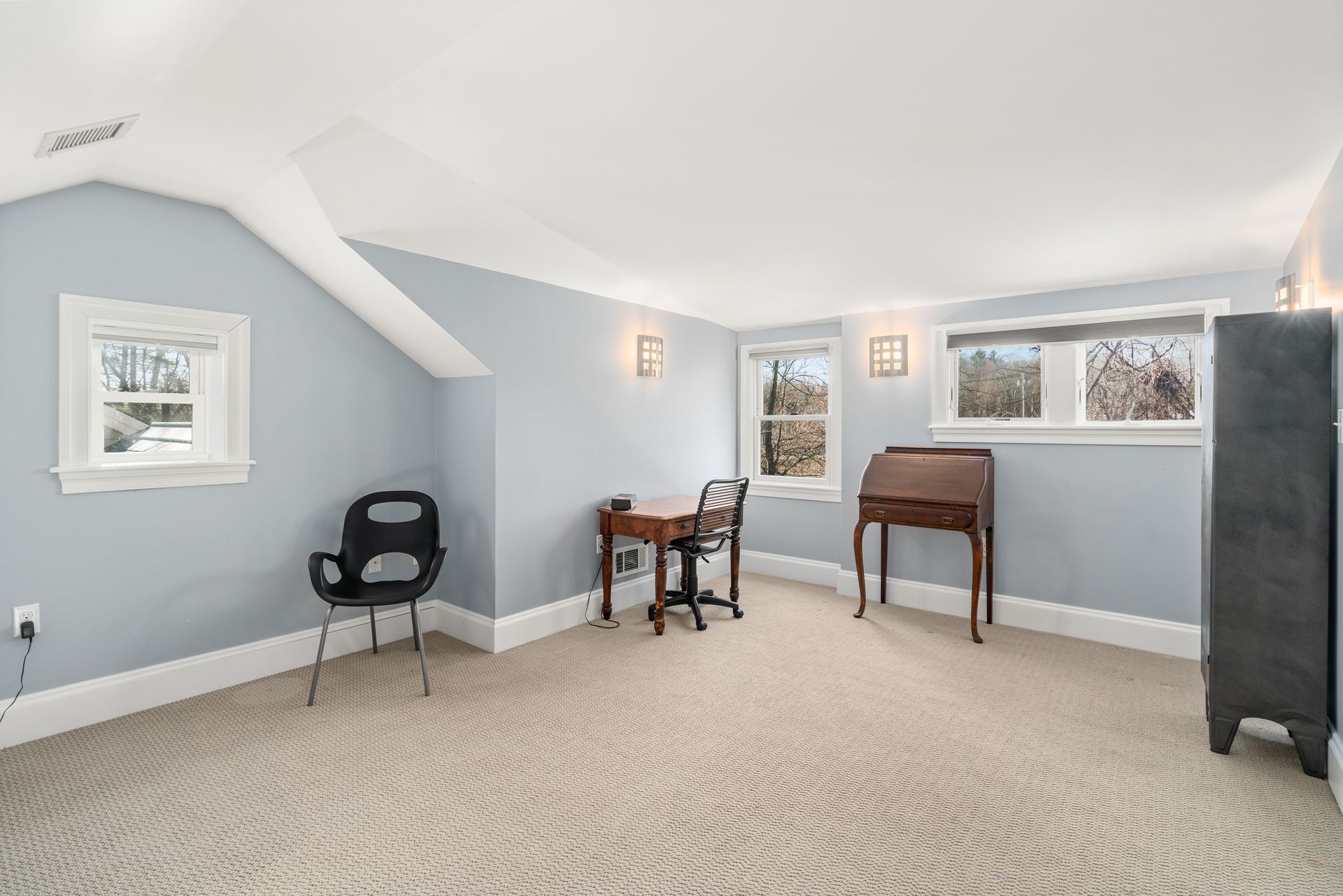Exciting Federal colonial rich in history yet updated with today’s amenities! Majestically sited on approximately 1.14 acre landscaped and irrigated lot with a commanding presence bounded by New England stone walls. Beautiful façade with exemplary slate roof and copper gutters beckon you on arrival. Recent additions blend seamlessly with core of this astounding home including the inviting mudroom with brick wall accent and maple floors. Enjoy the expansive and spectacular vaulted family room with walls of windows, quality built in wet bar and windowed cupola. Truly gourmet fireplaced kitchen and breakfast area showcases raised panel maple cabinets, multi-tiered granite countertops, tile backsplash and walk-in pantry. Top of the line appliances including- six top gas Wolf stove, sub-zero stainless fridge and wall ovens. Light and bright adjacent living room boasts row of windows, built-in cabinets, gas fireplace-primo! First floor fireplaced study, built-in dual desks, multiple windows and closet. Wonderful primary suite with huge walk-in closet, vaulted luxury bath including whirlpool and walk-in granite shower. Exceptional third floor walkup two room suite and bedroom, perfect for teen or flex area.