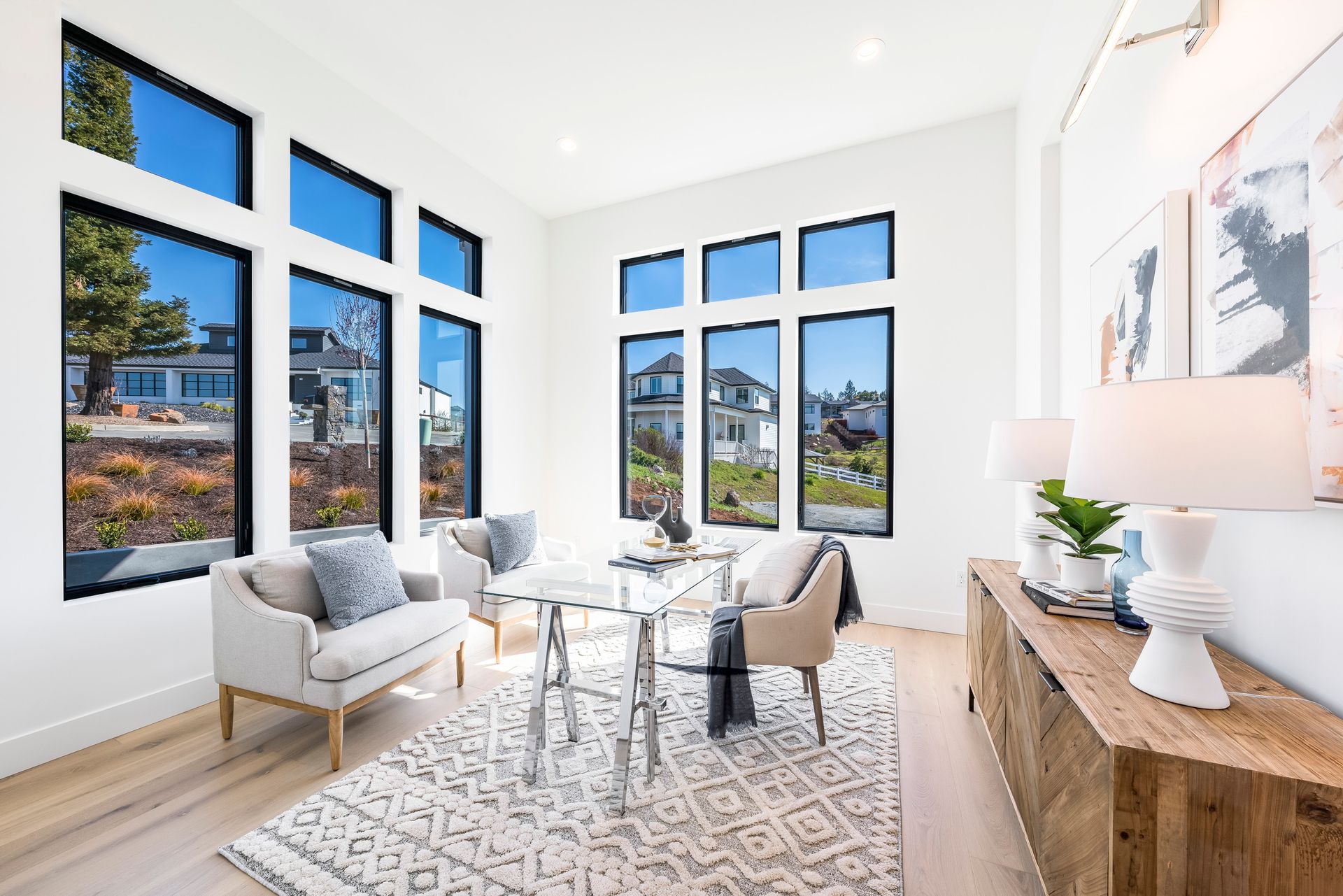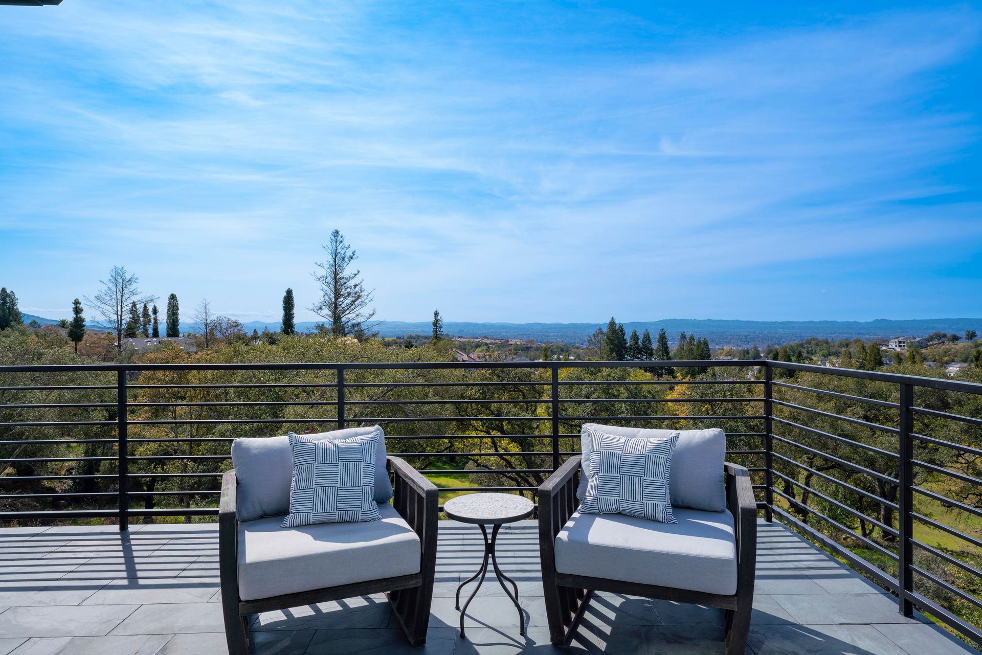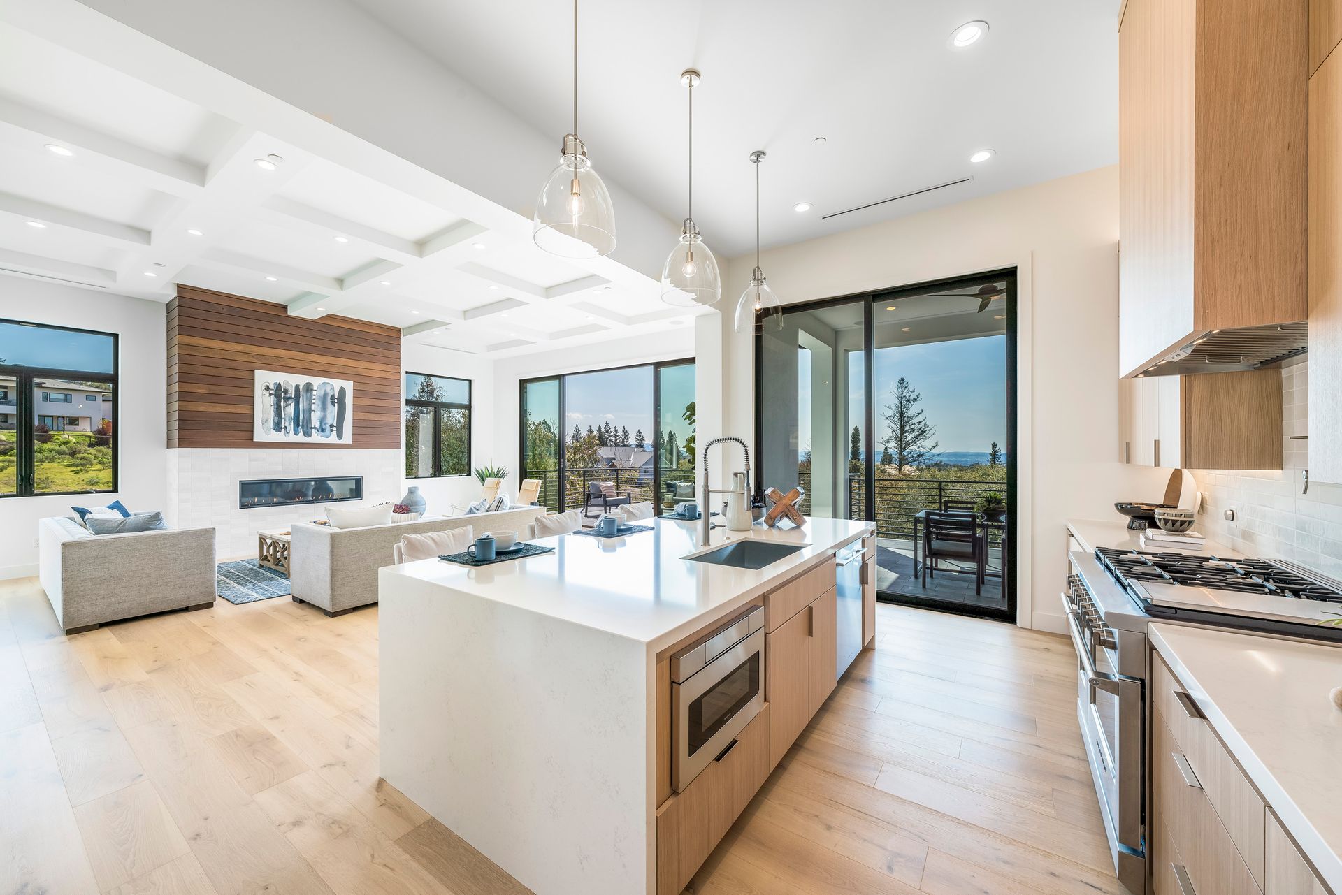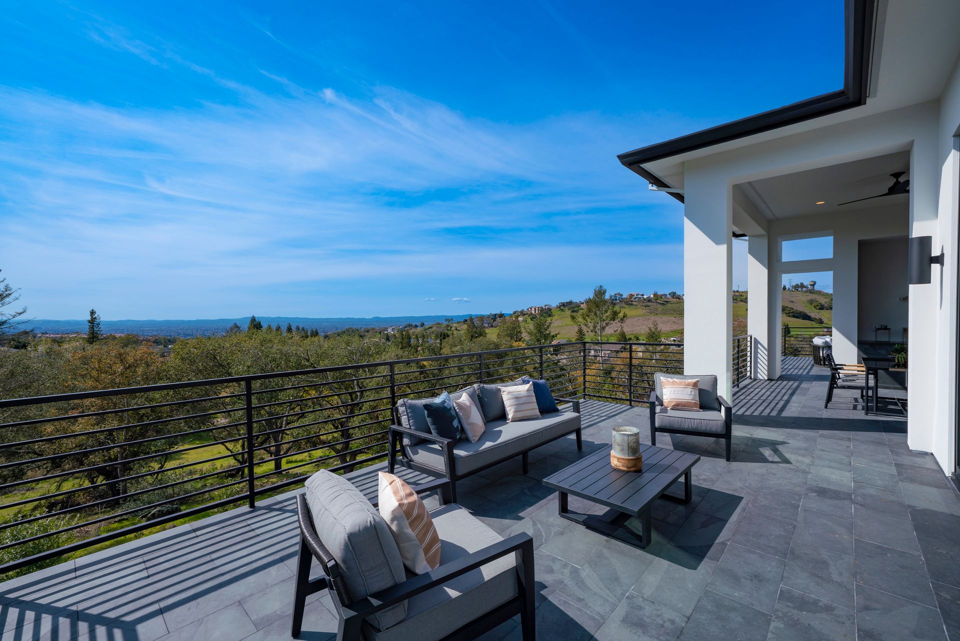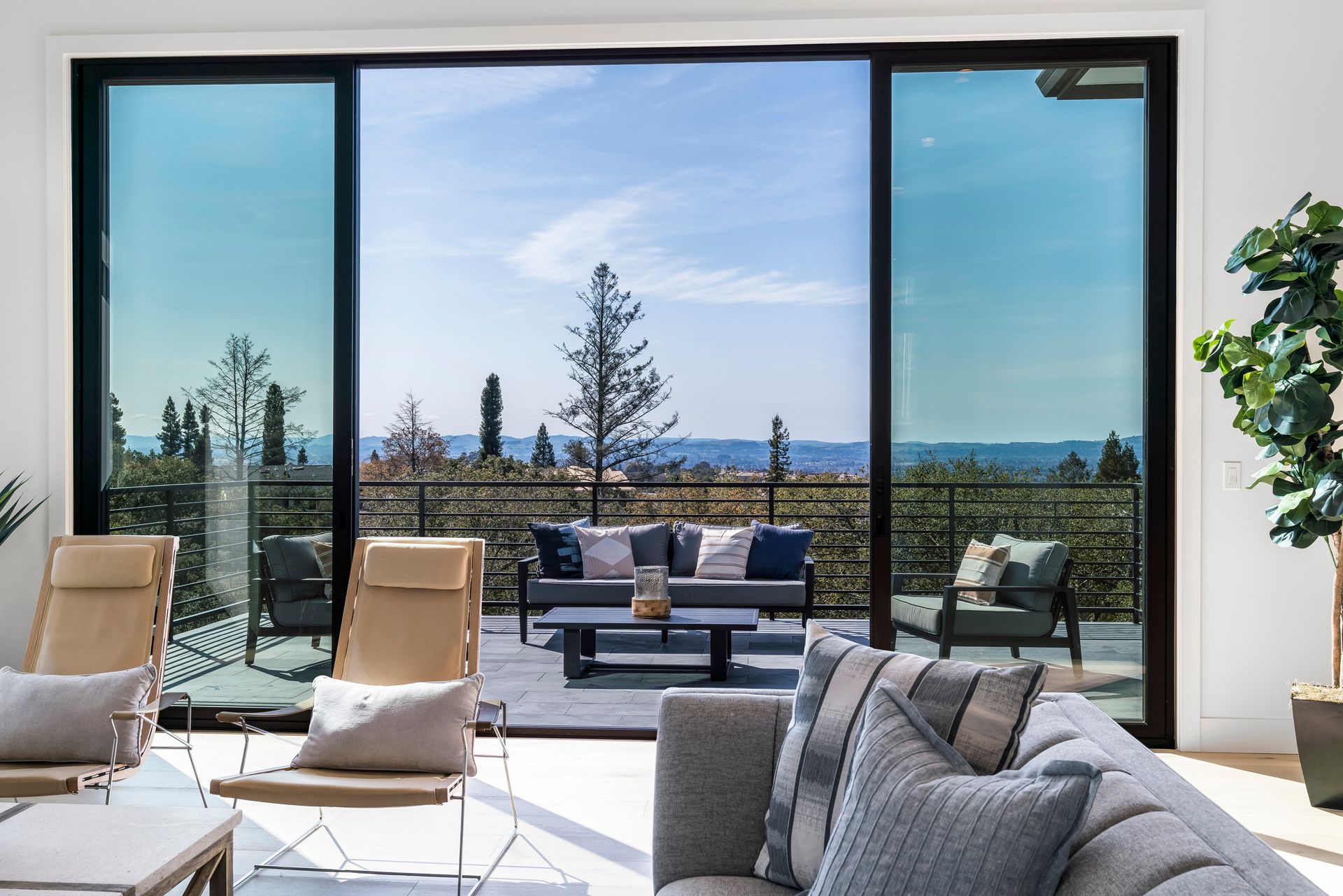 This newly constructed home on nearly 1/3 acre offers sweeping city light views. Located on a quiet cul-de-sac, the exceptional designer appeal showcases double glass entry doors, extensive use of wide plank hardwood flooring and an accent wall of Brazilian Ipe wood. The design style is contemporary with an open concept floor plan. The great room with architecturally appealing coffered ceiling features a linear fireplace and 16 x 10 foot high sliders to the view terrace. The kitchen, open to the great room, has a large island with quartz counter and slider to the built-in Summerset outdoor grill on the terrace. Additionally, there is a formal dining room, a home office, and the primary suite on the main level. The lower level includes 2 bedrooms (one en-ensuite) and a bonus/game room with stacking sliders to the covered patio and lawn area. This distinctive custom home is walking distance to Fir Ridge Park and set in the heart of wine country with close proximity to wineries, shopping & fine dining.