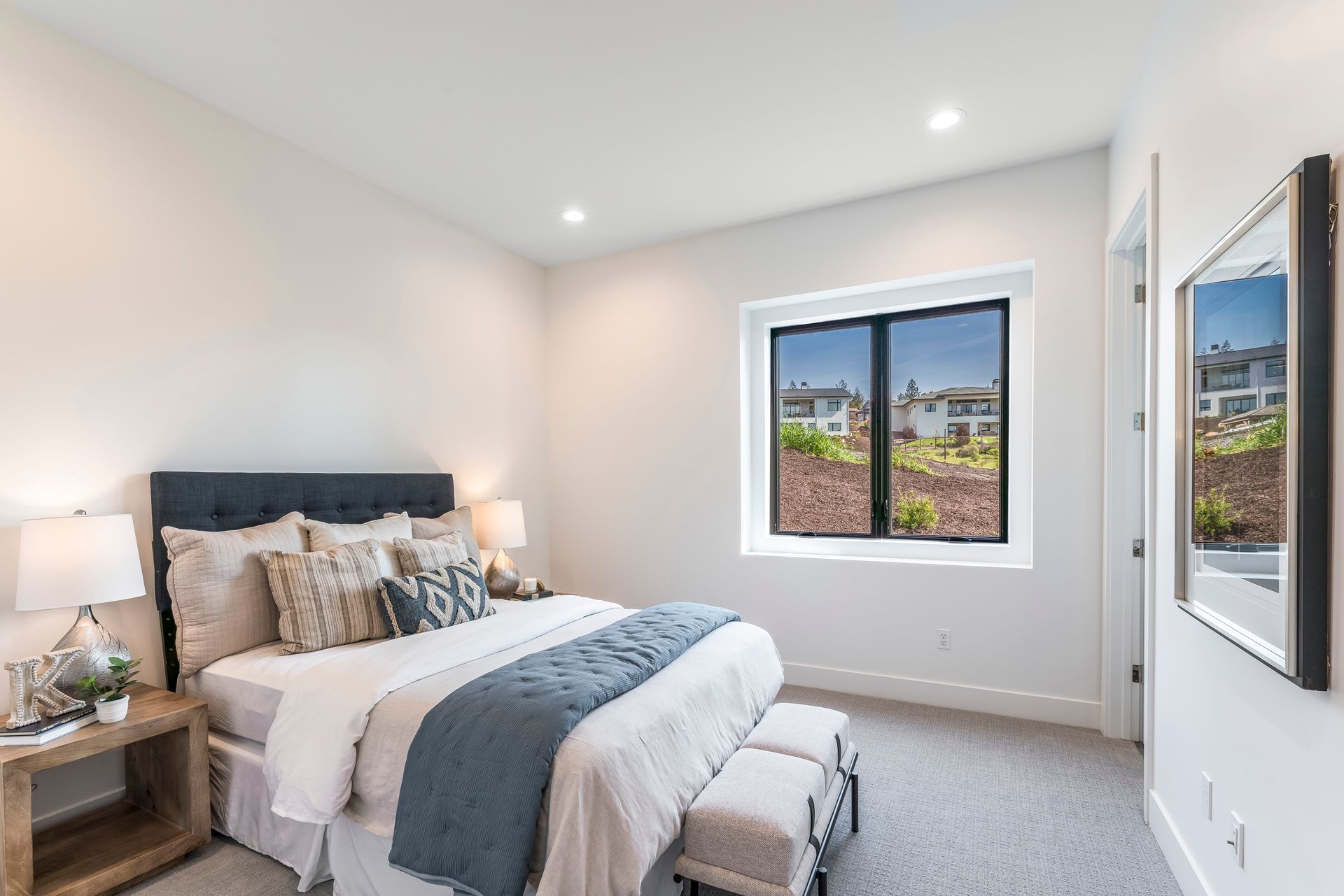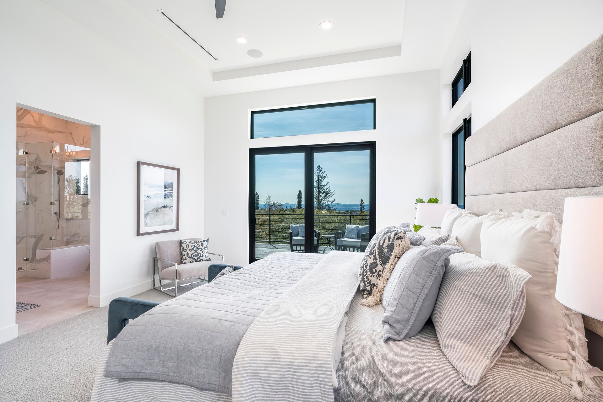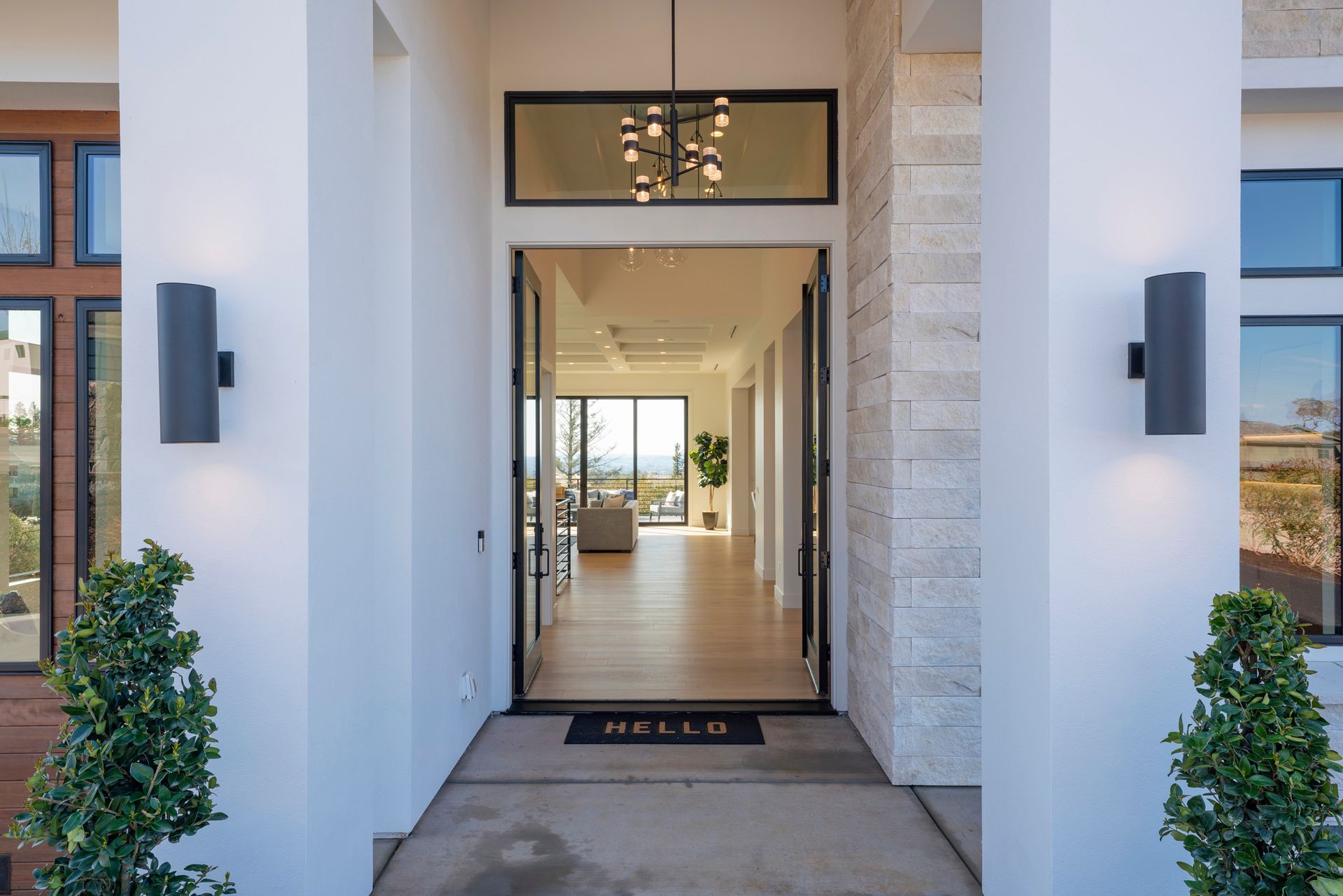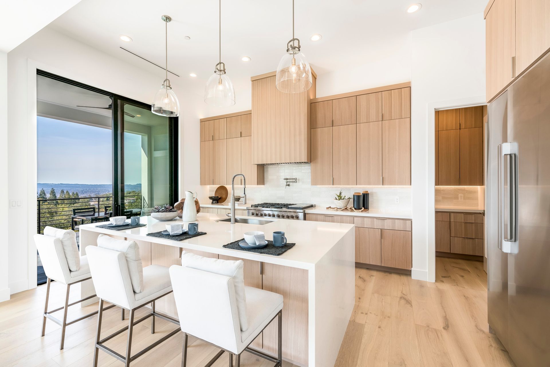 This newly constructed home on nearly 1/3 acre offers sweeping city light views. Located on a quiet cul-de-sac, the exceptional designer appeal showcases double glass entry doors, extensive use of wide plank hardwood flooring and an accent wall of Brazilian Ipe wood. The design style is contemporary with an open concept floor plan. The great room with architecturally appealing coffered ceiling features a linear fireplace and 16 x 10 foot high sliders to the view terrace. The kitchen, open to the great room, has a large island with quartz counter and slider to the built-in Summerset outdoor grill on the terrace. Additionally, there is a formal dining room, a home office, and the primary suite on the main level. The lower level includes 2 bedrooms (one en-ensuite) and a bonus/game room with stacking sliders to the covered patio and lawn area. This distinctive custom home is walking distance to Fir Ridge Park and set in the heart of wine country with close proximity to wineries, shopping & fine dining.