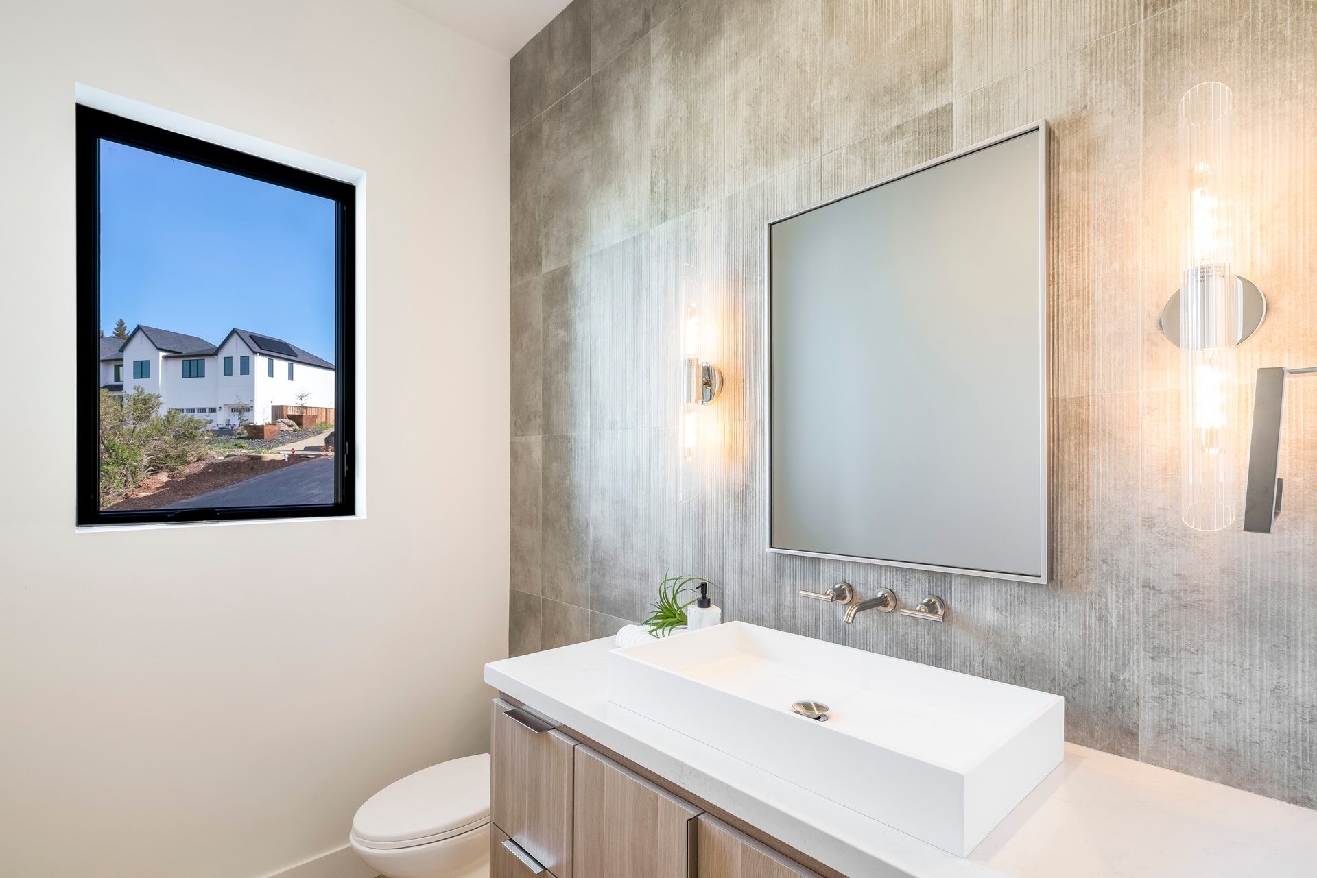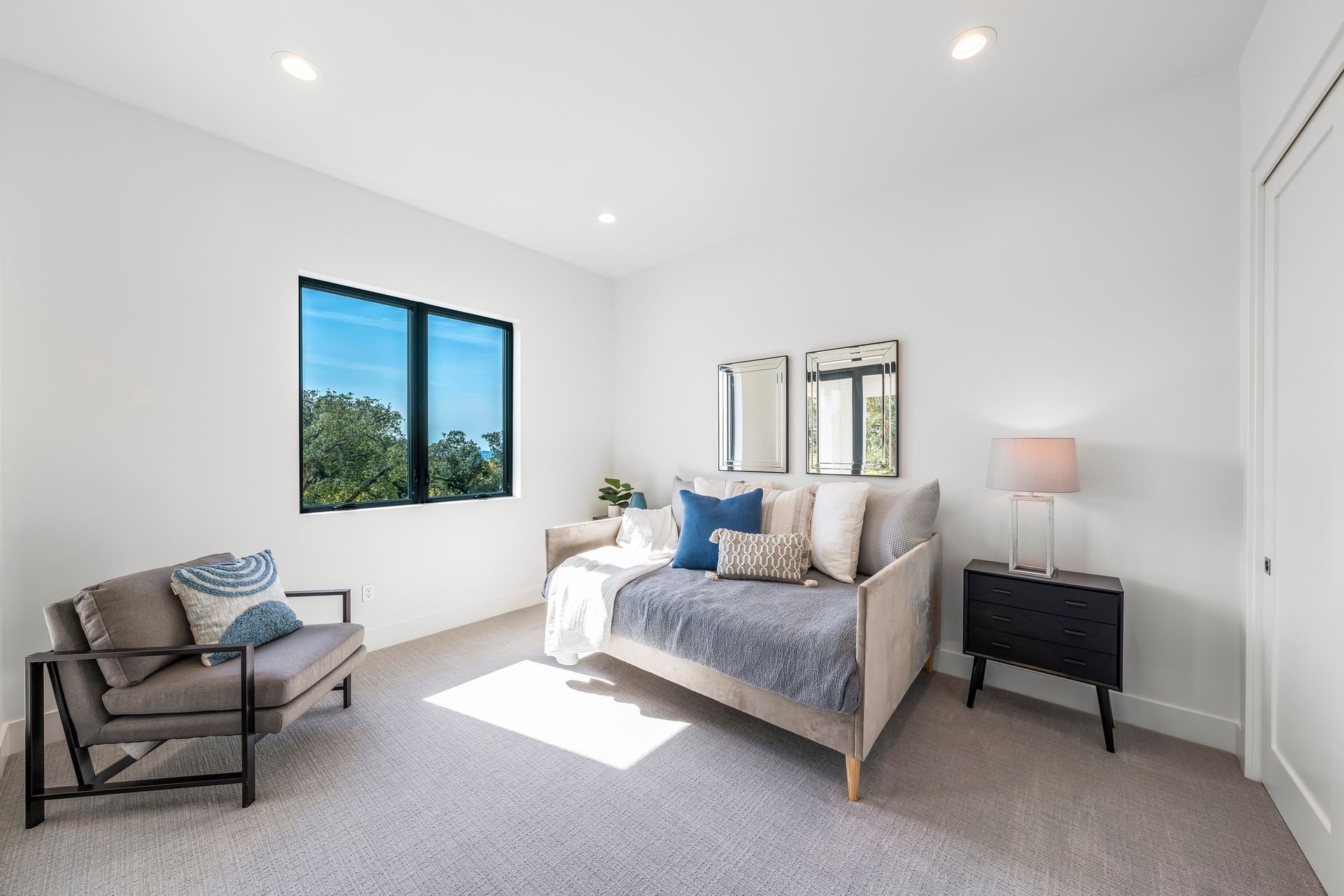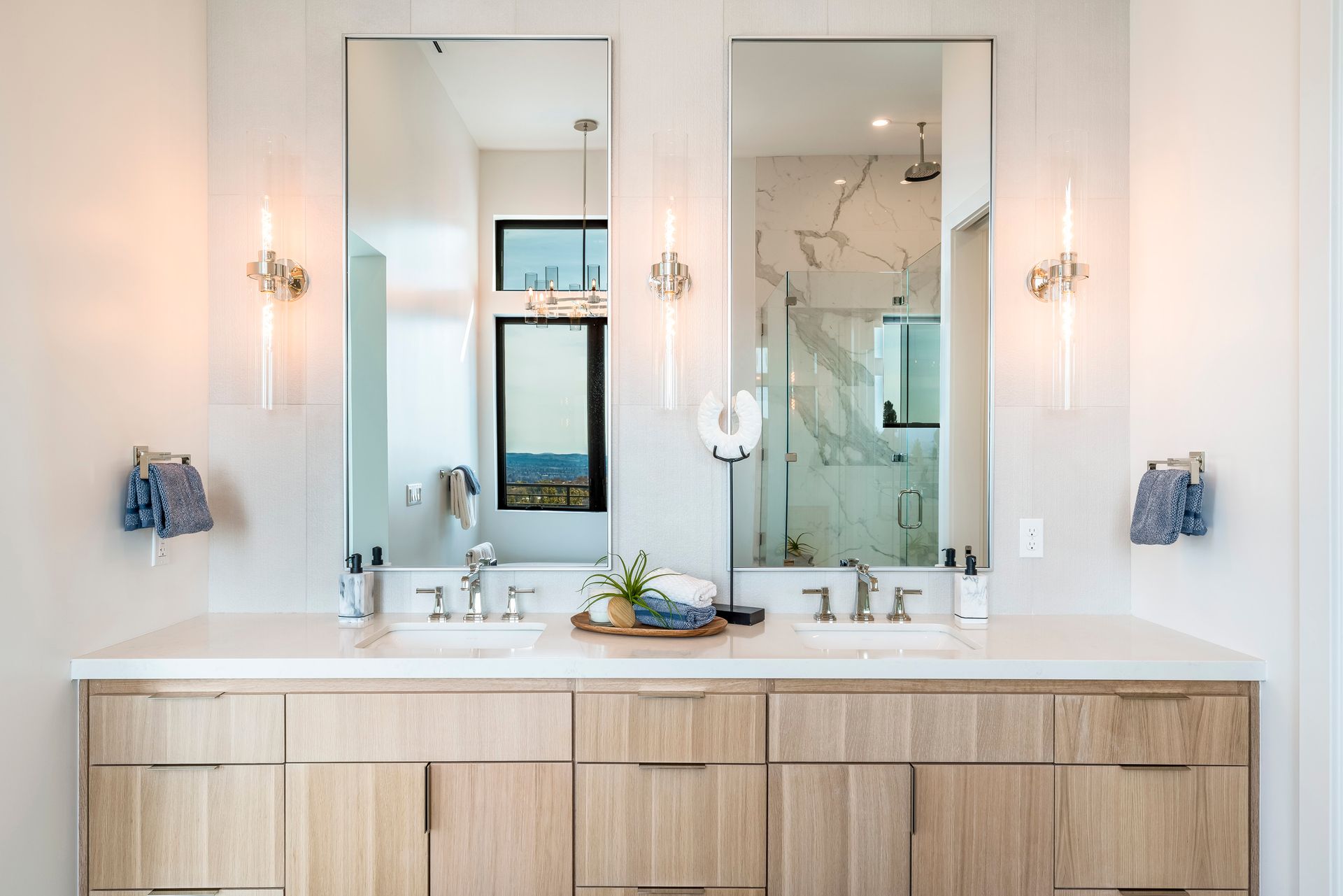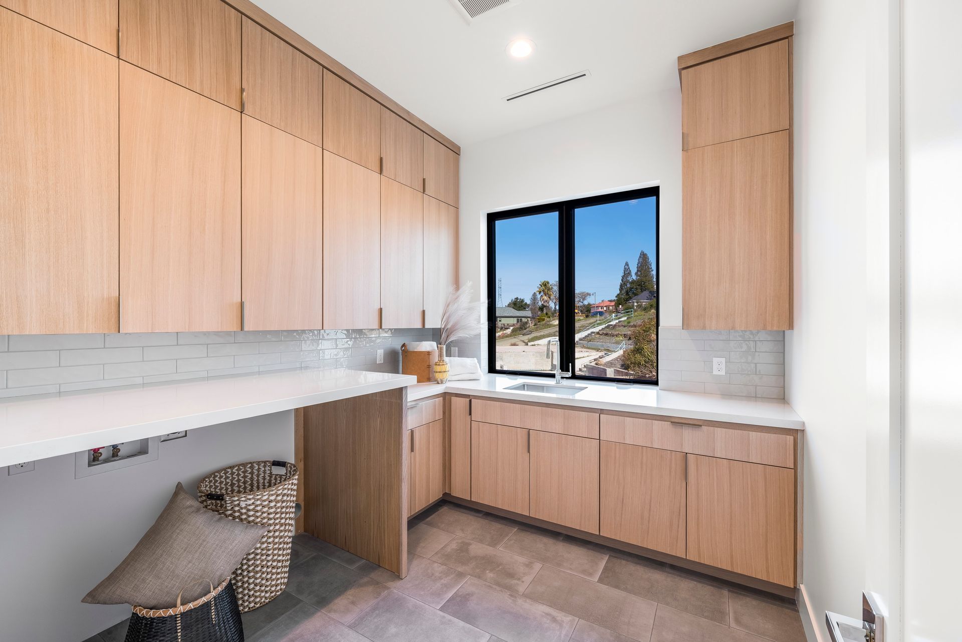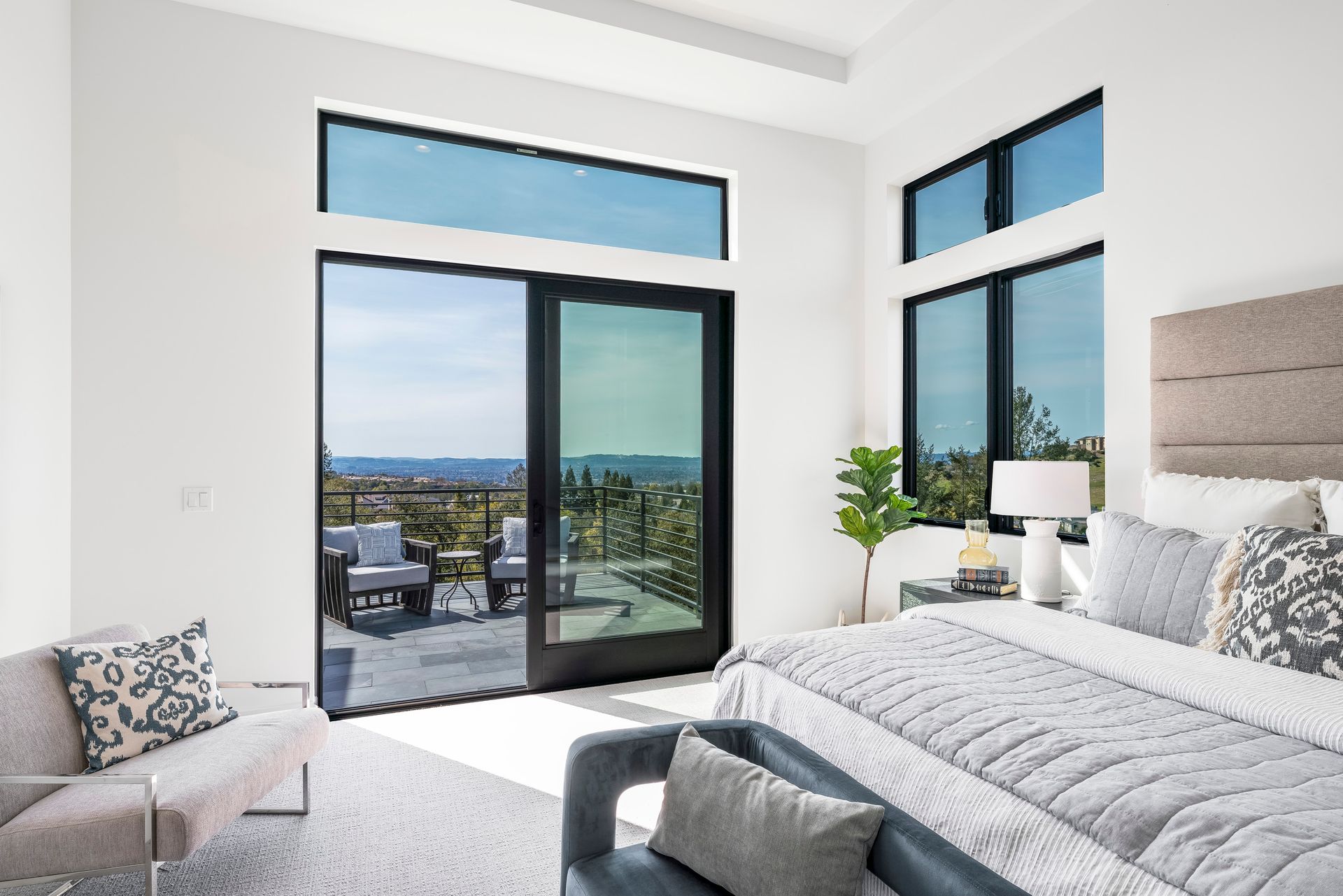 This newly constructed home on nearly 1/3 acre offers sweeping city light views. Located on a quiet cul-de-sac, the exceptional designer appeal showcases double glass entry doors, extensive use of wide plank hardwood flooring and an accent wall of Brazilian Ipe wood. The design style is contemporary with an open concept floor plan. The great room with architecturally appealing coffered ceiling features a linear fireplace and 16 x 10 foot high sliders to the view terrace. The kitchen, open to the great room, has a large island with quartz counter and slider to the built-in Summerset outdoor grill on the terrace. Additionally, there is a formal dining room, a home office, and the primary suite on the main level. The lower level includes 2 bedrooms (one en-ensuite) and a bonus/game room with stacking sliders to the covered patio and lawn area. This distinctive custom home is walking distance to Fir Ridge Park and set in the heart of wine country with close proximity to wineries, shopping & fine dining.