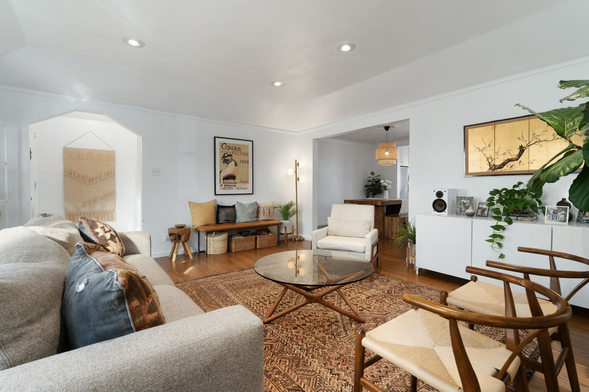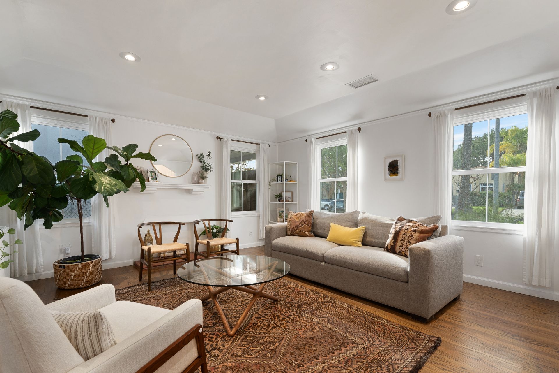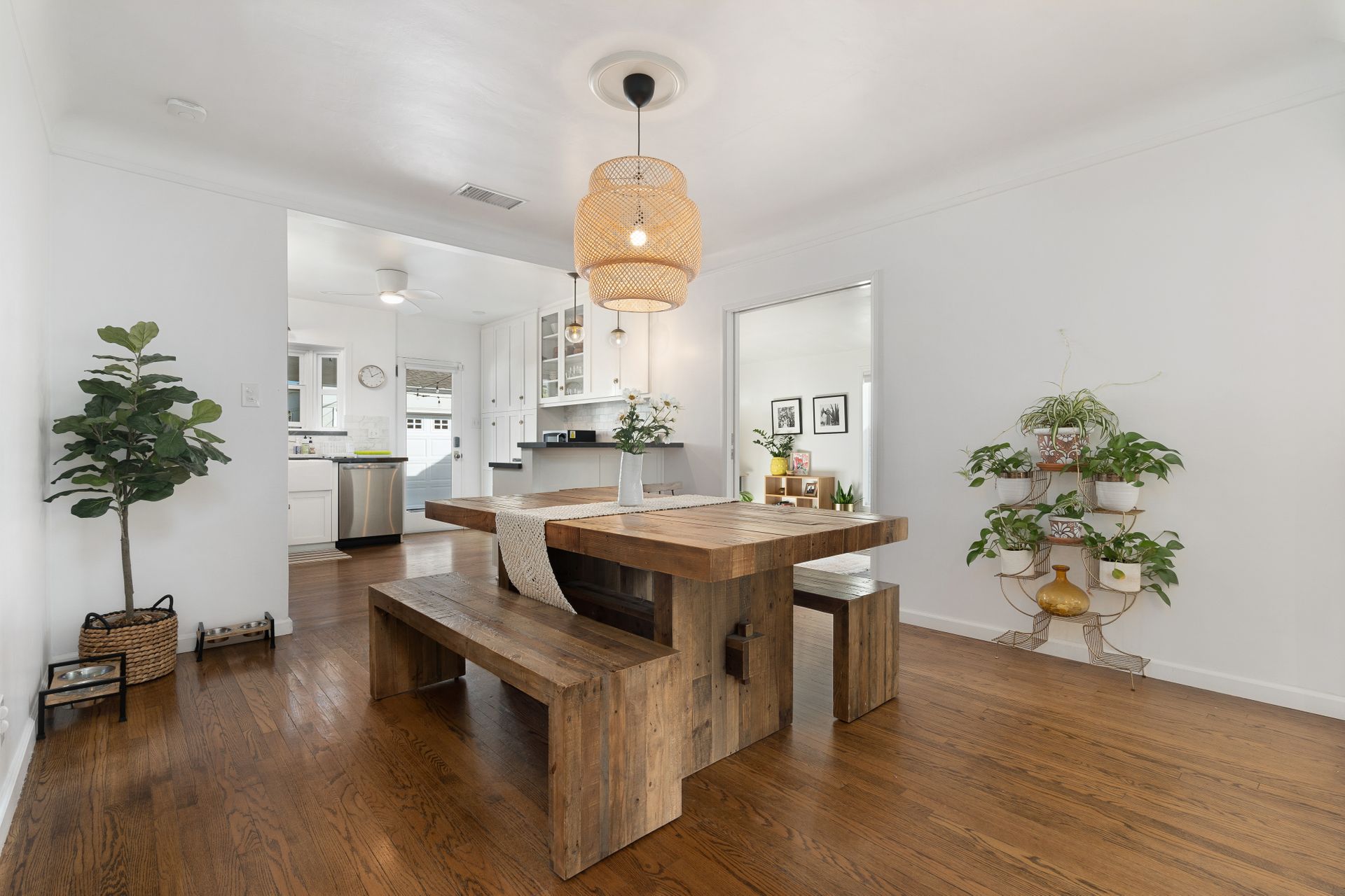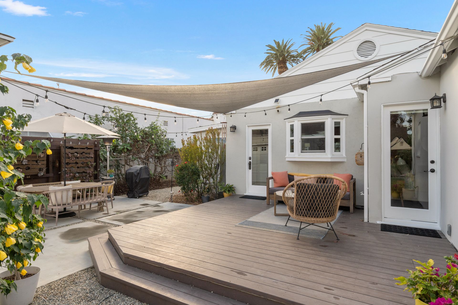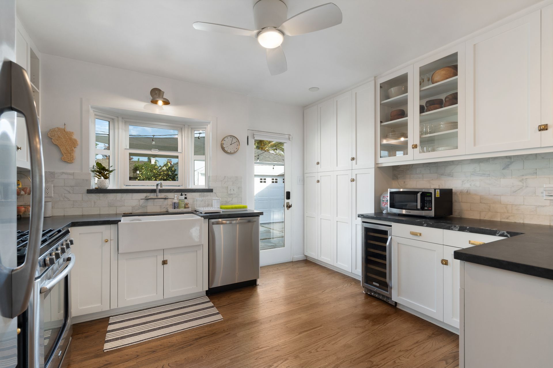 Charming California Heights Traditional with the adorable yellow door. This beautiful two bedroom plus two bathroom home has been lovingly restored throughout. Enter the oversized light and bright living room adjacent to the generous sized dining room with a bonus room that would be perfect for a den, home office, or guest space. The cook’s kitchen has honed finish stone counters, crisp white shaker cabinets, subway tile backsplash, stainless steel appliances and a farm sink with window that overlooks the back patio and yard. The bathrooms have been remodeled with gorgeous Carrera marble counters and showers and hexagon and penny tiled floors. Nice sized master bedroom with en-suite remodeled master bathroom that opens to the backyard. Other amenities include hardwood floors, recessed lighting, modern ceiling fans and light fixtures throughout. Do not miss the amazing landscaping. The front yard is all drought-resistant, and the back yard is a warm combination of decking, green space, eco-friendly drought tolerance and a Pinterest-worthy vertical succulent wall planter. The garage is upgraded with recessed lighting, custom cabinetry, crisp white walls and finished flooring, and is currently used as an outside playroom or could be an awesome home gym. All of this and it is nestled in the middle of historic California Heights, close to eateries, cafes, parks and blue-ribbon schools that make uptown Long Beach fabulous.