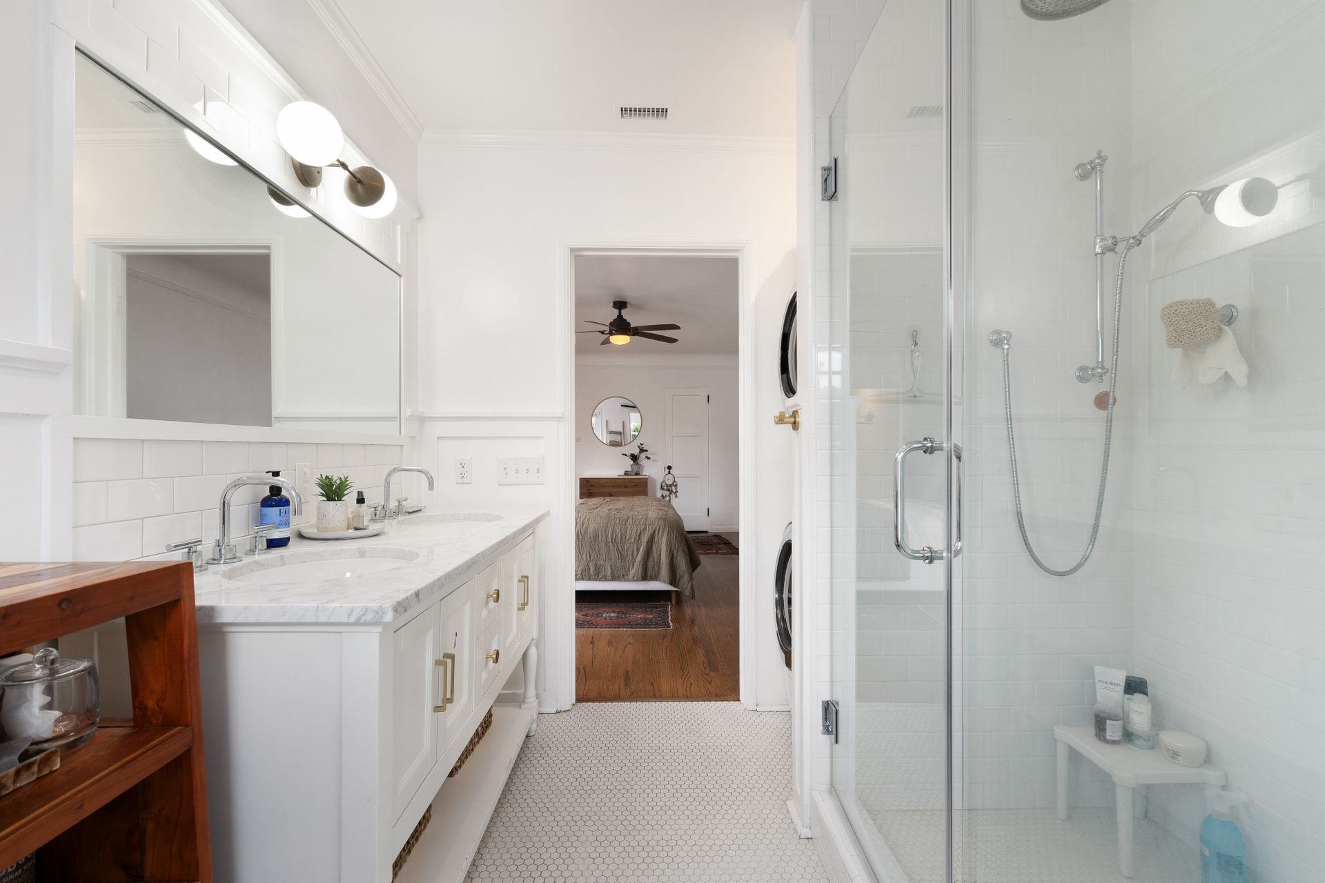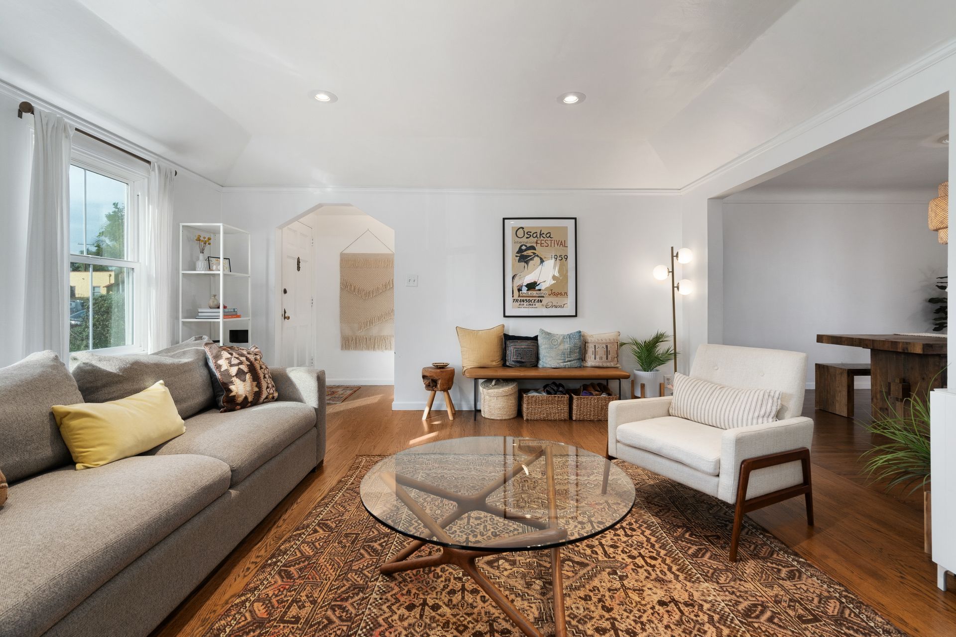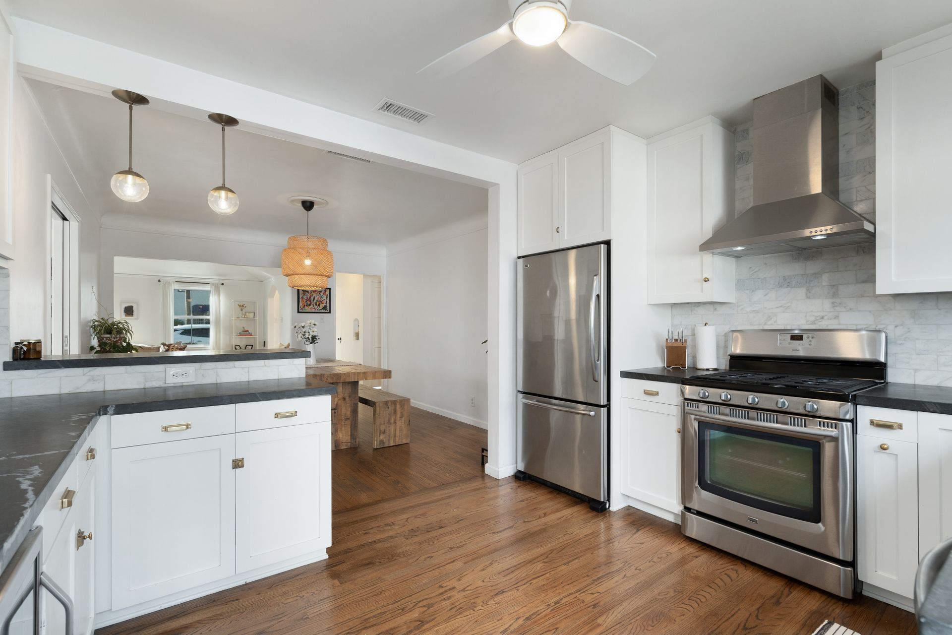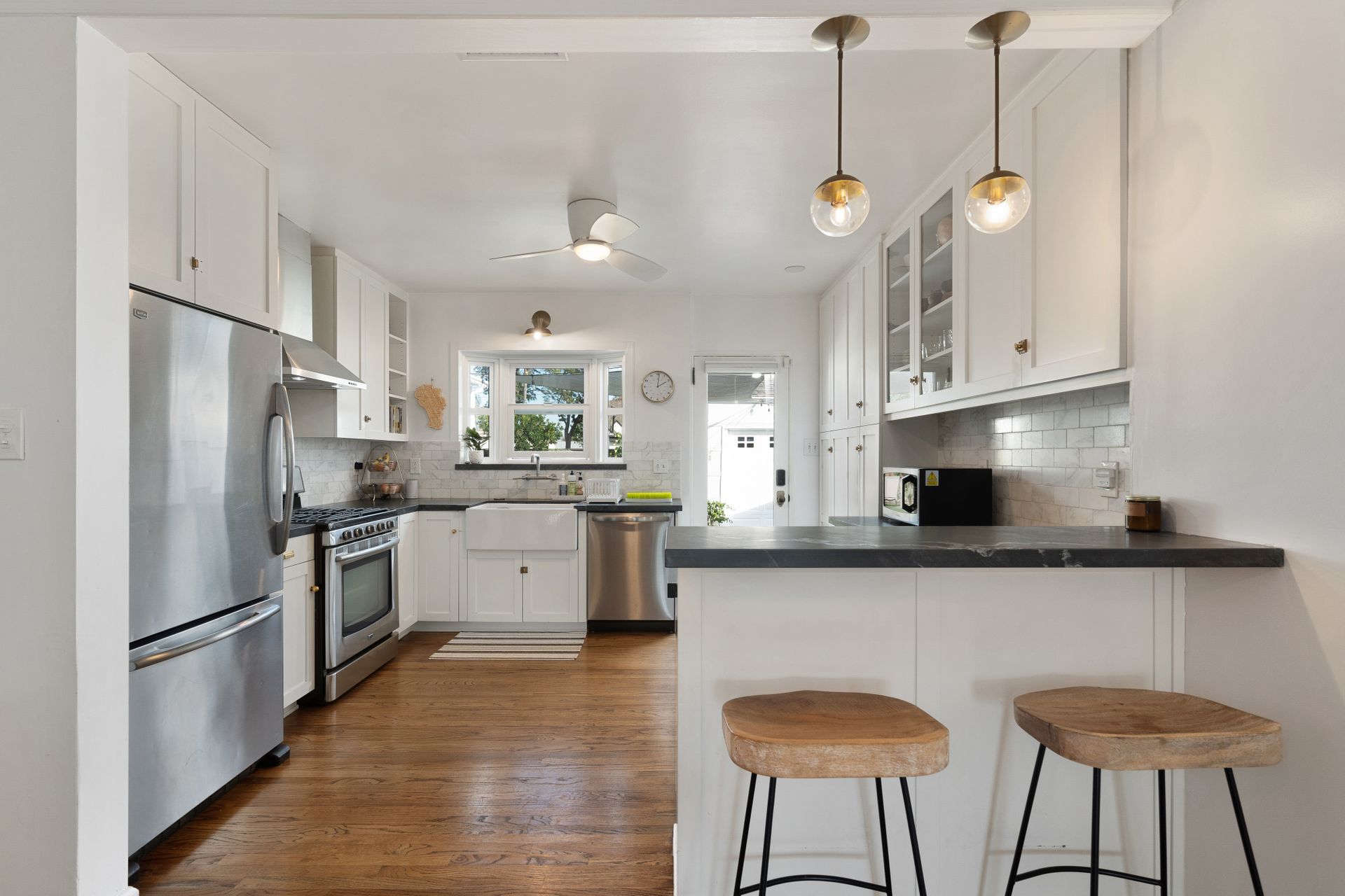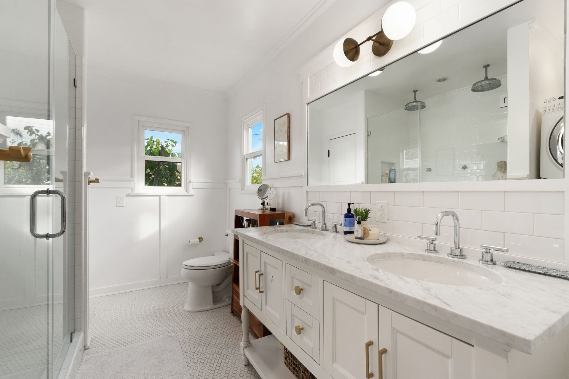 Charming California Heights Traditional with the adorable yellow door. This beautiful two bedroom plus two bathroom home has been lovingly restored throughout. Enter the oversized light and bright living room adjacent to the generous sized dining room with a bonus room that would be perfect for a den, home office, or guest space. The cook’s kitchen has honed finish stone counters, crisp white shaker cabinets, subway tile backsplash, stainless steel appliances and a farm sink with window that overlooks the back patio and yard. The bathrooms have been remodeled with gorgeous Carrera marble counters and showers and hexagon and penny tiled floors. Nice sized master bedroom with en-suite remodeled master bathroom that opens to the backyard. Other amenities include hardwood floors, recessed lighting, modern ceiling fans and light fixtures throughout. Do not miss the amazing landscaping. The front yard is all drought-resistant, and the back yard is a warm combination of decking, green space, eco-friendly drought tolerance and a Pinterest-worthy vertical succulent wall planter. The garage is upgraded with recessed lighting, custom cabinetry, crisp white walls and finished flooring, and is currently used as an outside playroom or could be an awesome home gym. All of this and it is nestled in the middle of historic California Heights, close to eateries, cafes, parks and blue-ribbon schools that make uptown Long Beach fabulous.