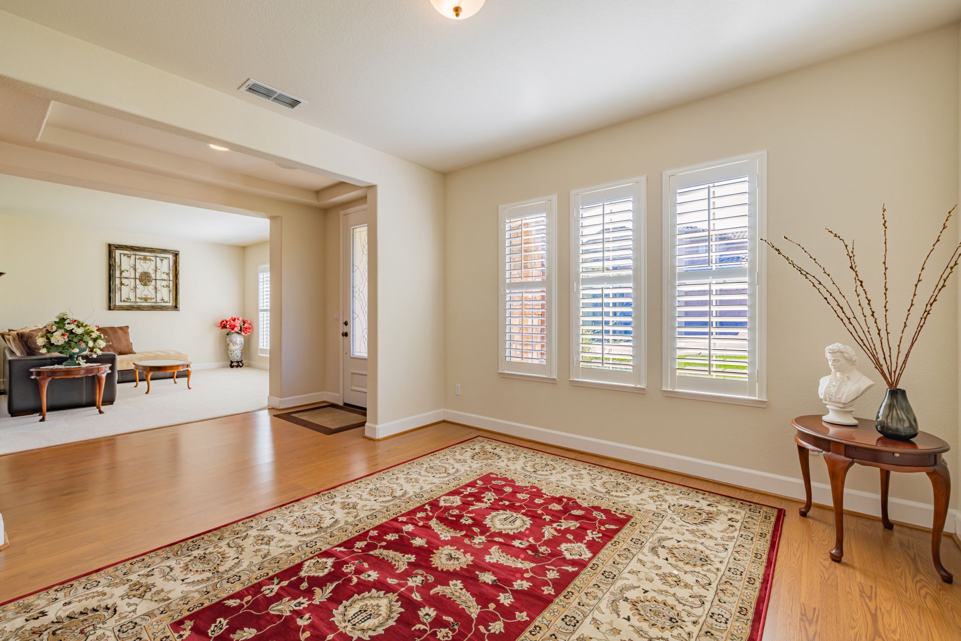 Additional highlights include quartz counters in all bathrooms, plantation shutters, and an upgraded HVAC system with SmartVent. This home is a blend of luxury and comfort, providing an exceptional living experience.