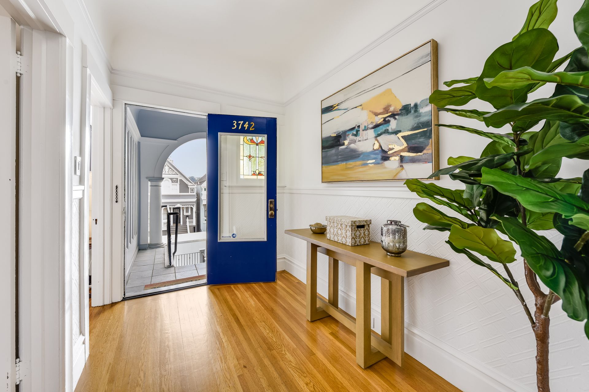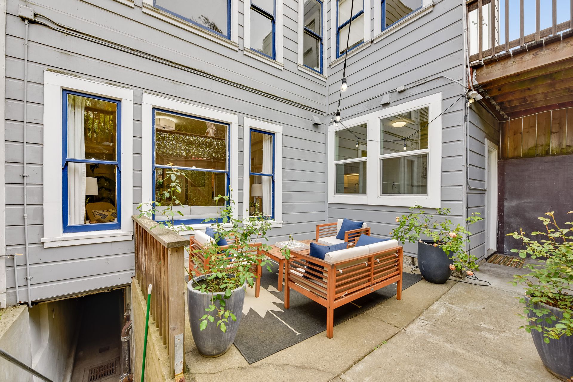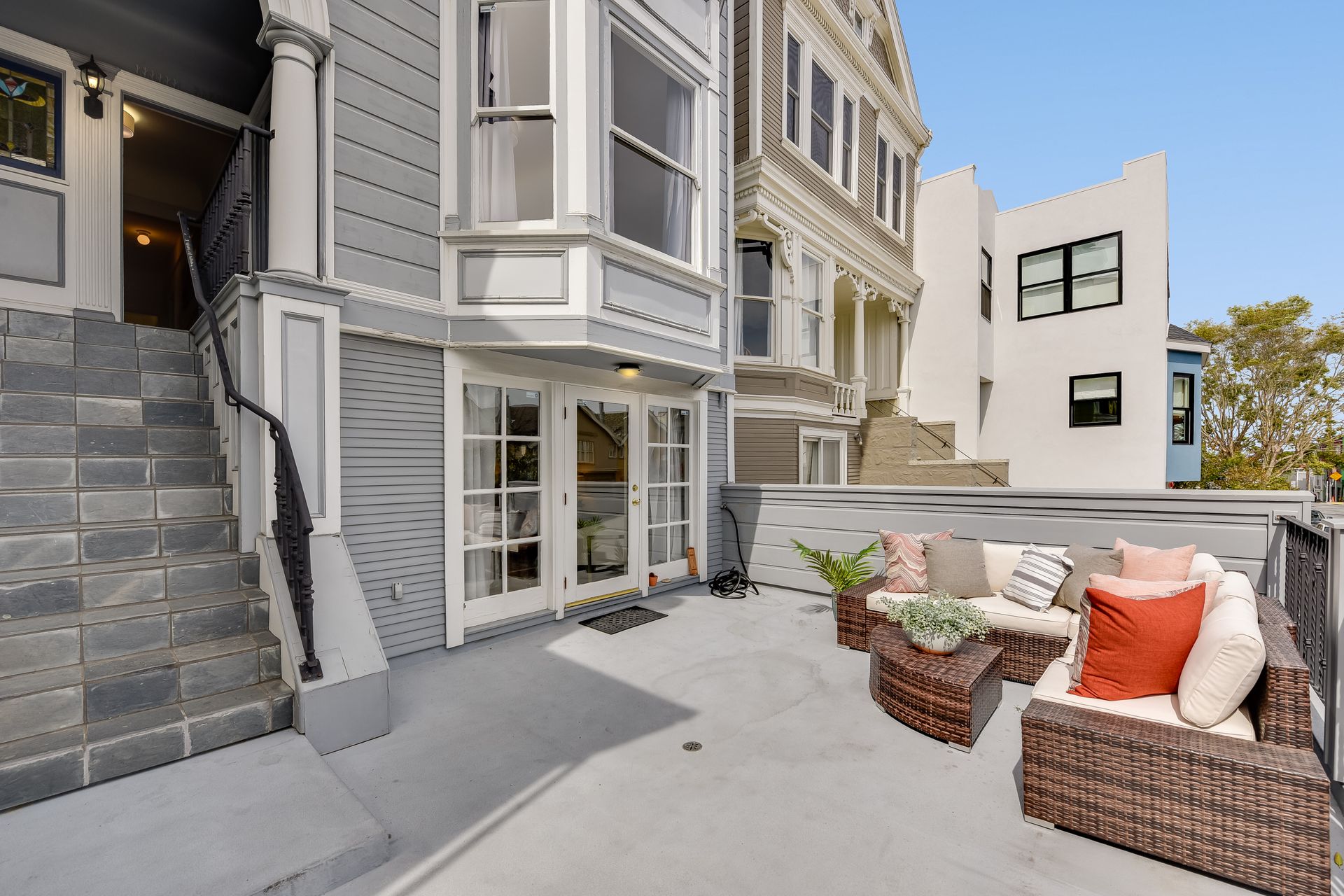 Prime Noe Valley location. This handsome Edwardian is on a flat, tree lined block with no overhead wires. It is located close to shopping and restaurants on 24th Street. It was recently remodeled with a blend of contemporary and traditional finishes. There are three bedrooms, combination living/dining room, an office and two and a half bathrooms on two levels. The chef's kitchen features top of the line stainless appliances, quartz counter tops, marble backsplash and a convenient pantry. The large windows in the Living/dining room overlook a private patio. It offers hardwood floors, high ceilings and period detailing throughout. The lower level is ideal for the gracious Primary en suite, family room or home office and has direct access to a large south facing deck. It features one car parking and extra storage.