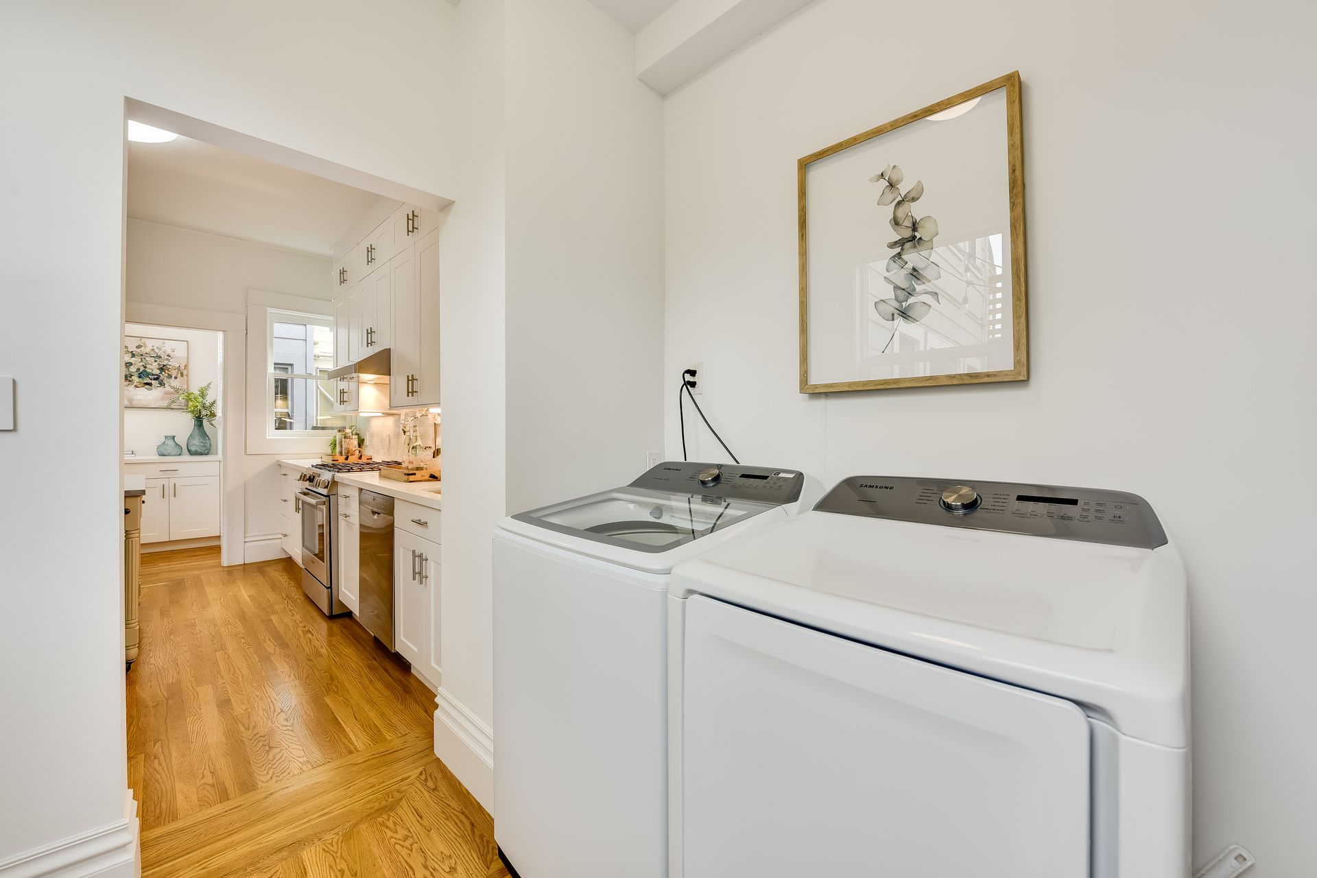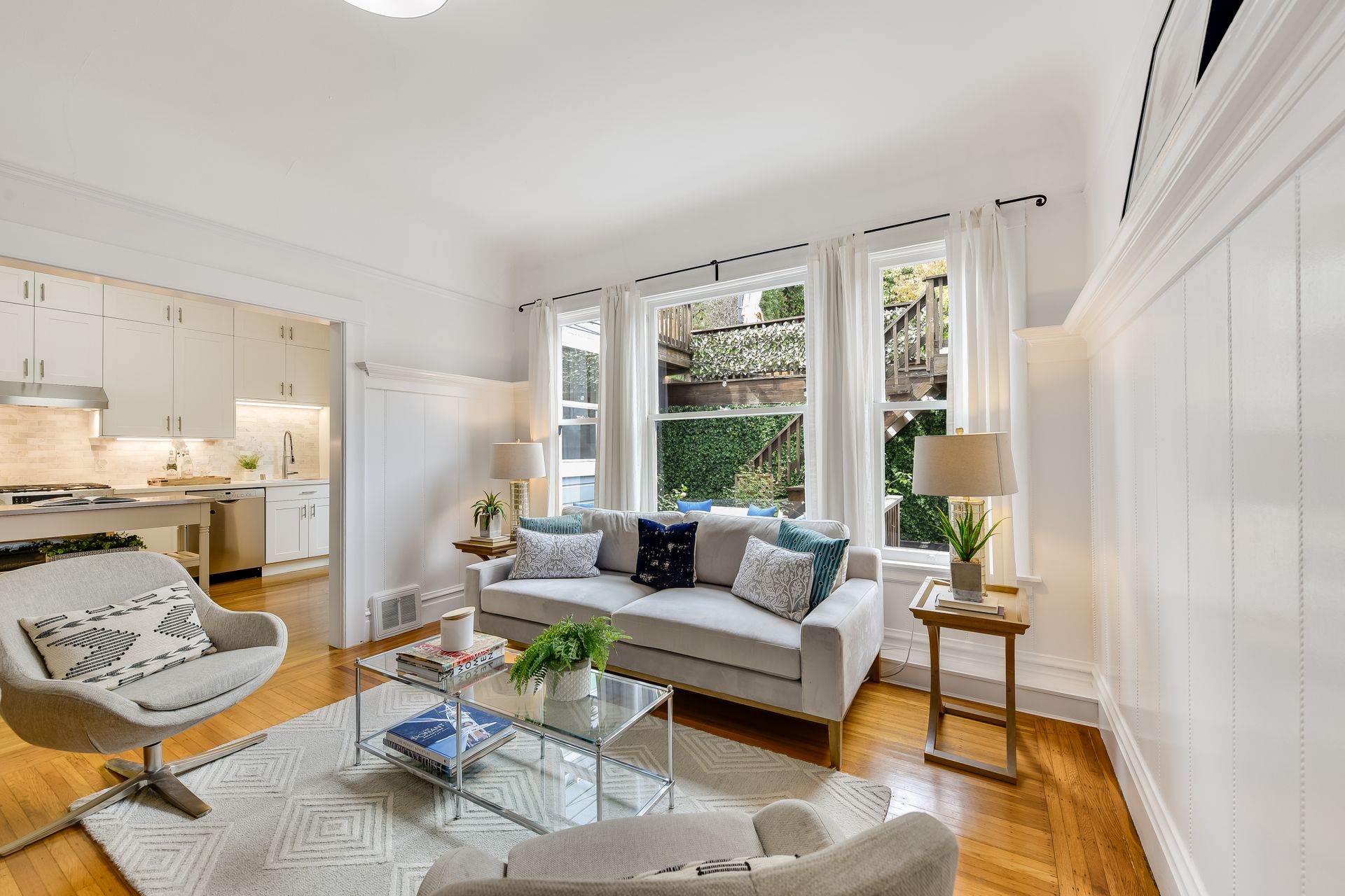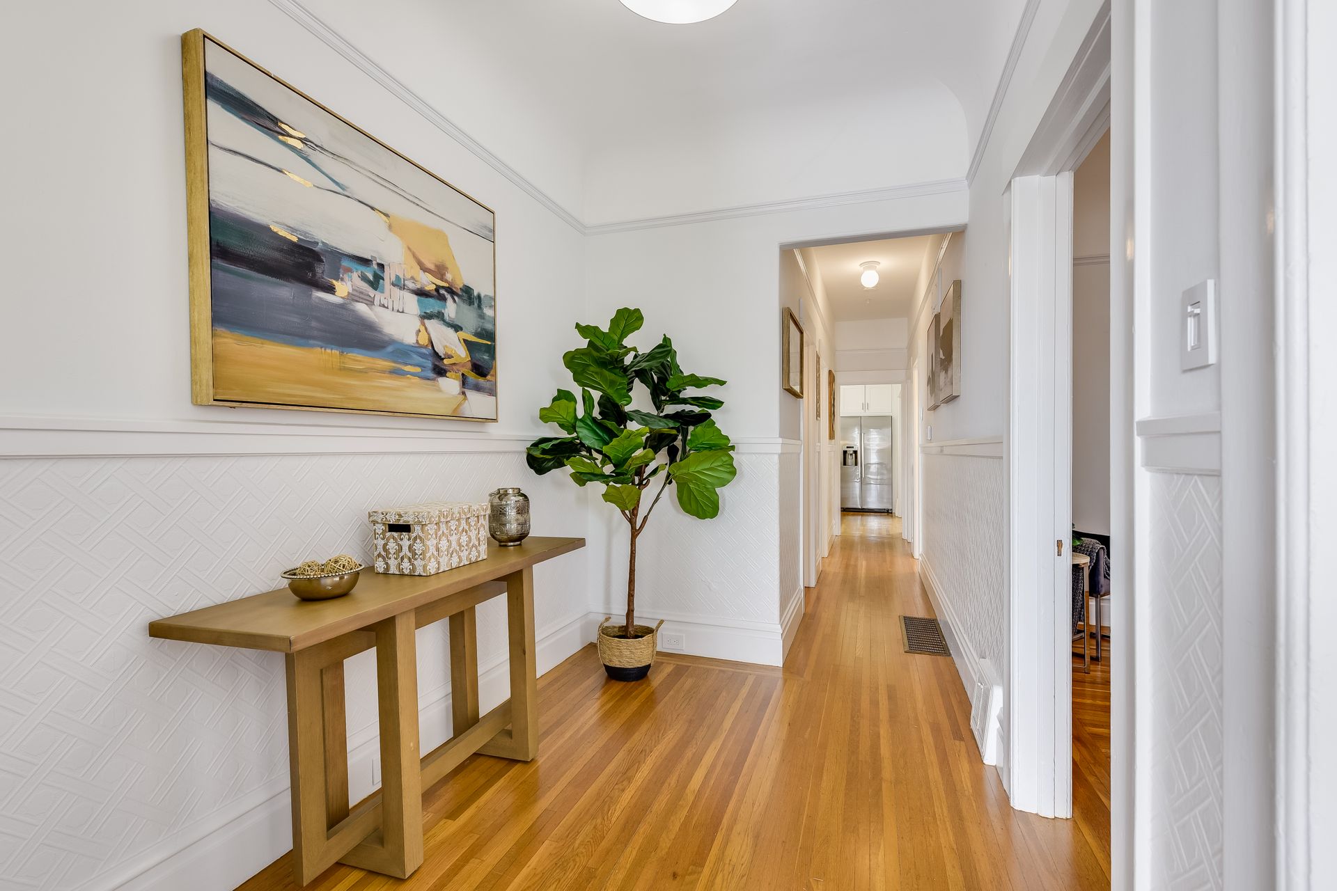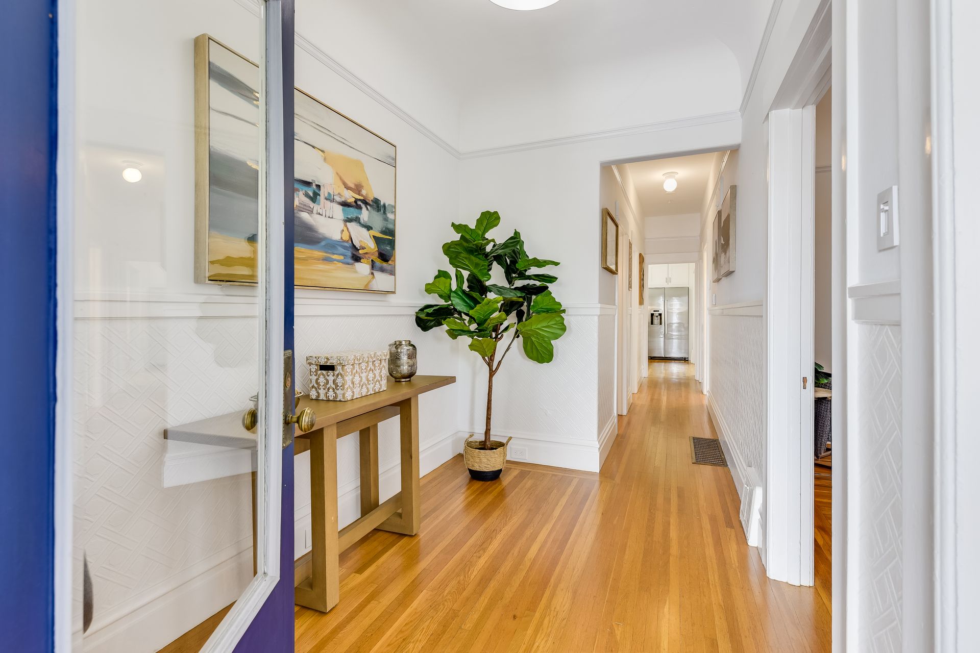 Prime Noe Valley location. This handsome Edwardian is on a flat, tree lined block with no overhead wires. It is located close to shopping and restaurants on 24th Street. It was recently remodeled with a blend of contemporary and traditional finishes. There are three bedrooms, combination living/dining room, an office and two and a half bathrooms on two levels. The chef's kitchen features top of the line stainless appliances, quartz counter tops, marble backsplash and a convenient pantry. The large windows in the Living/dining room overlook a private patio. It offers hardwood floors, high ceilings and period detailing throughout. The lower level is ideal for the gracious Primary en suite, family room or home office and has direct access to a large south facing deck. It features one car parking and extra storage.
