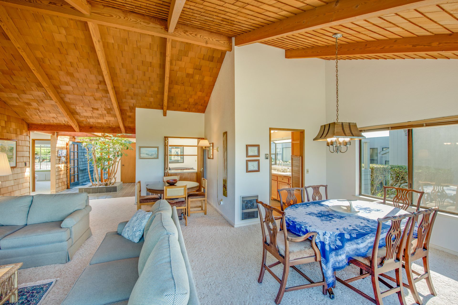 Enjoy Bodega Harbour coastal living in this one level home overlooking the 11th hole of the Championship Bodega Harbour Golf links to Bodega Bay and Spud Point Marina. This home offers two bedrooms, two baths, plus a den. There are several outside deck areas and an enclosed entry area, great for plants and pets. Bodega Harbour Amenities including Clubhouse with gym, men's and women's lockers with saunas, members-only rates at golf course and restaurant, heated pool, bocce court, picnic area, basketball, tennis courts and children's playground. Patrolled neighborhood watch and security provides comfort and safety. Beach access paths lead to nearby Doran Beach.