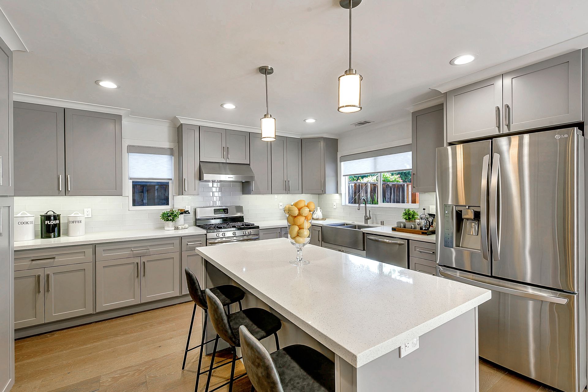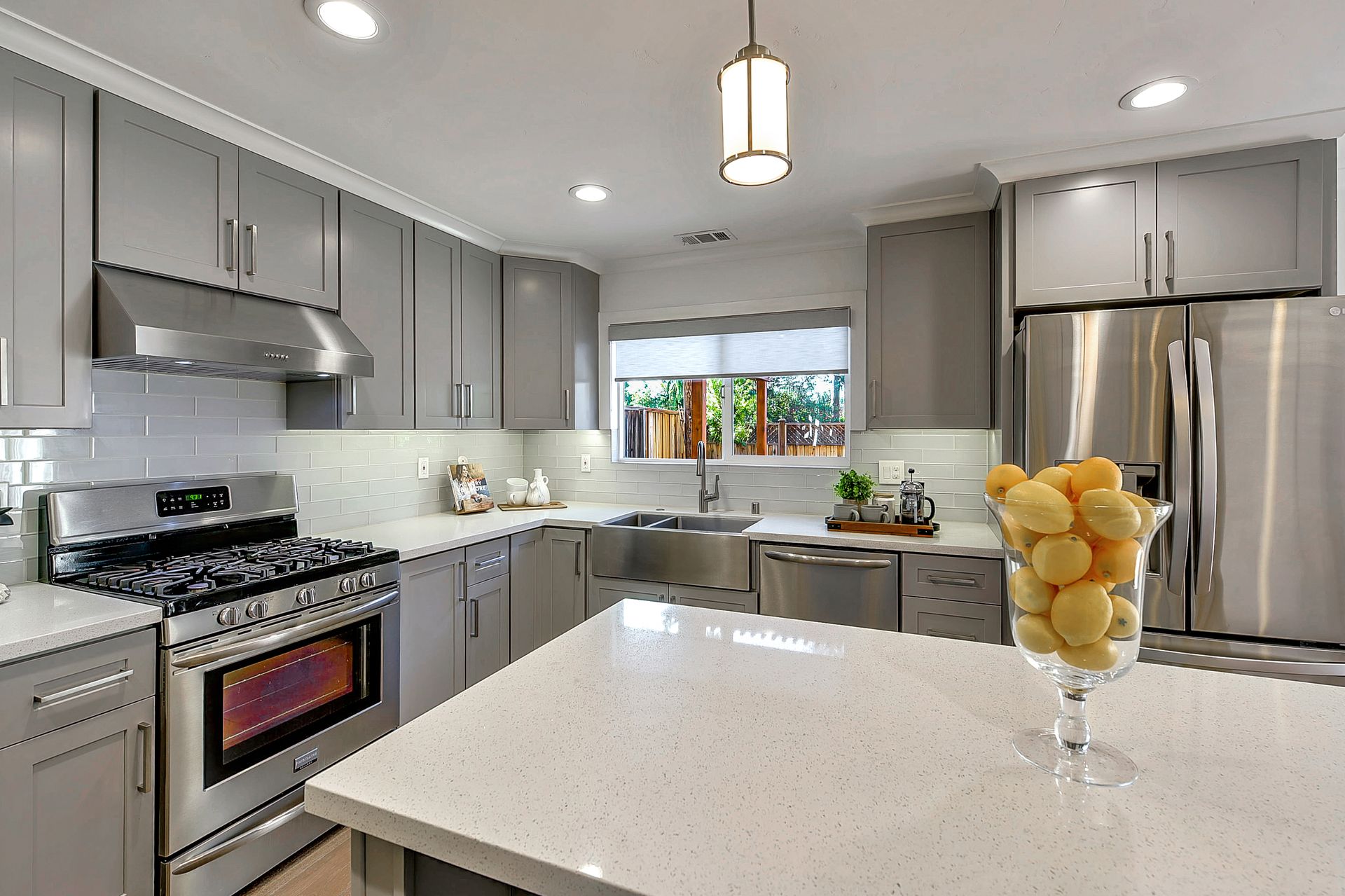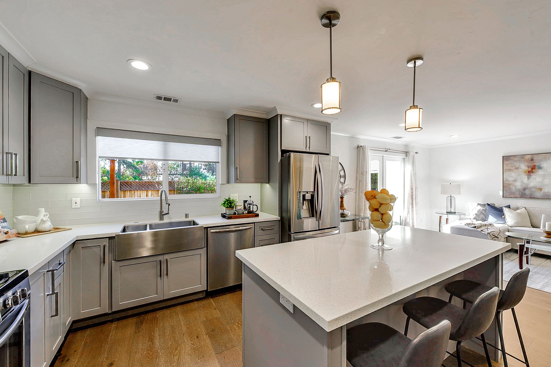 This warm and inviting contemporary home was meticulously remodeled in 2016. The home is located in a terrific Campbell neighborhood with a great commute location! From the desirable curb appeal to the private, peaceful backyard retreat you will love every aspect of this home. Enjoy entertaining under a lighted redwood pergola with bluestone pavers, artificial grass with low voltage lighting further enhancing the beautiful landscape including orange, lemon and lime trees. This dream home features an open concept floor plan with lots of natural light, an amazing kitchen with island, quartz counters, walk-in pantry, ample storage, master suite with jacuzzi tub, junior suite-great for home office, custom closet systems, ceiling fans in all bedrooms, indoor laundry, custom garage cabinets, workbench, epoxy floors and backyard plumbed for kitchen with gas & water. Smart home features include automated Hunter Douglas blinds, LED lighting, networking, Nest thermostat, Ring doorbell and alarm system.