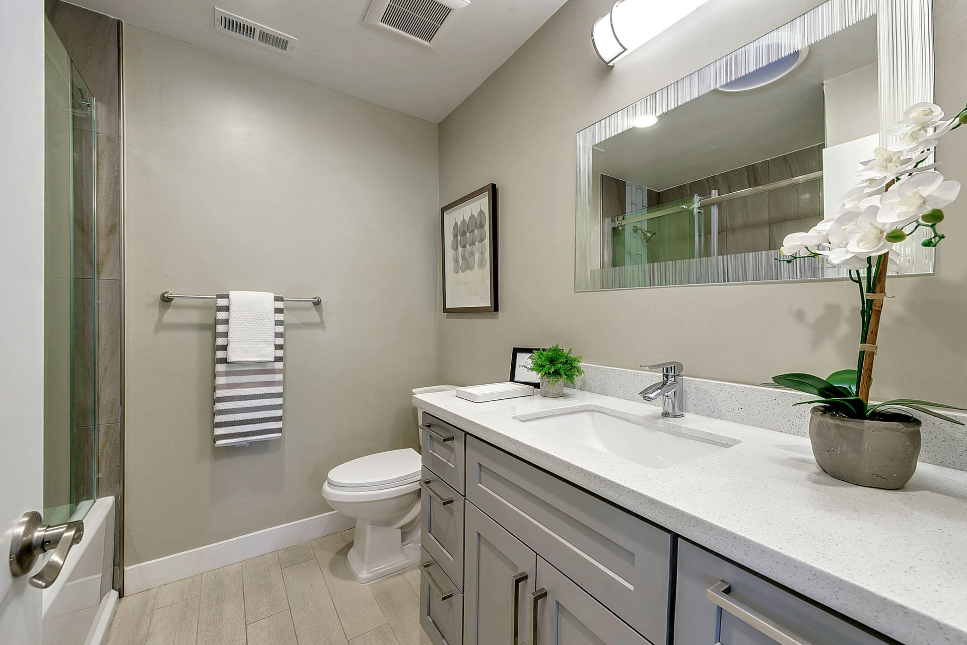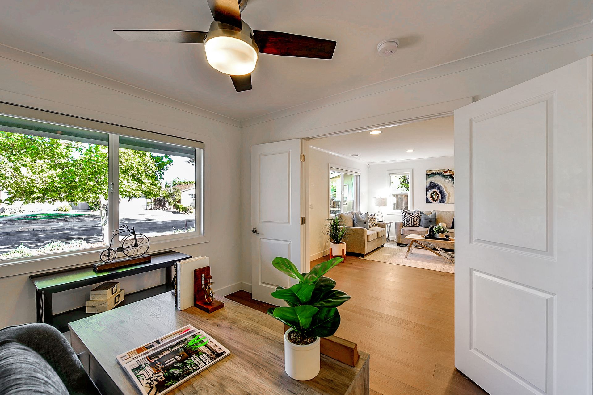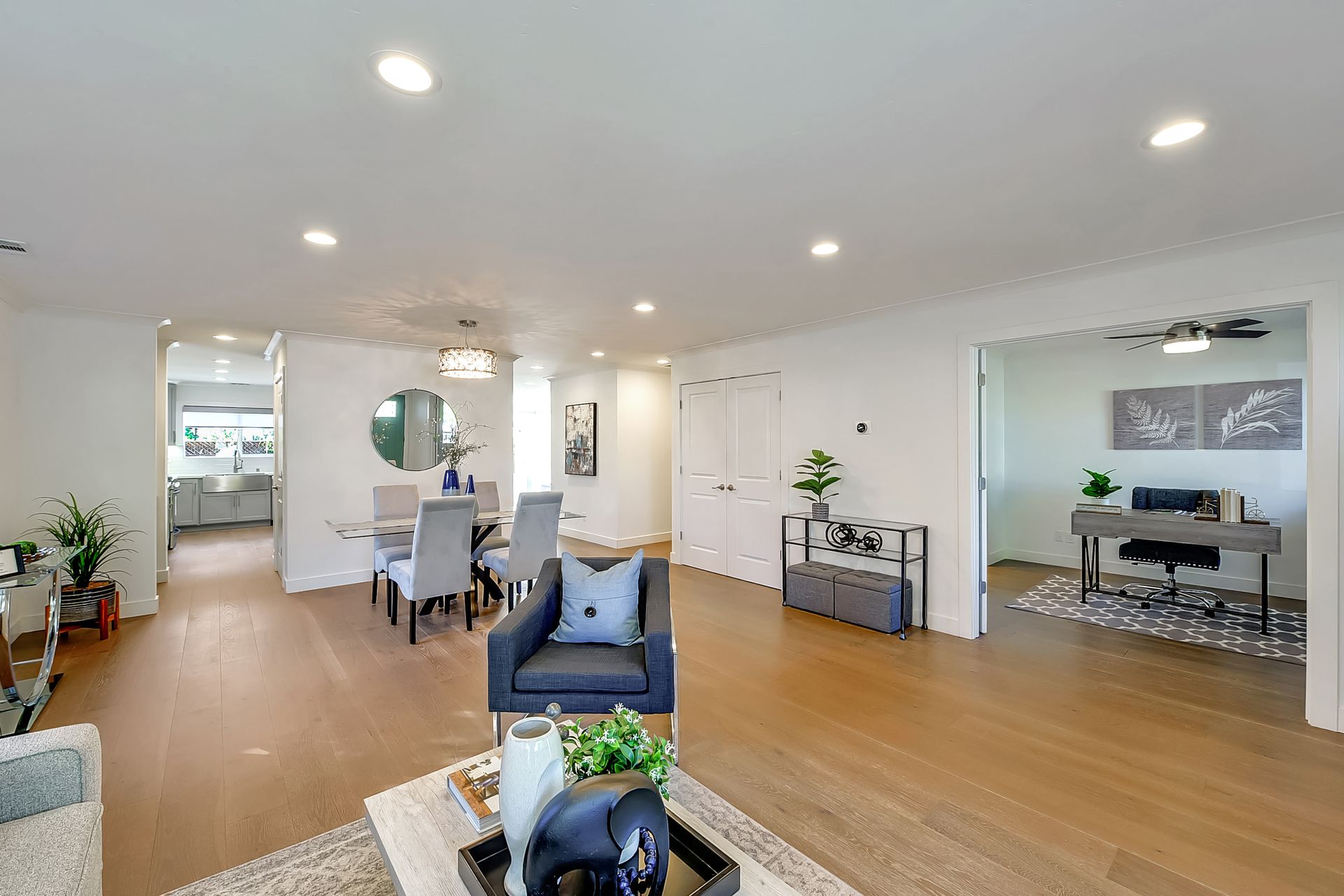 This warm and inviting contemporary home was meticulously remodeled in 2016. The home is located in a terrific Campbell neighborhood with a great commute location! From the desirable curb appeal to the private, peaceful backyard retreat you will love every aspect of this home. Enjoy entertaining under a lighted redwood pergola with bluestone pavers, artificial grass with low voltage lighting further enhancing the beautiful landscape including orange, lemon and lime trees. This dream home features an open concept floor plan with lots of natural light, an amazing kitchen with island, quartz counters, walk-in pantry, ample storage, master suite with jacuzzi tub, junior suite-great for home office, custom closet systems, ceiling fans in all bedrooms, indoor laundry, custom garage cabinets, workbench, epoxy floors and backyard plumbed for kitchen with gas & water. Smart home features include automated Hunter Douglas blinds, LED lighting, networking, Nest thermostat, Ring doorbell and alarm system.